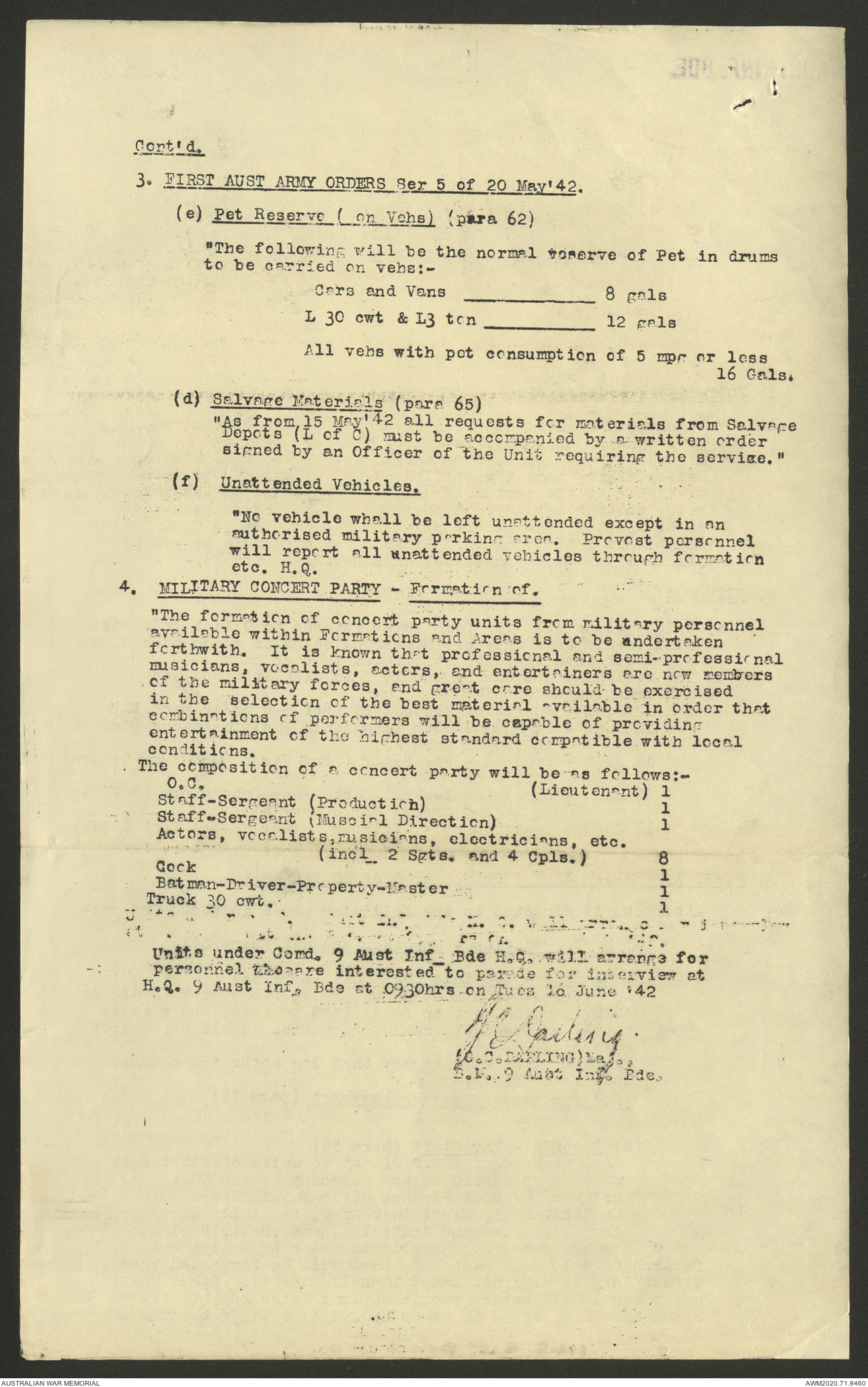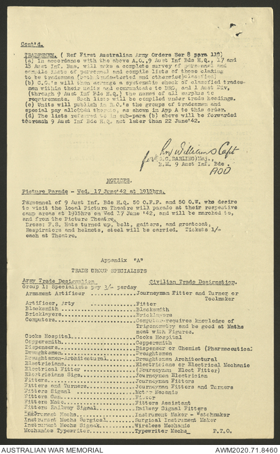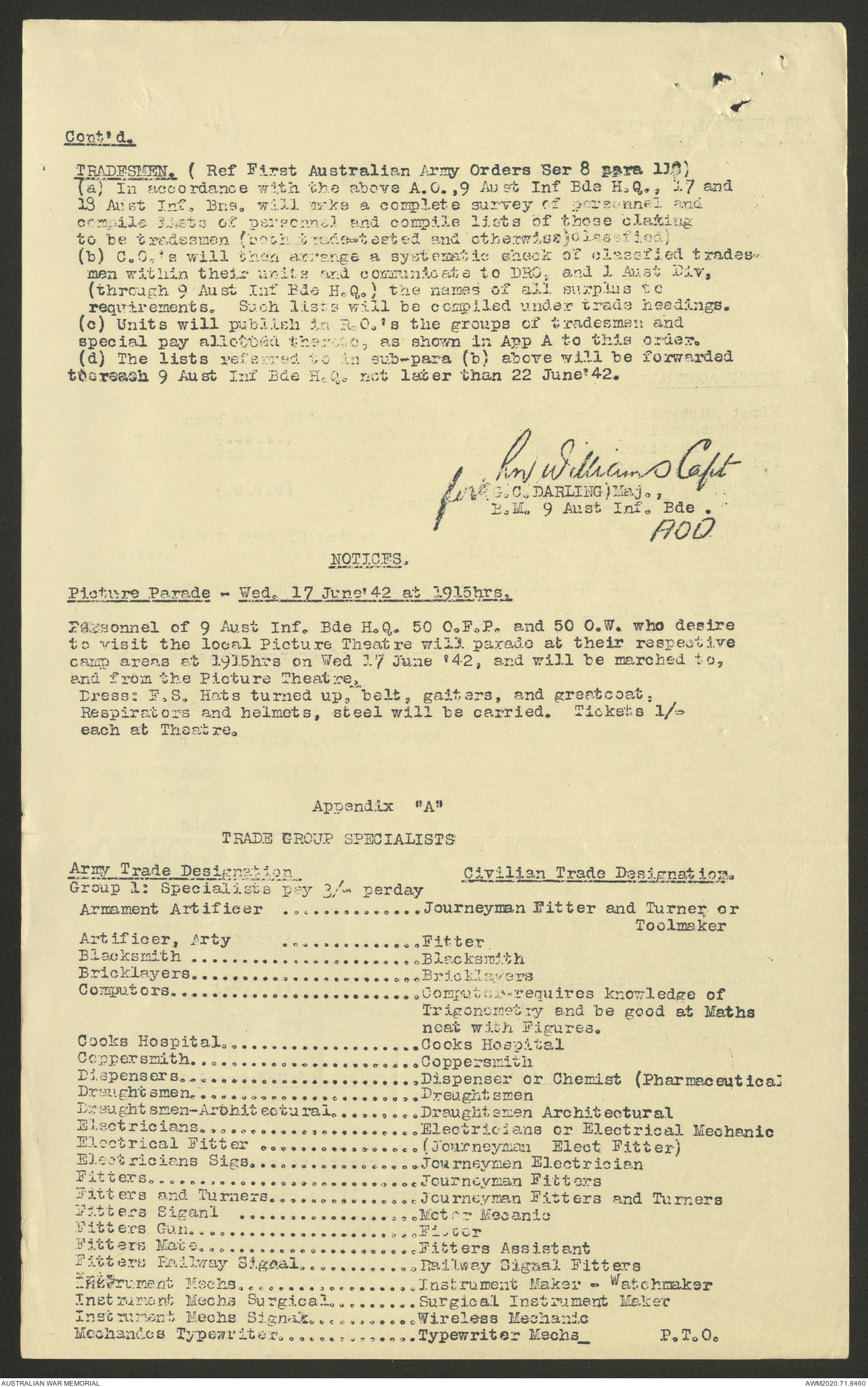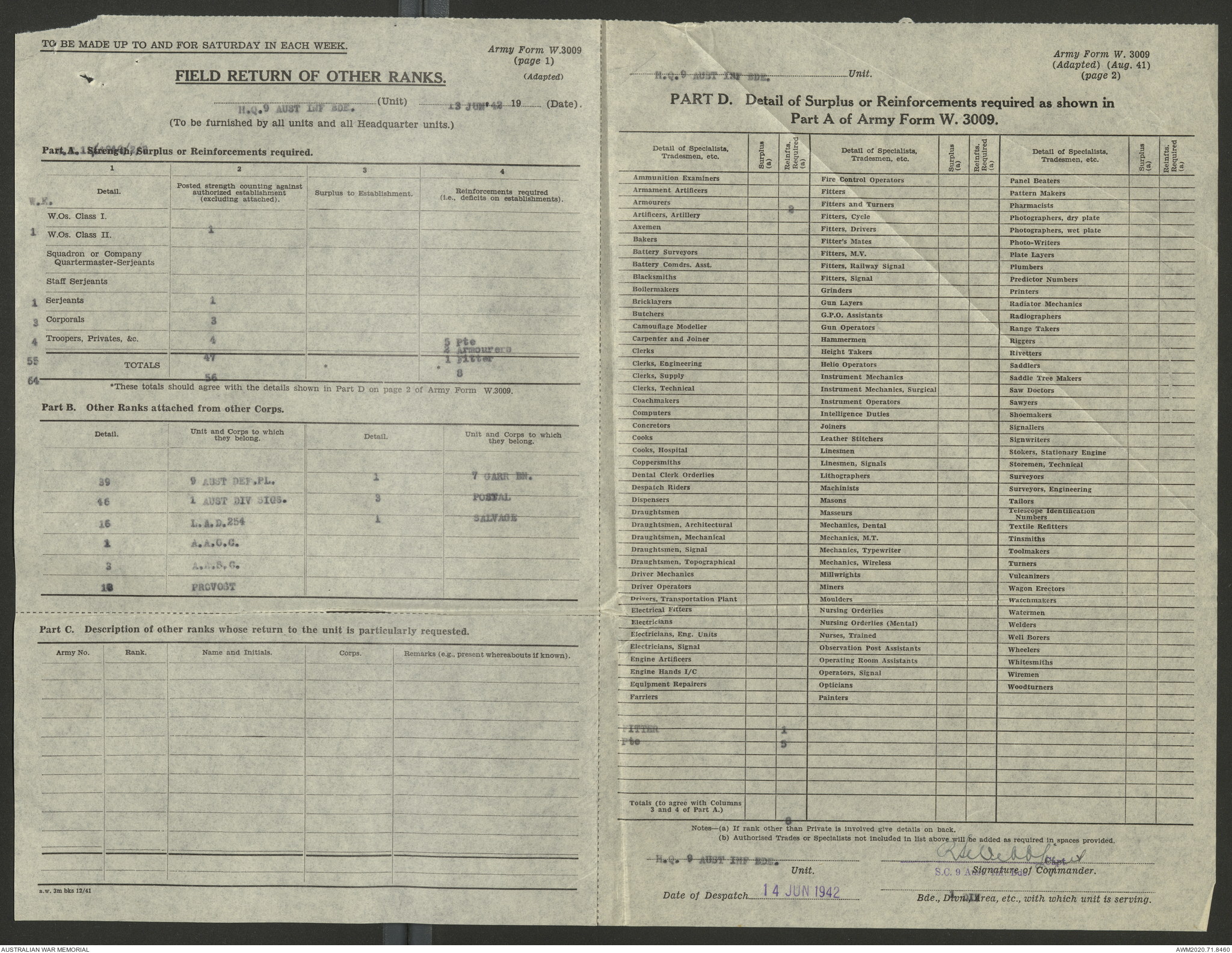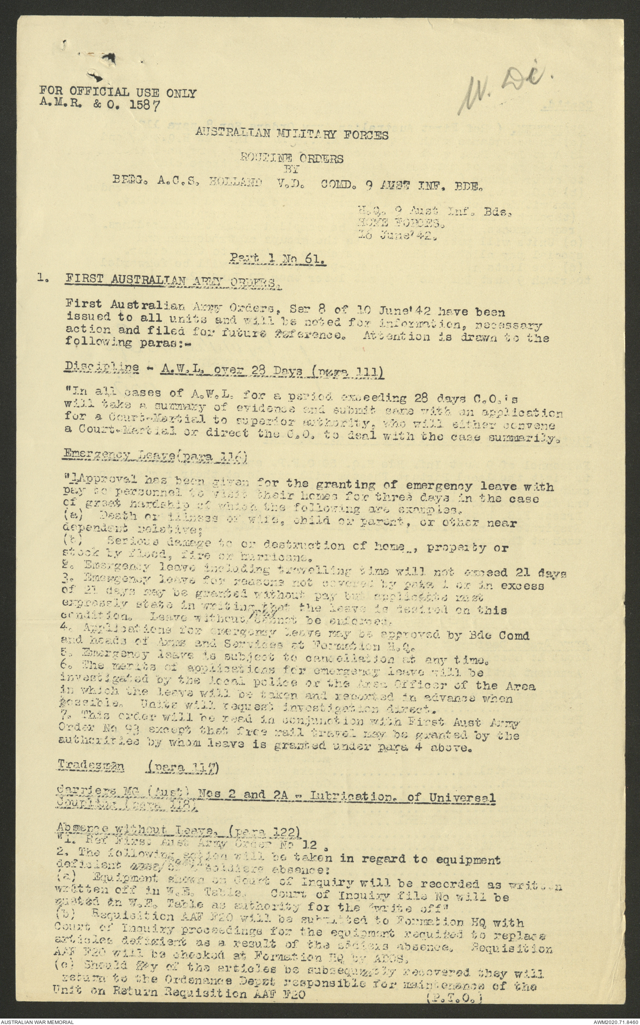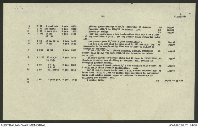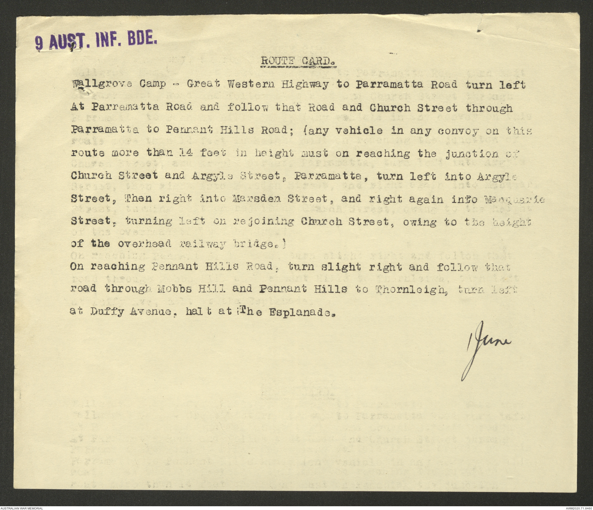 - AWM52 8/2/9 - Headquarters, 9 Infantry Brigade