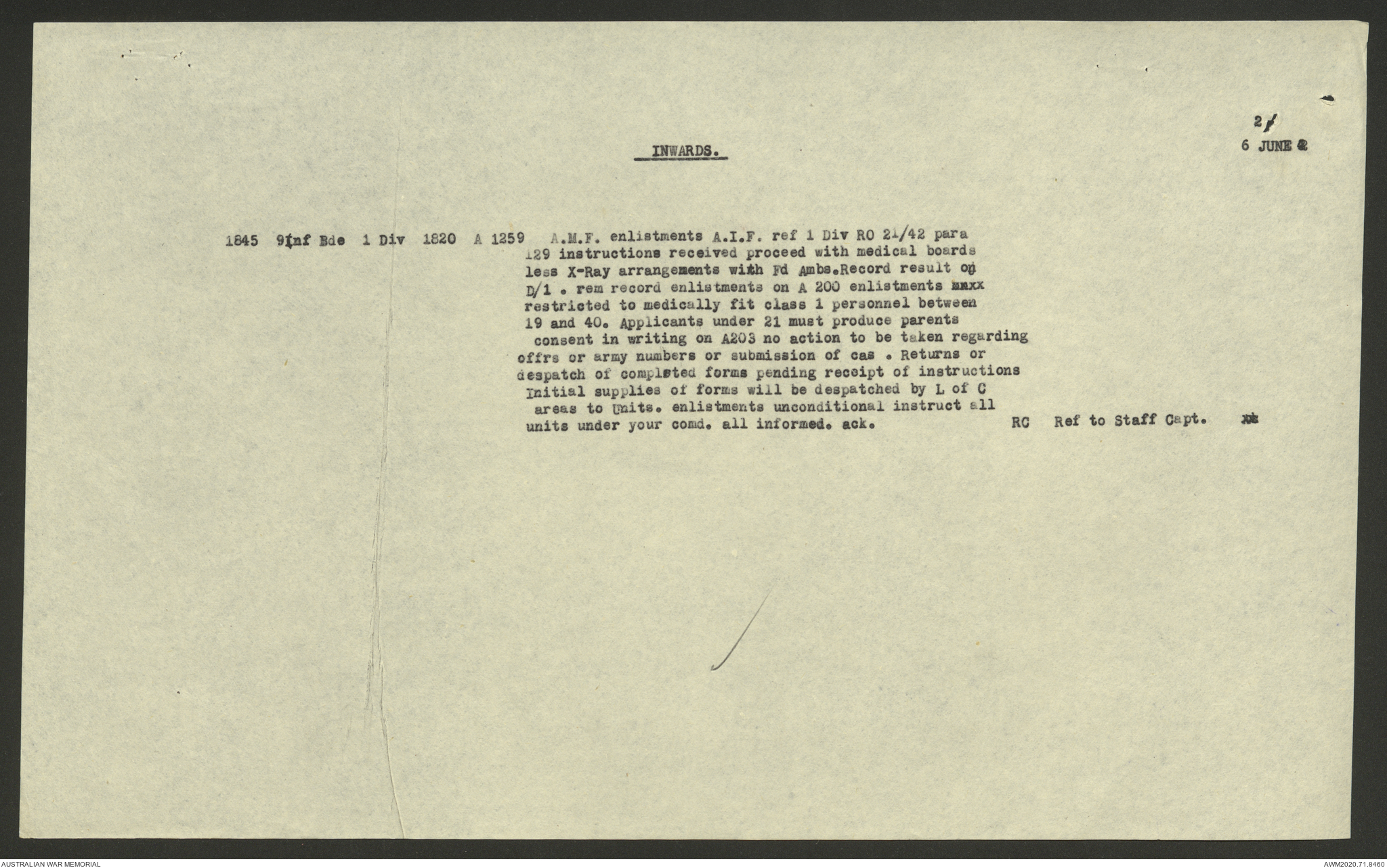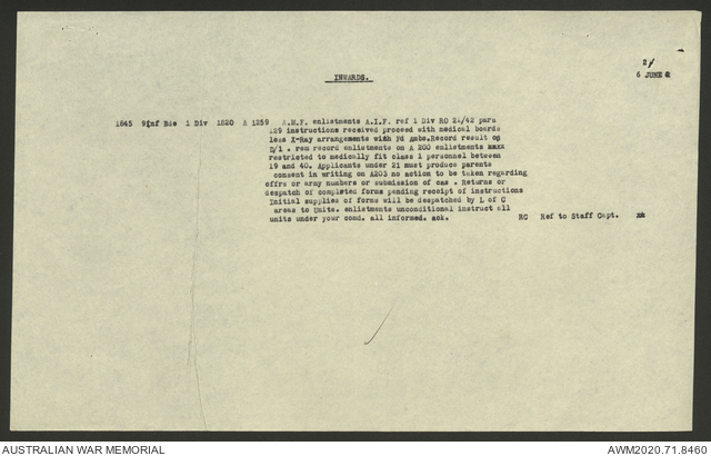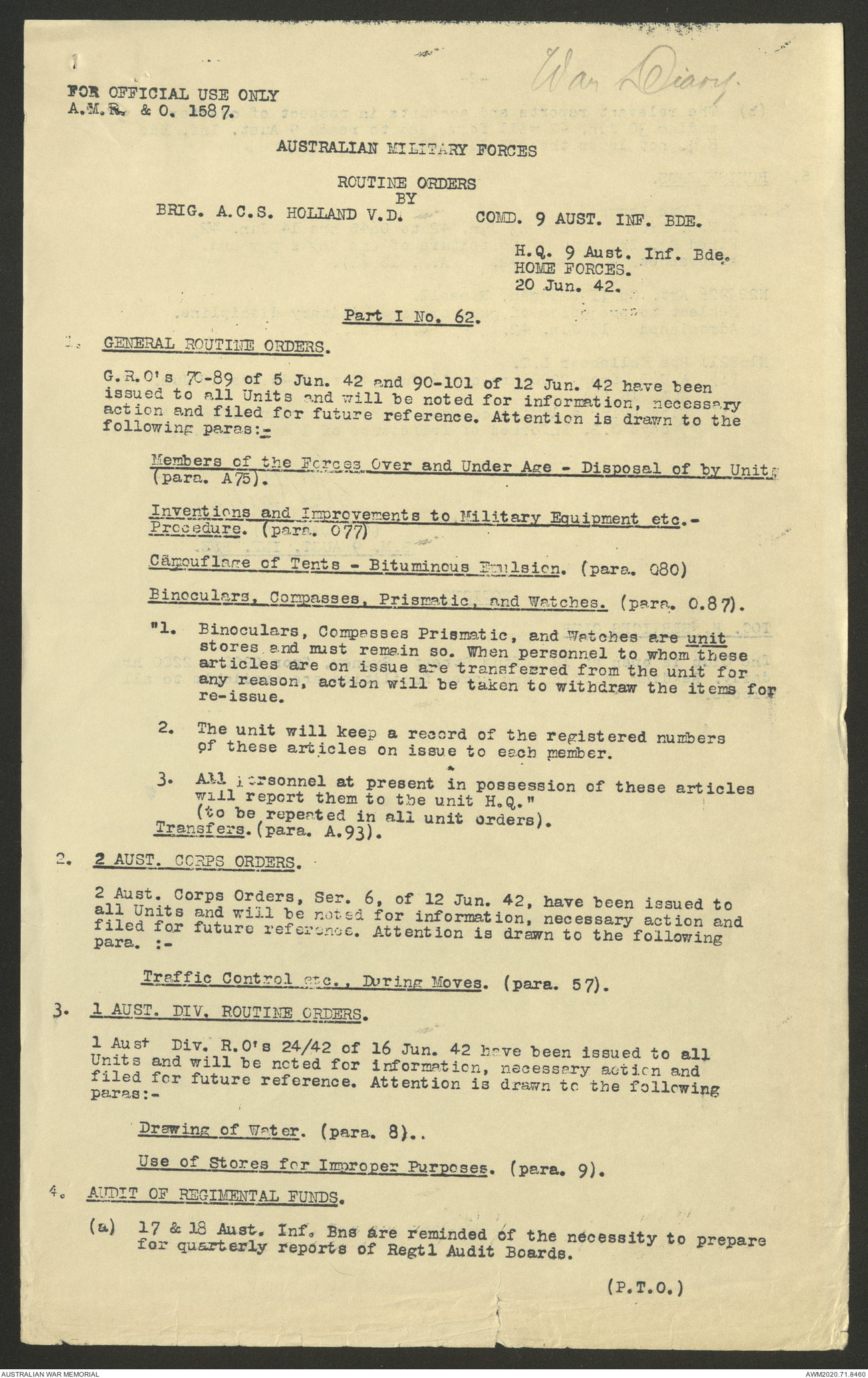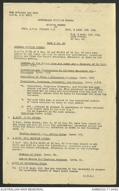 2nd AIF (Australian Imperial Force) and CMF (Citizen Military Forces) unit war diaries, 1939-45 War