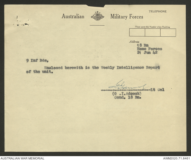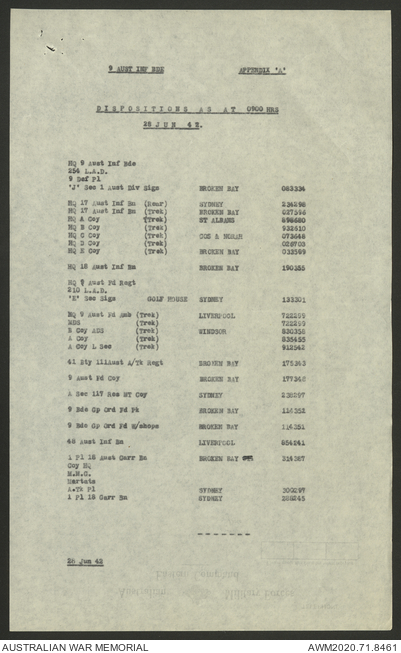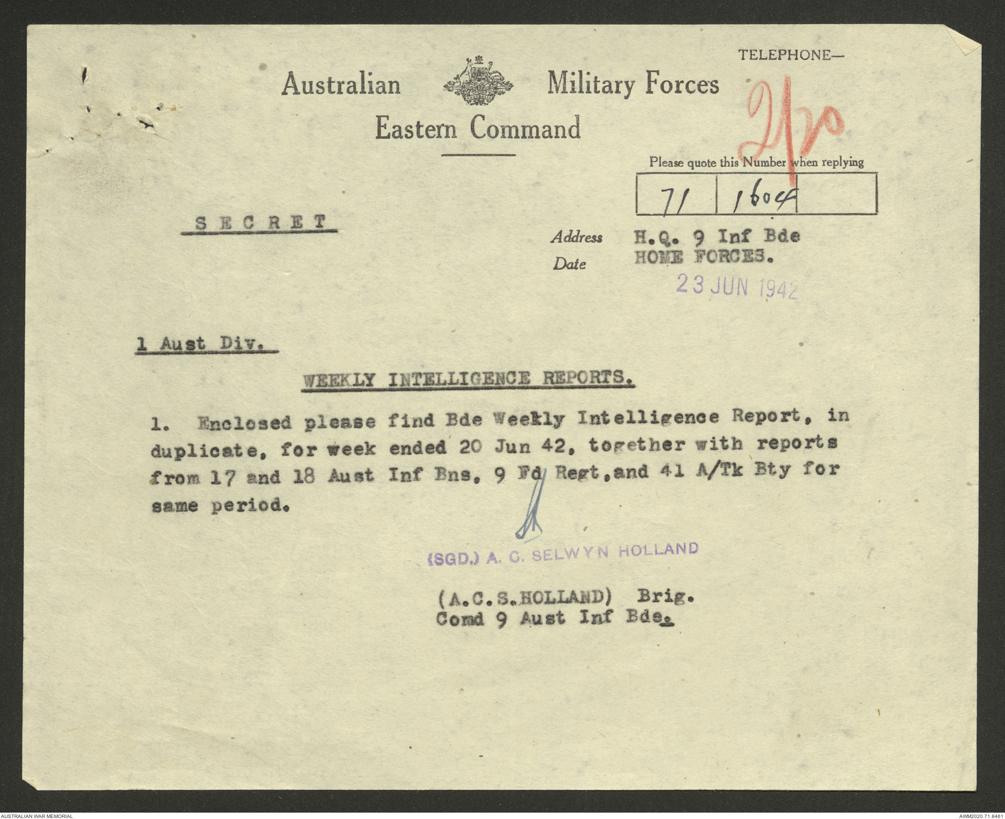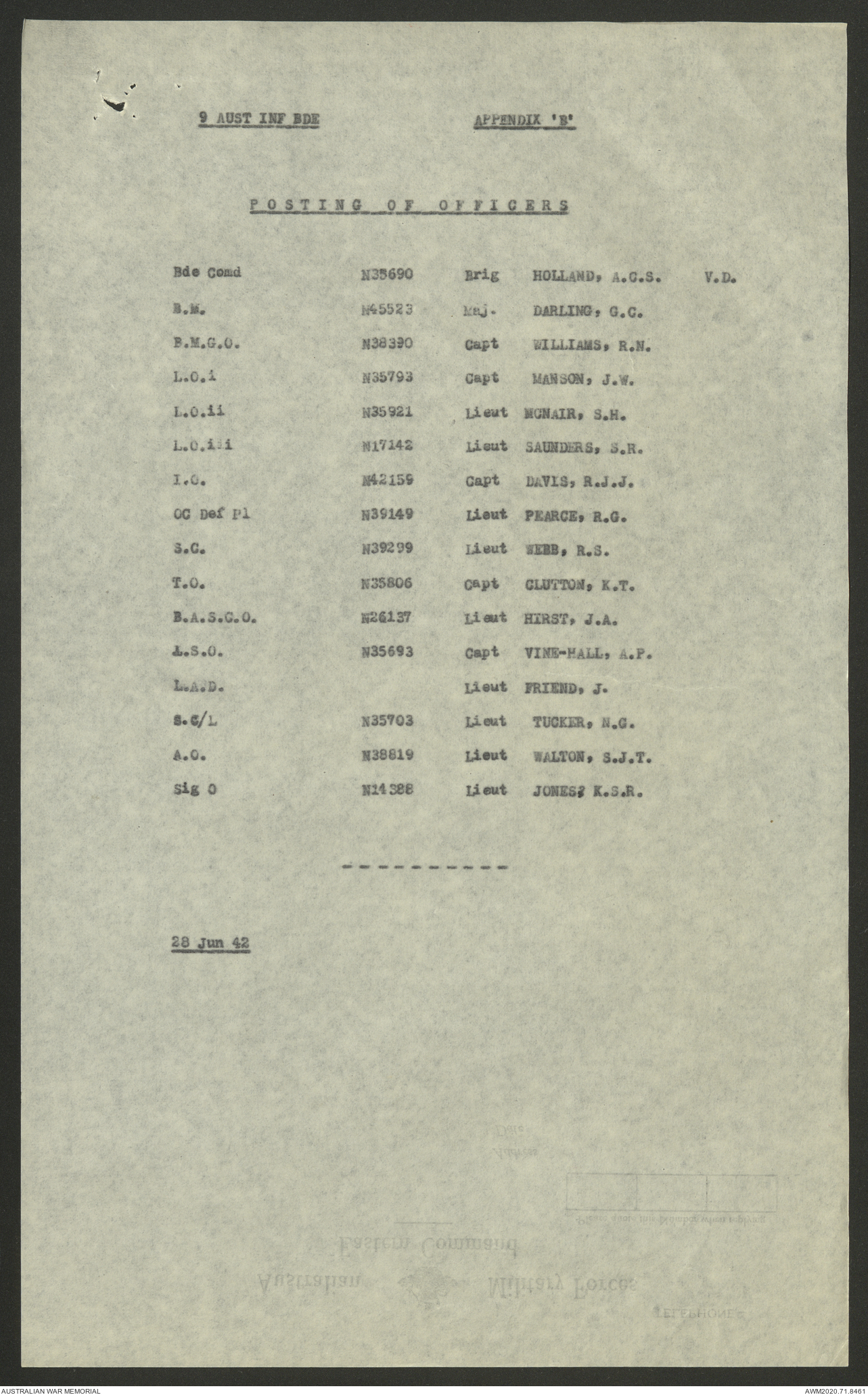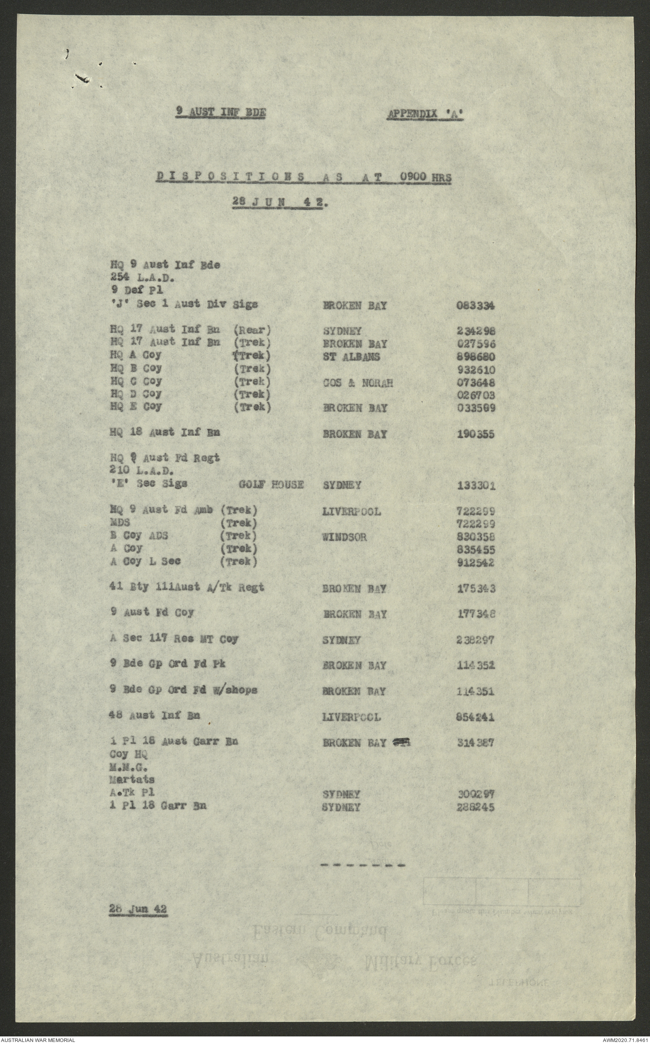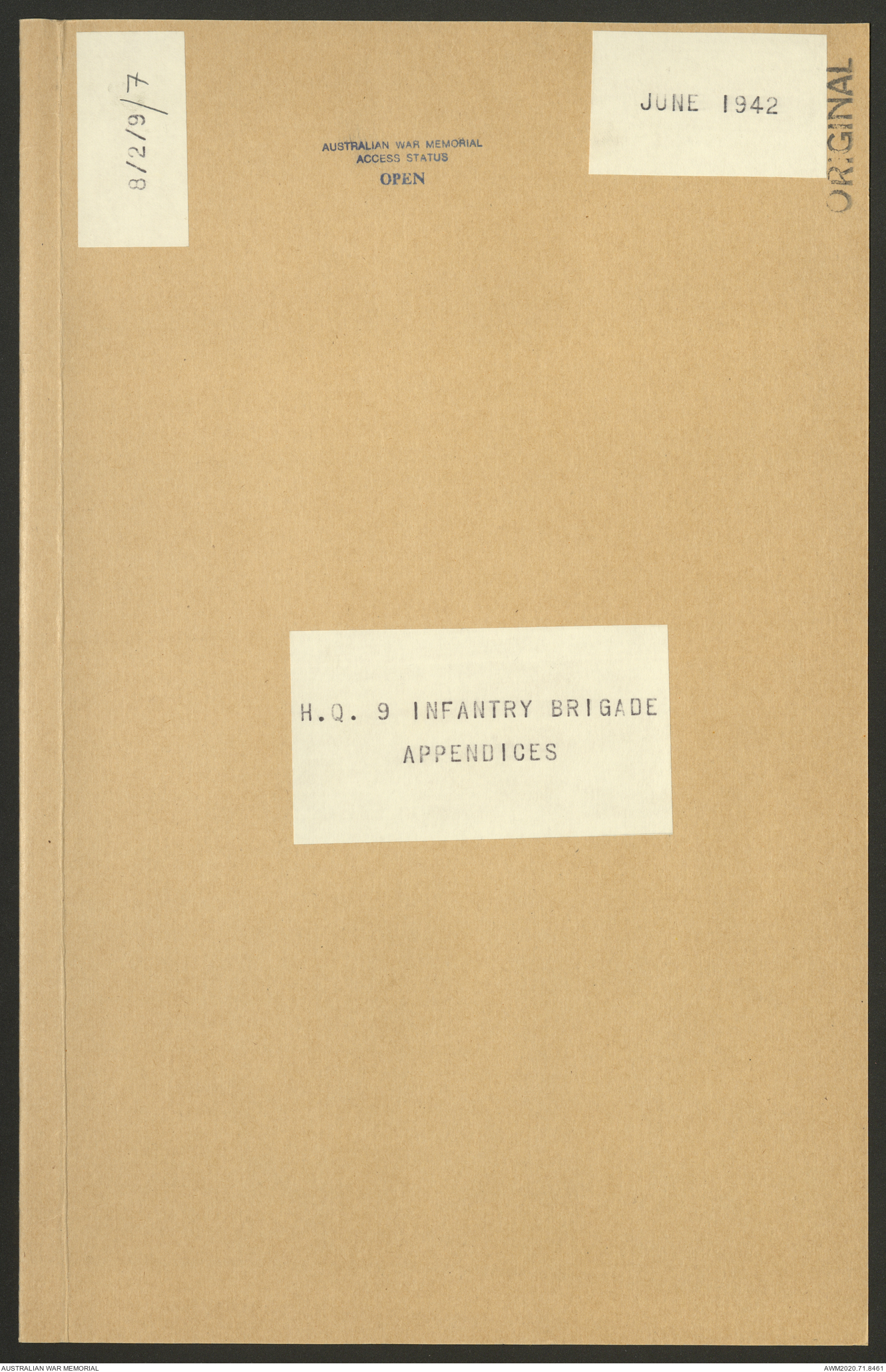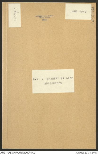 AWM52 8/2/9/7 - [Unit War Diaries, 1939-45 War] HQ 9 Australian Infantry Brigade, June 1942, Appendices
