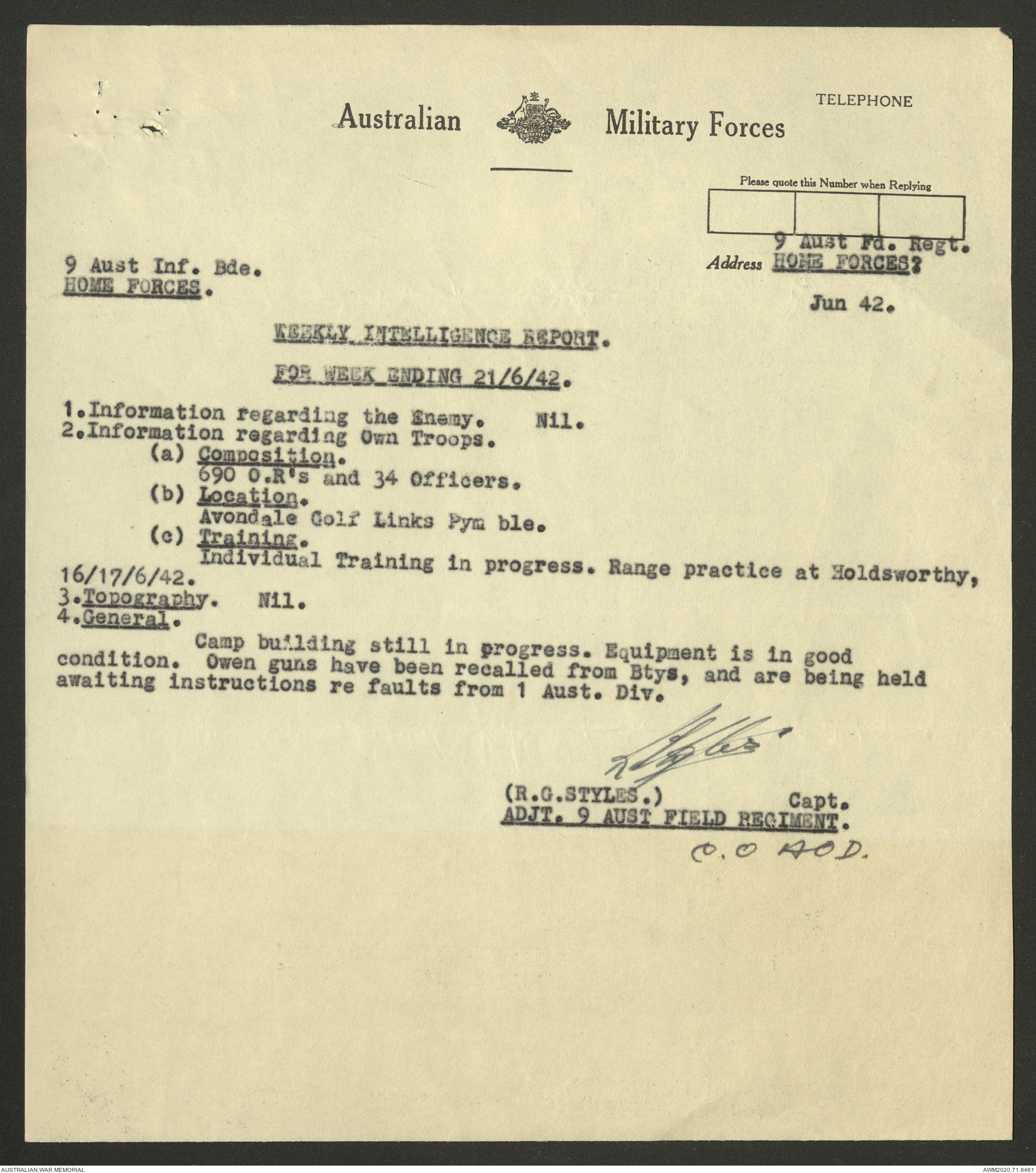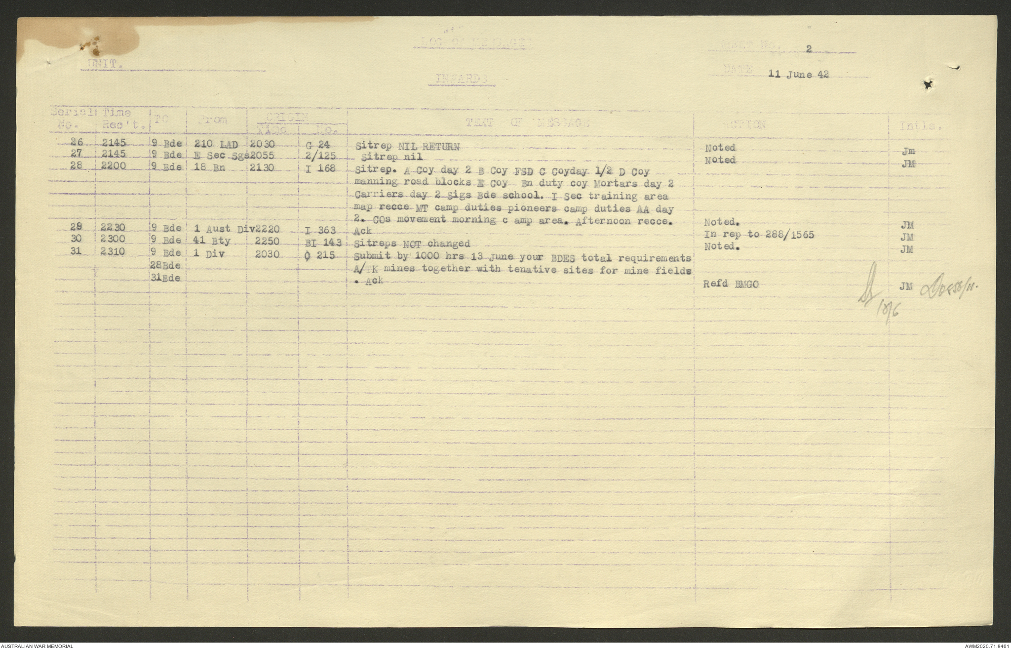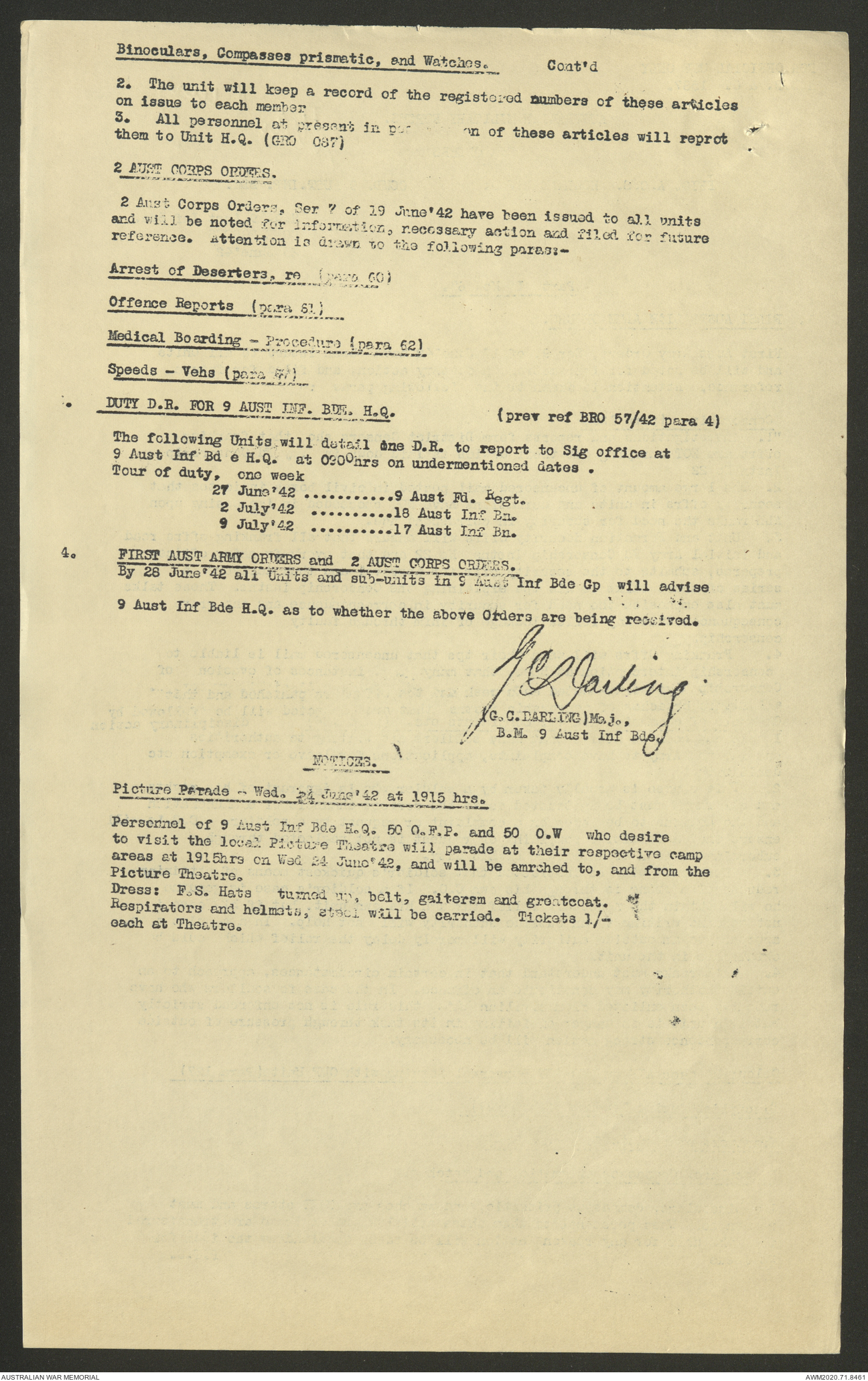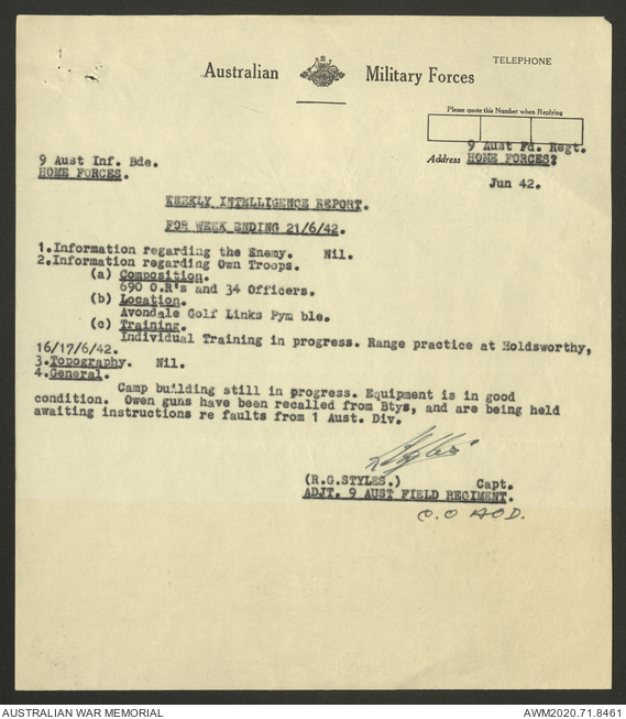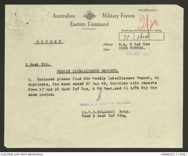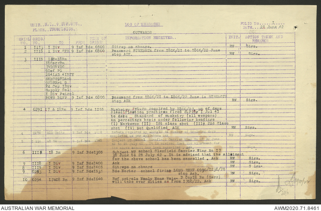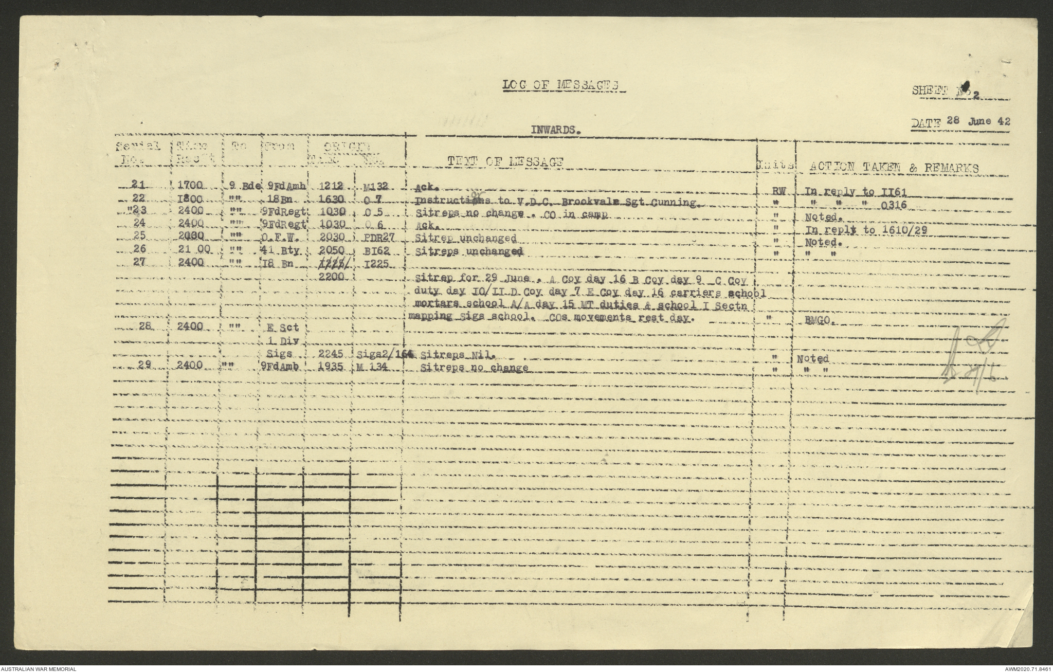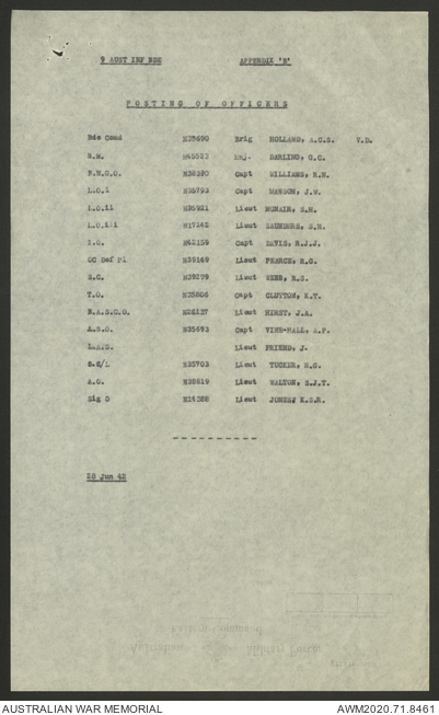 AWM52 8/2/9/7 - [Unit War Diaries, 1939-45 War] HQ 9 Australian Infantry Brigade, June 1942, Appendices