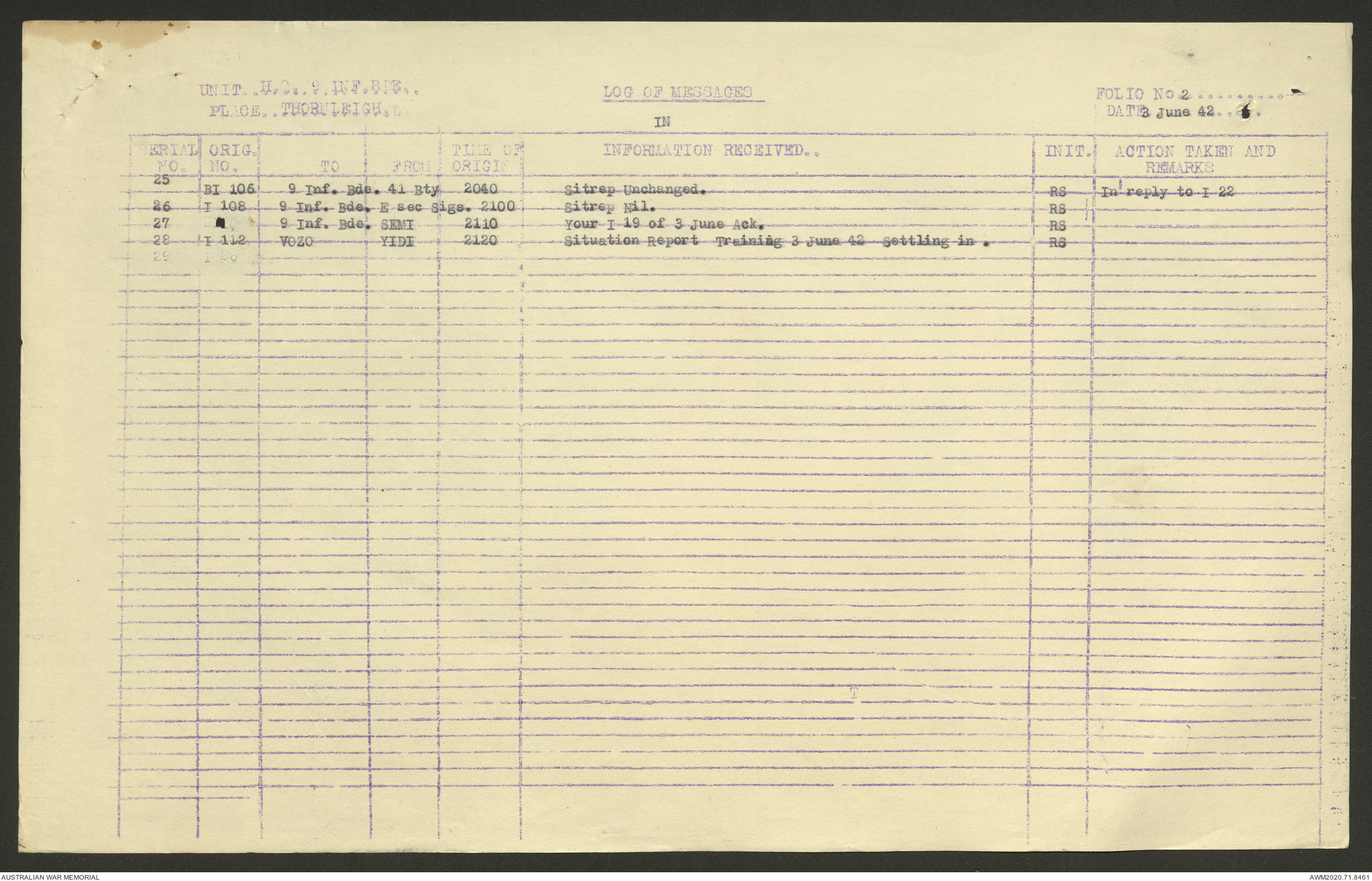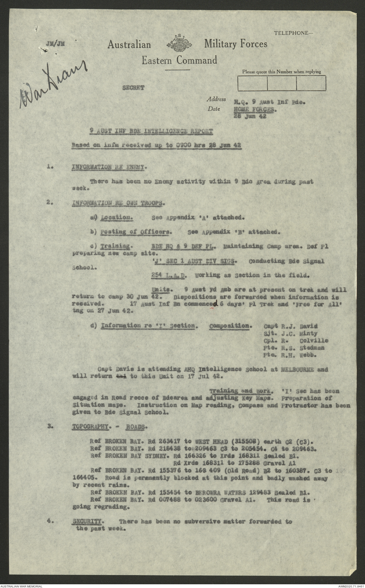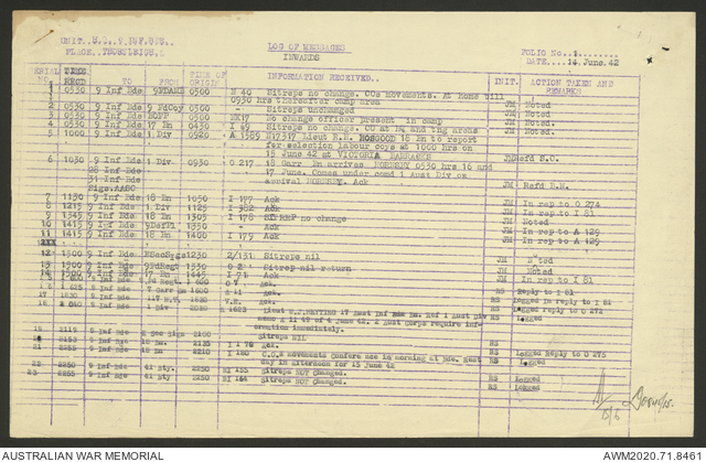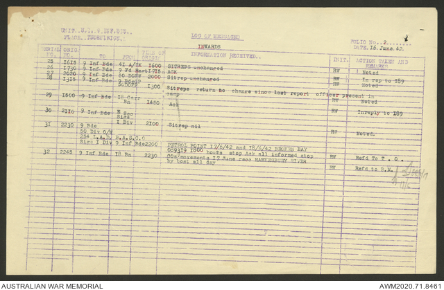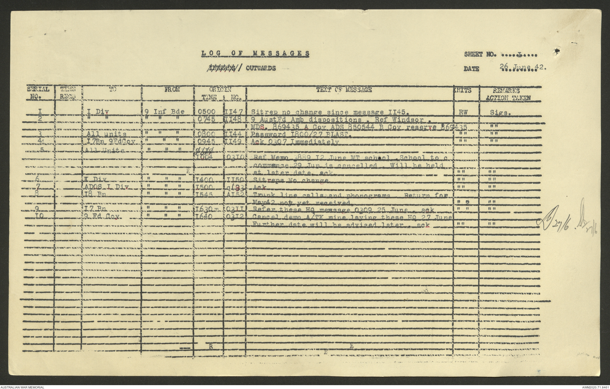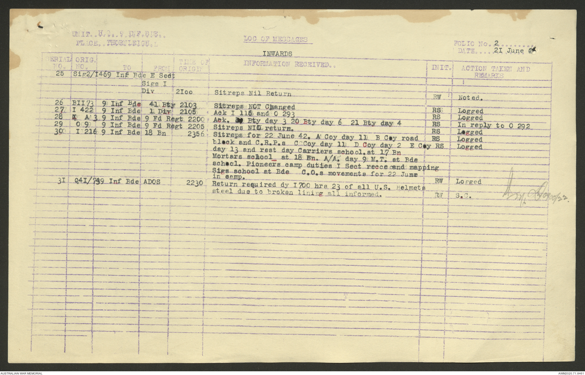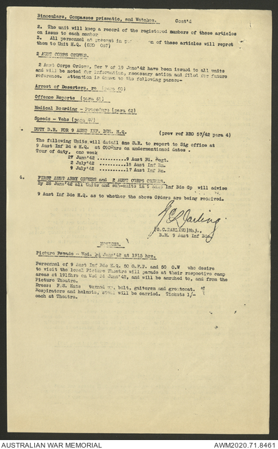 AWM52 8/2/9/7 - [Unit War Diaries, 1939-45 War] HQ 9 Australian Infantry Brigade, June 1942, Appendices