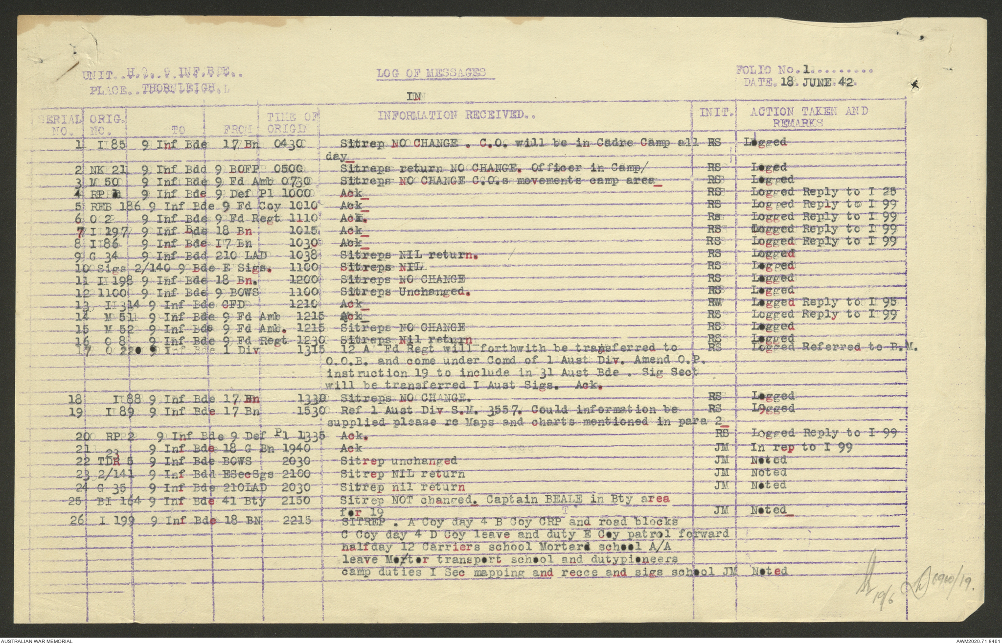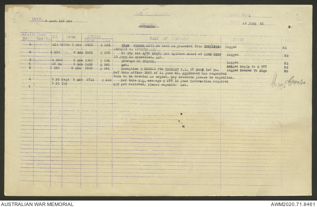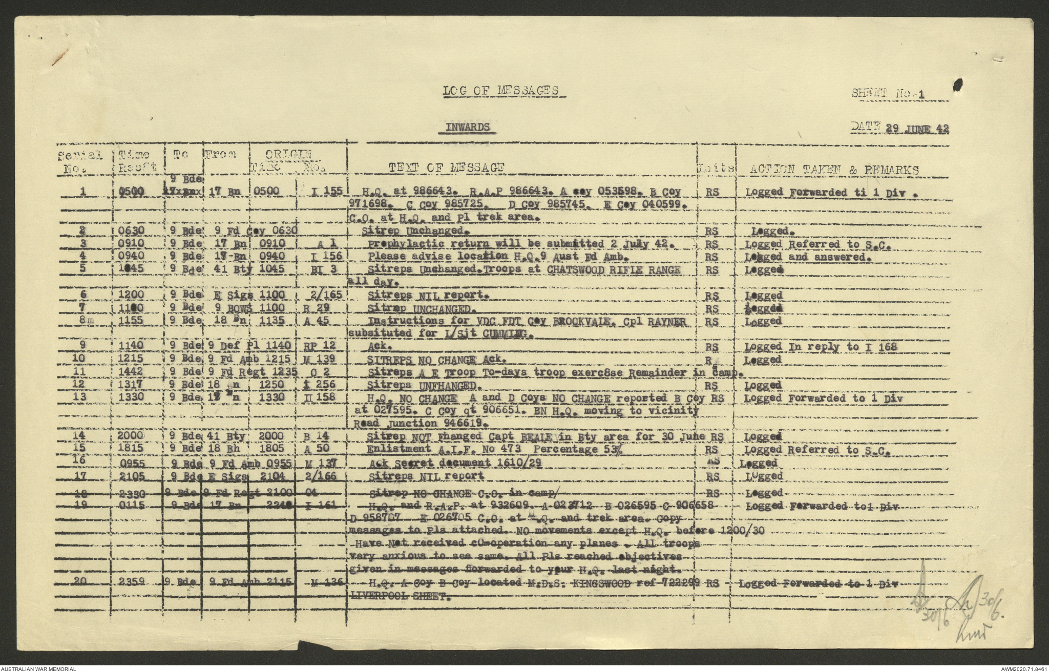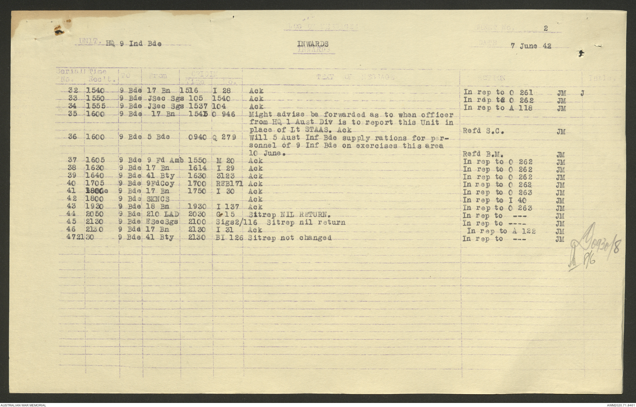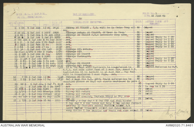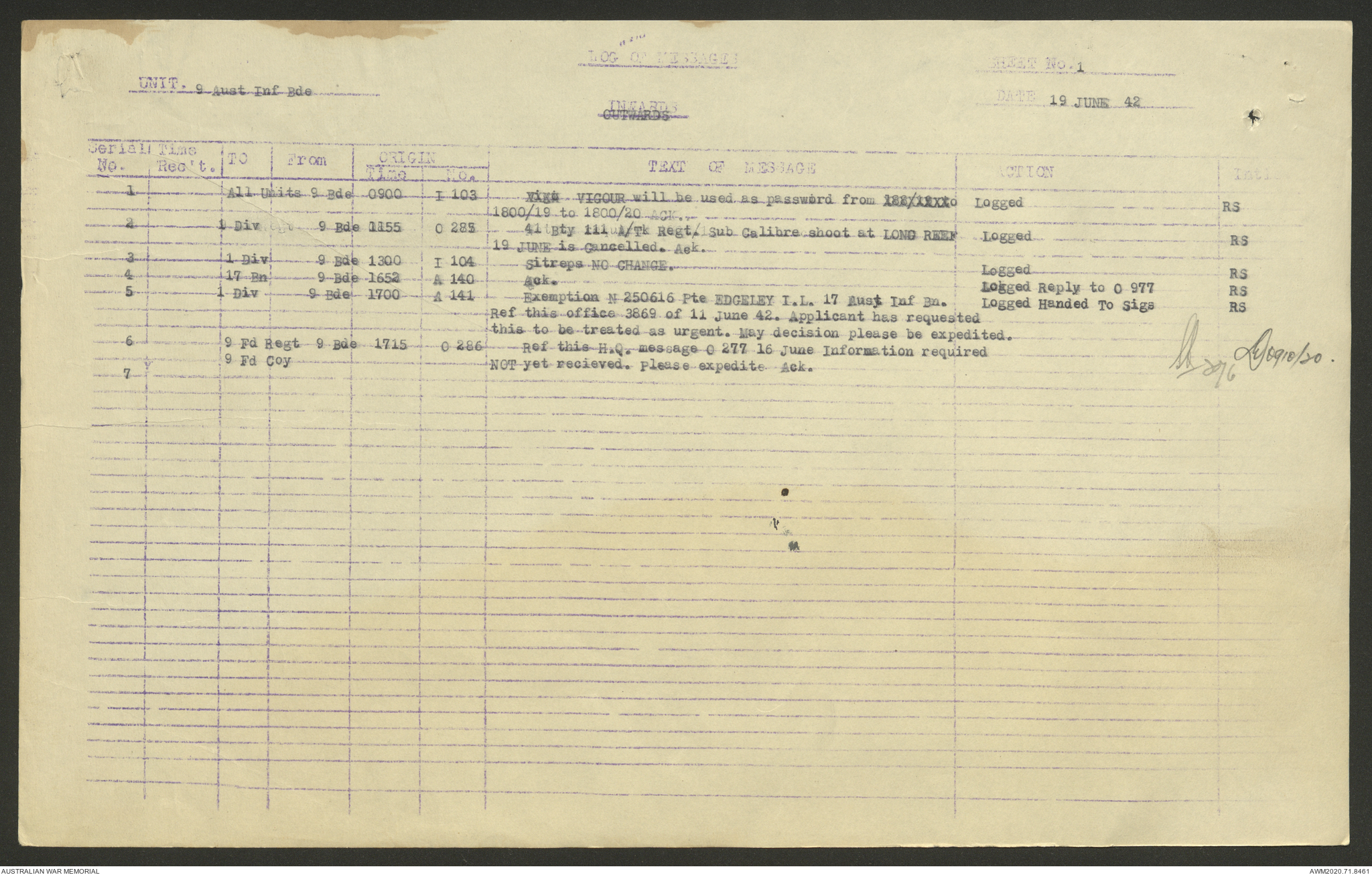 AWM52 8/2/9/7 - [Unit War Diaries, 1939-45 War] HQ 9 Australian Infantry Brigade, June 1942, Appendices