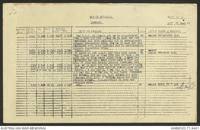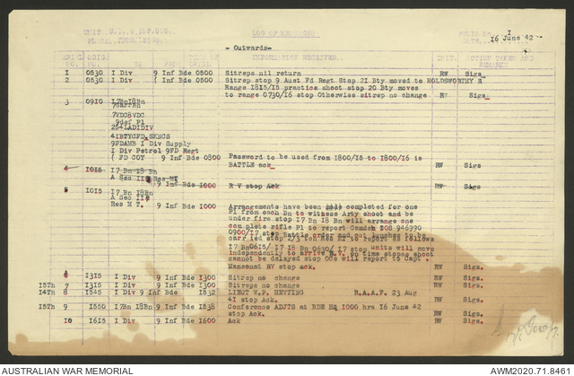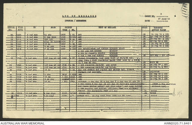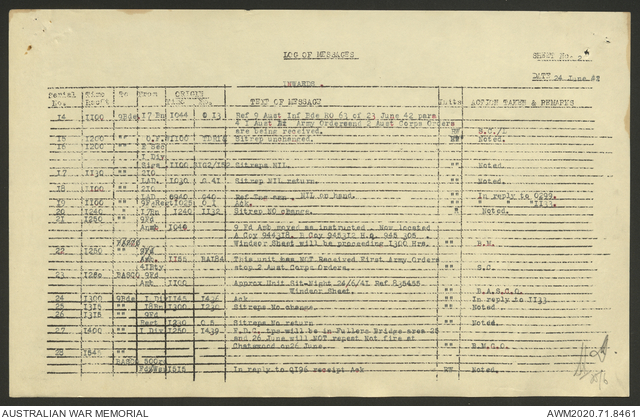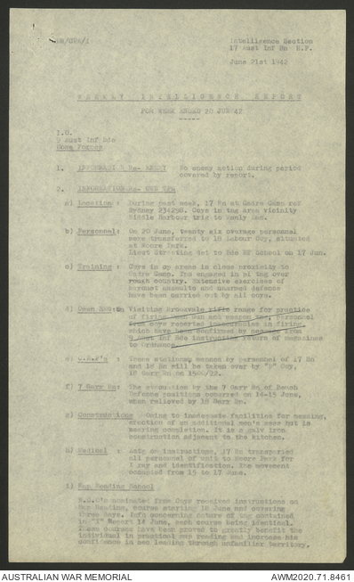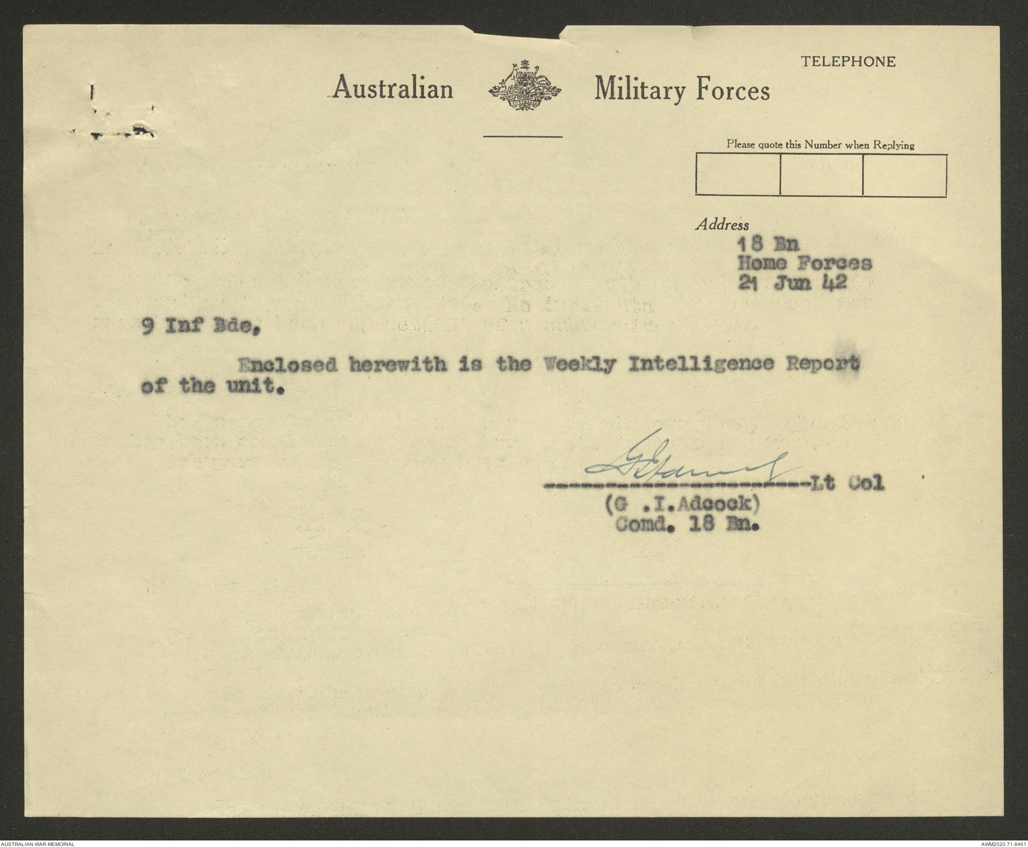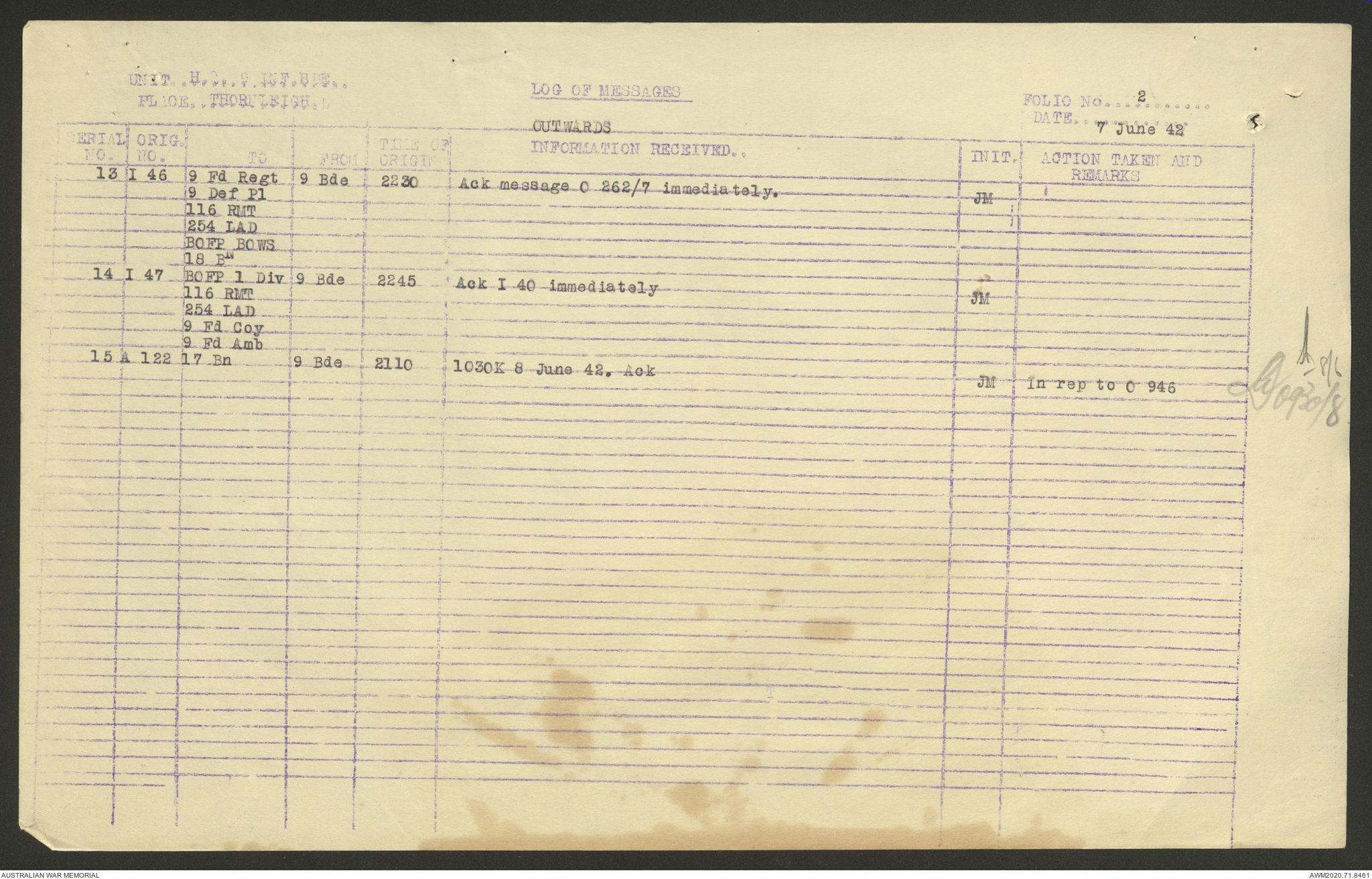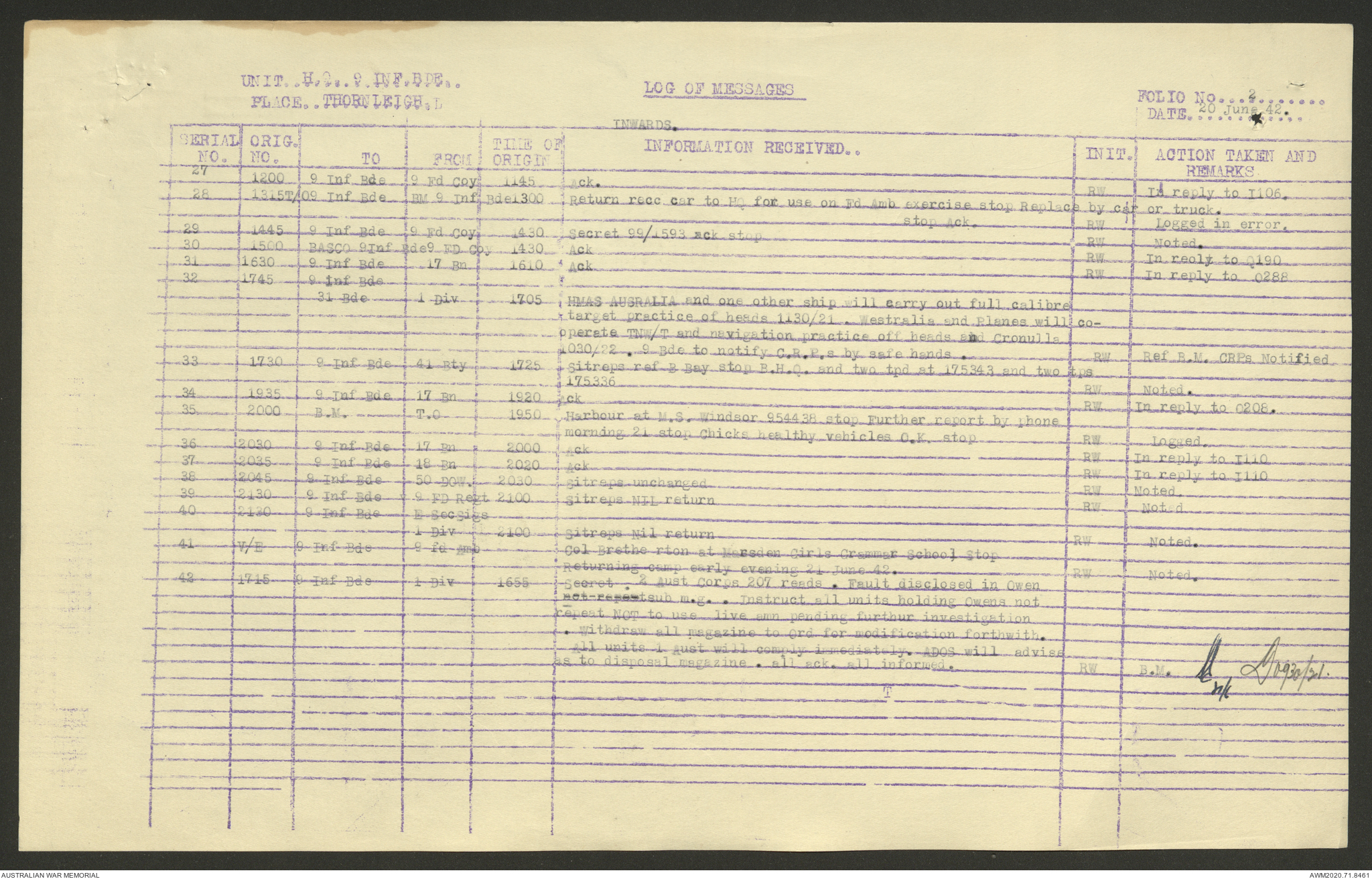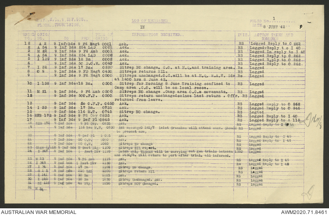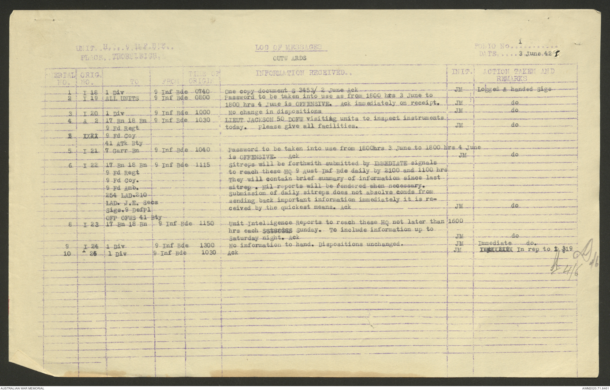 AWM52 8/2/9/7 - [Unit War Diaries, 1939-45 War] HQ 9 Australian Infantry Brigade, June 1942, Appendices