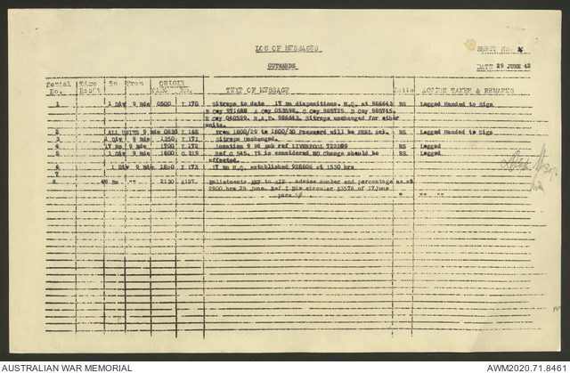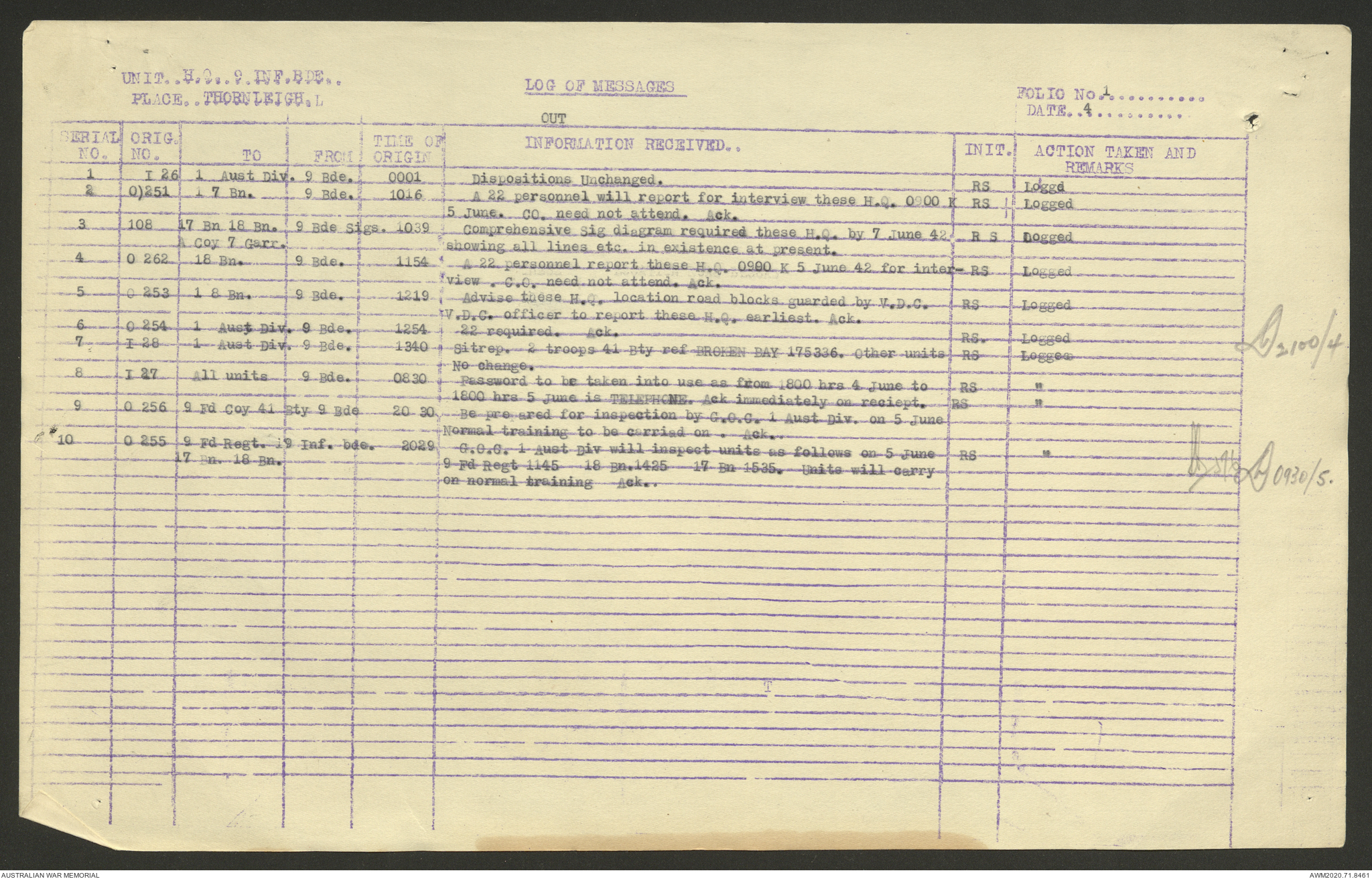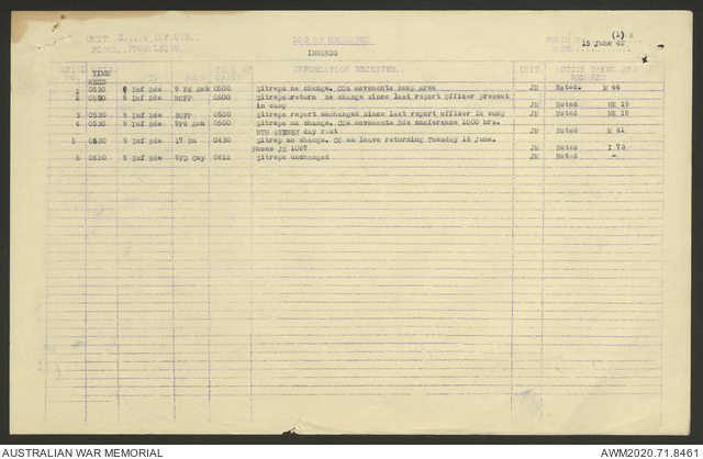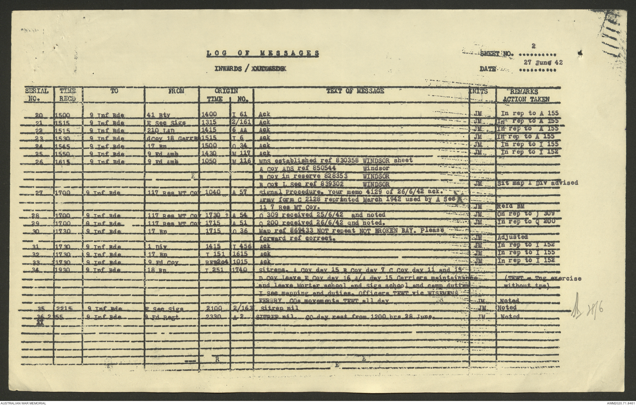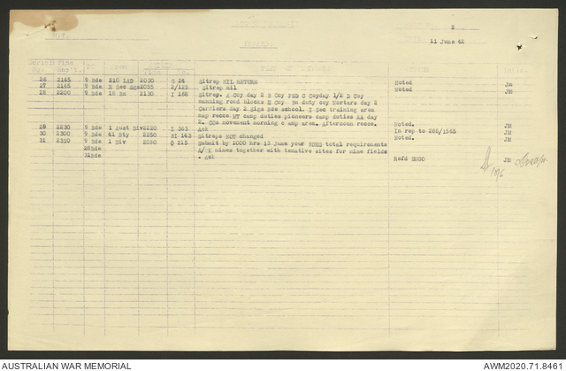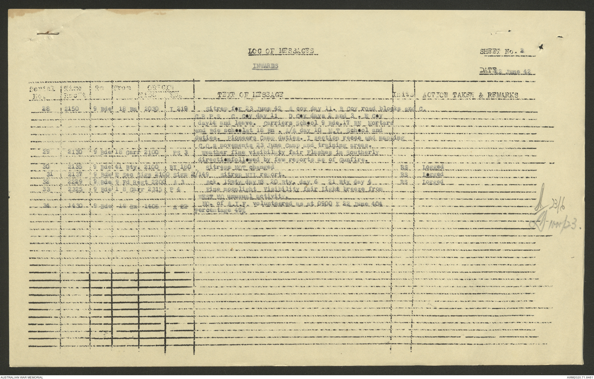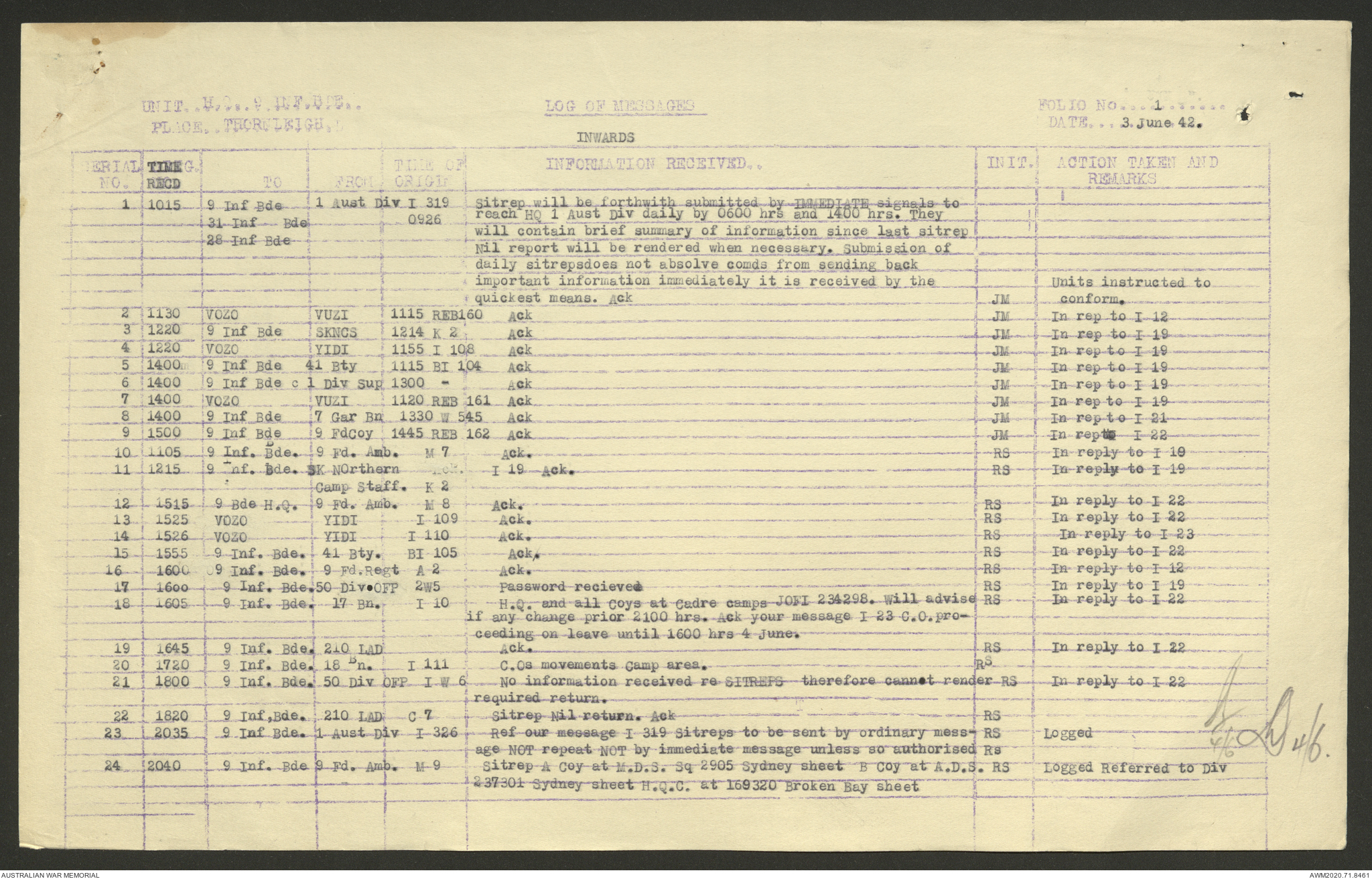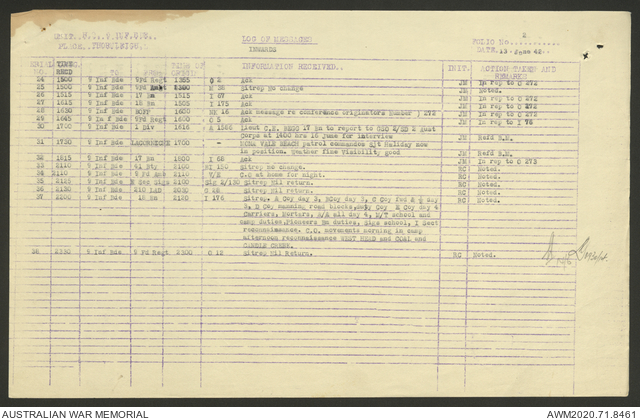 AWM52 8/2/9/7 - [Unit War Diaries, 1939-45 War] HQ 9 Australian Infantry Brigade, June 1942, Appendices