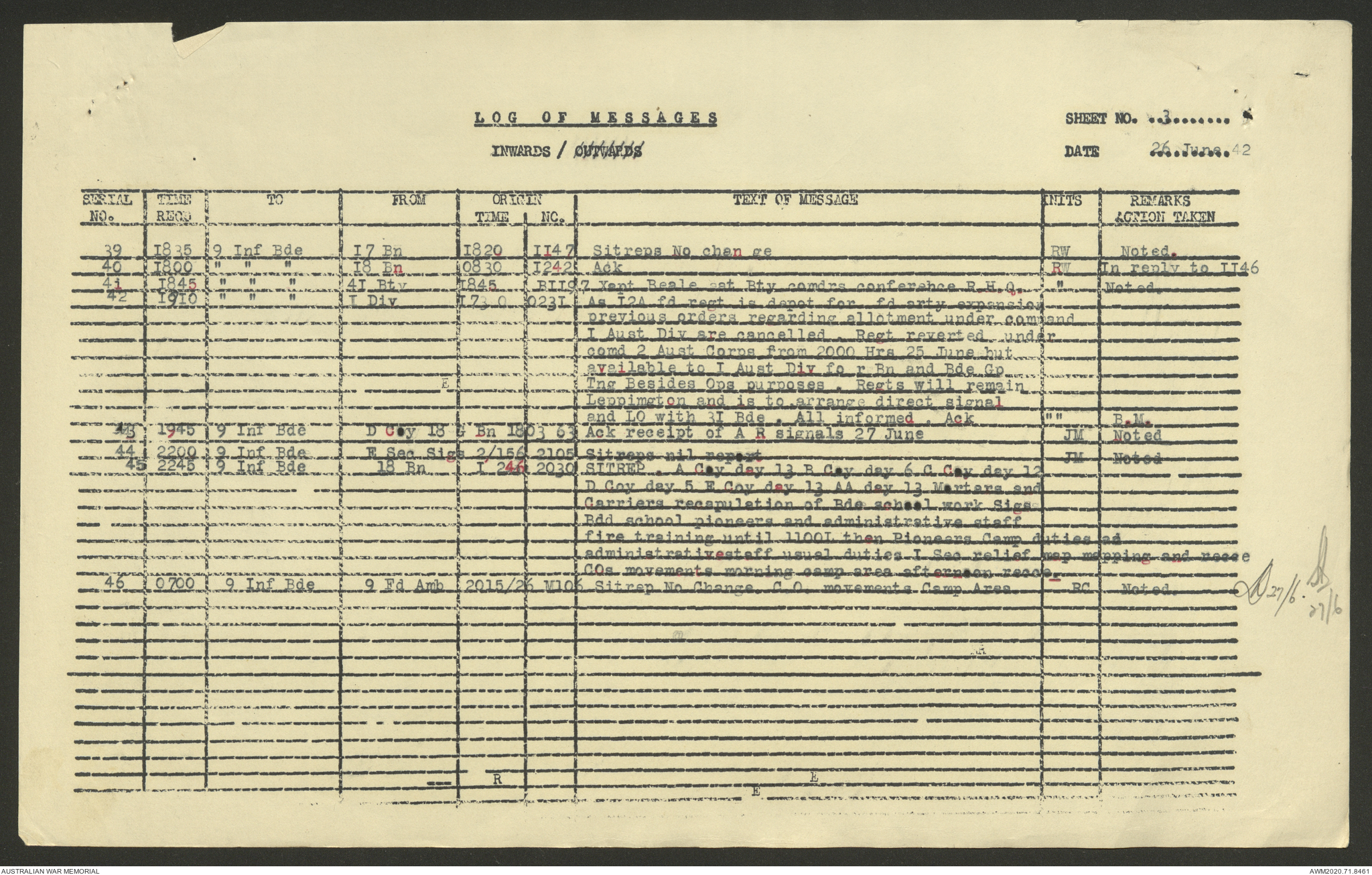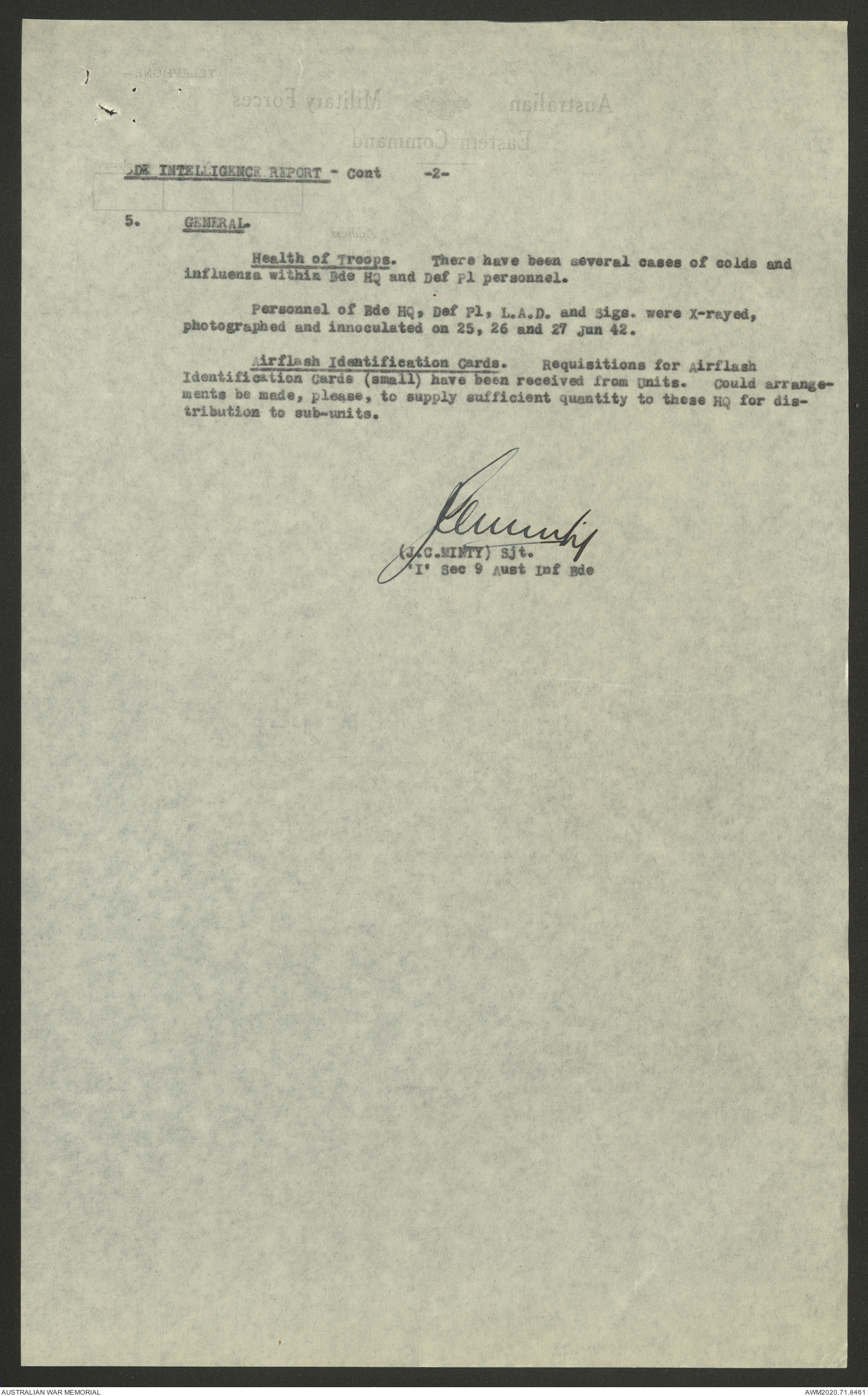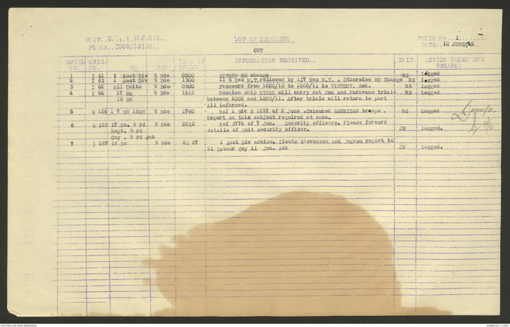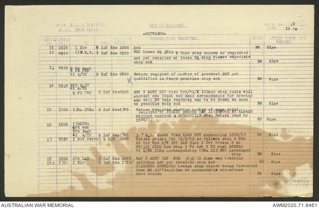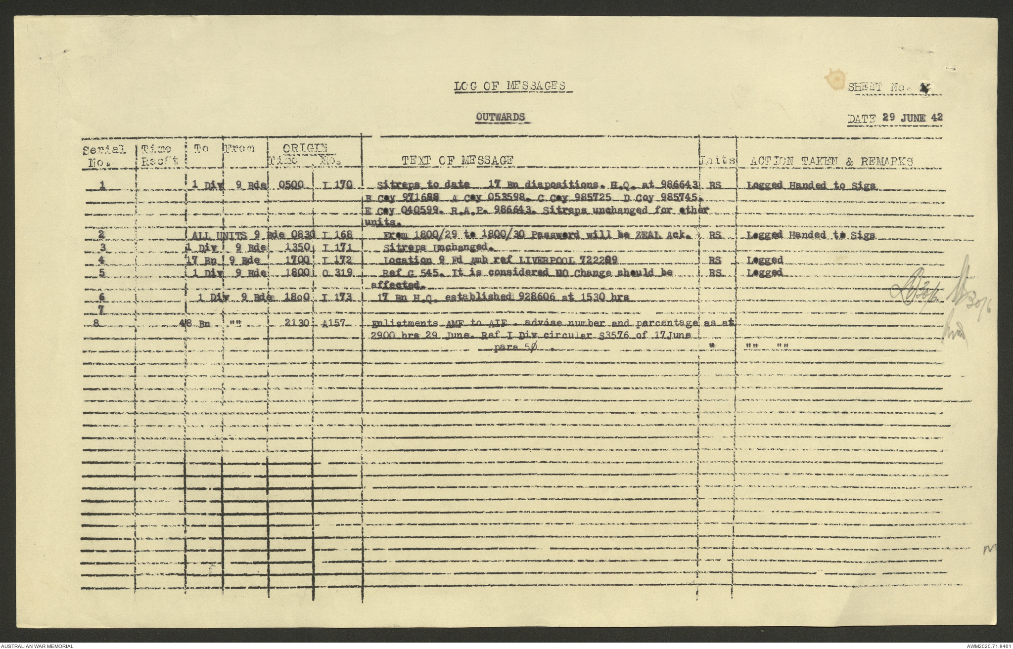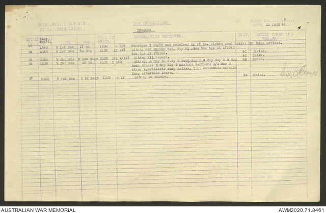 AWM52 8/2/9/7 - [Unit War Diaries, 1939-45 War] HQ 9 Australian Infantry Brigade, June 1942, Appendices