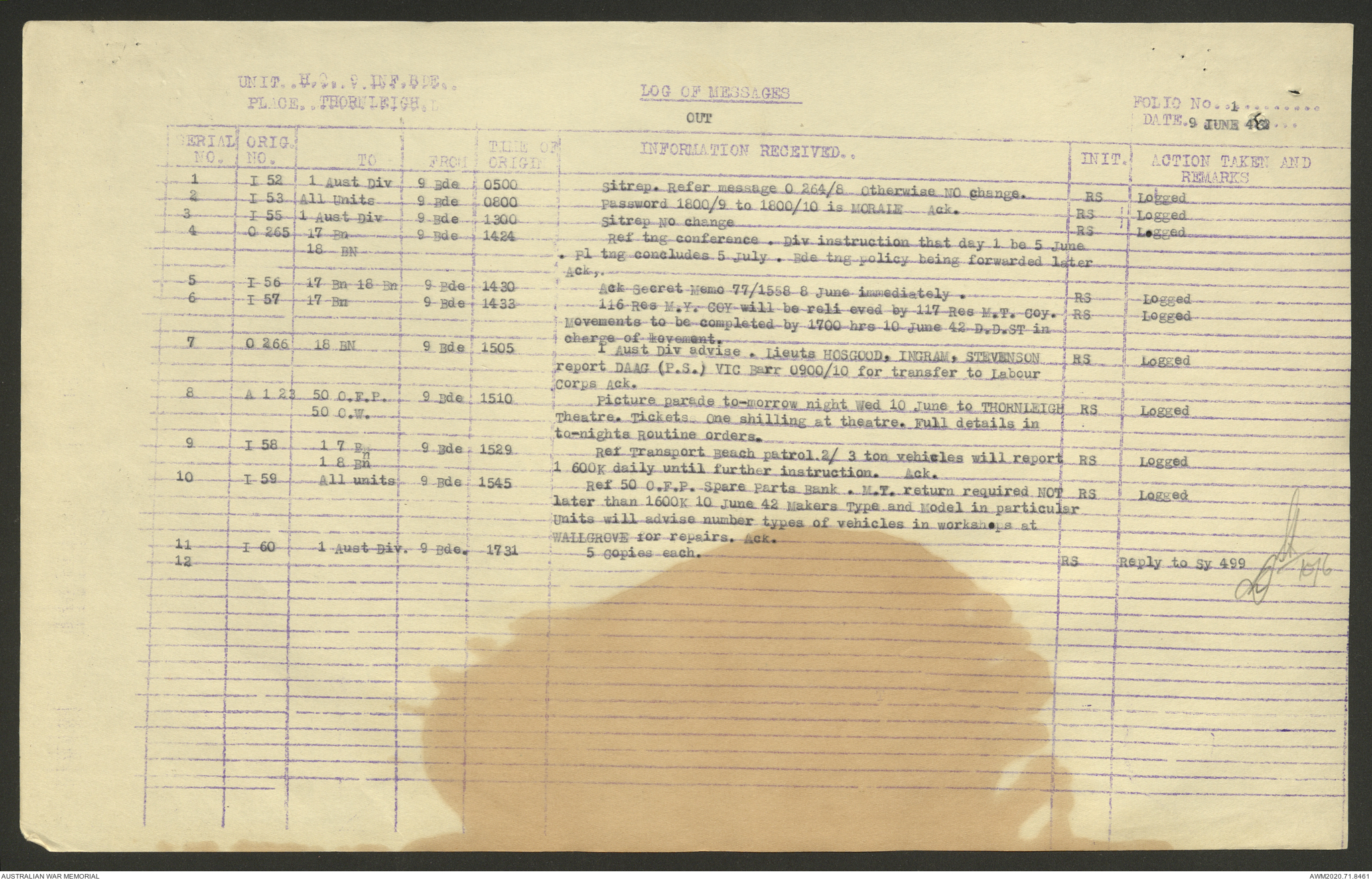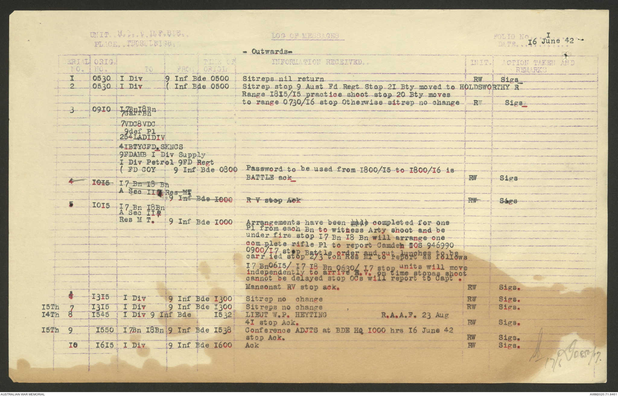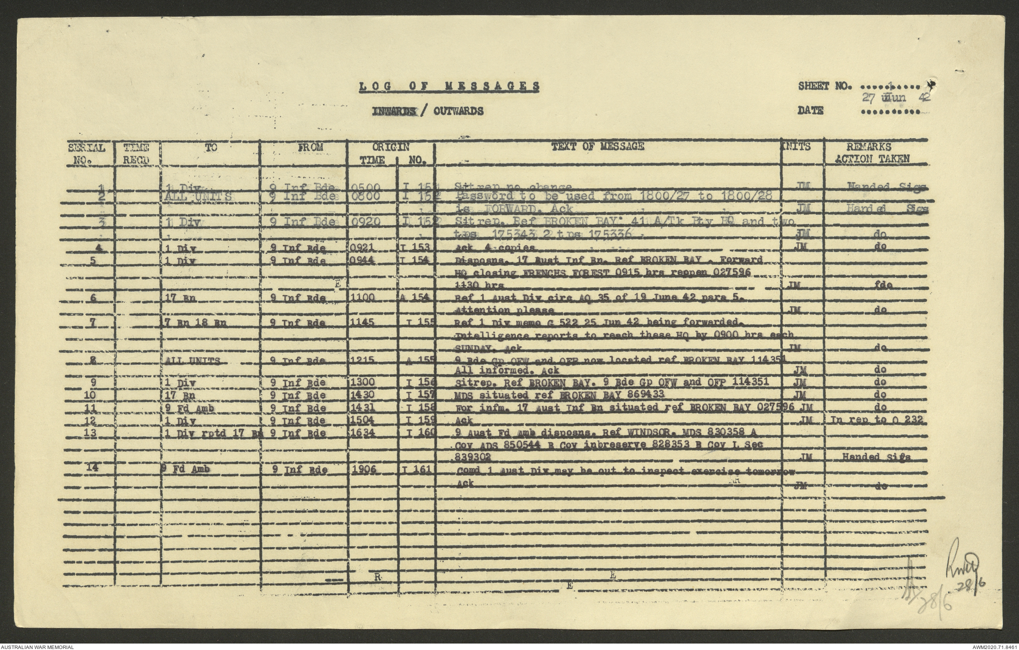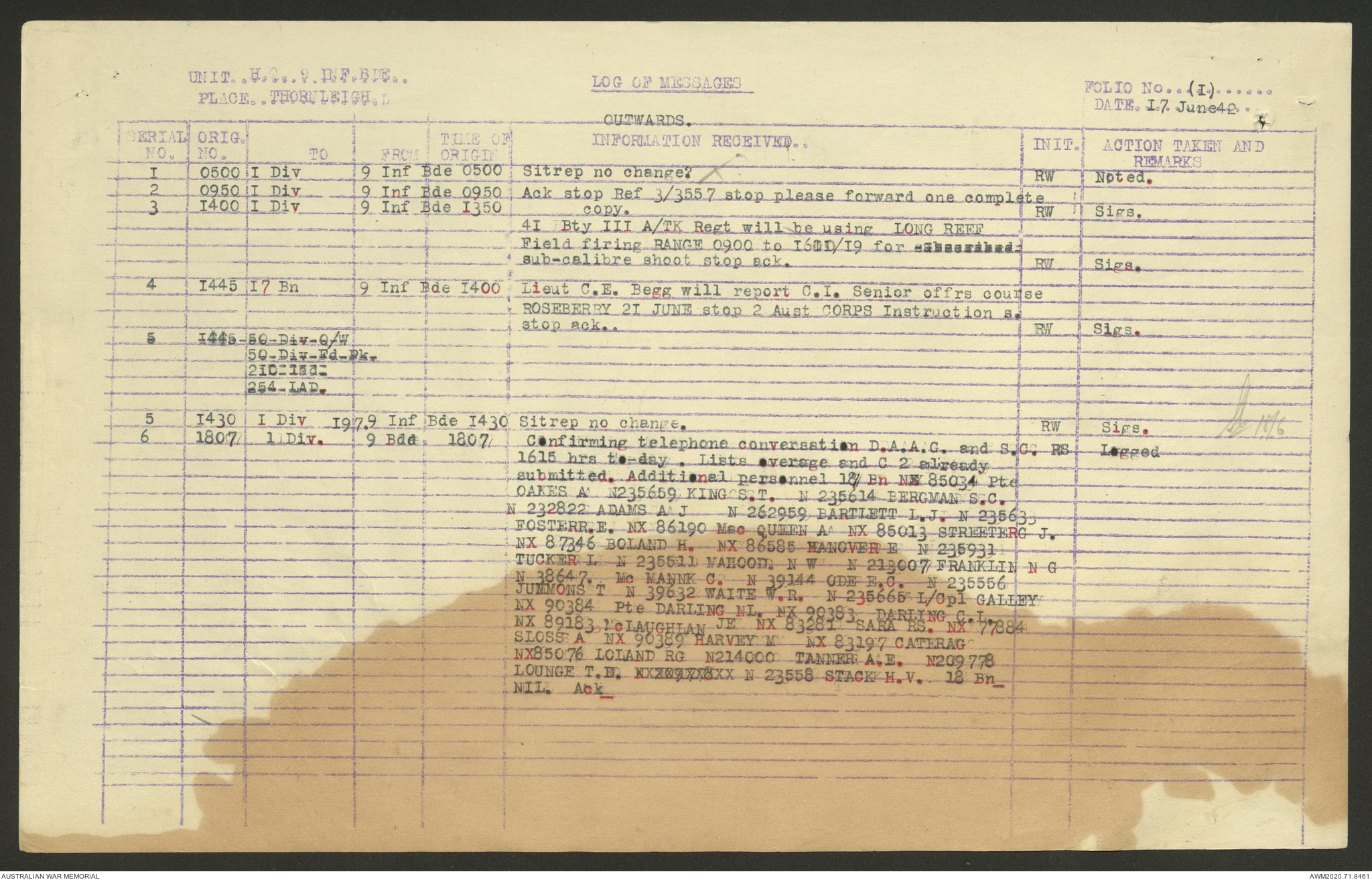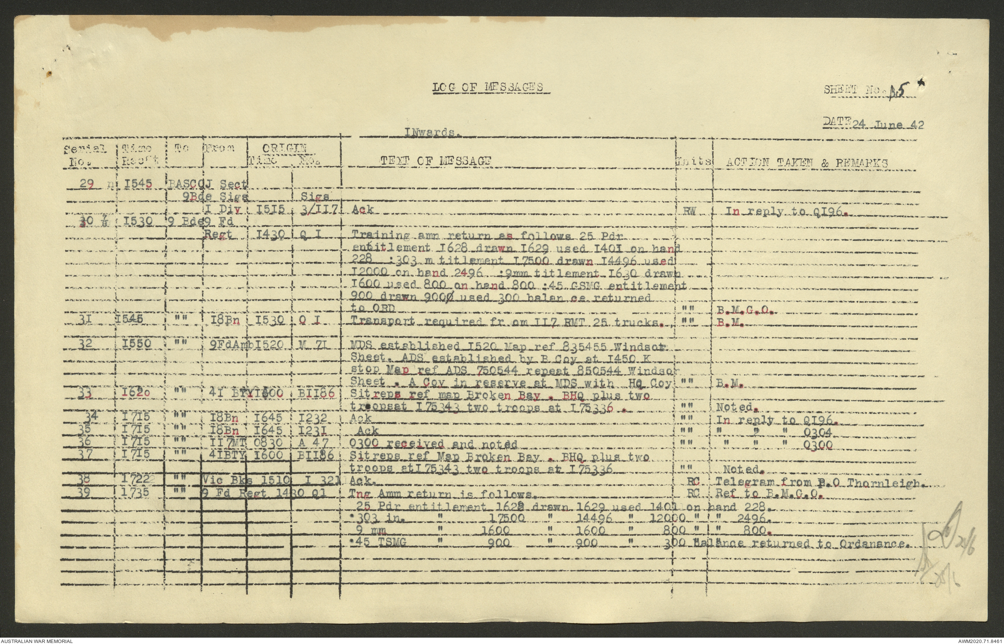 AWM52 8/2/9/7 - [Unit War Diaries, 1939-45 War] HQ 9 Australian Infantry Brigade, June 1942, Appendices