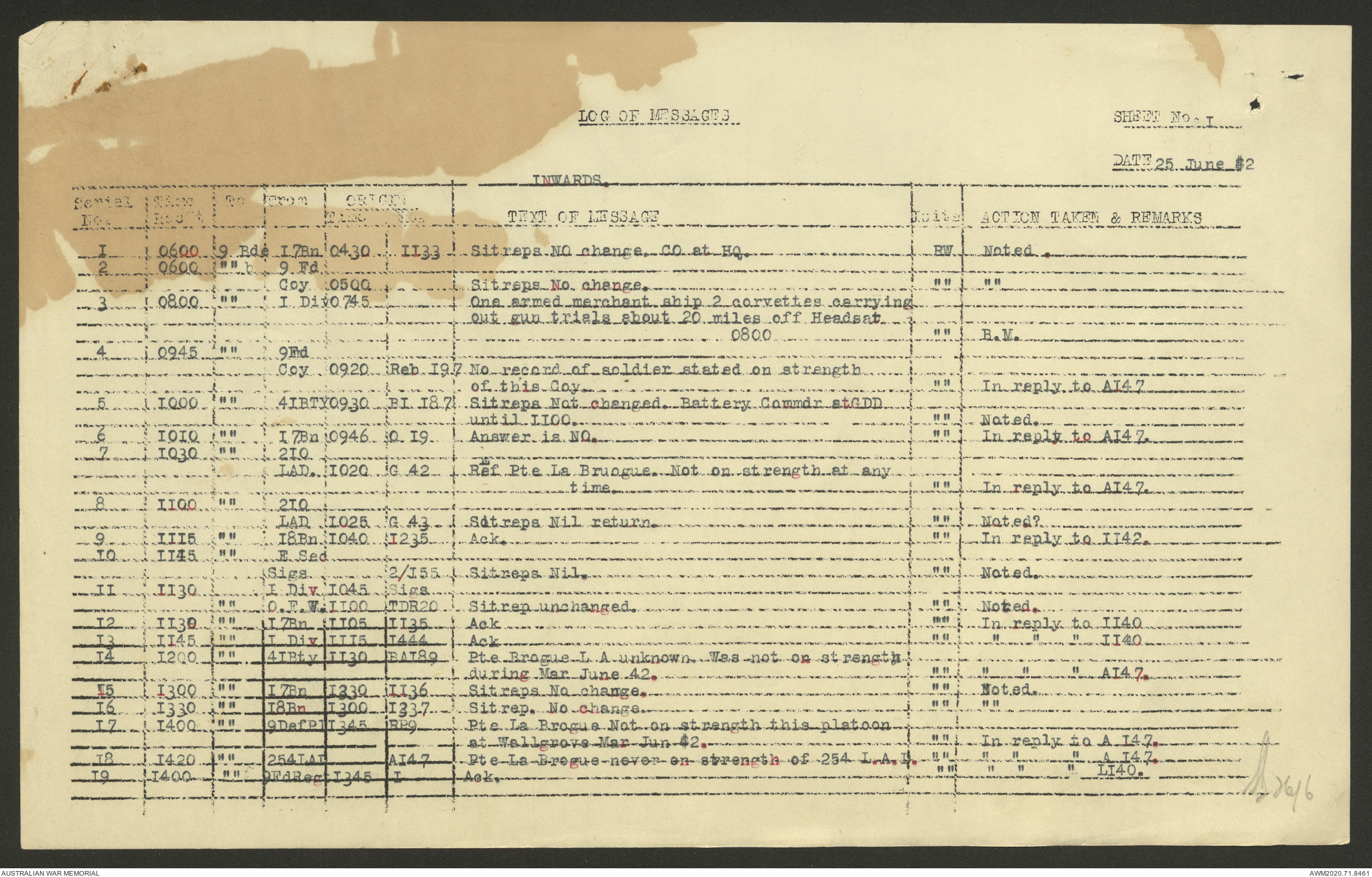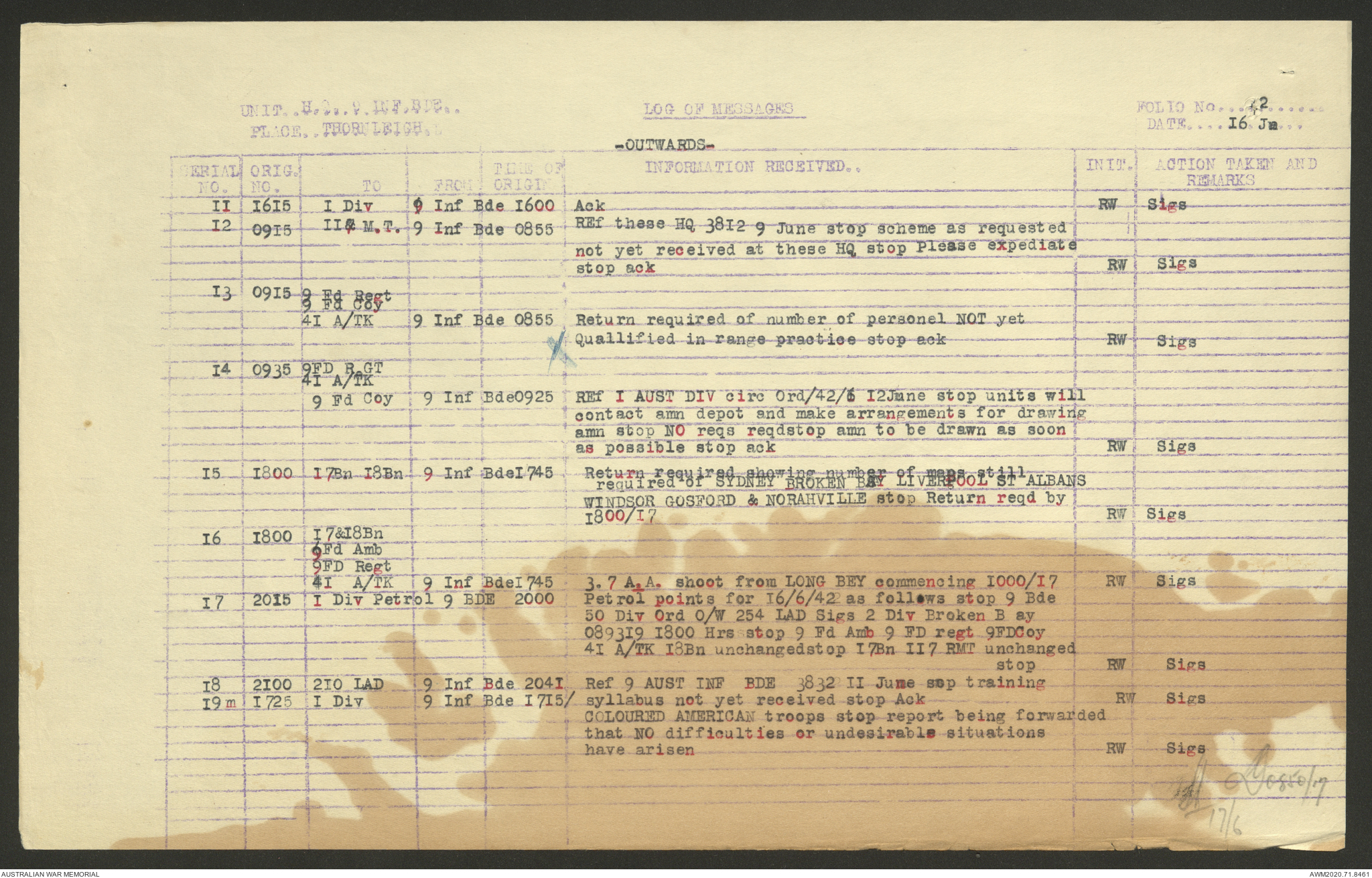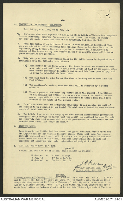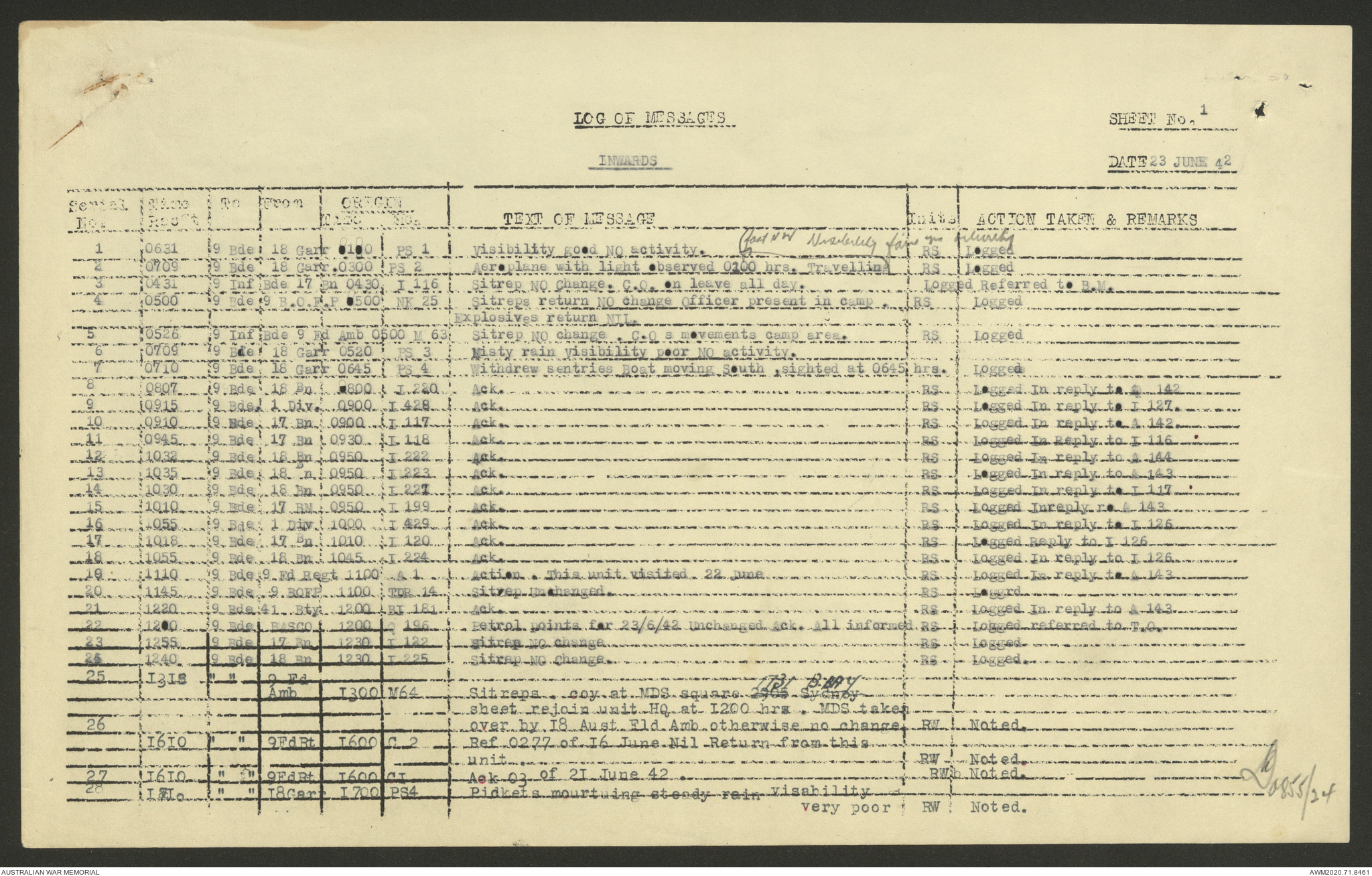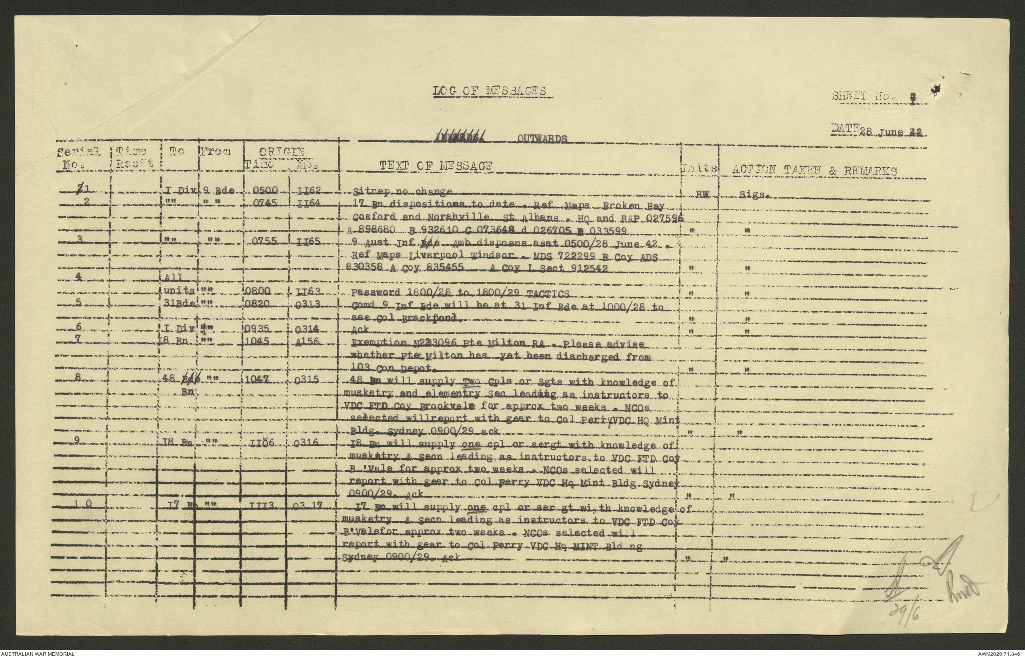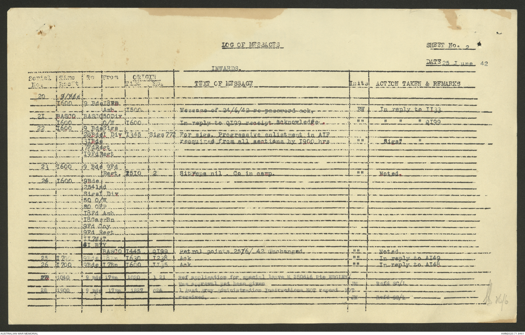 AWM52 8/2/9/7 - [Unit War Diaries, 1939-45 War] HQ 9 Australian Infantry Brigade, June 1942, Appendices