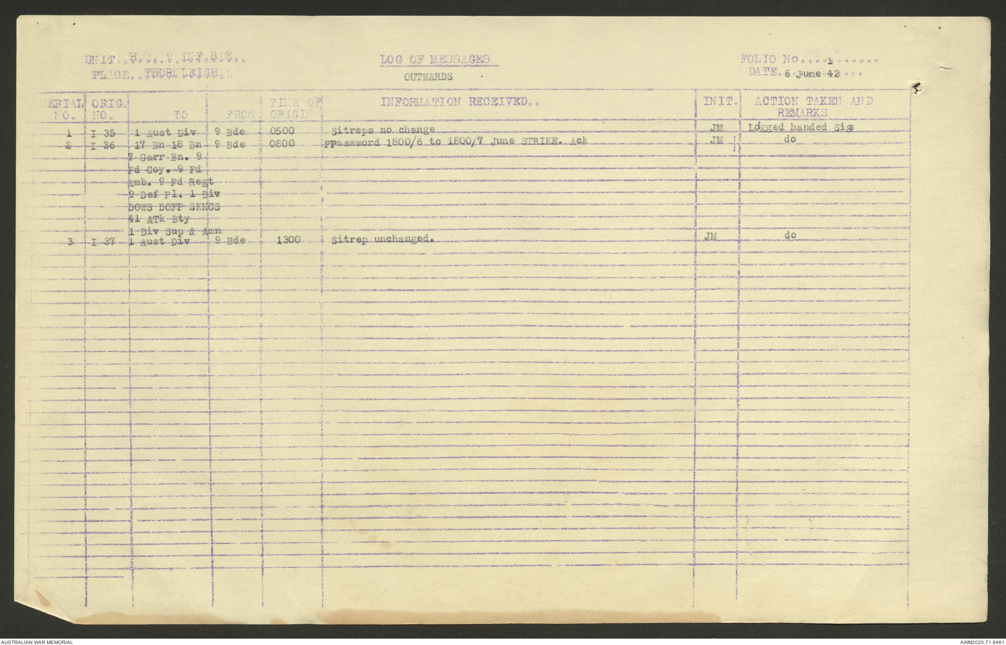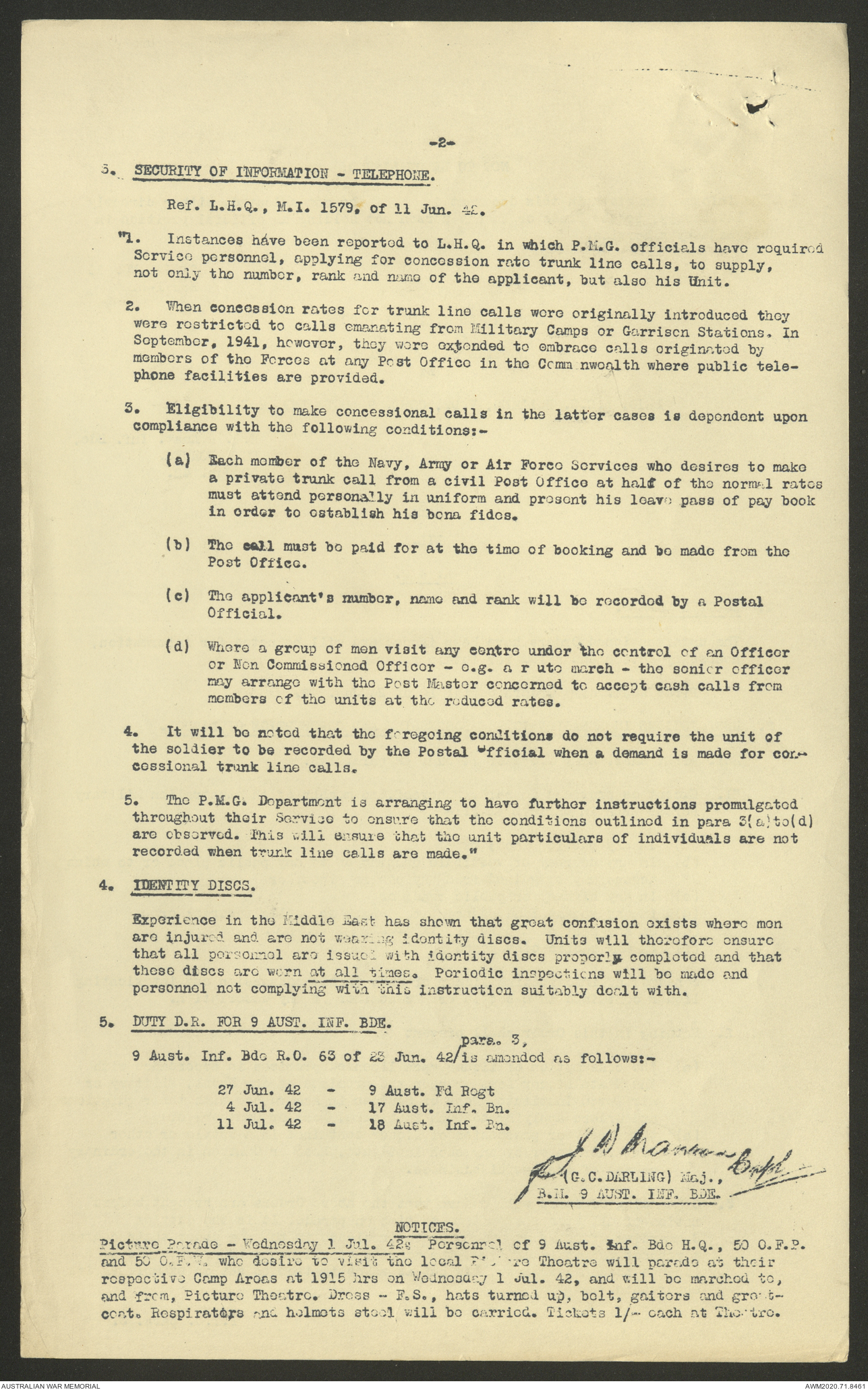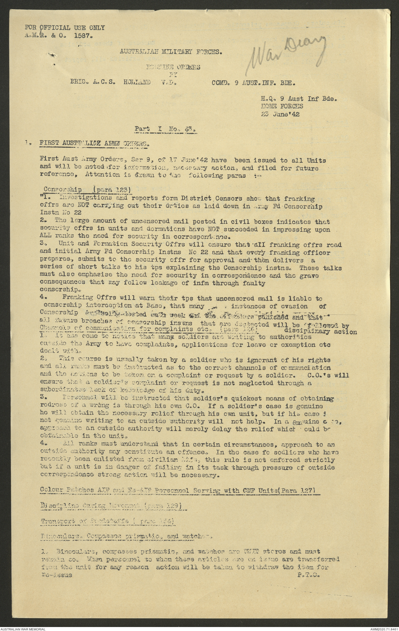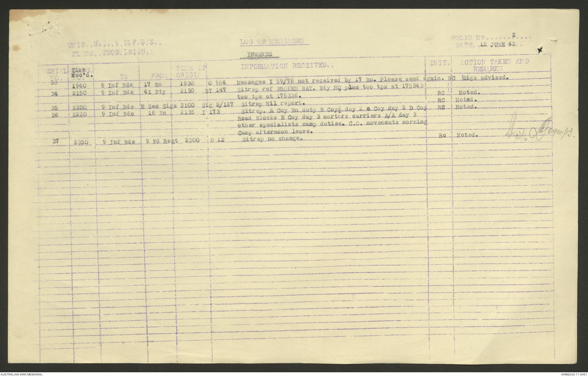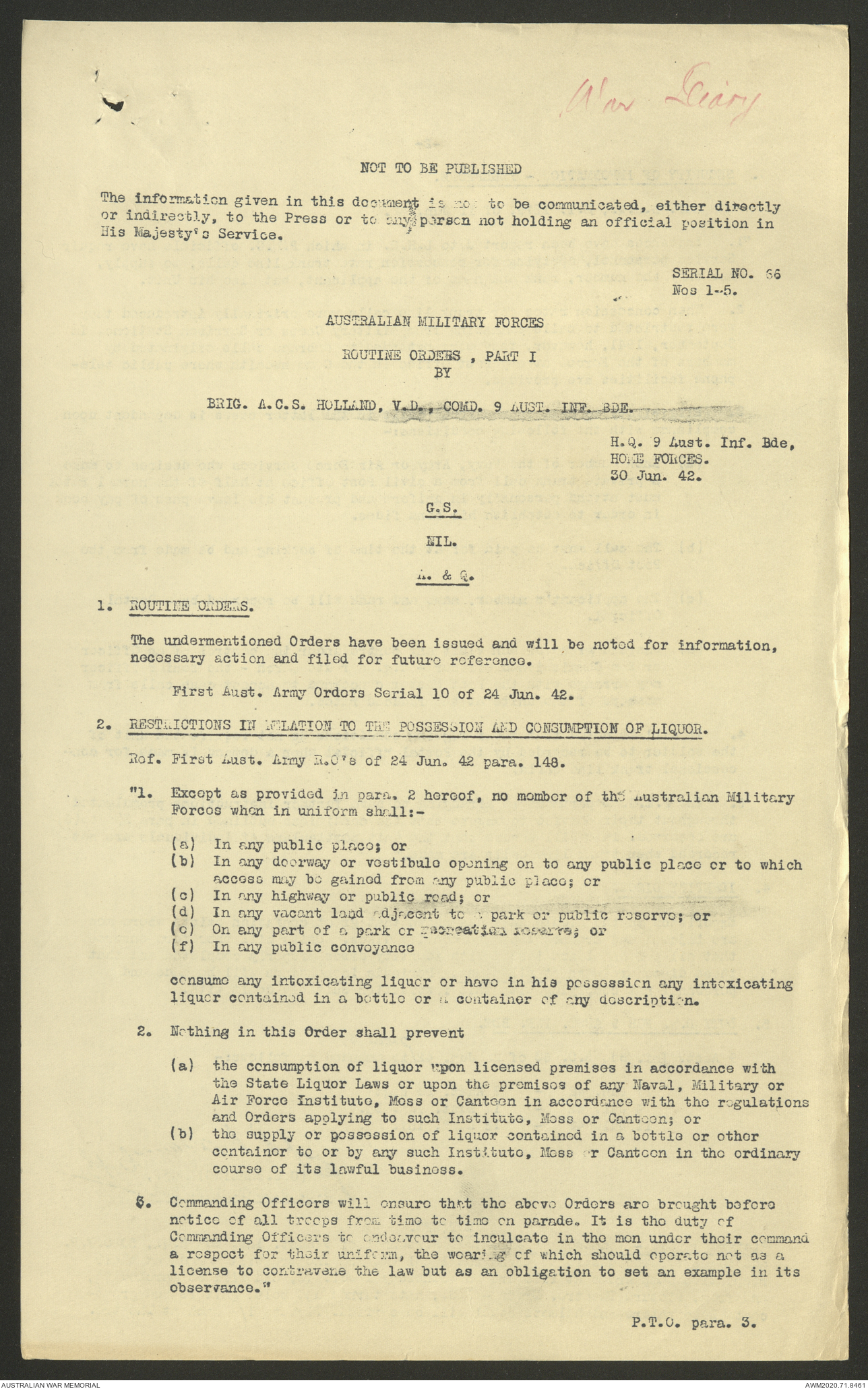 AWM52 8/2/9/7 - [Unit War Diaries, 1939-45 War] HQ 9 Australian Infantry Brigade, June 1942, Appendices