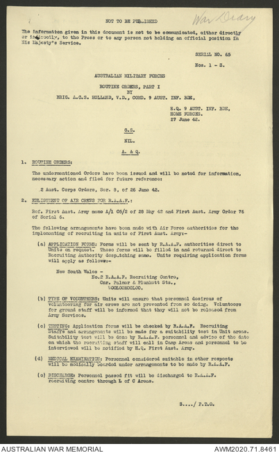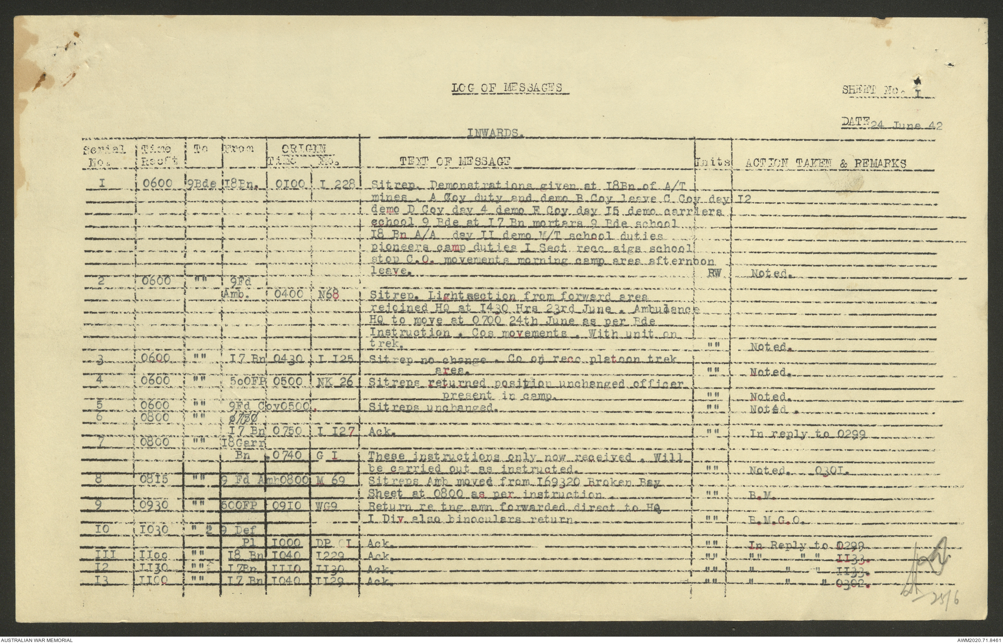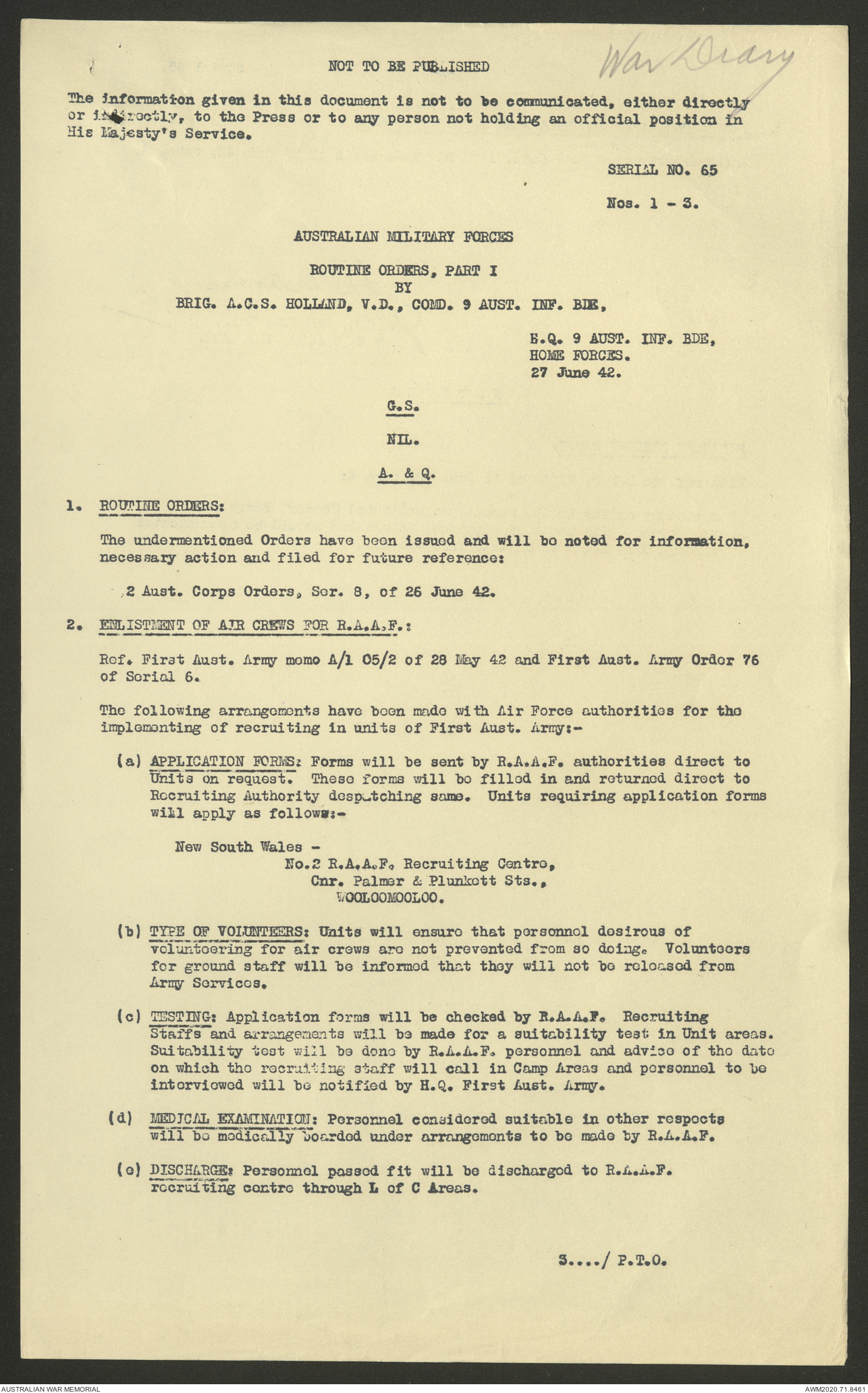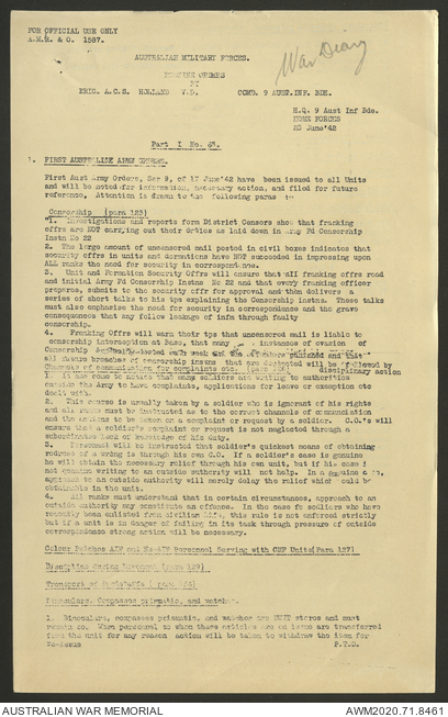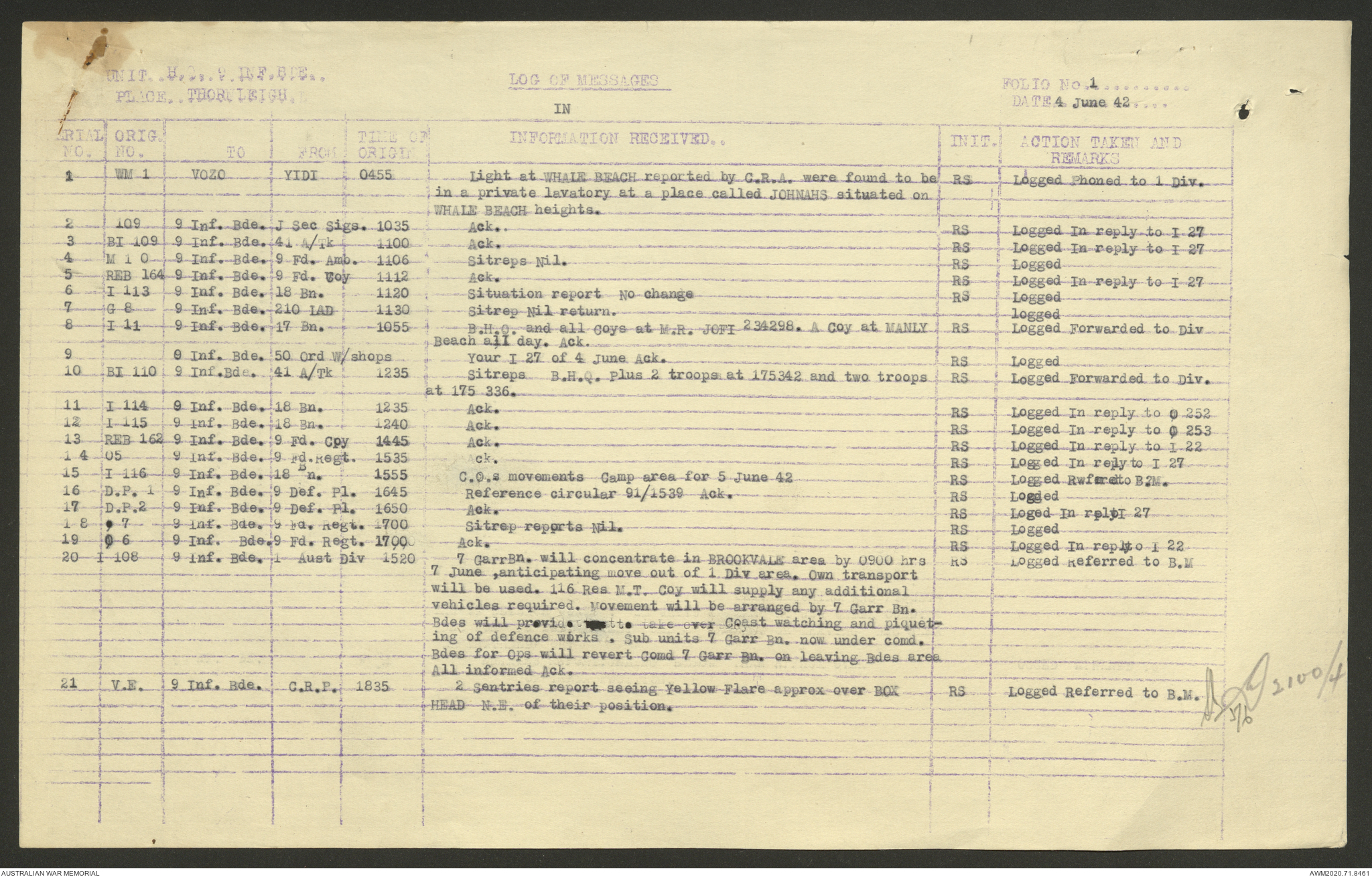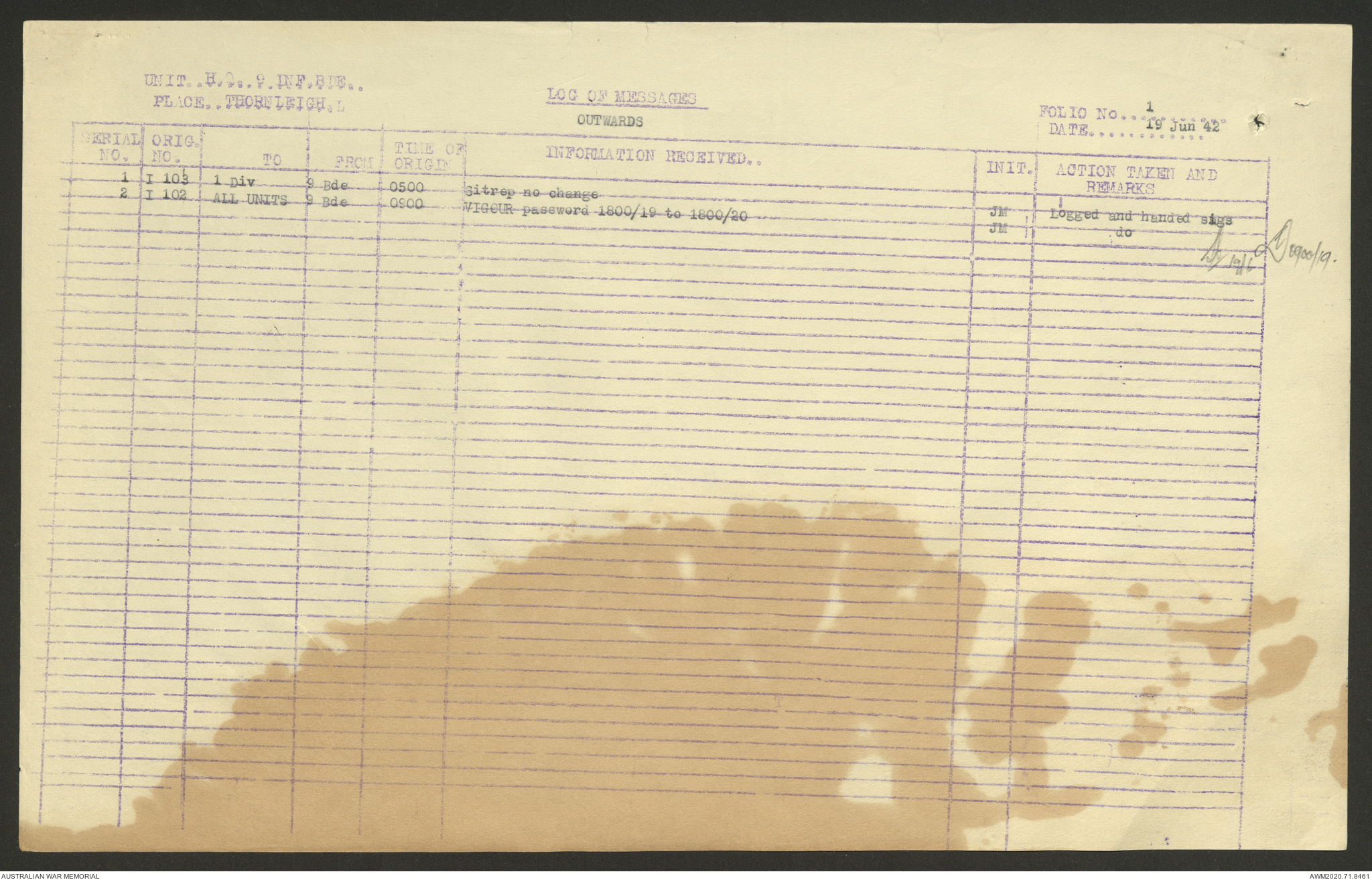 AWM52 8/2/9/7 - [Unit War Diaries, 1939-45 War] HQ 9 Australian Infantry Brigade, June 1942, Appendices