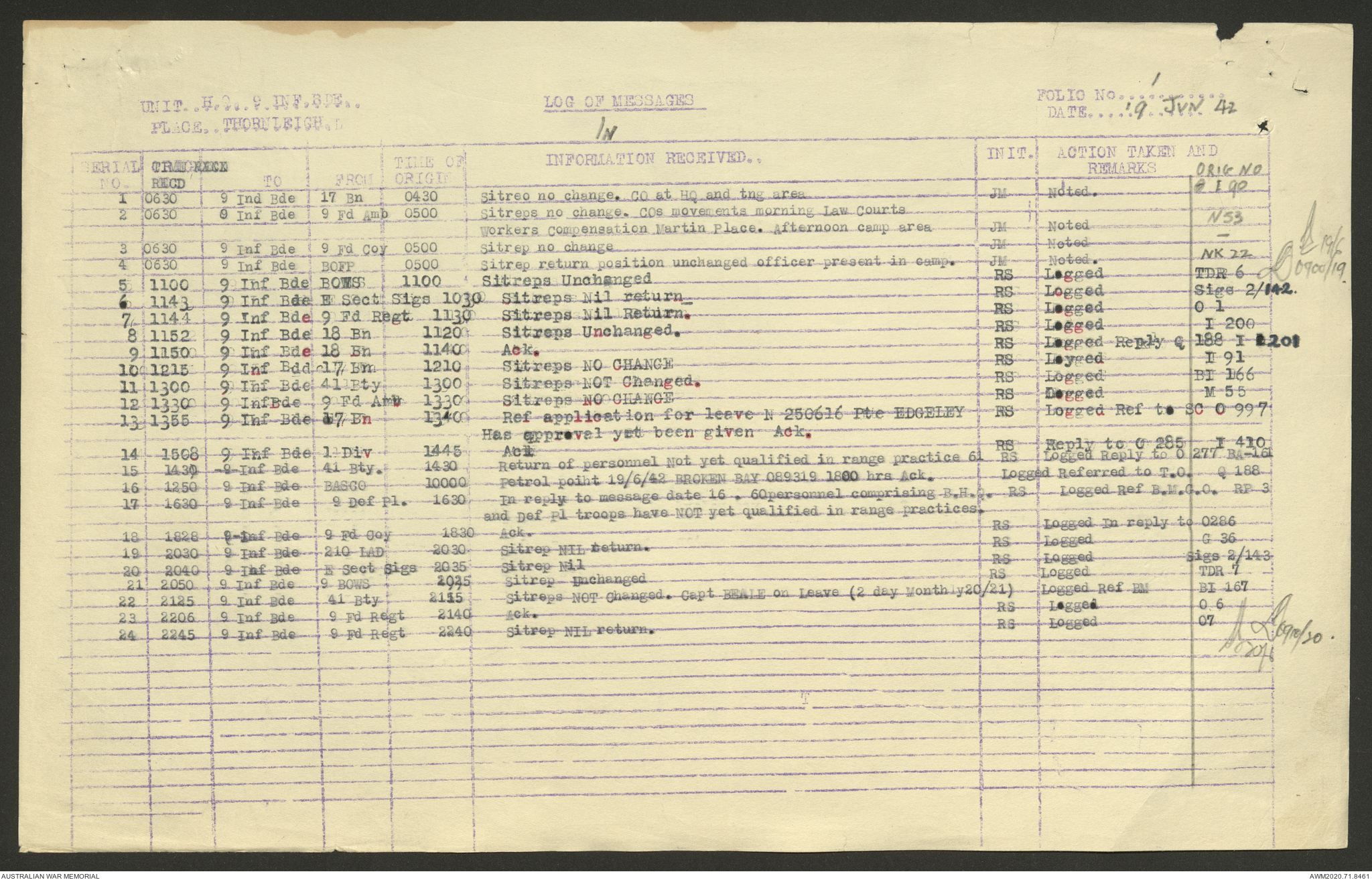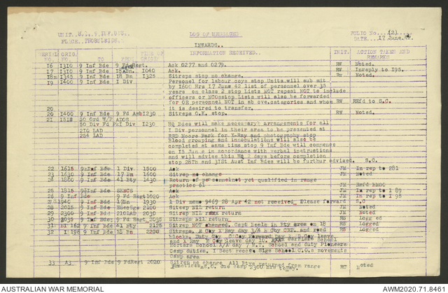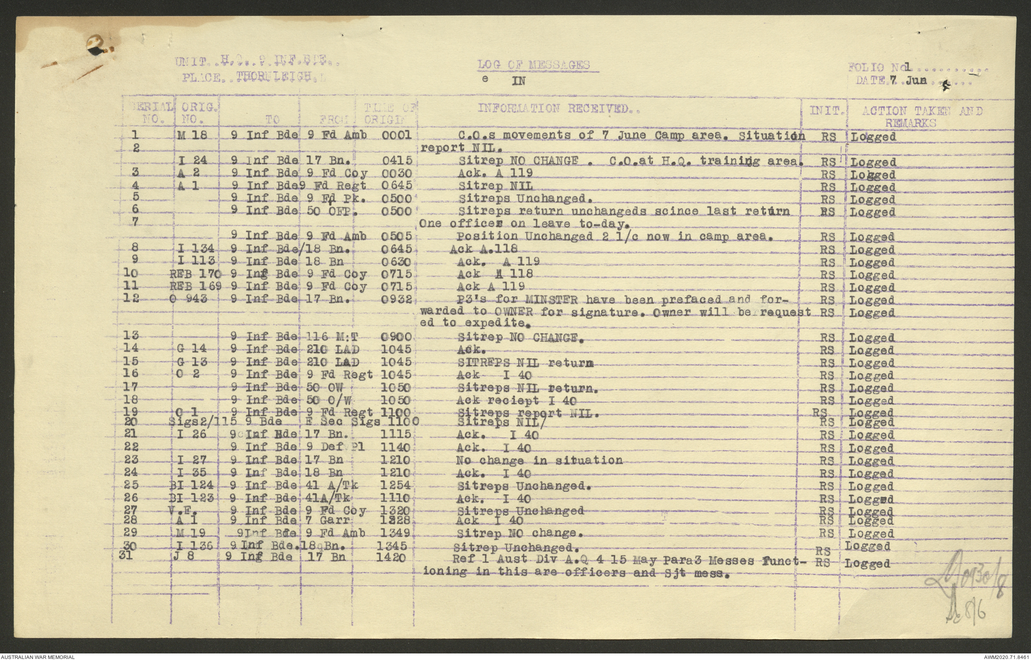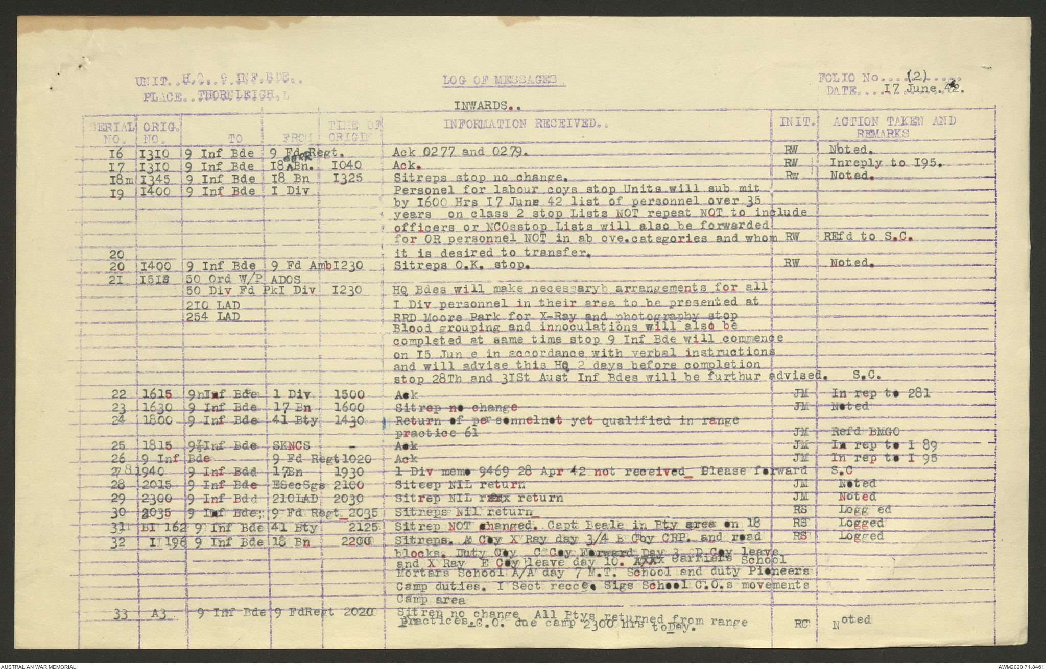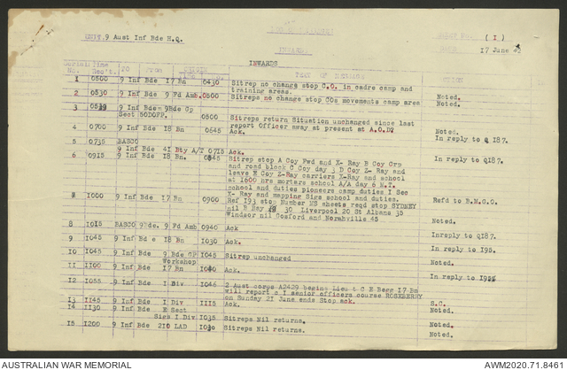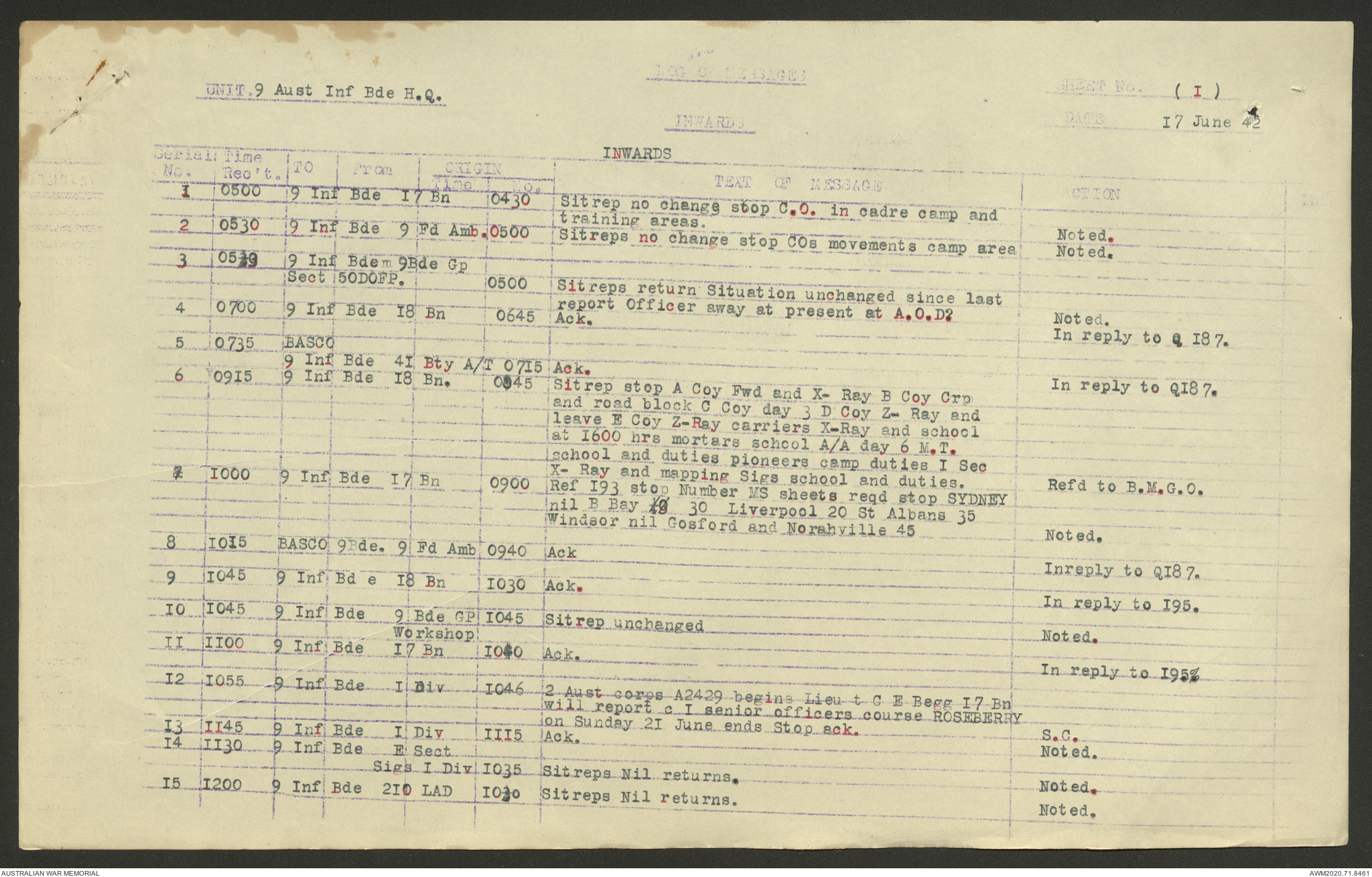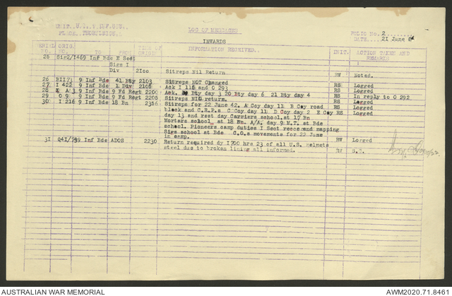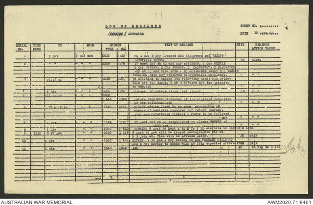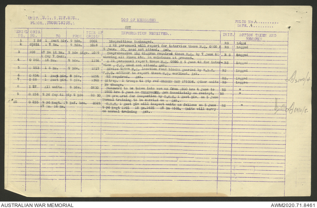 - AWM52 8/2/9 - Headquarters, 9 Infantry Brigade