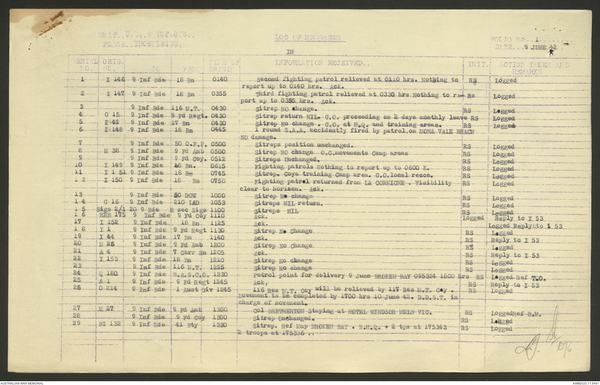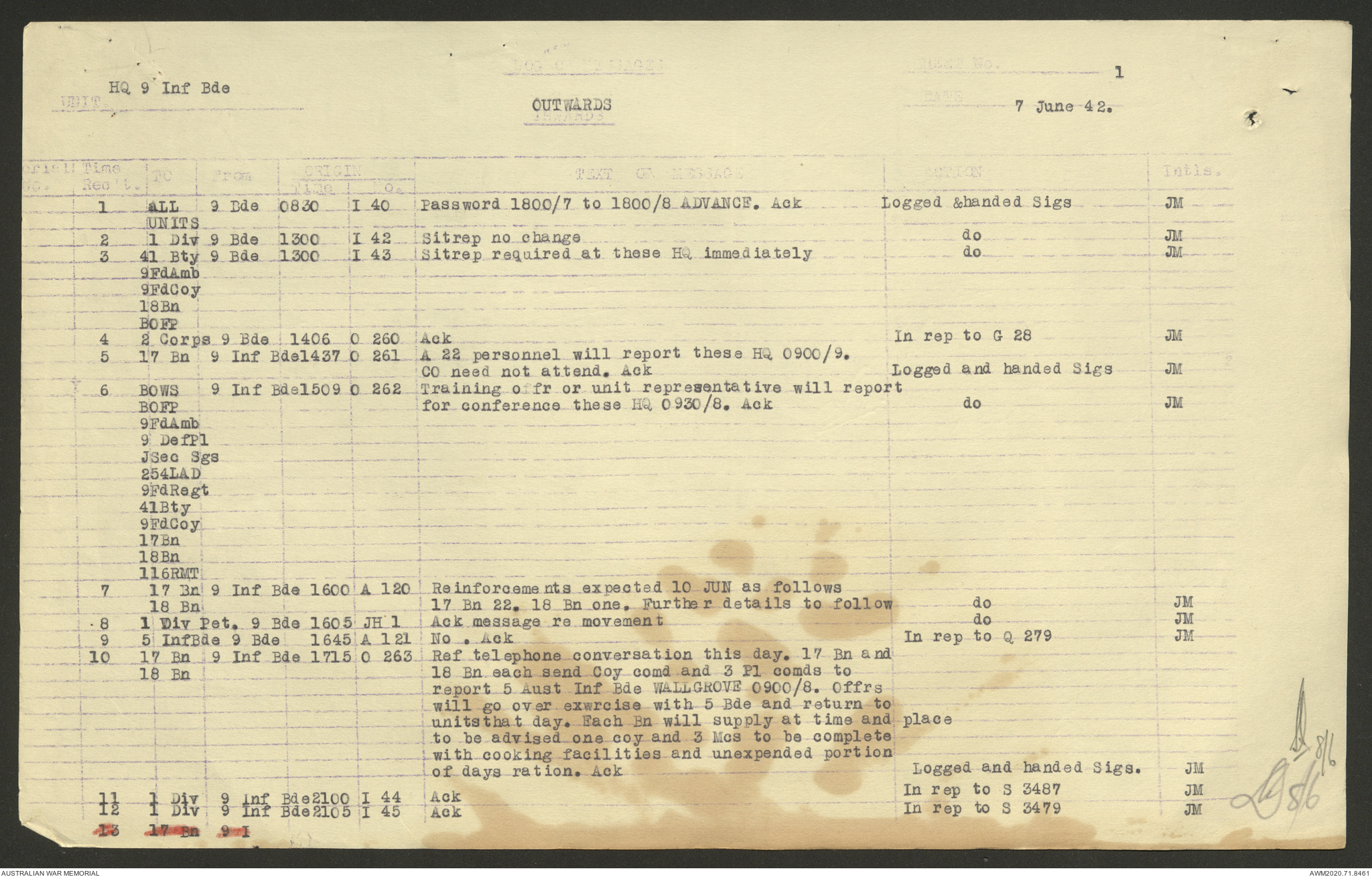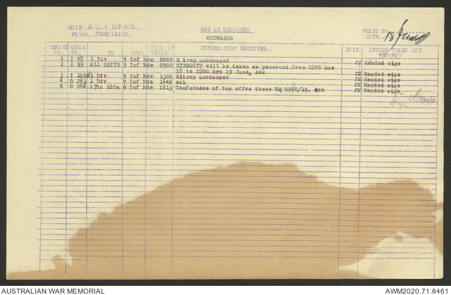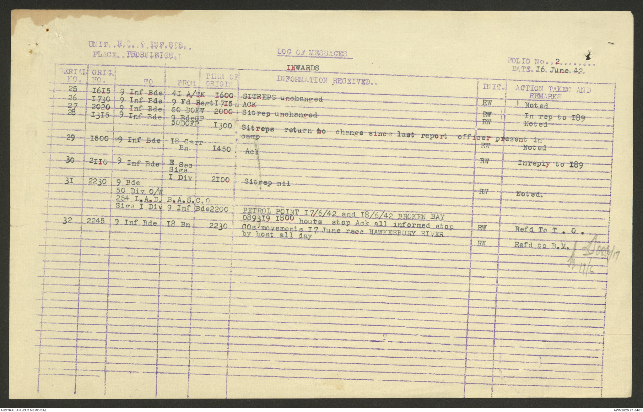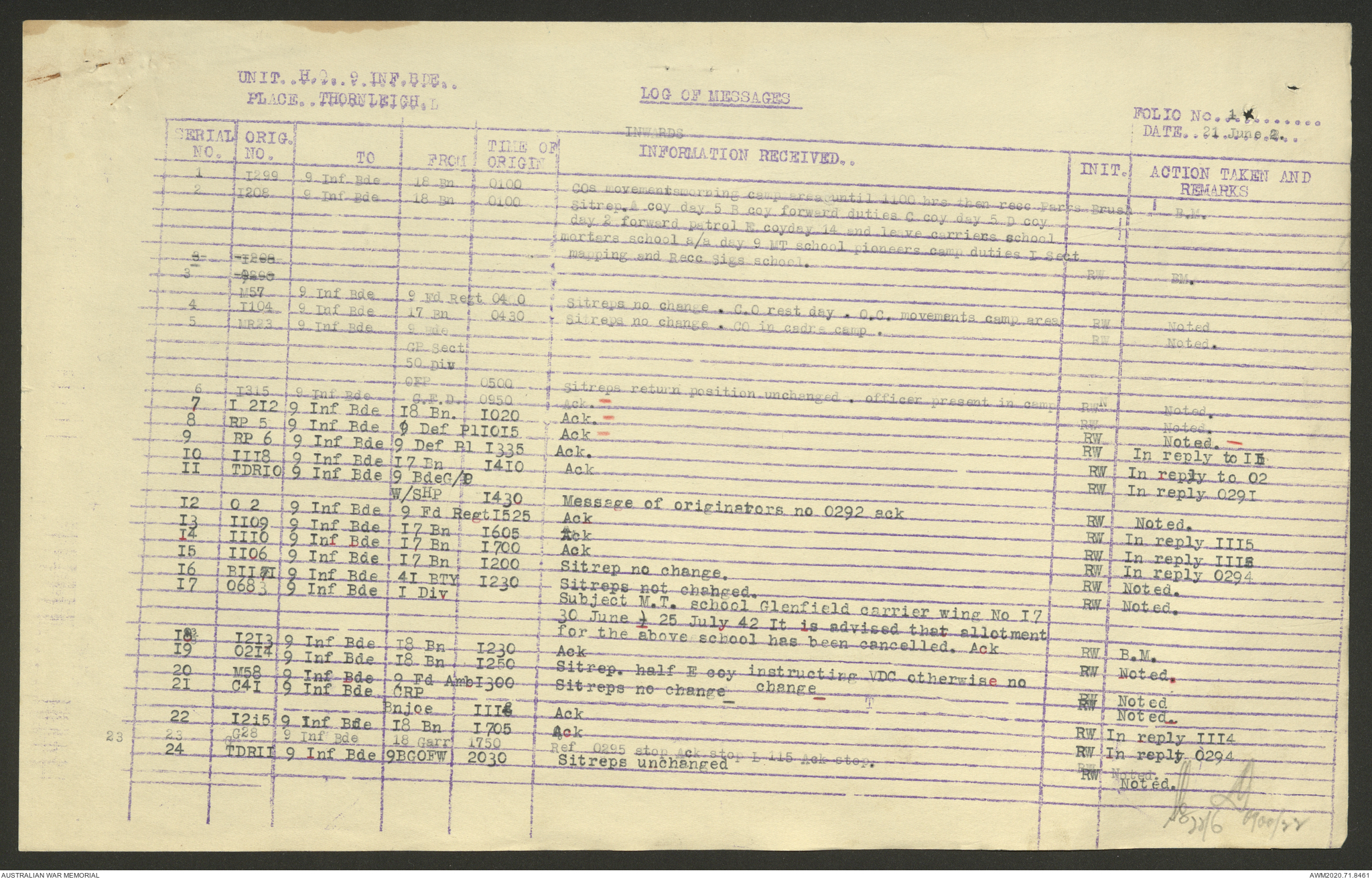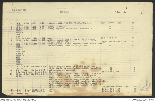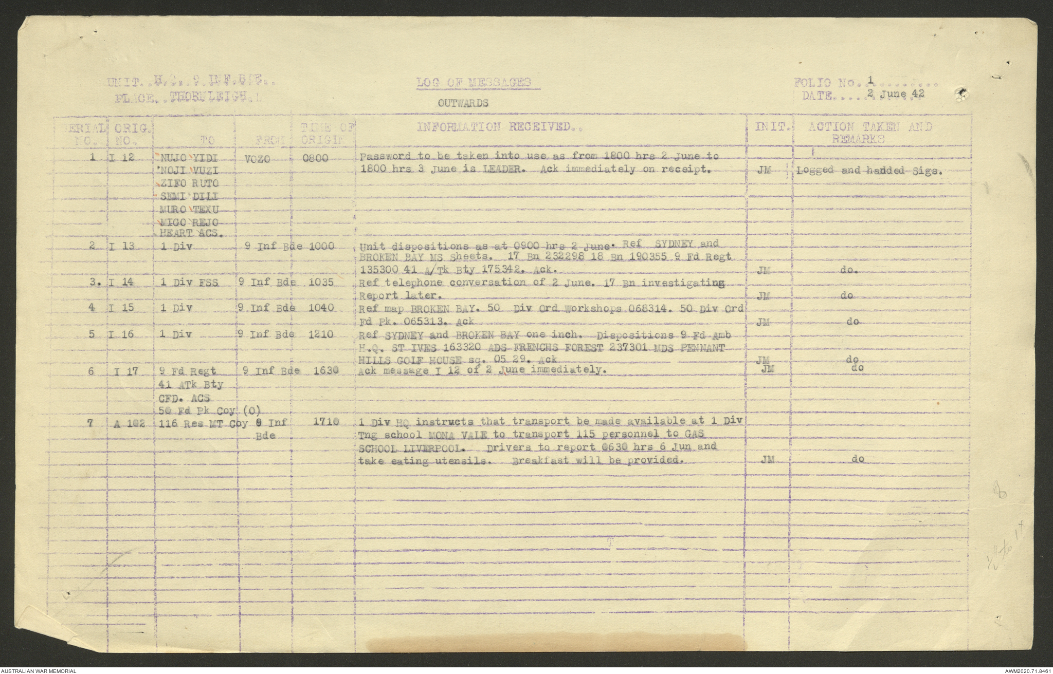 - AWM52 8/2/9 - Headquarters, 9 Infantry Brigade