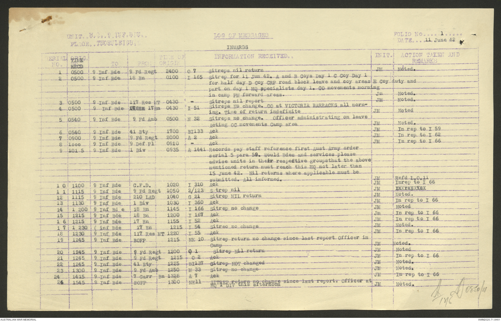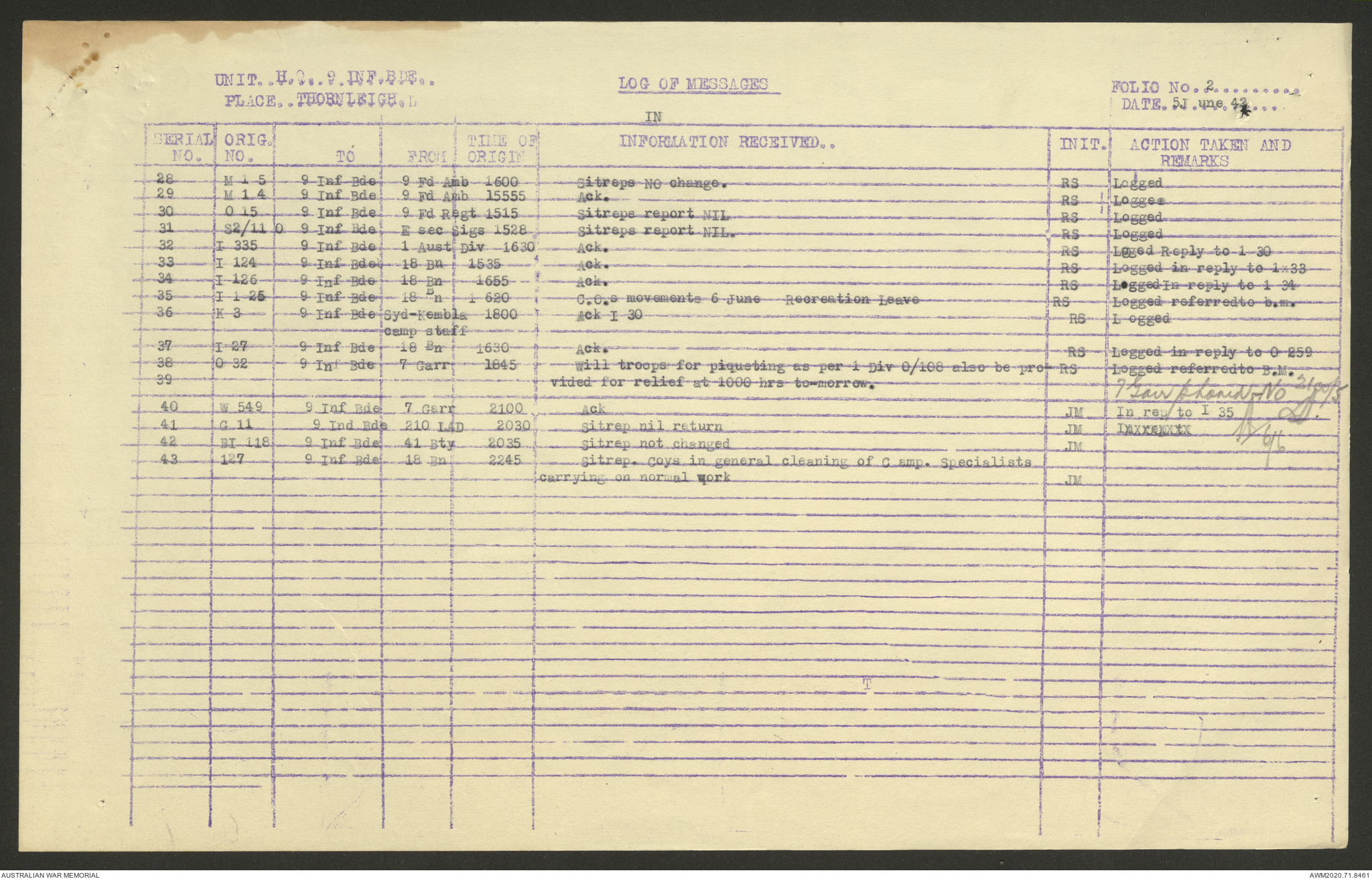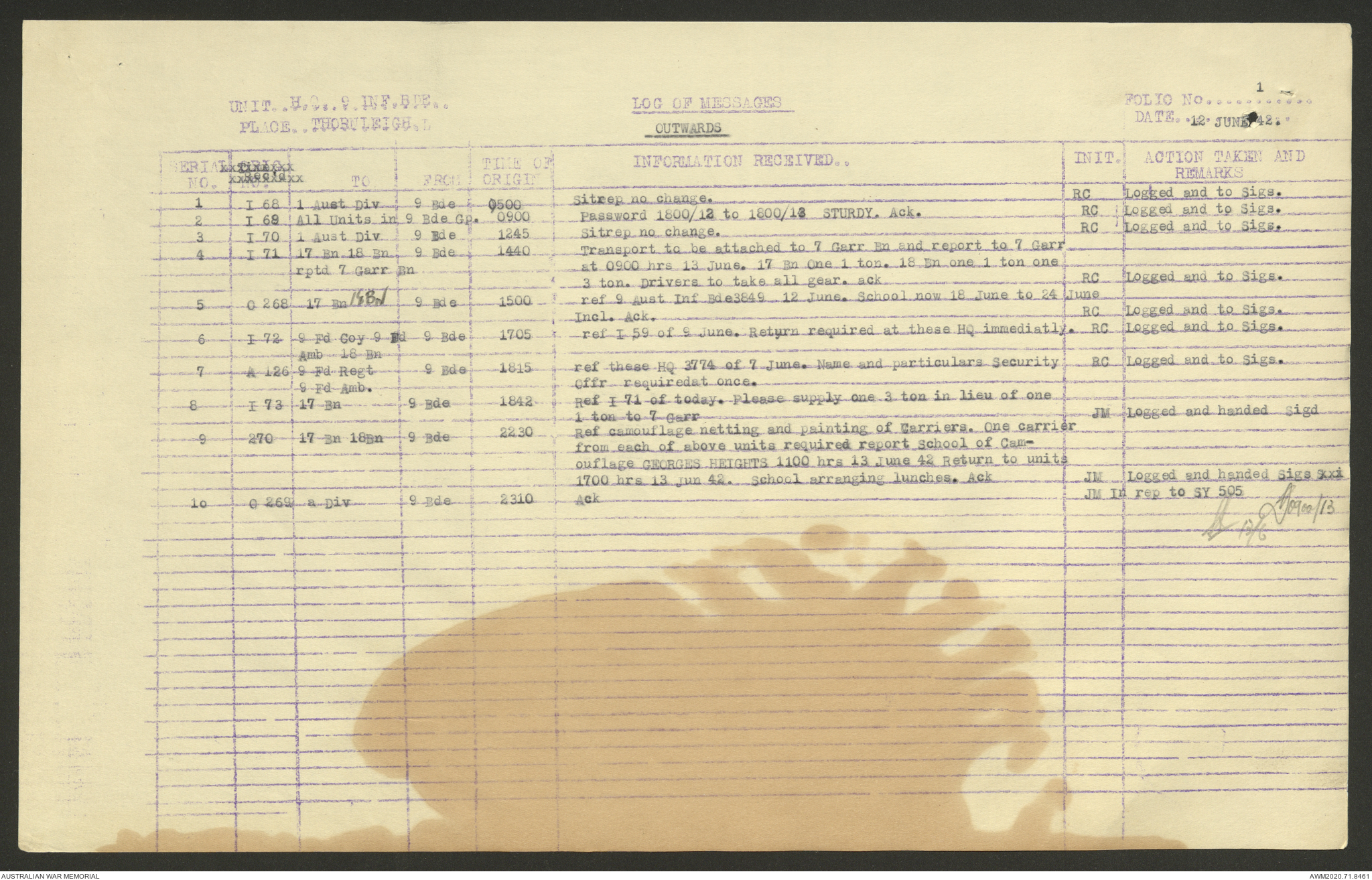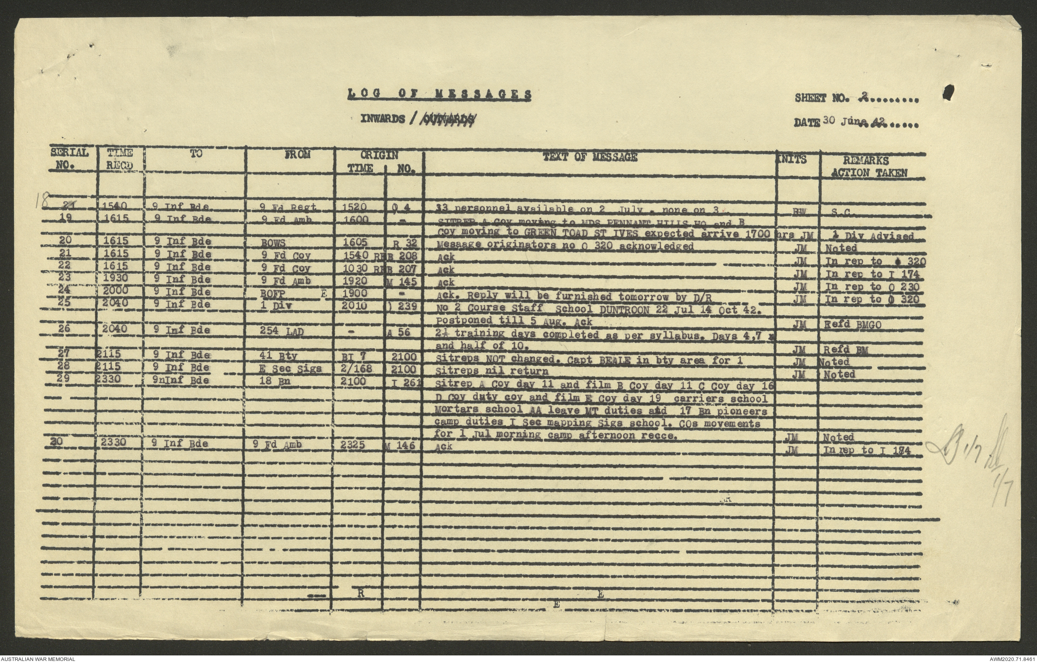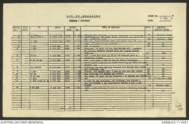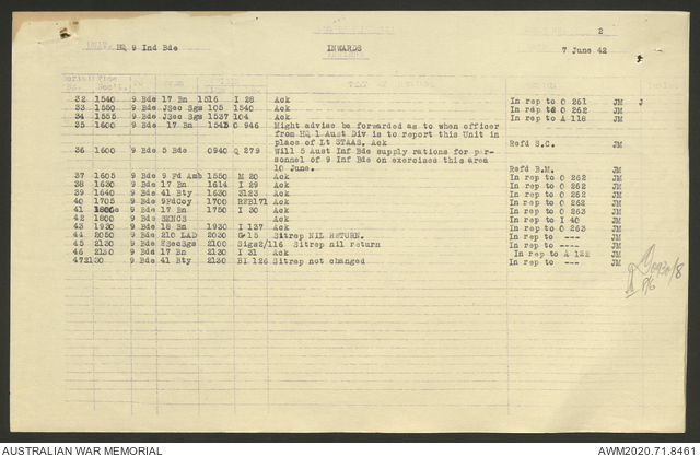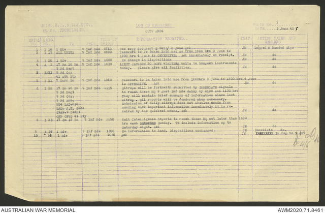 - AWM52 8/2/9 - Headquarters, 9 Infantry Brigade