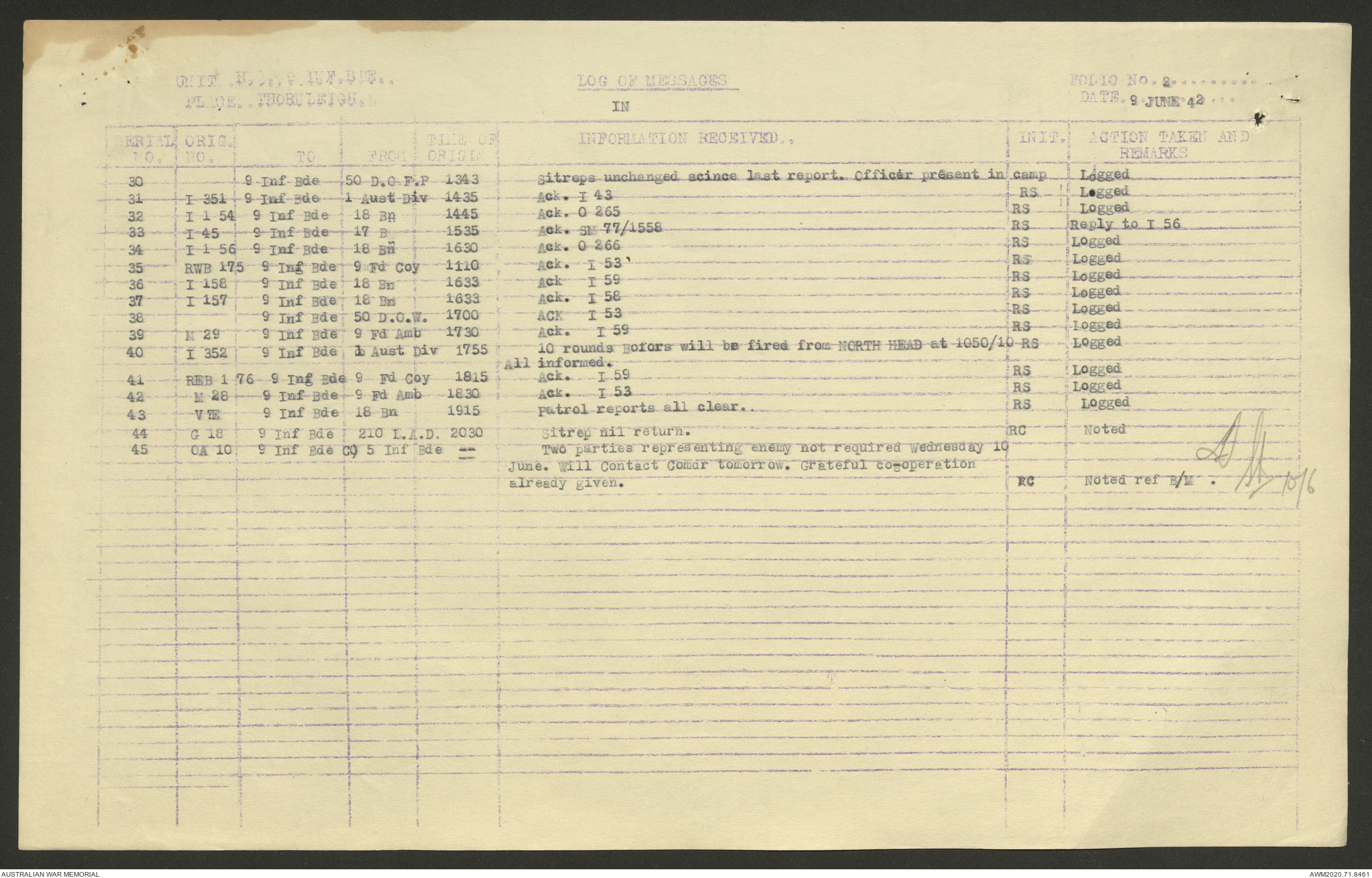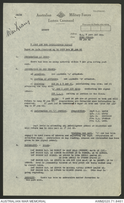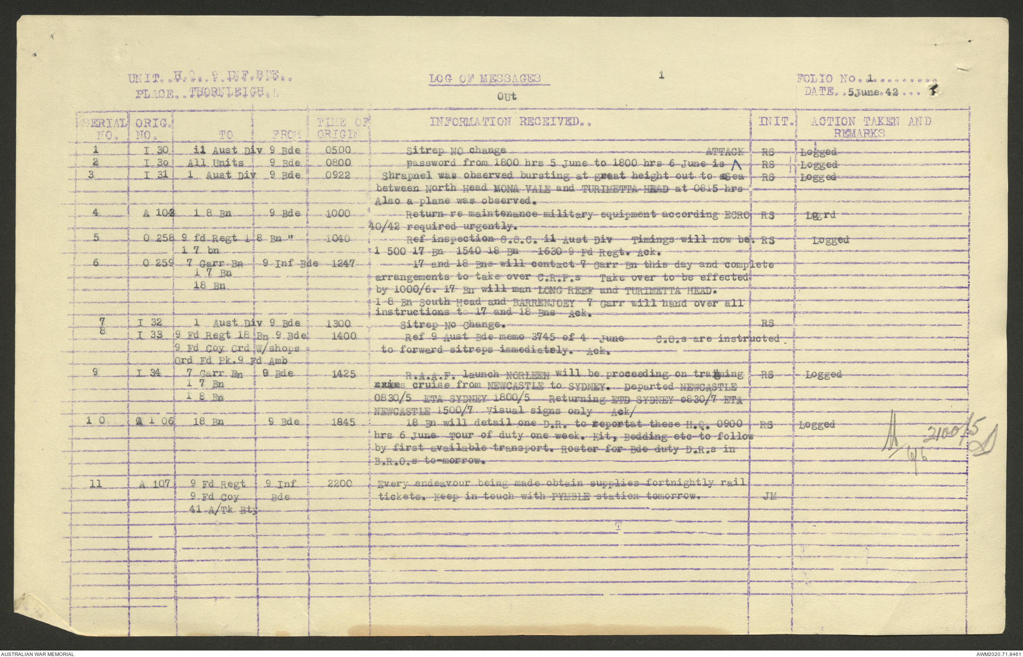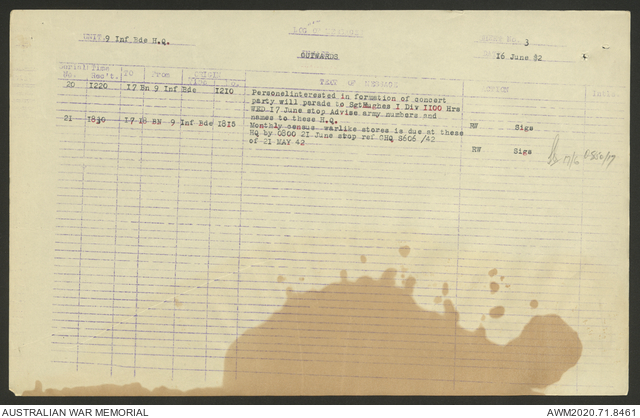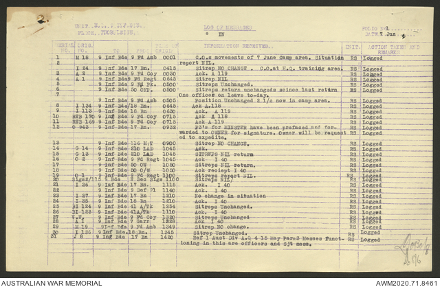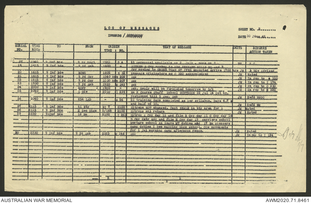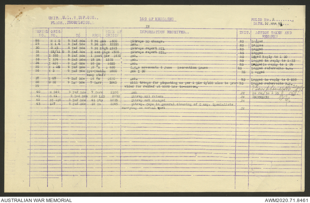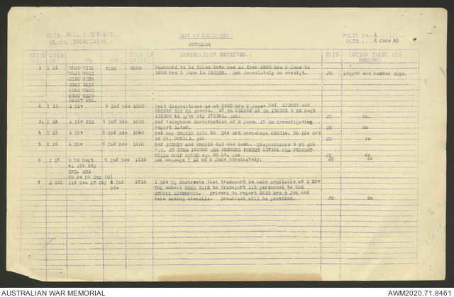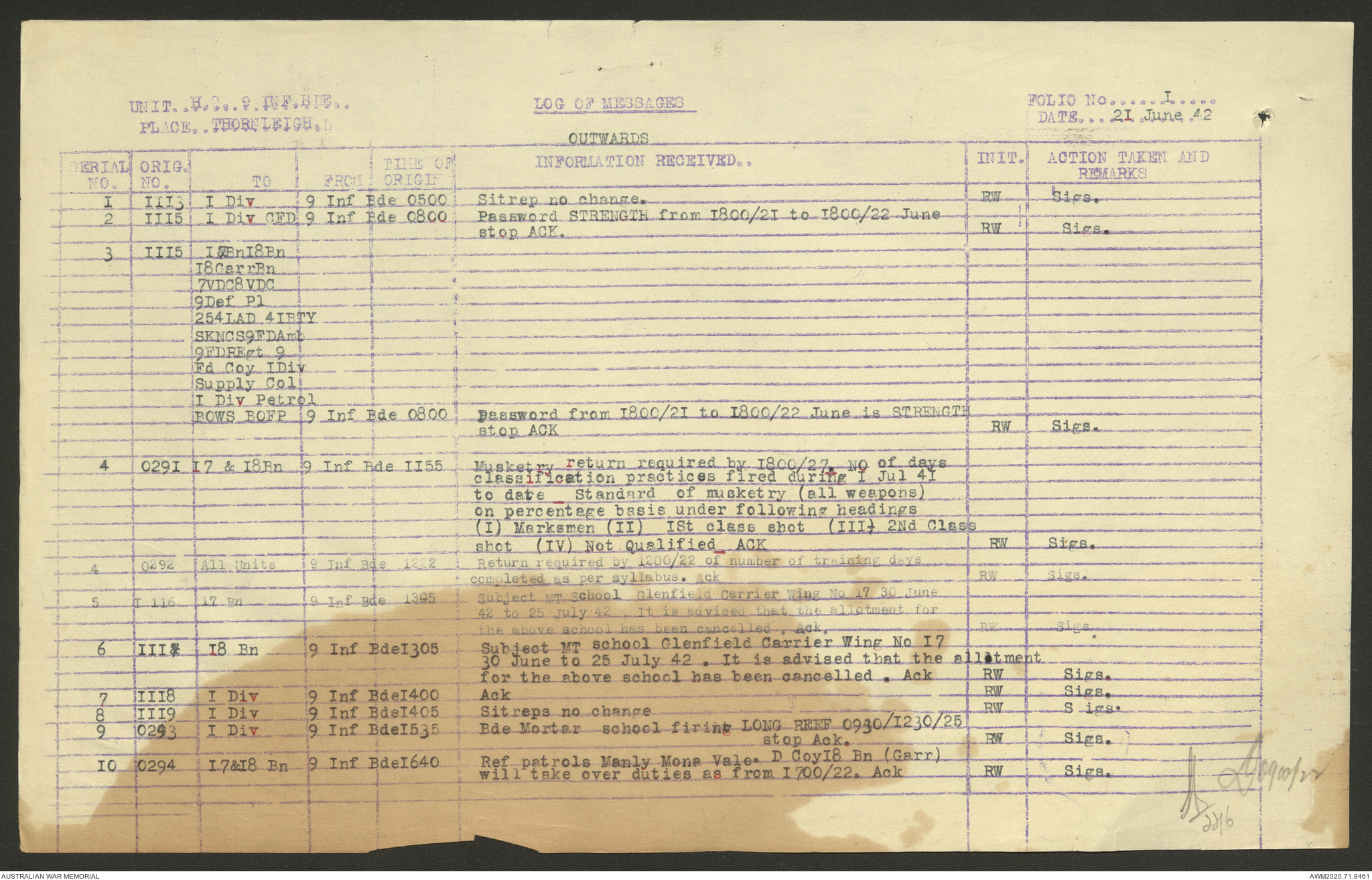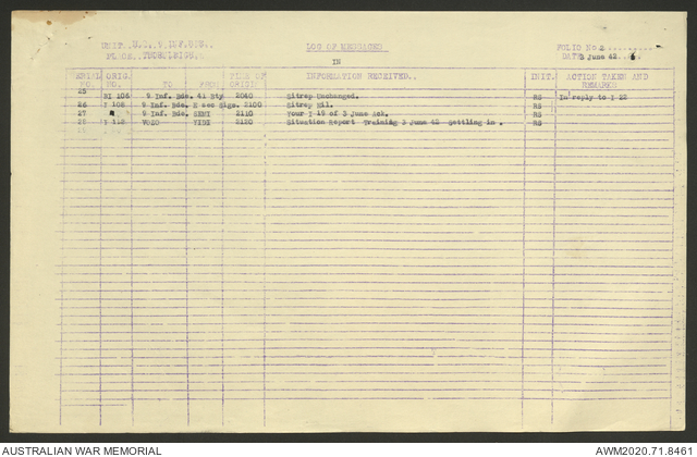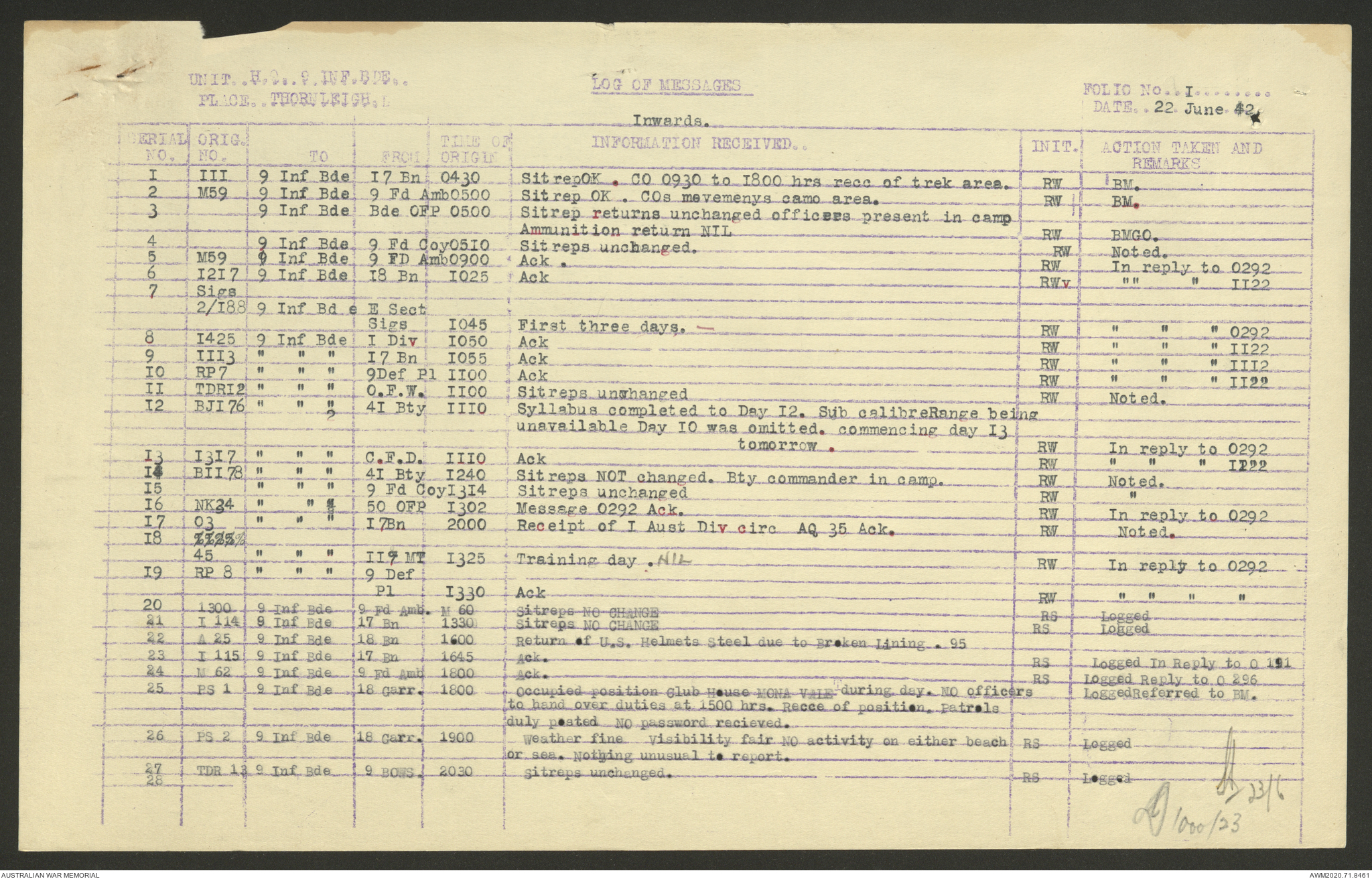 - AWM52 8/2/9 - Headquarters, 9 Infantry Brigade