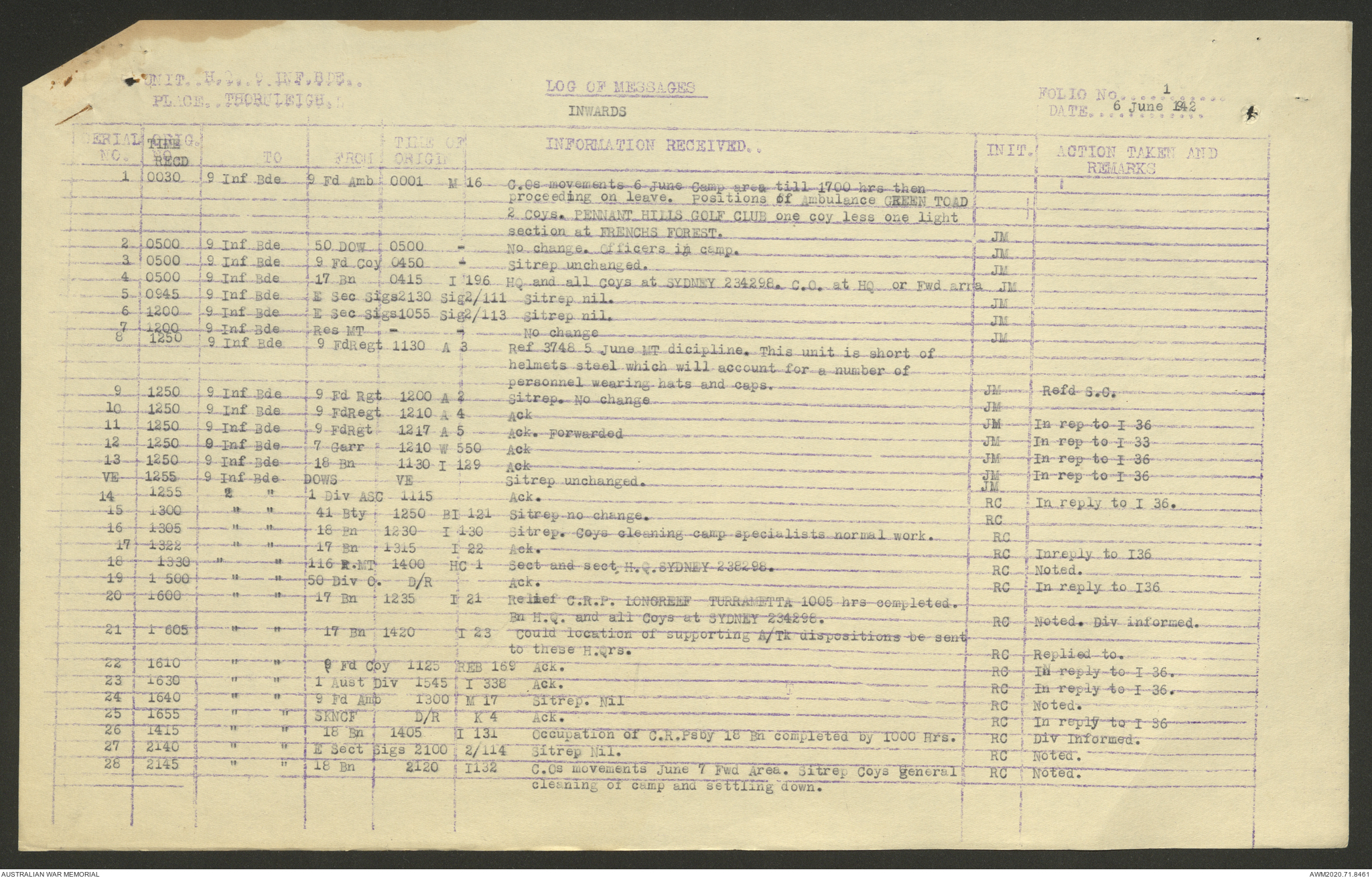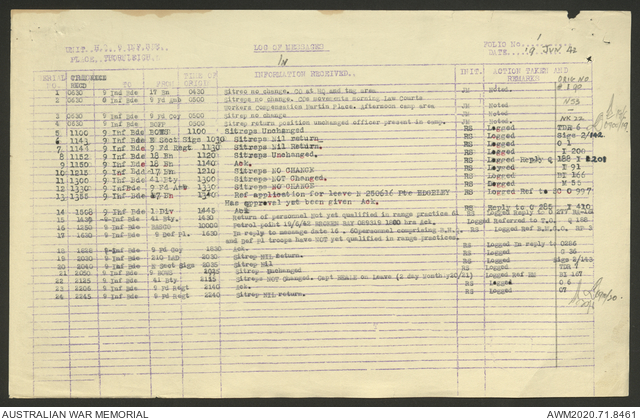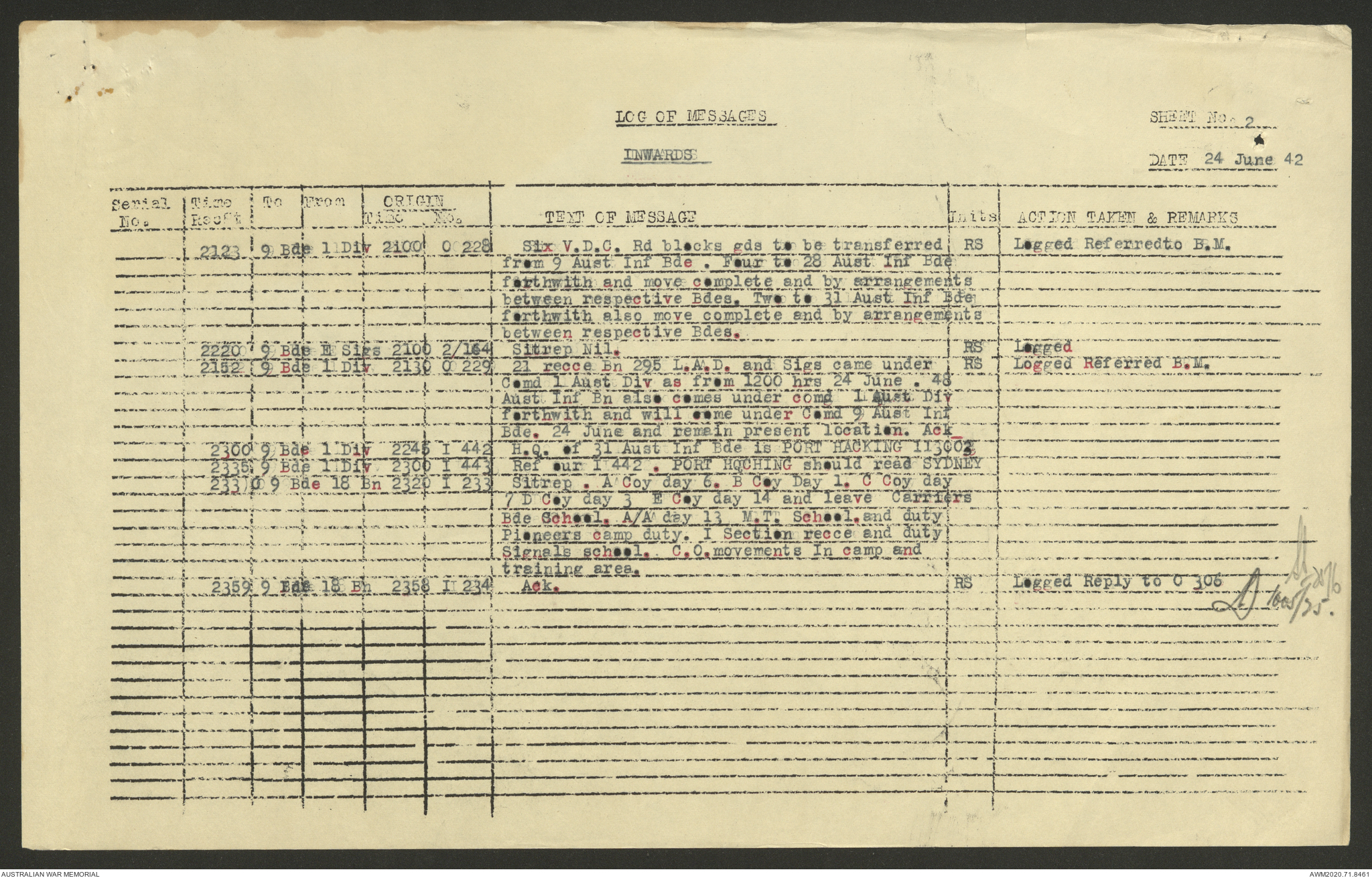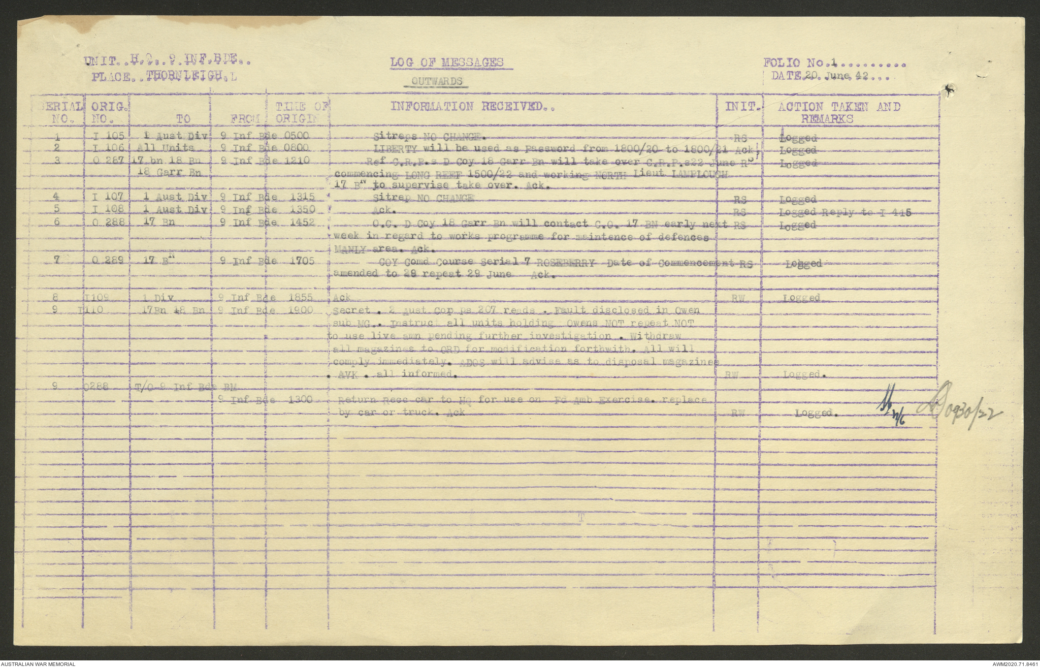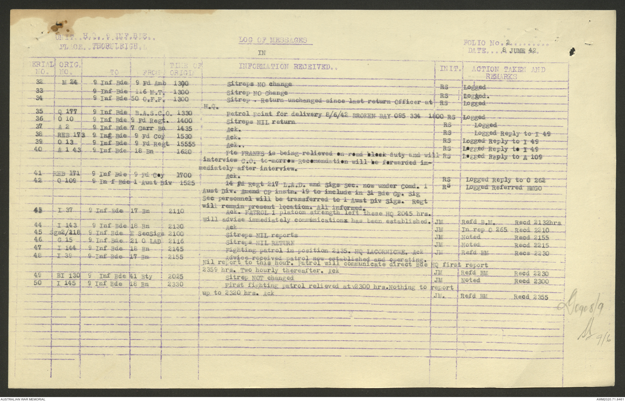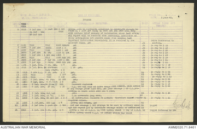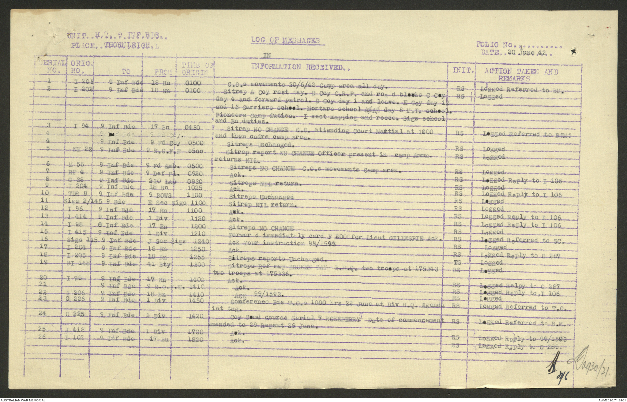 - AWM52 8/2/9 - Headquarters, 9 Infantry Brigade
