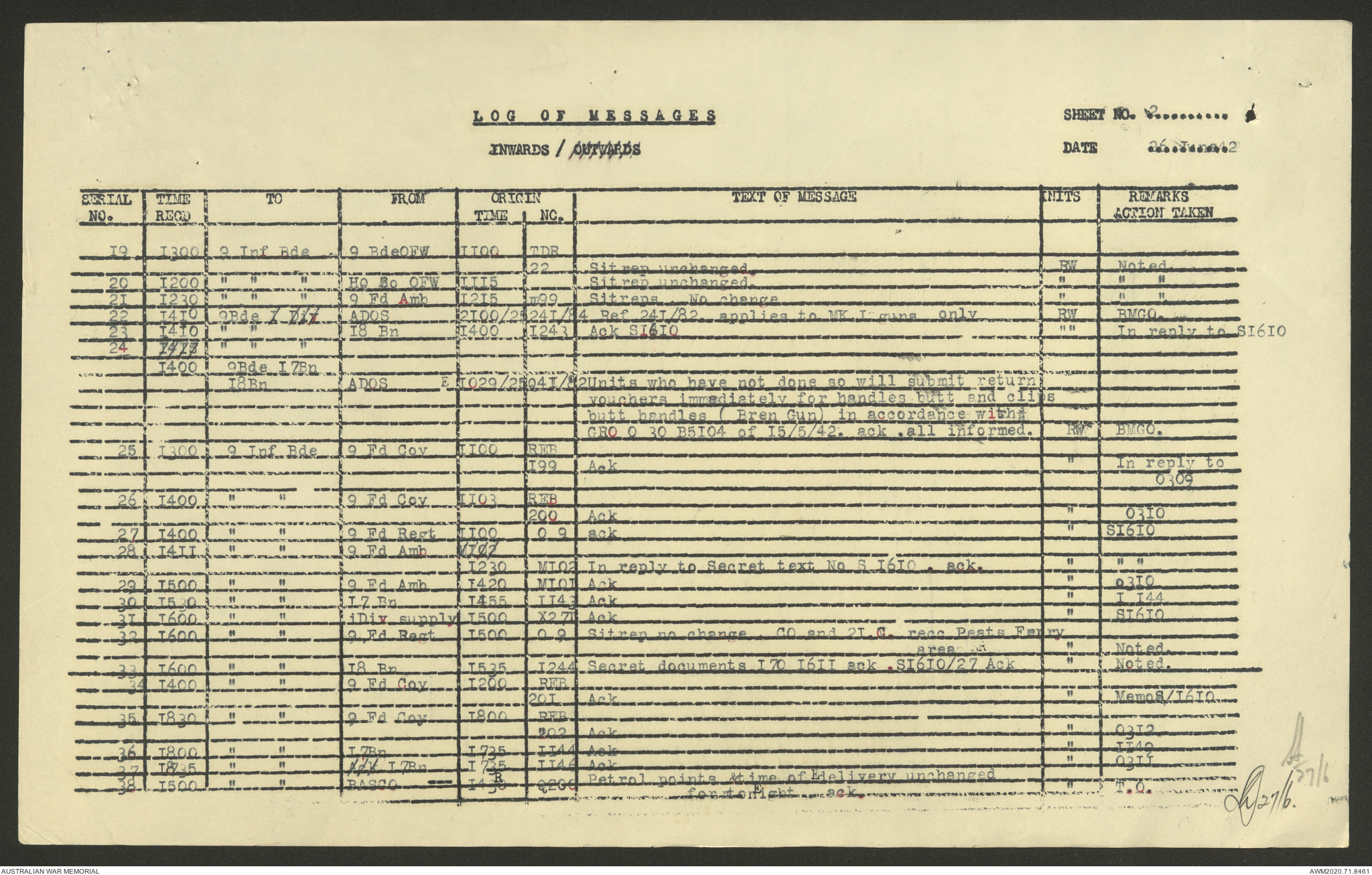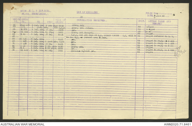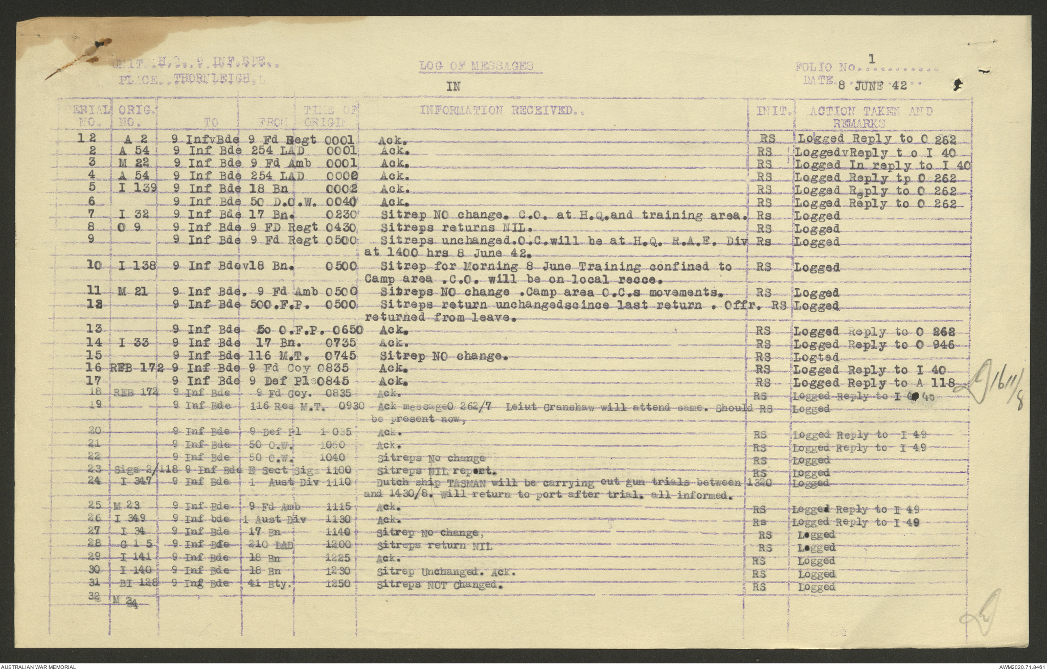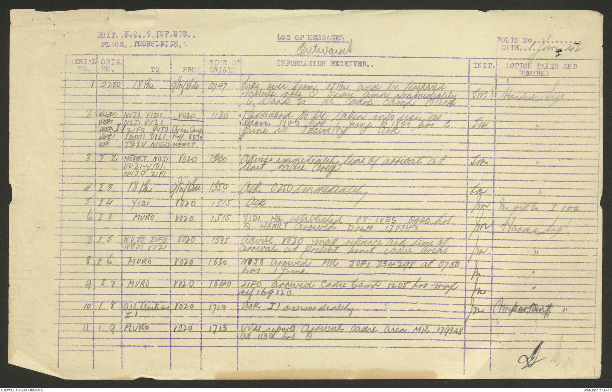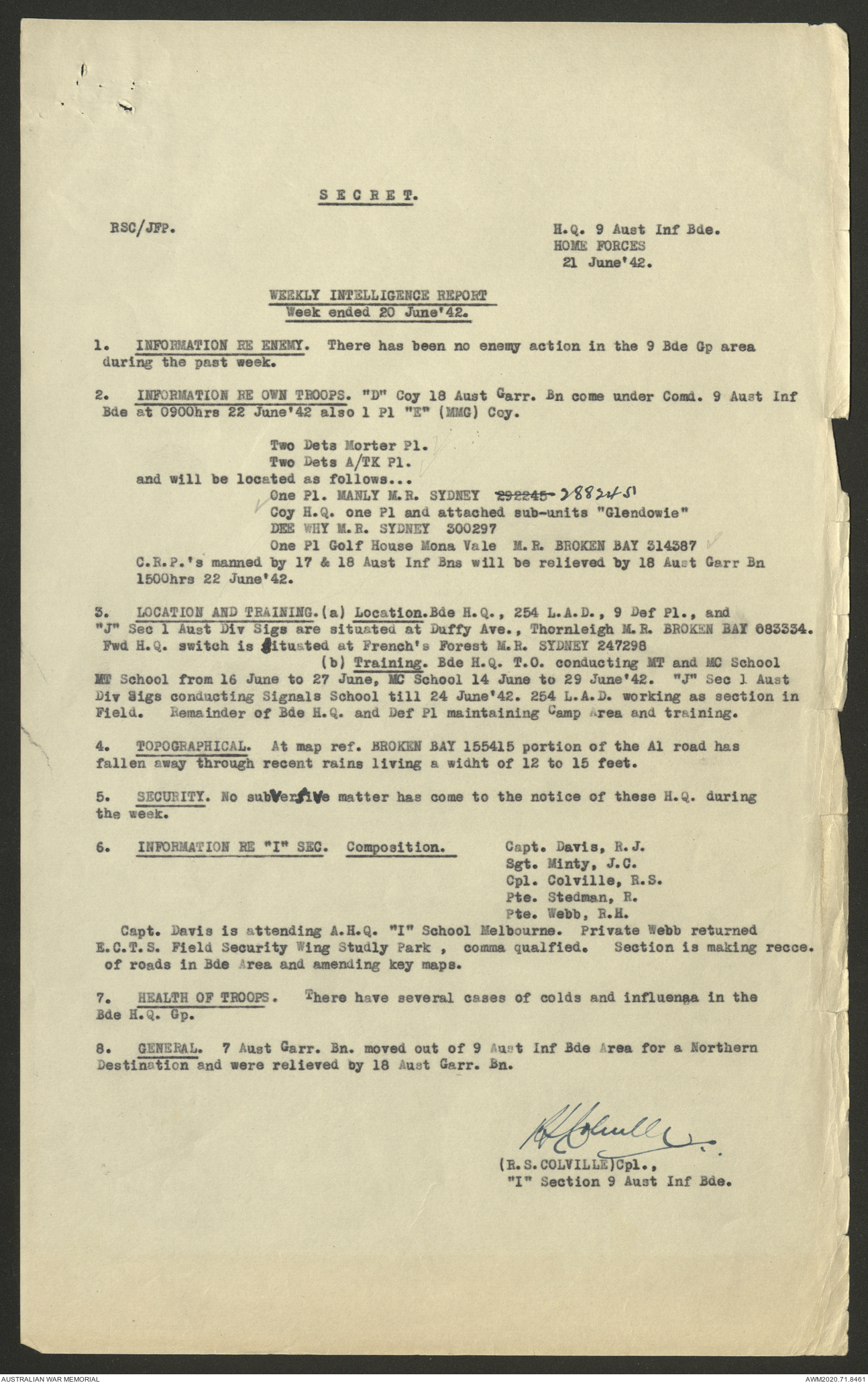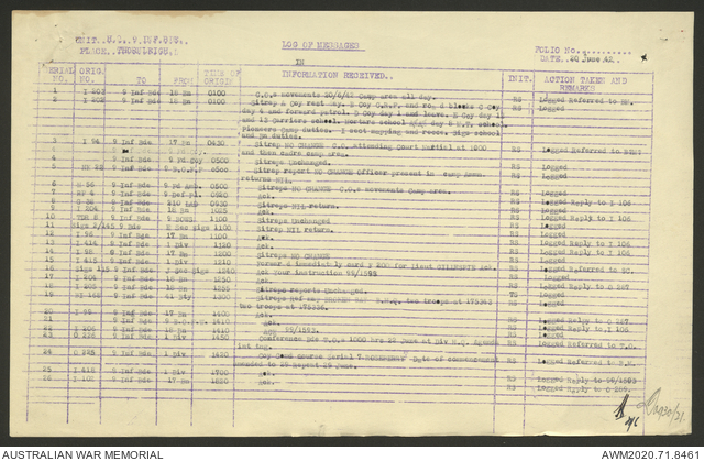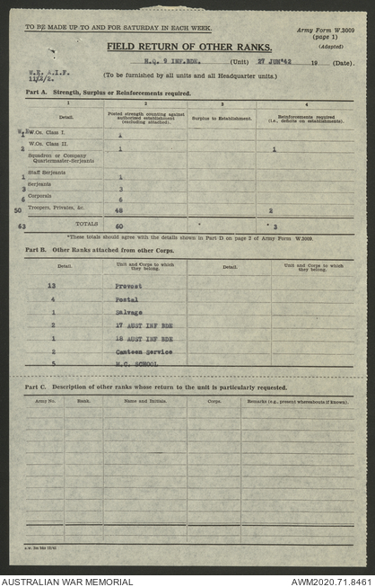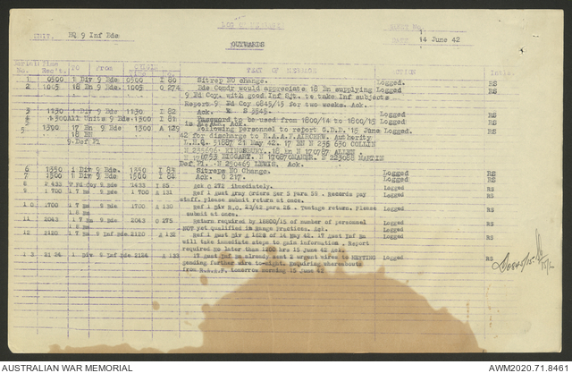 - AWM52 8/2/9 - Headquarters, 9 Infantry Brigade