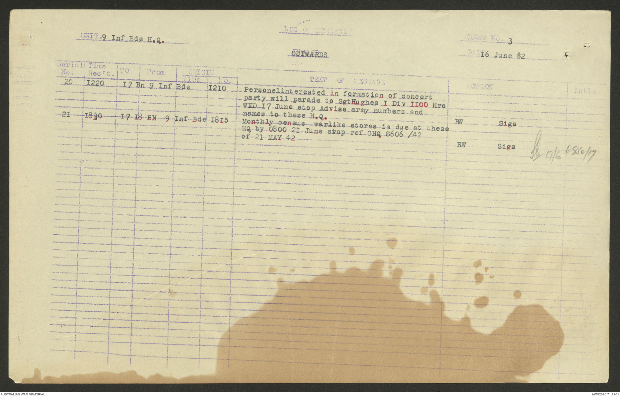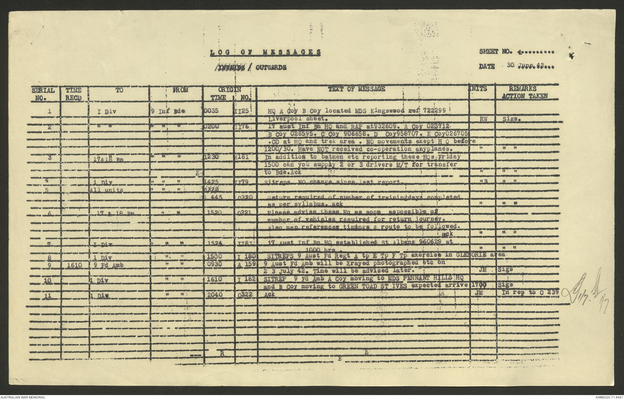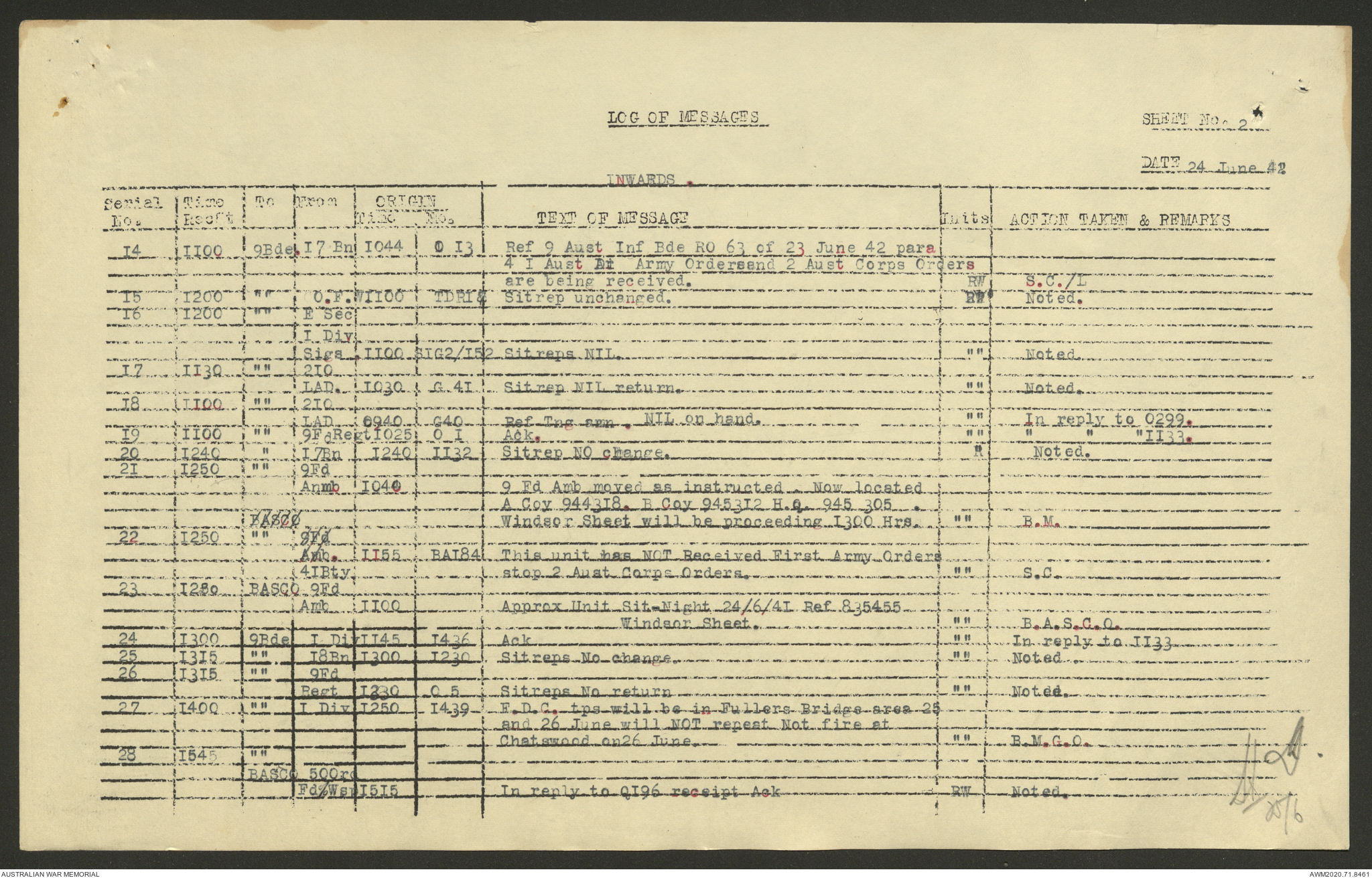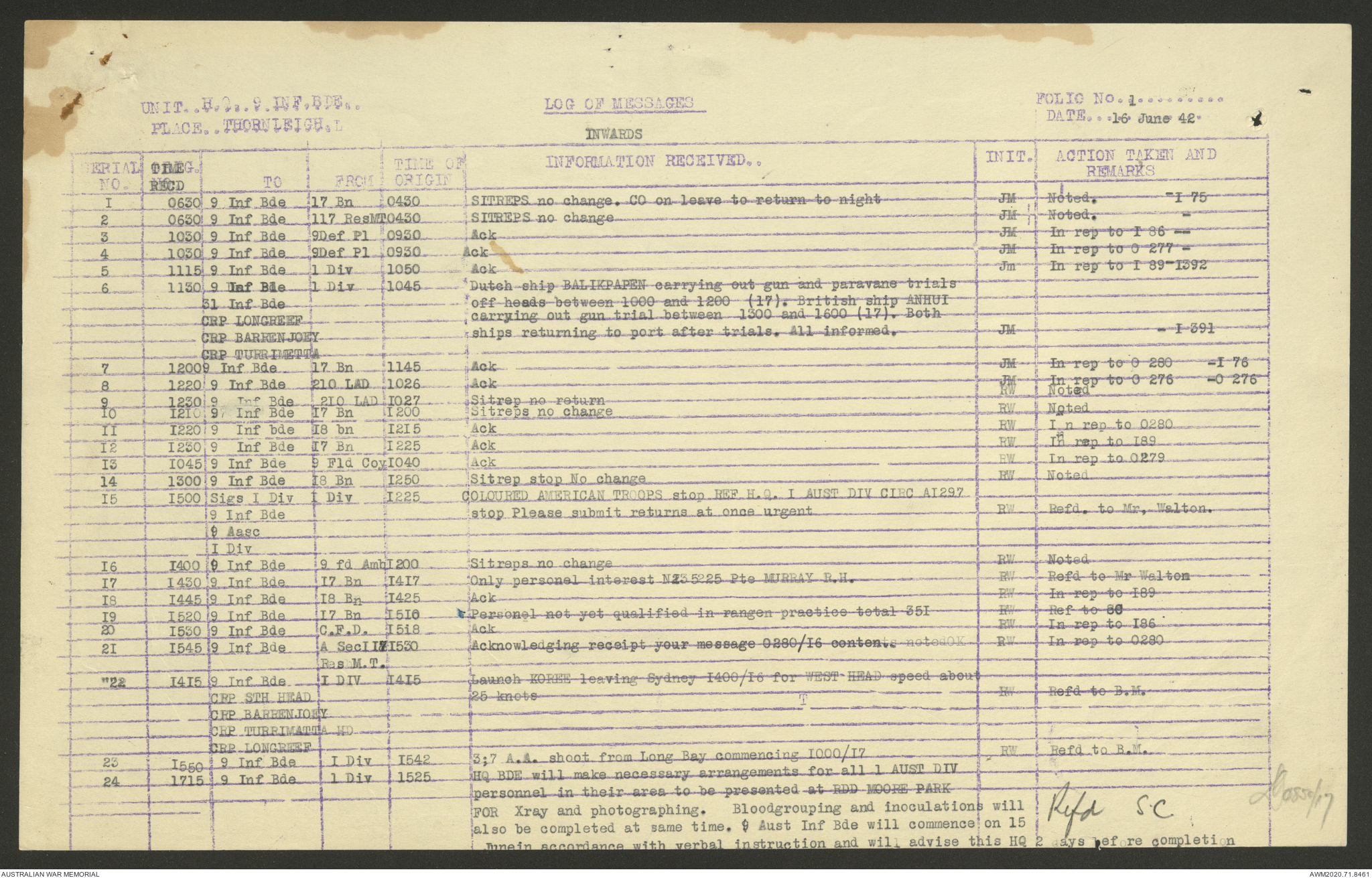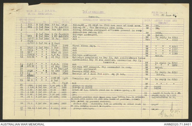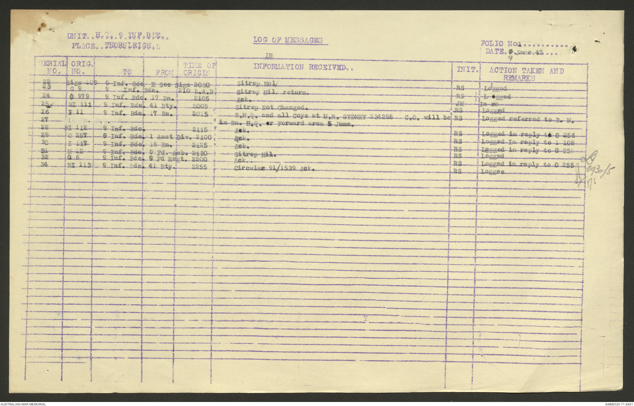 - AWM52 8/2/9 - Headquarters, 9 Infantry Brigade