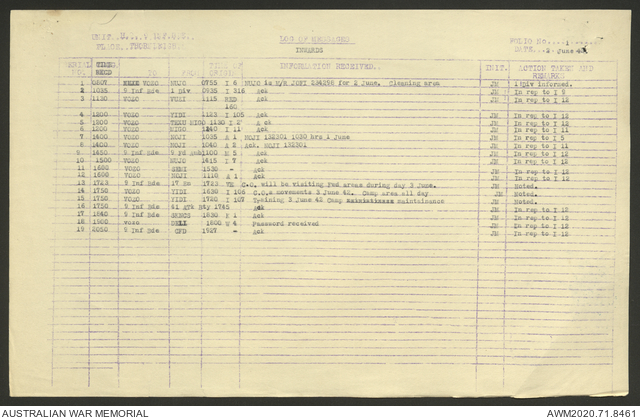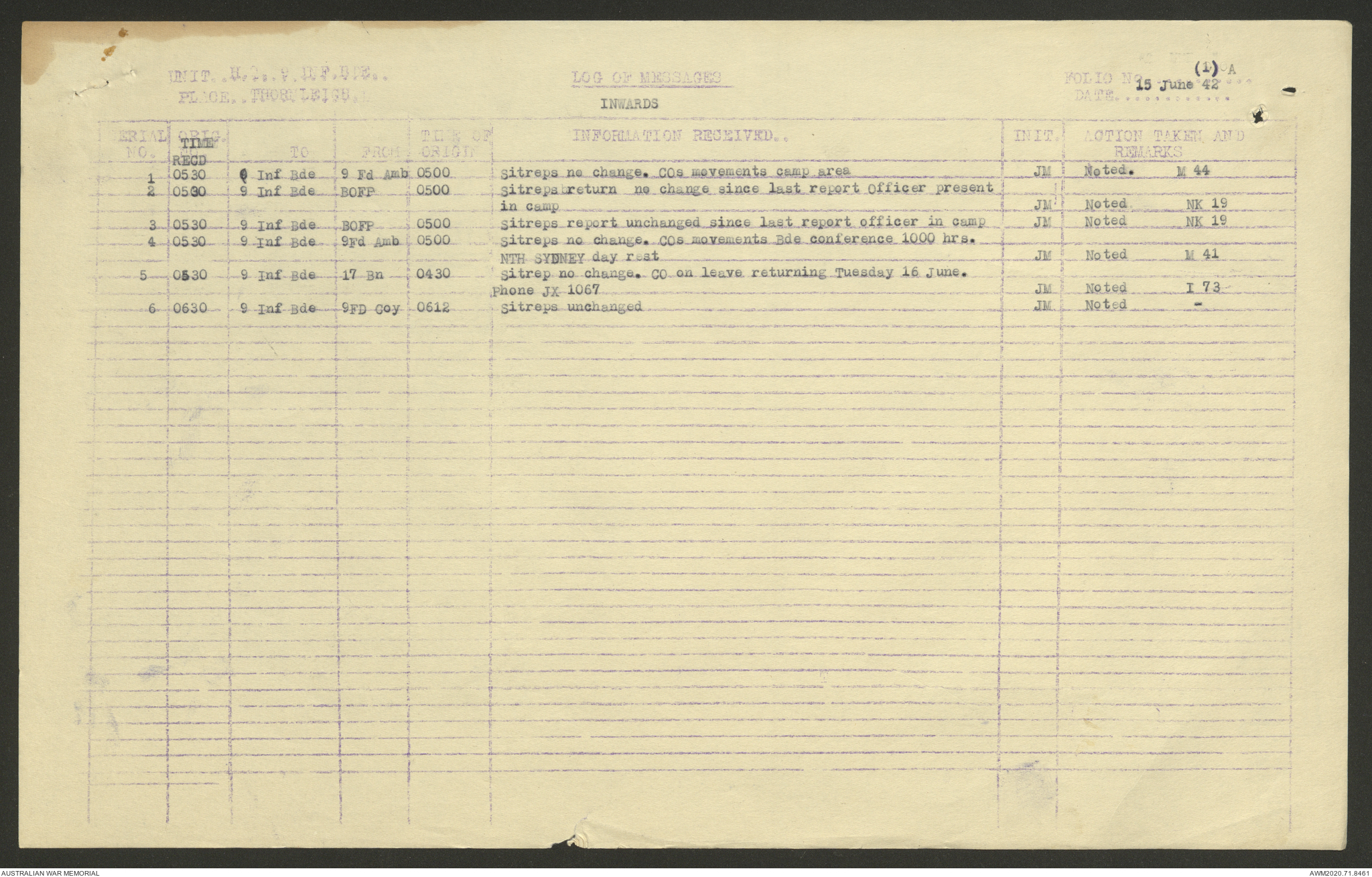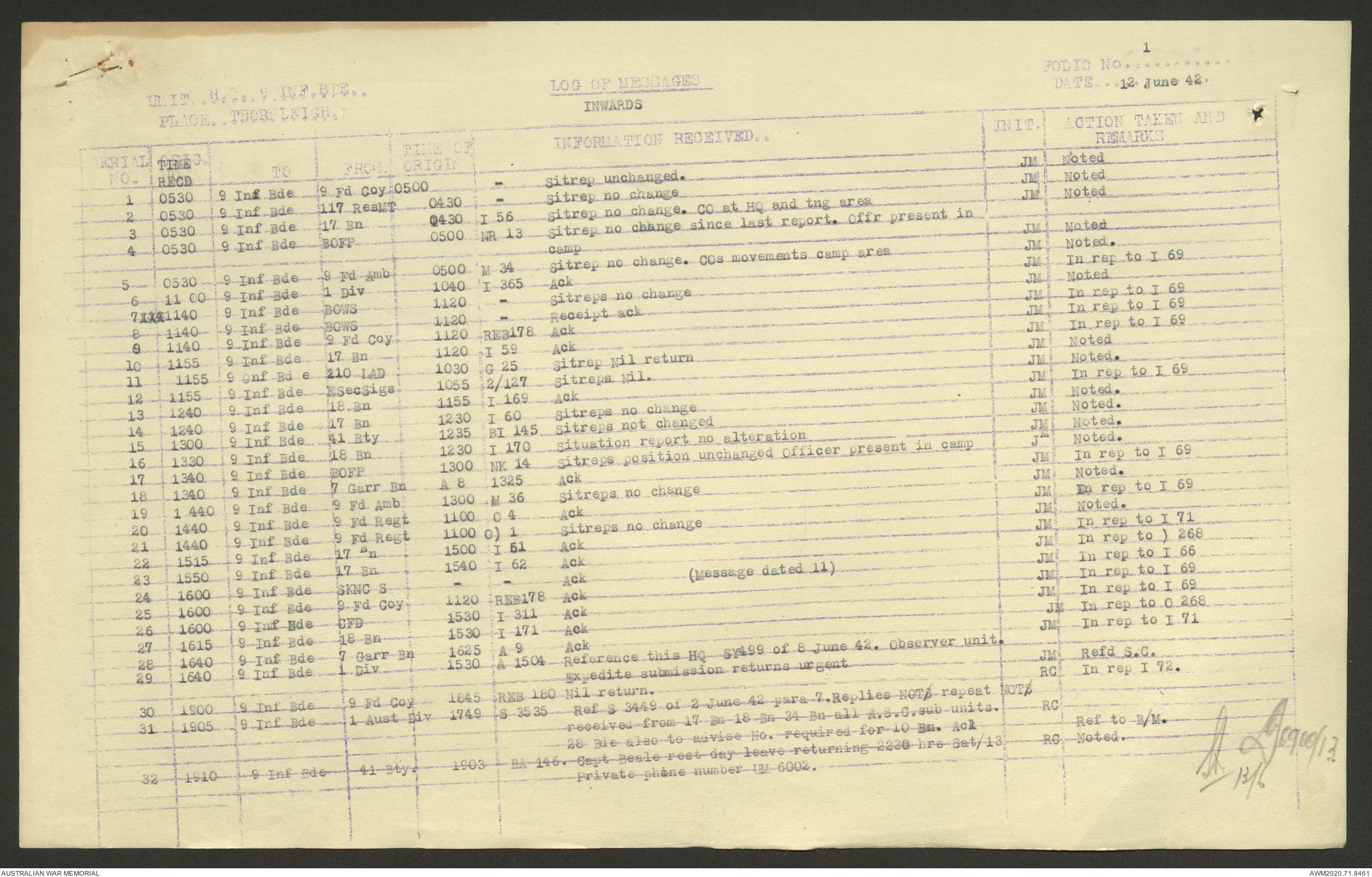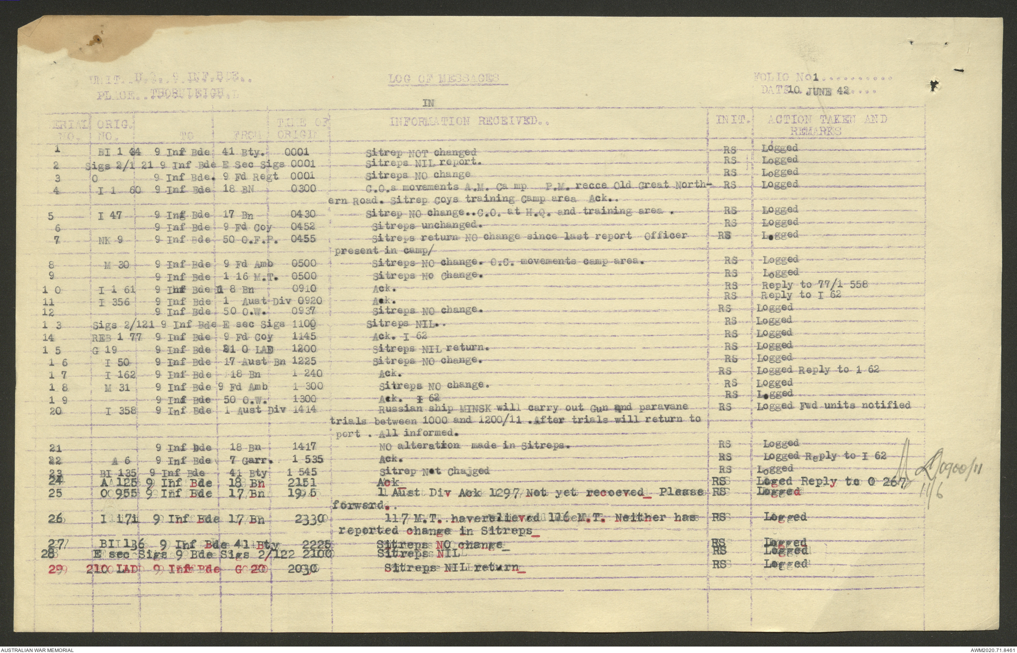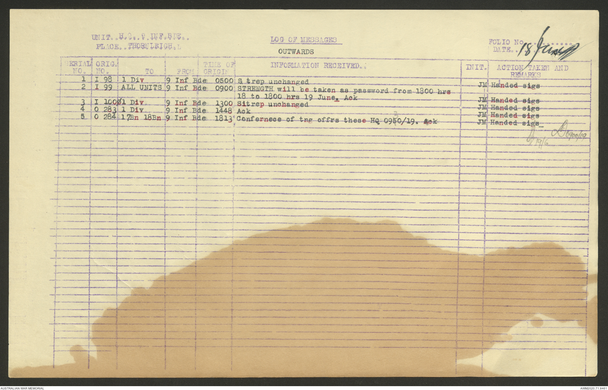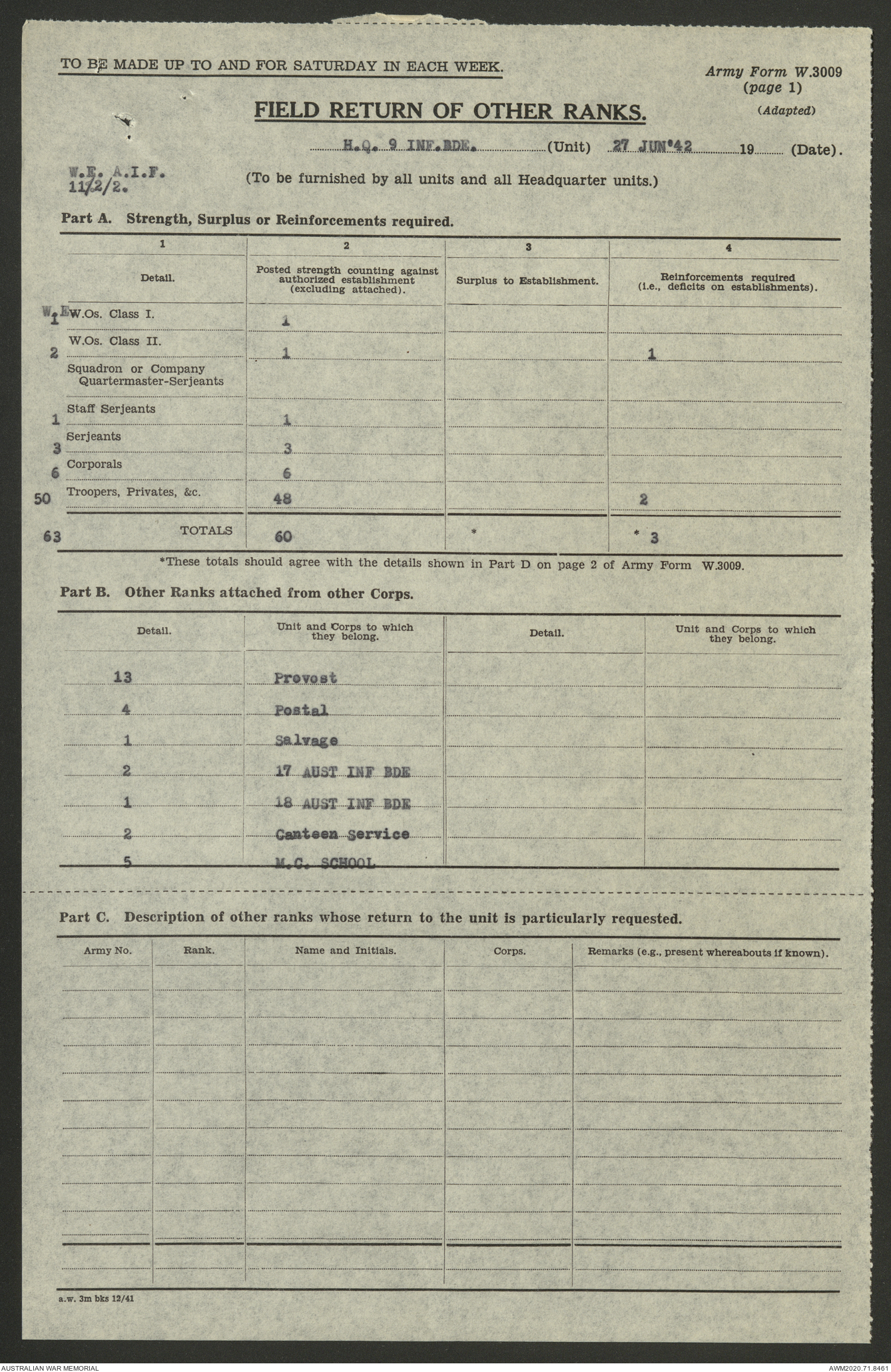 - AWM52 8/2/9 - Headquarters, 9 Infantry Brigade