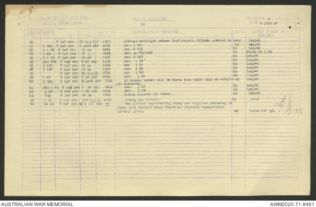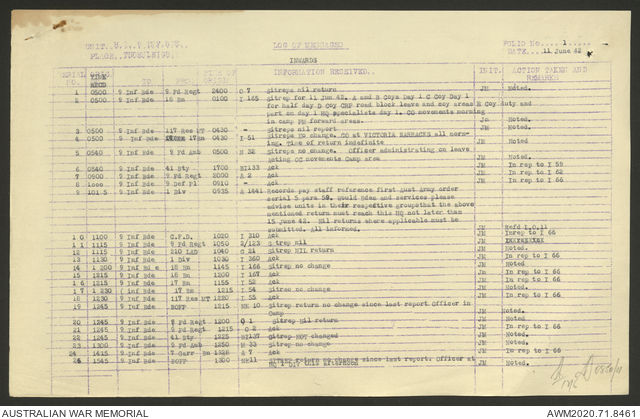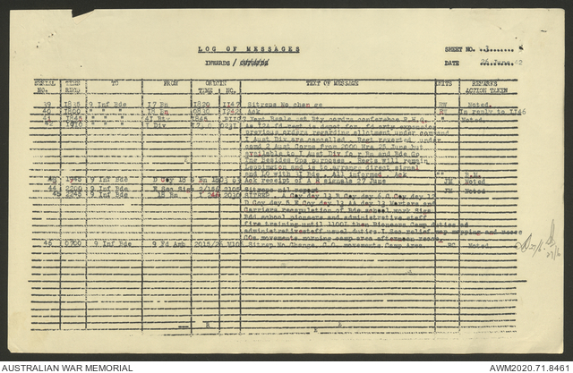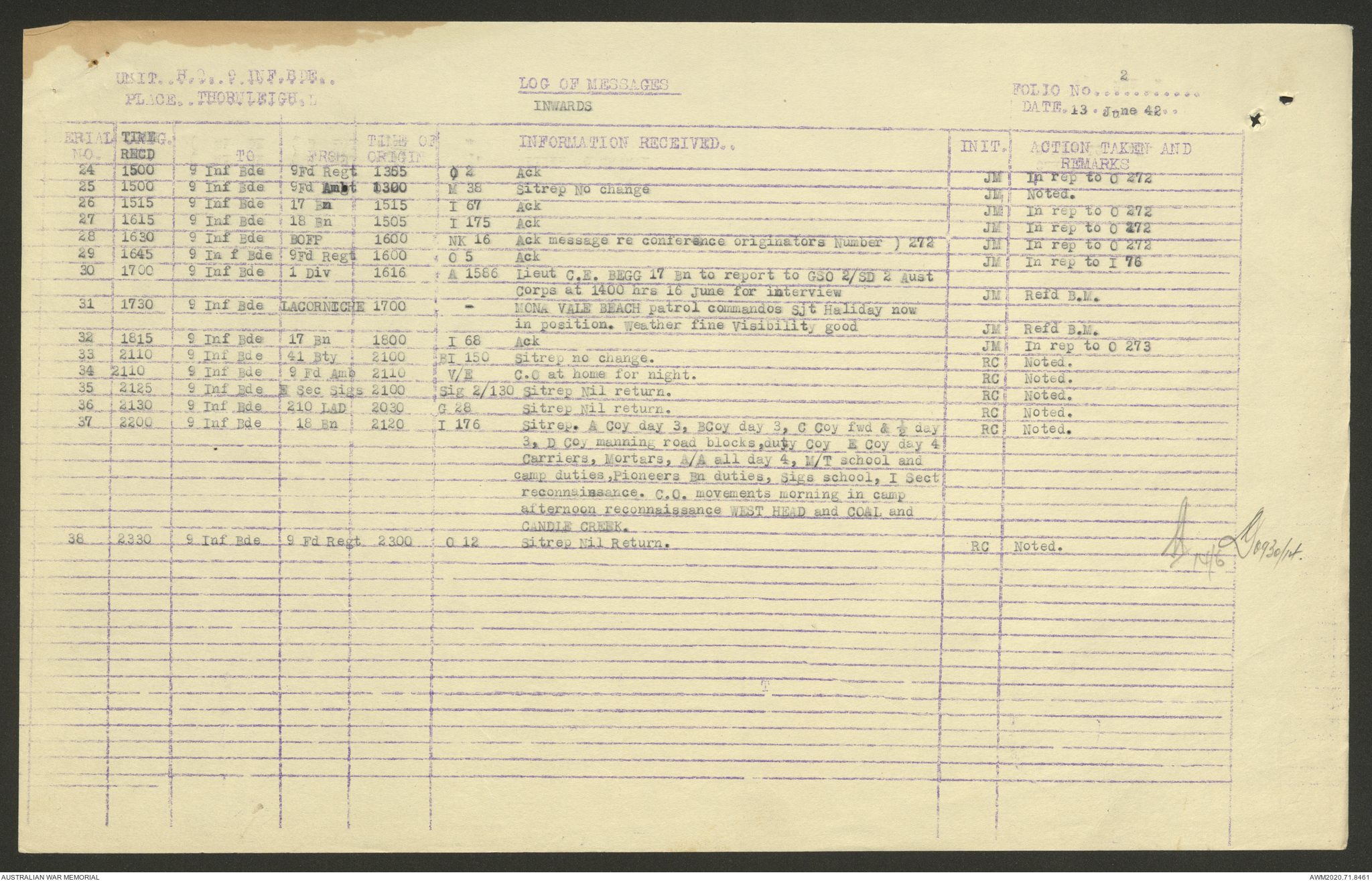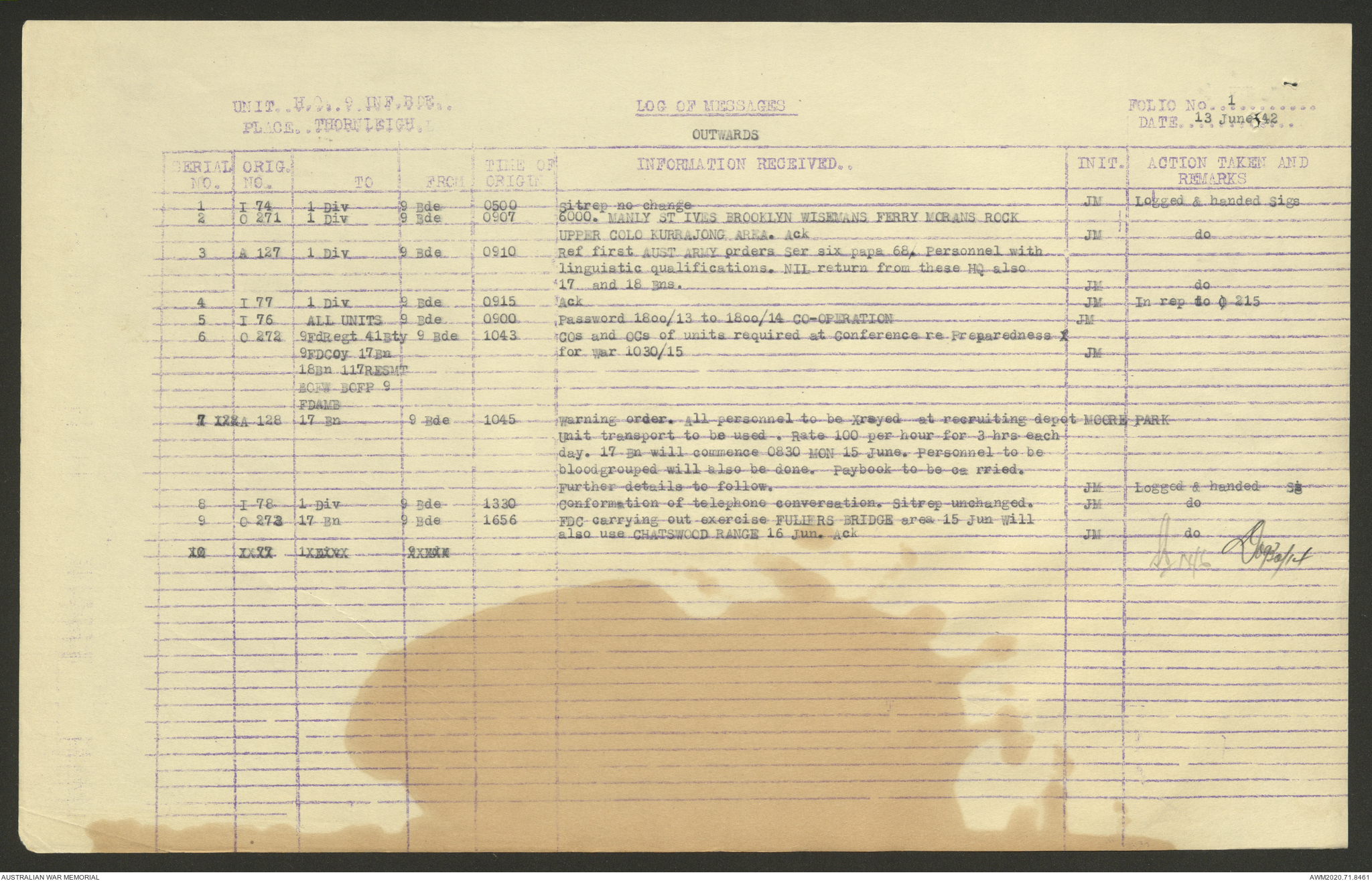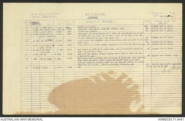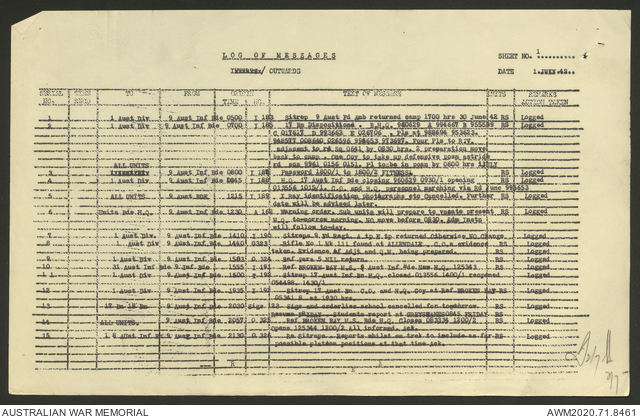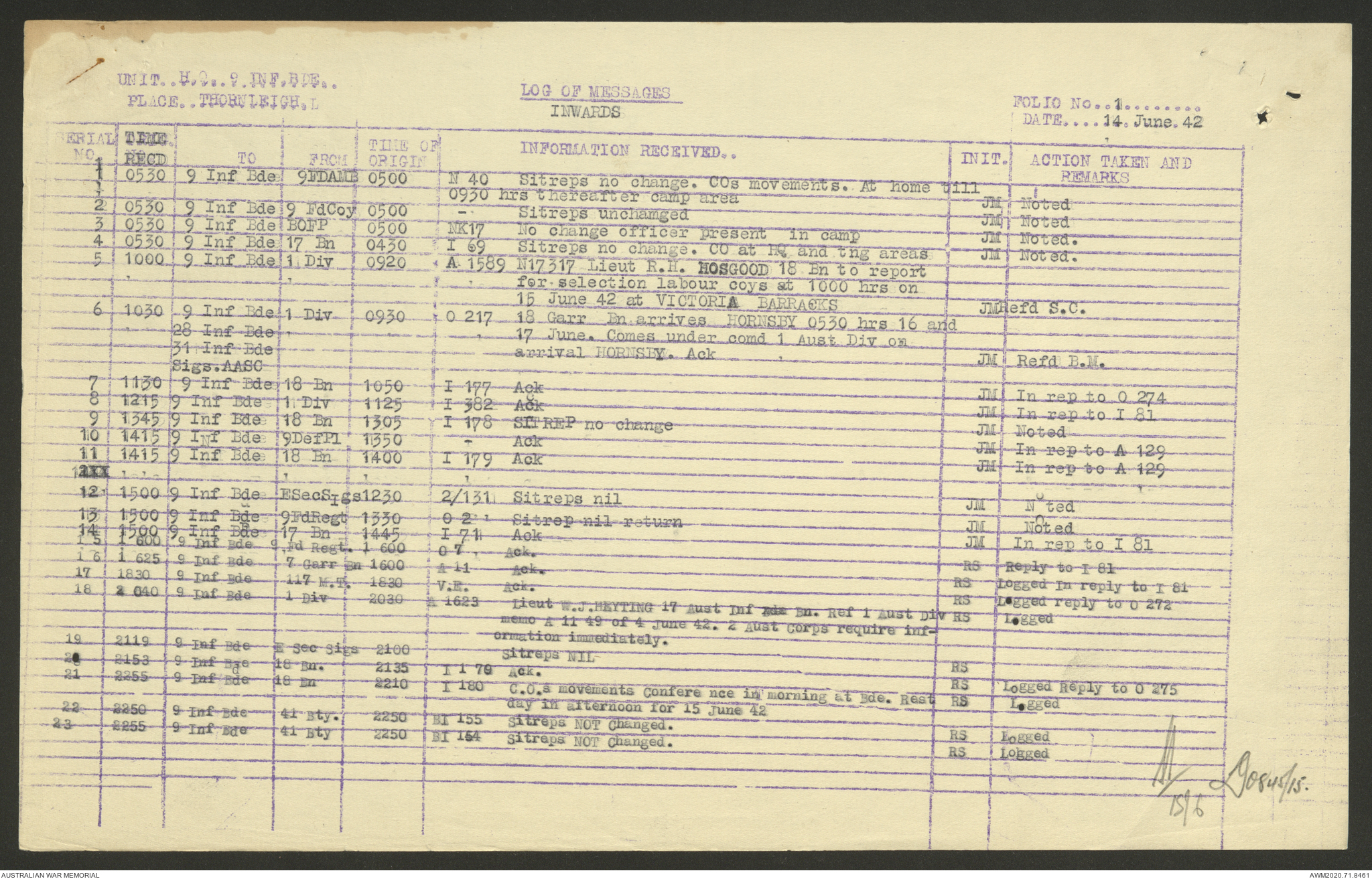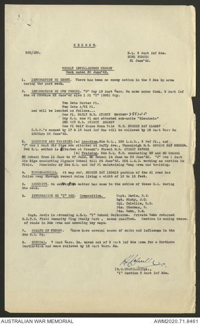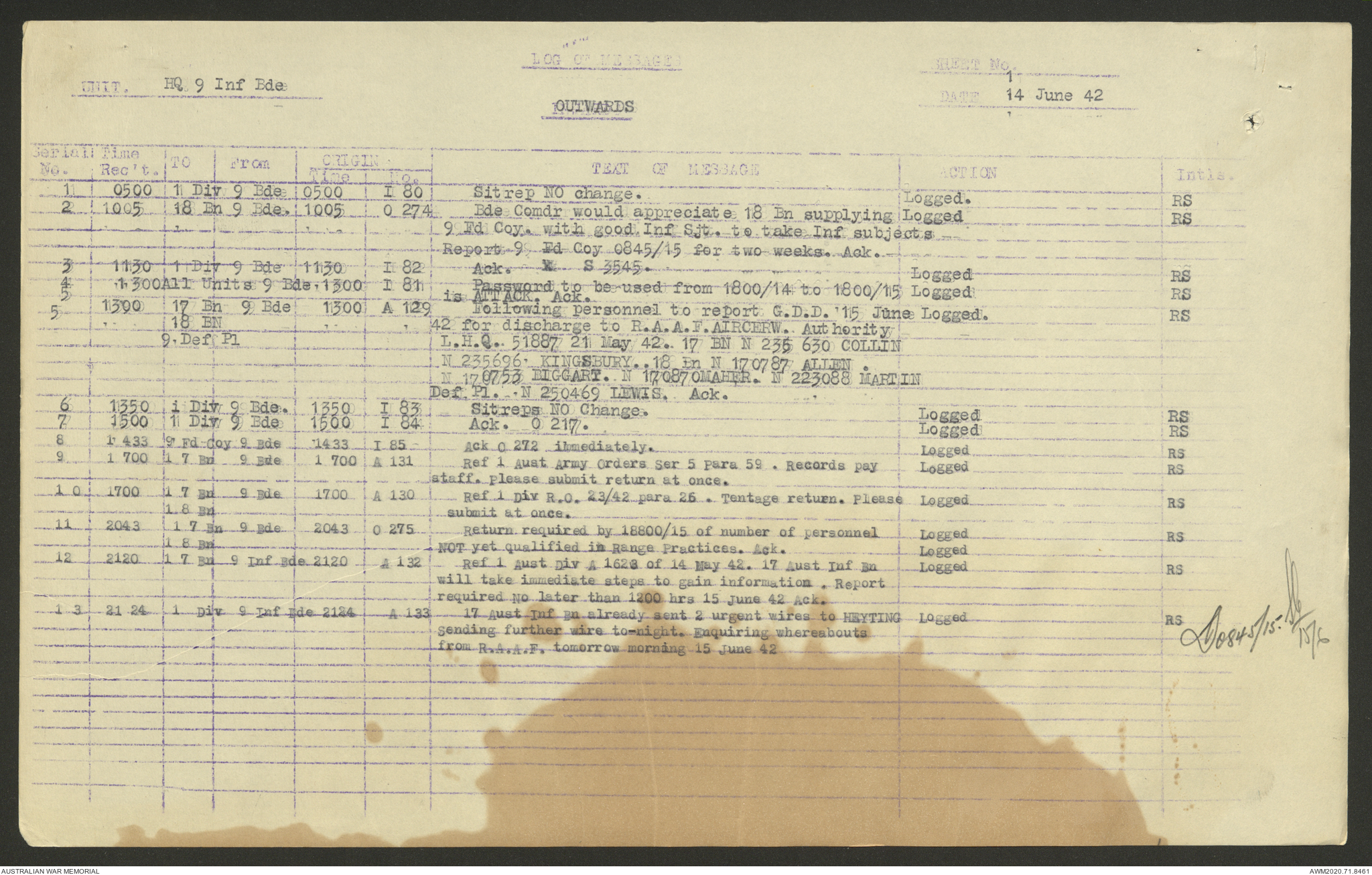 - AWM52 8/2/9 - Headquarters, 9 Infantry Brigade