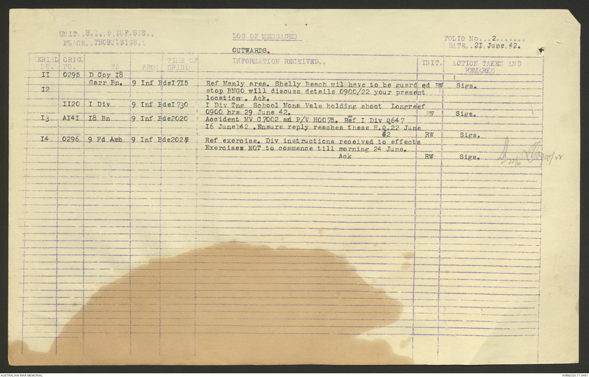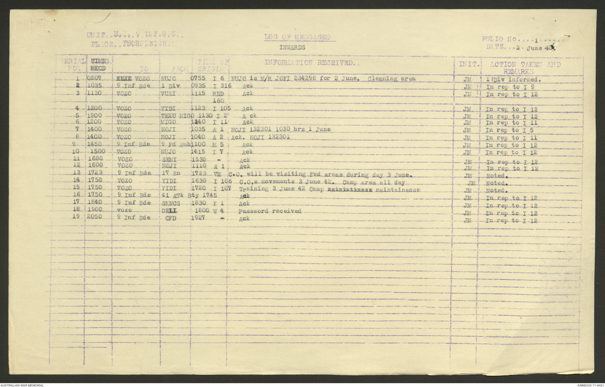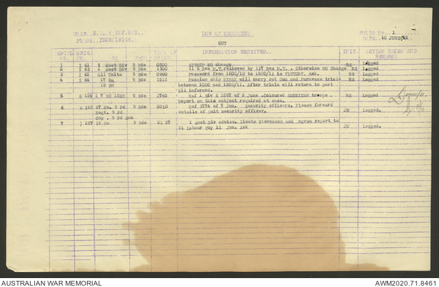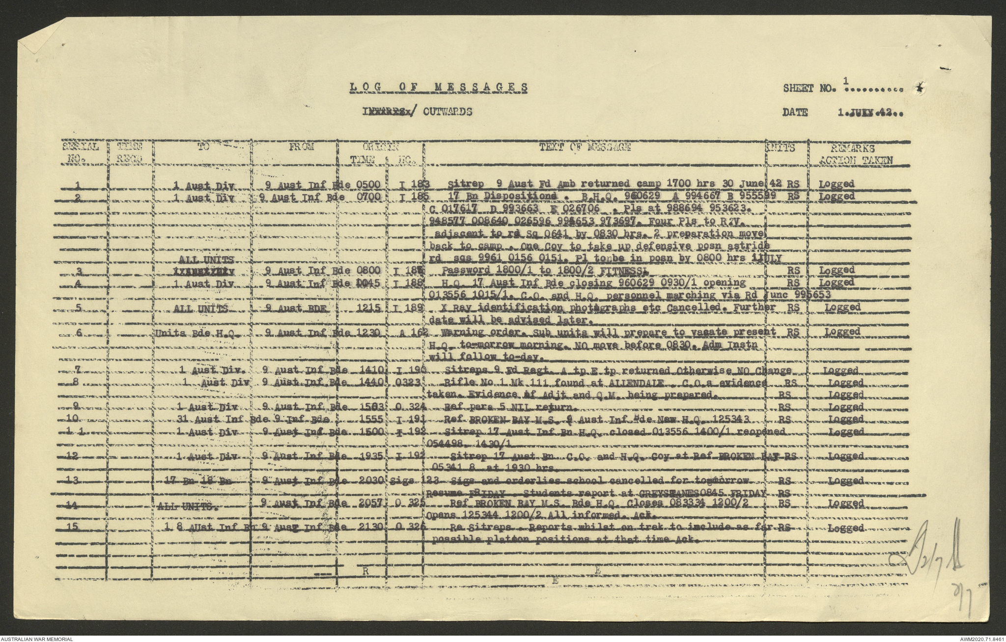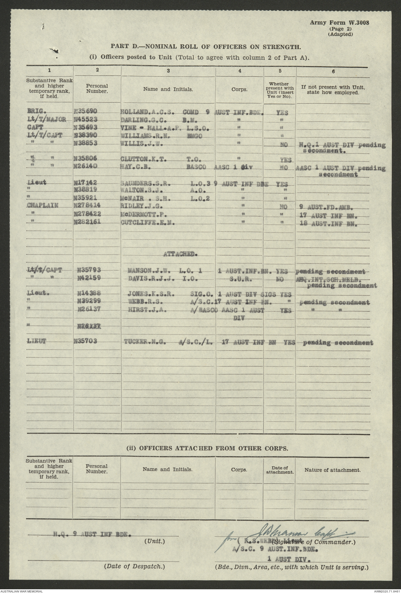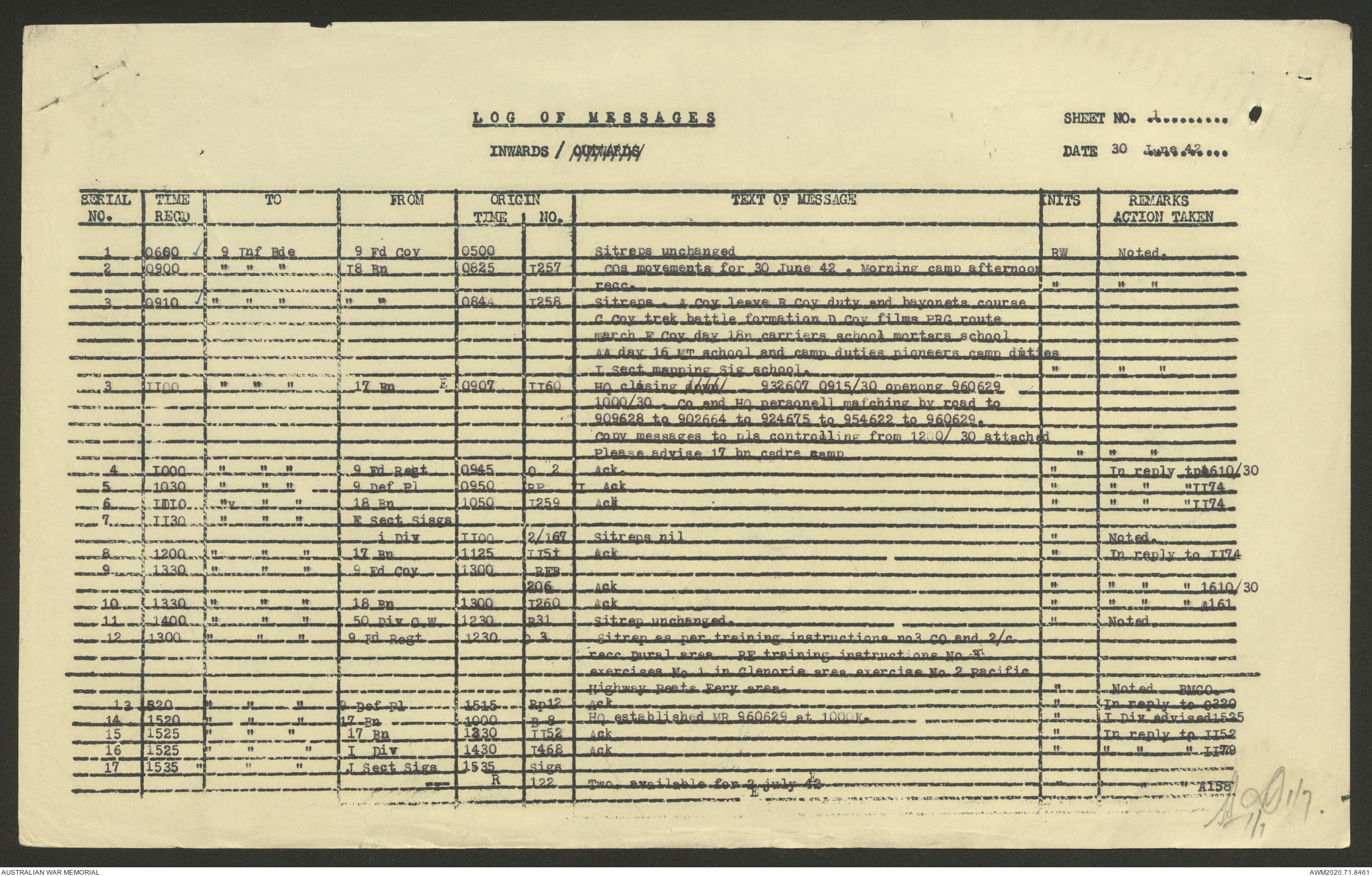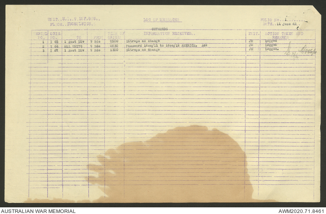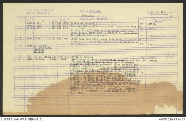 - AWM52 8/2/9 - Headquarters, 9 Infantry Brigade