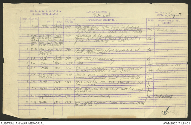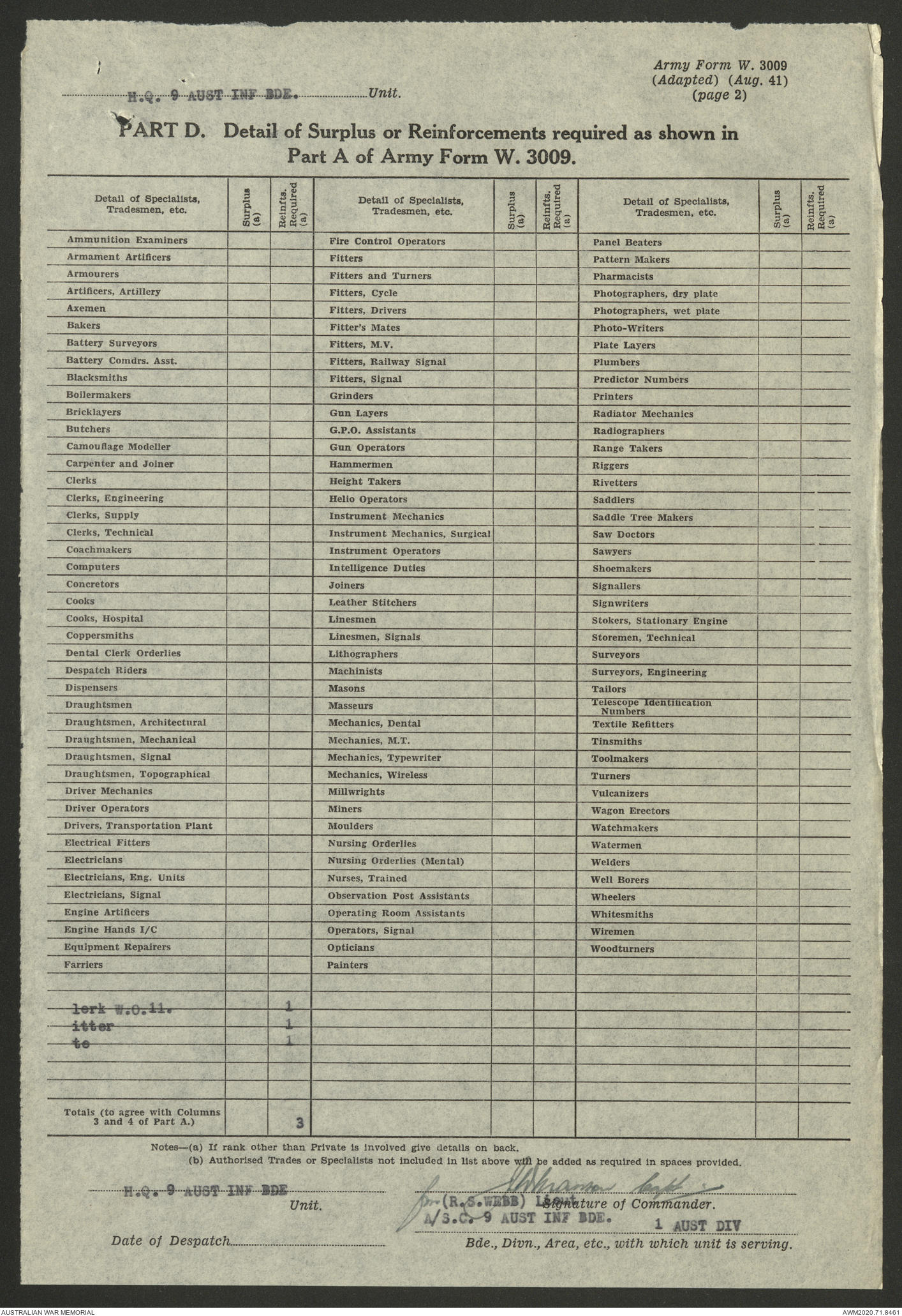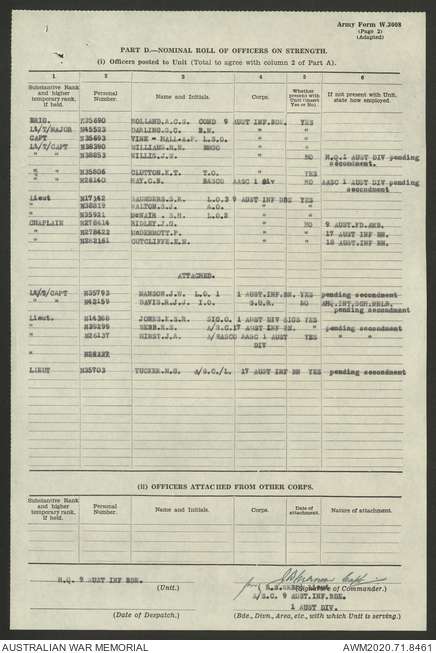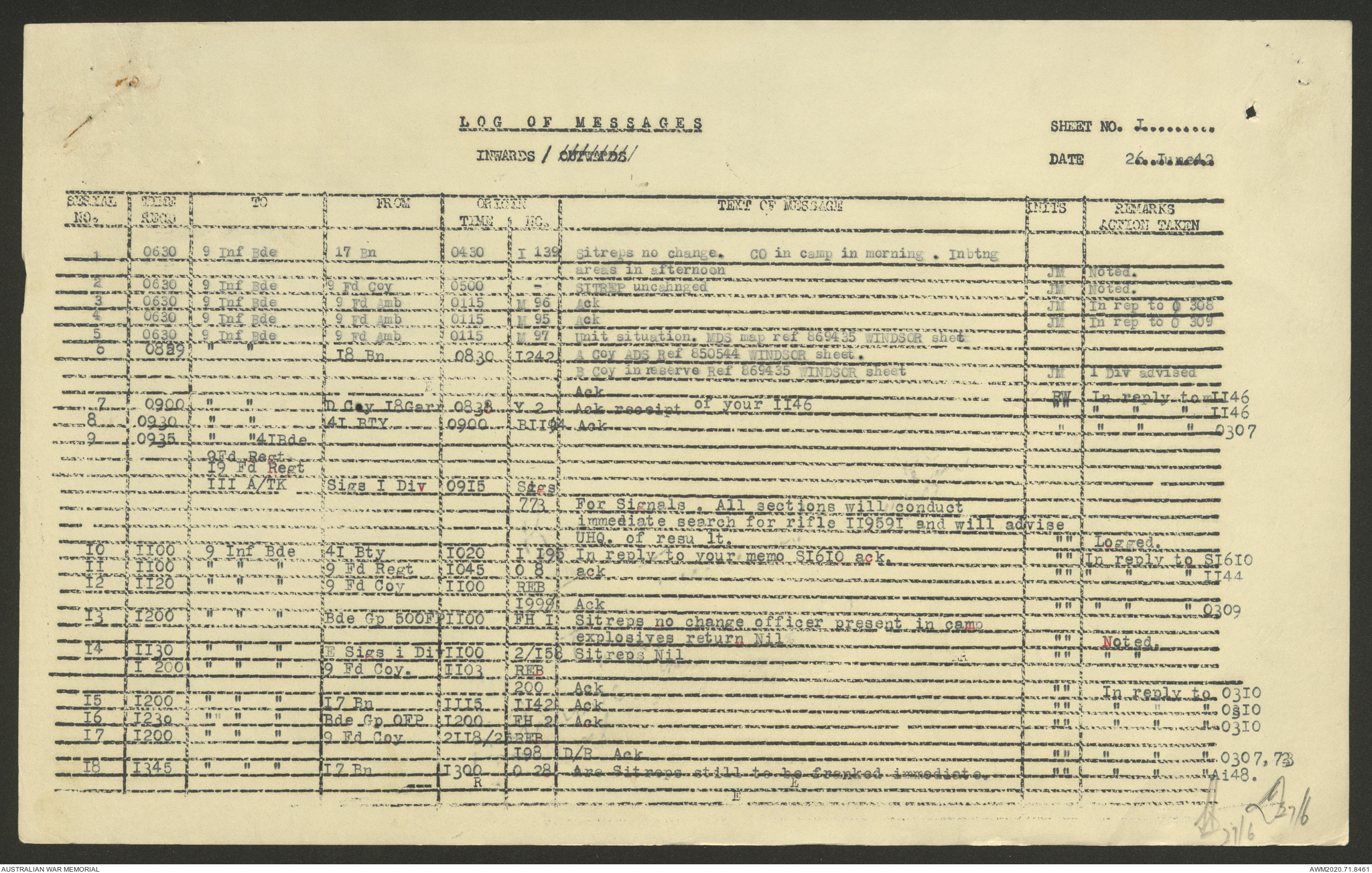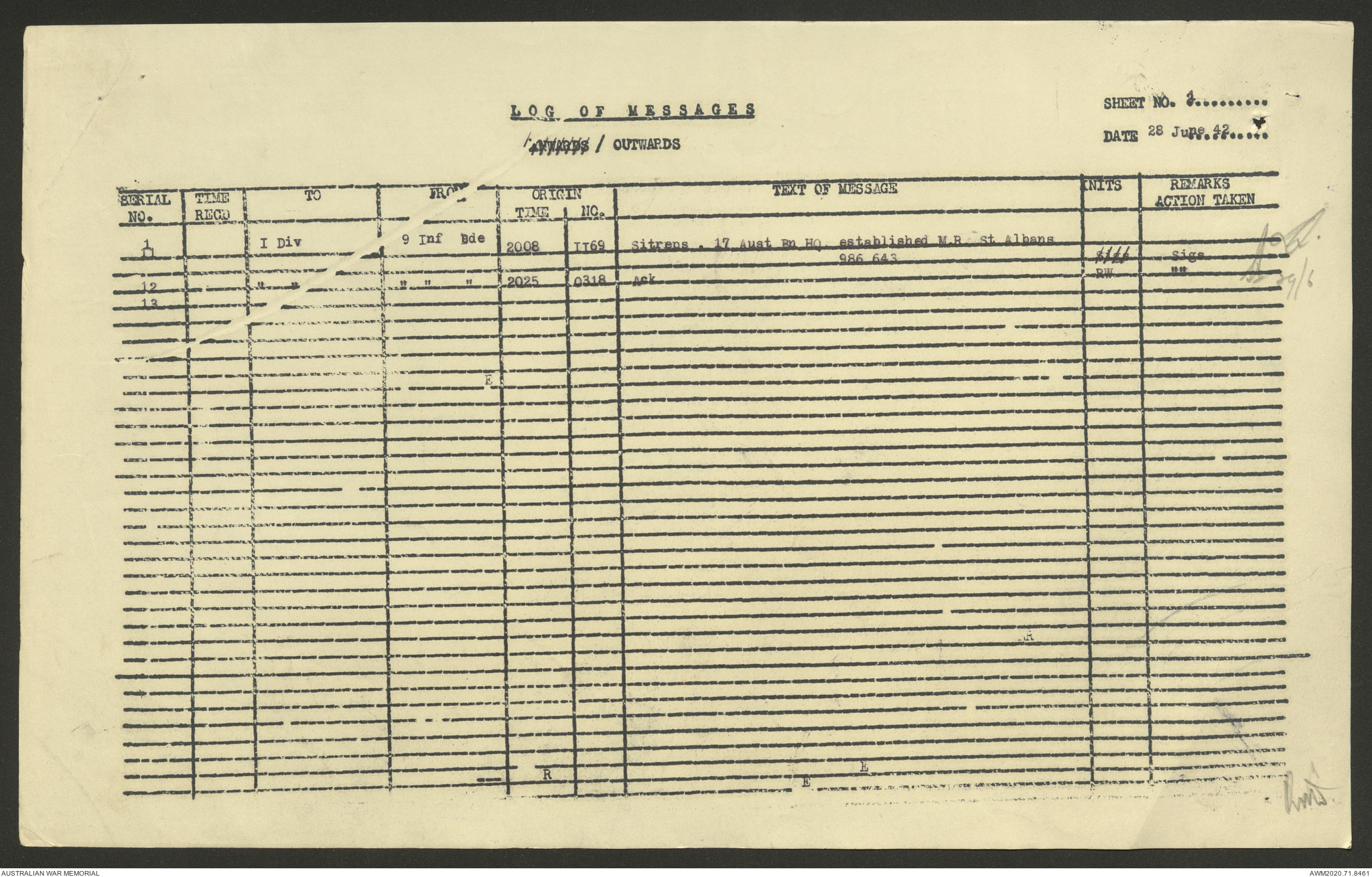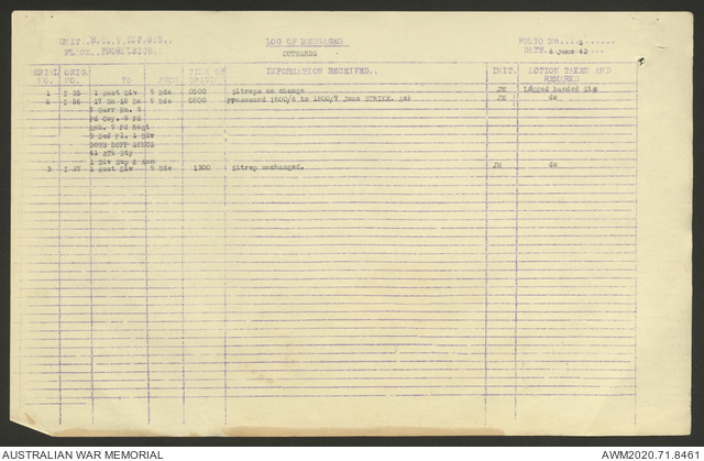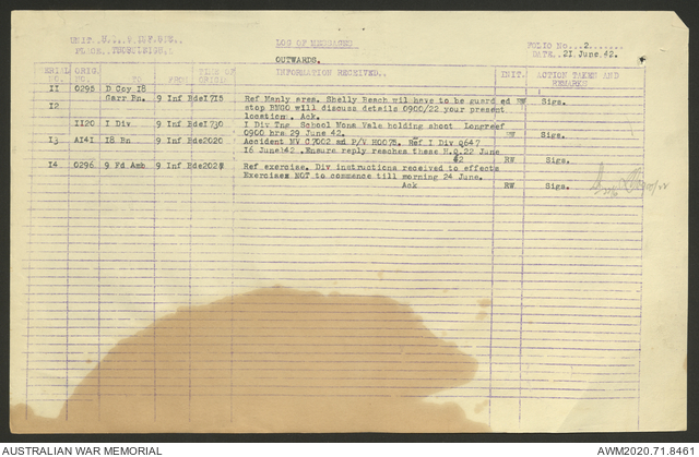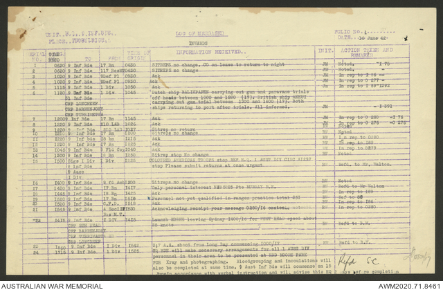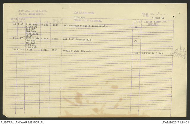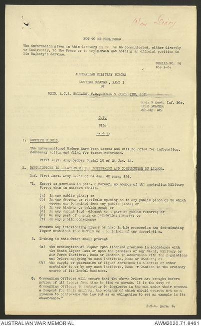 - AWM52 8/2/9 - Headquarters, 9 Infantry Brigade