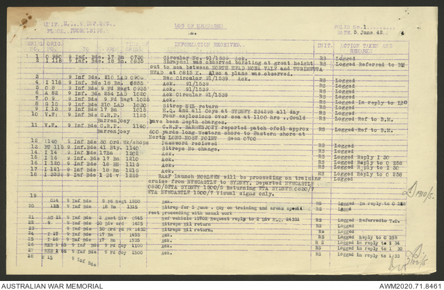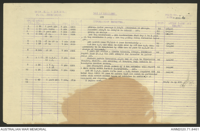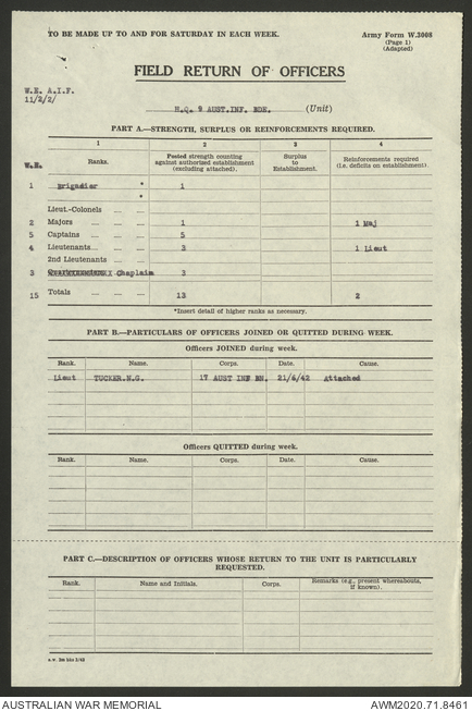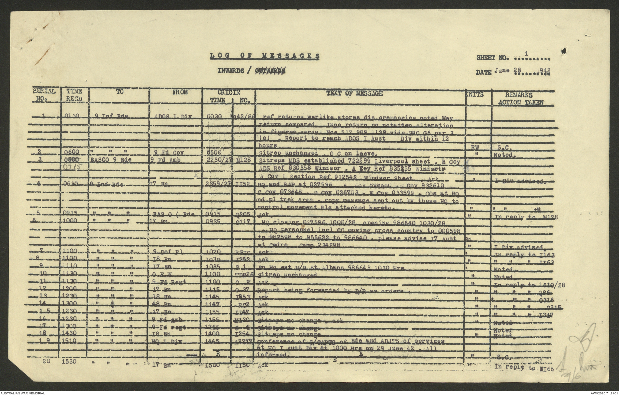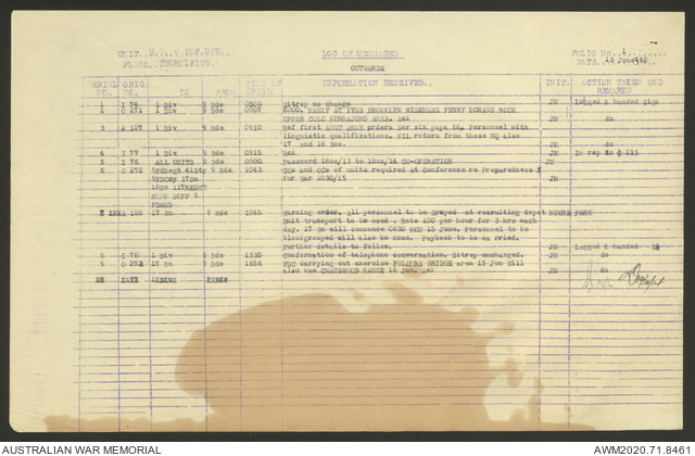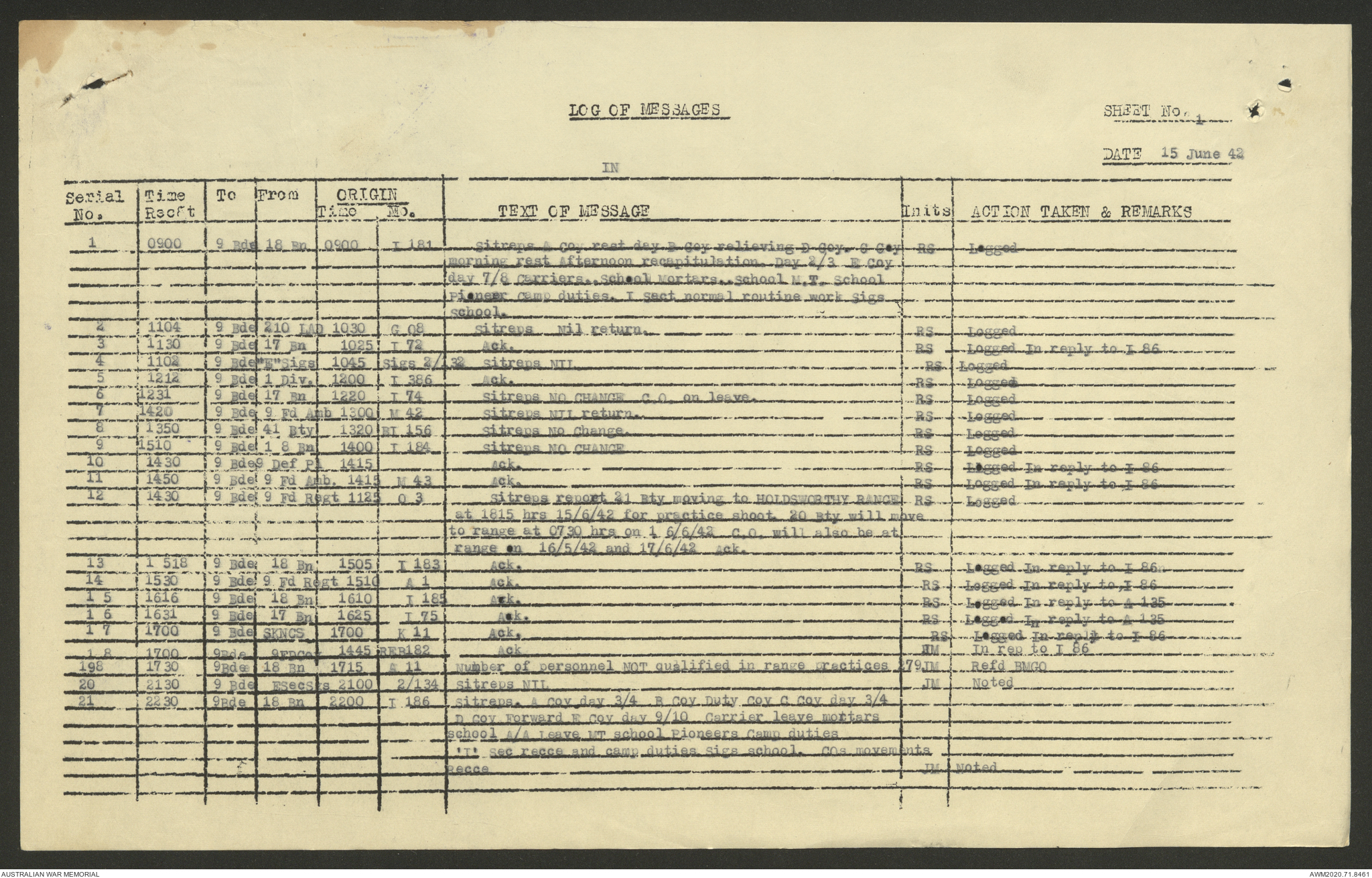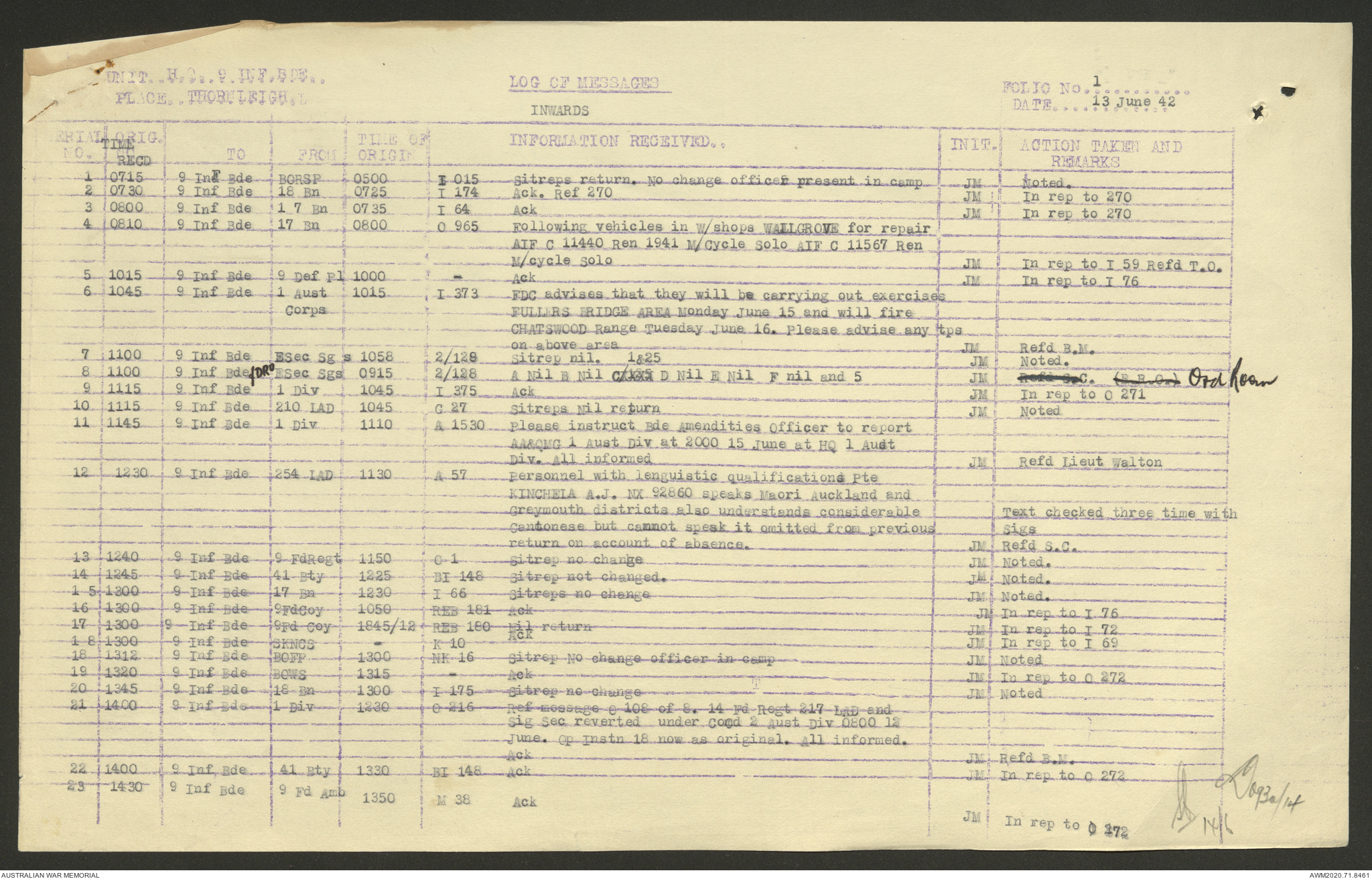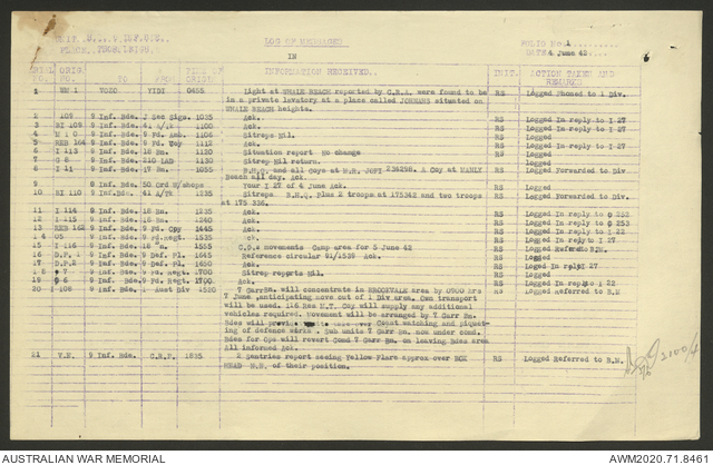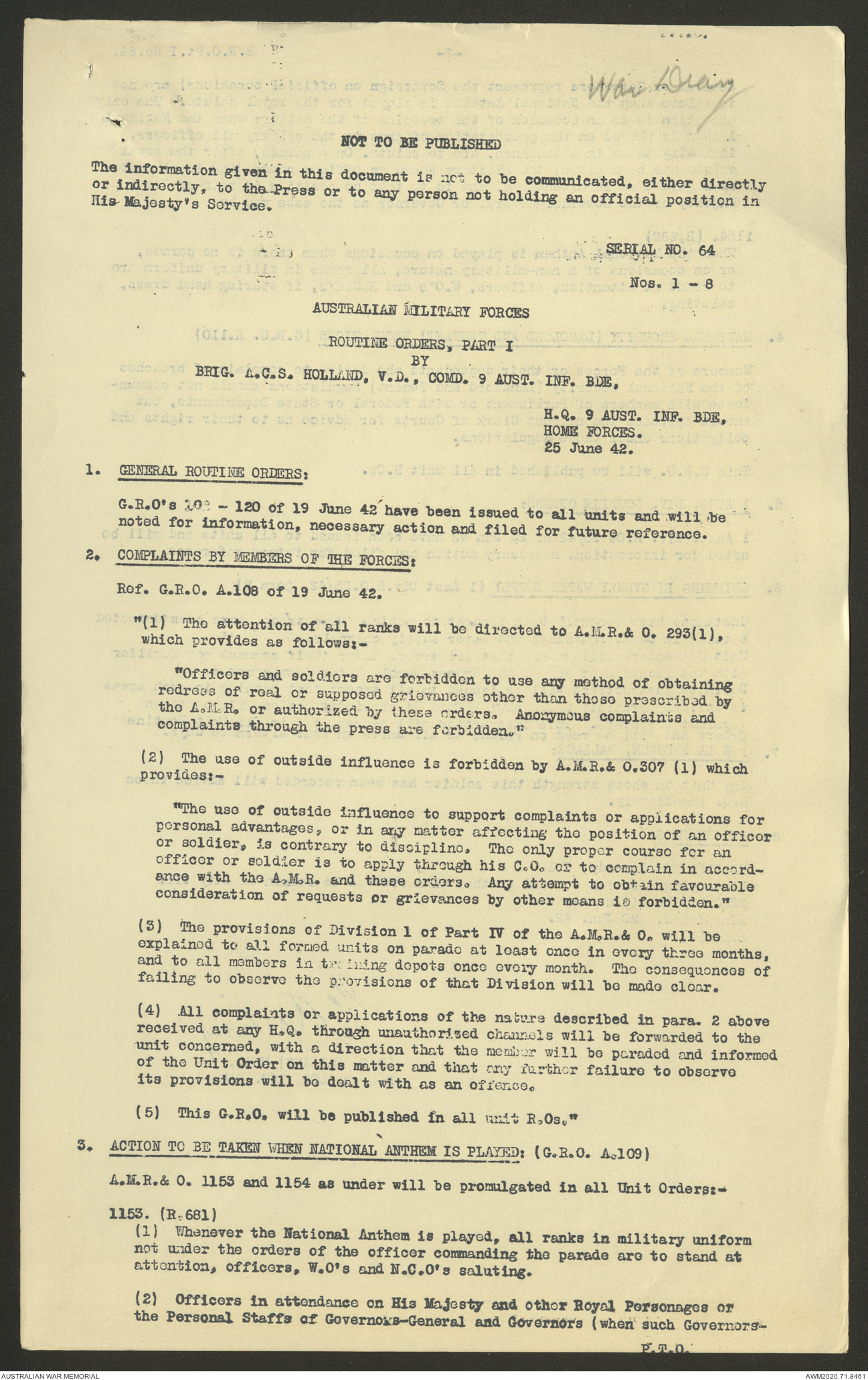 - AWM52 8/2/9 - Headquarters, 9 Infantry Brigade