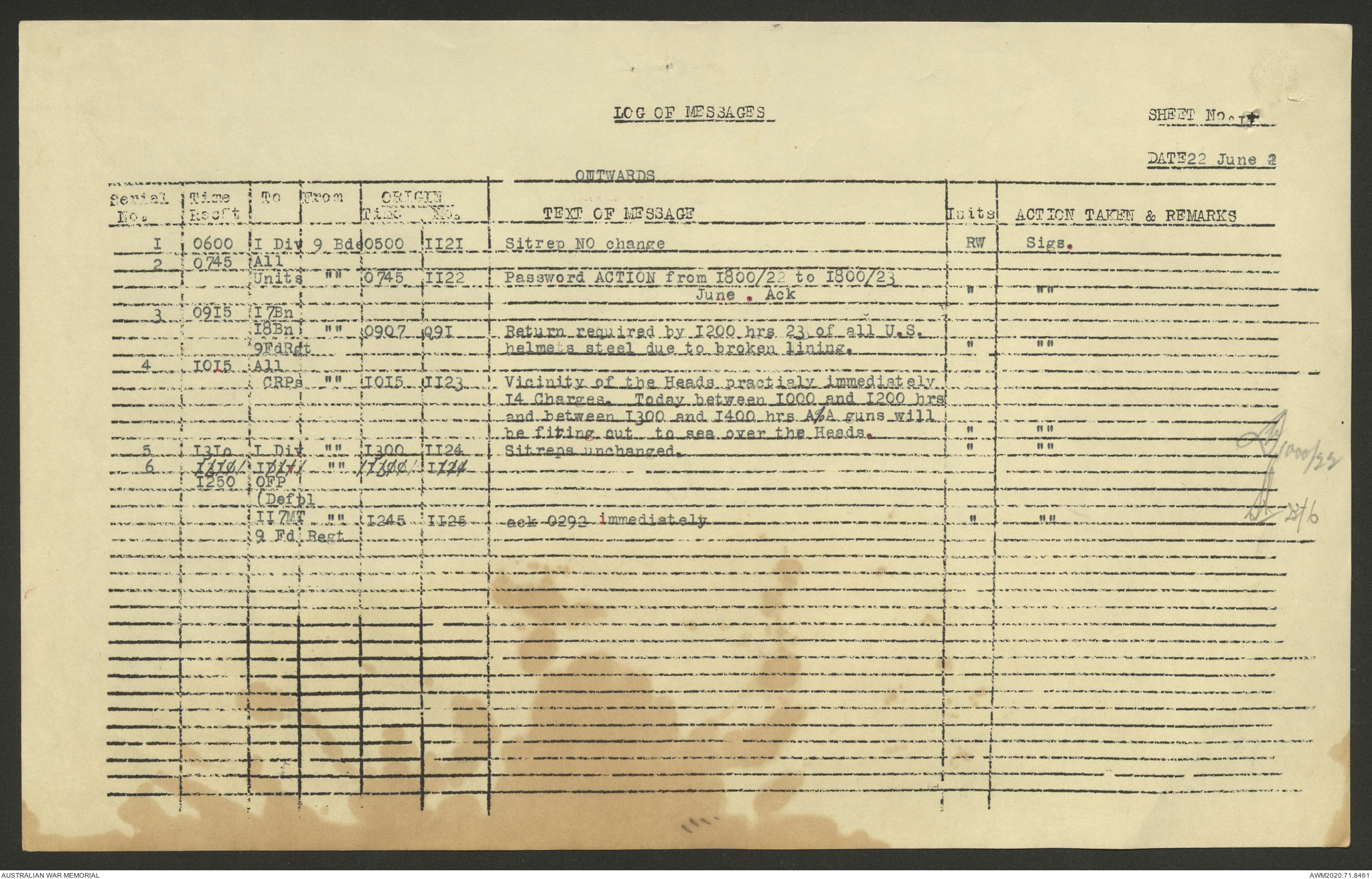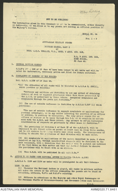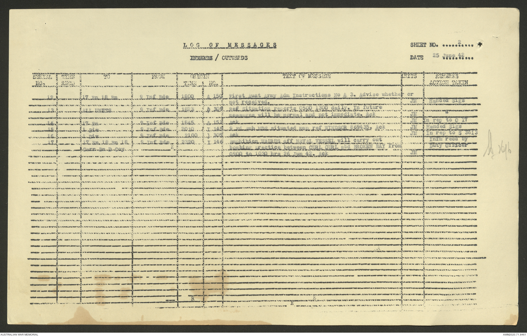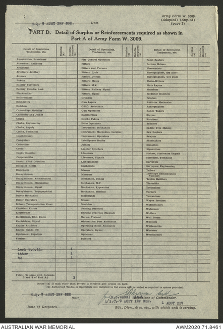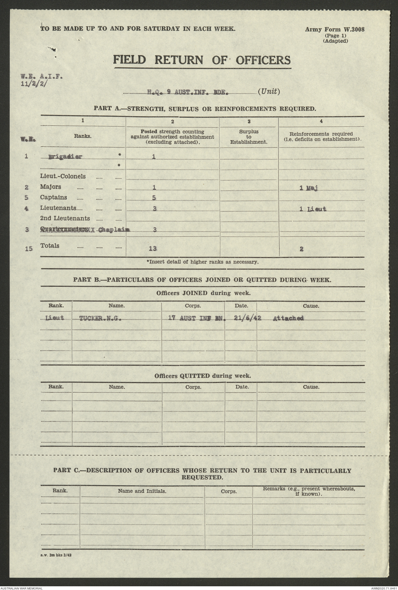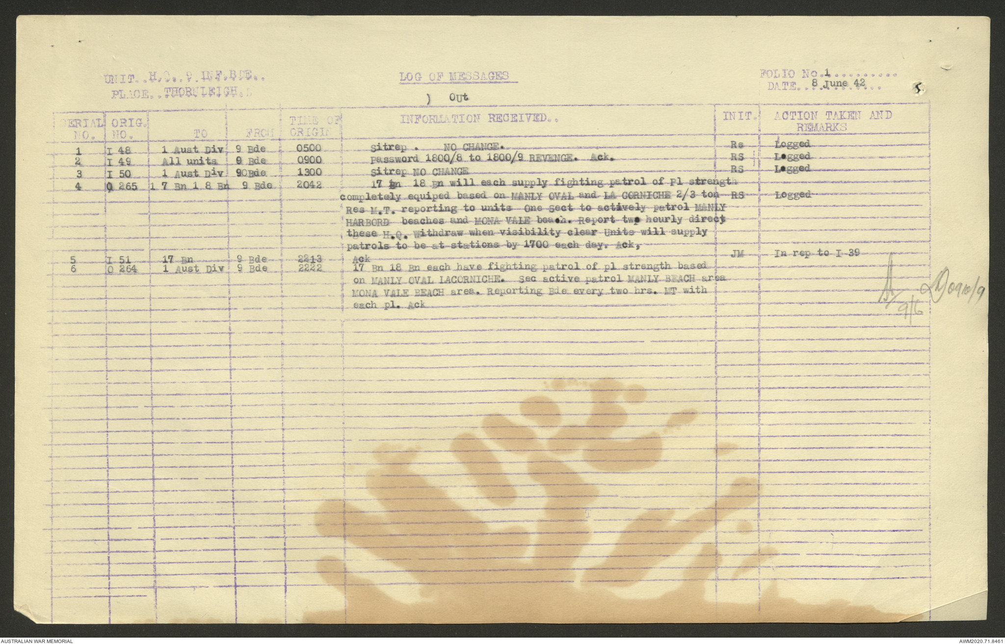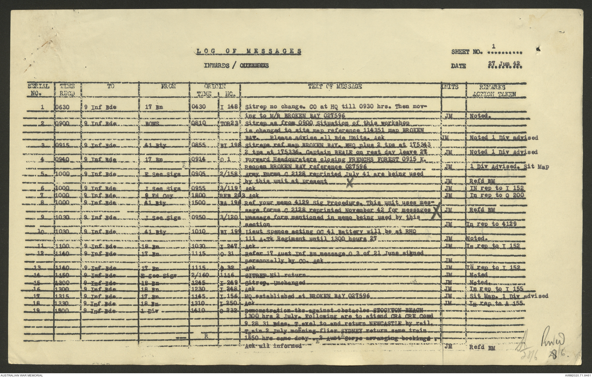 - AWM52 8/2/9 - Headquarters, 9 Infantry Brigade