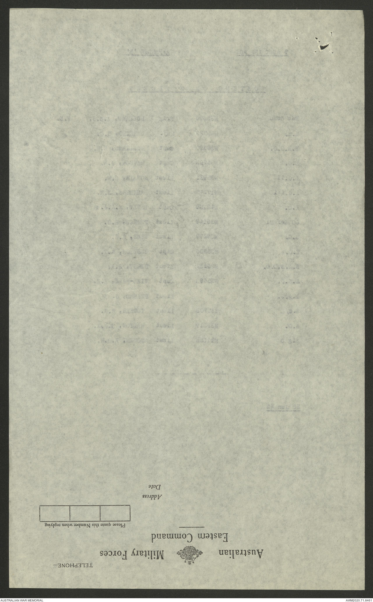 2nd AIF (Australian Imperial Force) and CMF (Citizen Military Forces) unit war diaries, 1939-45 War