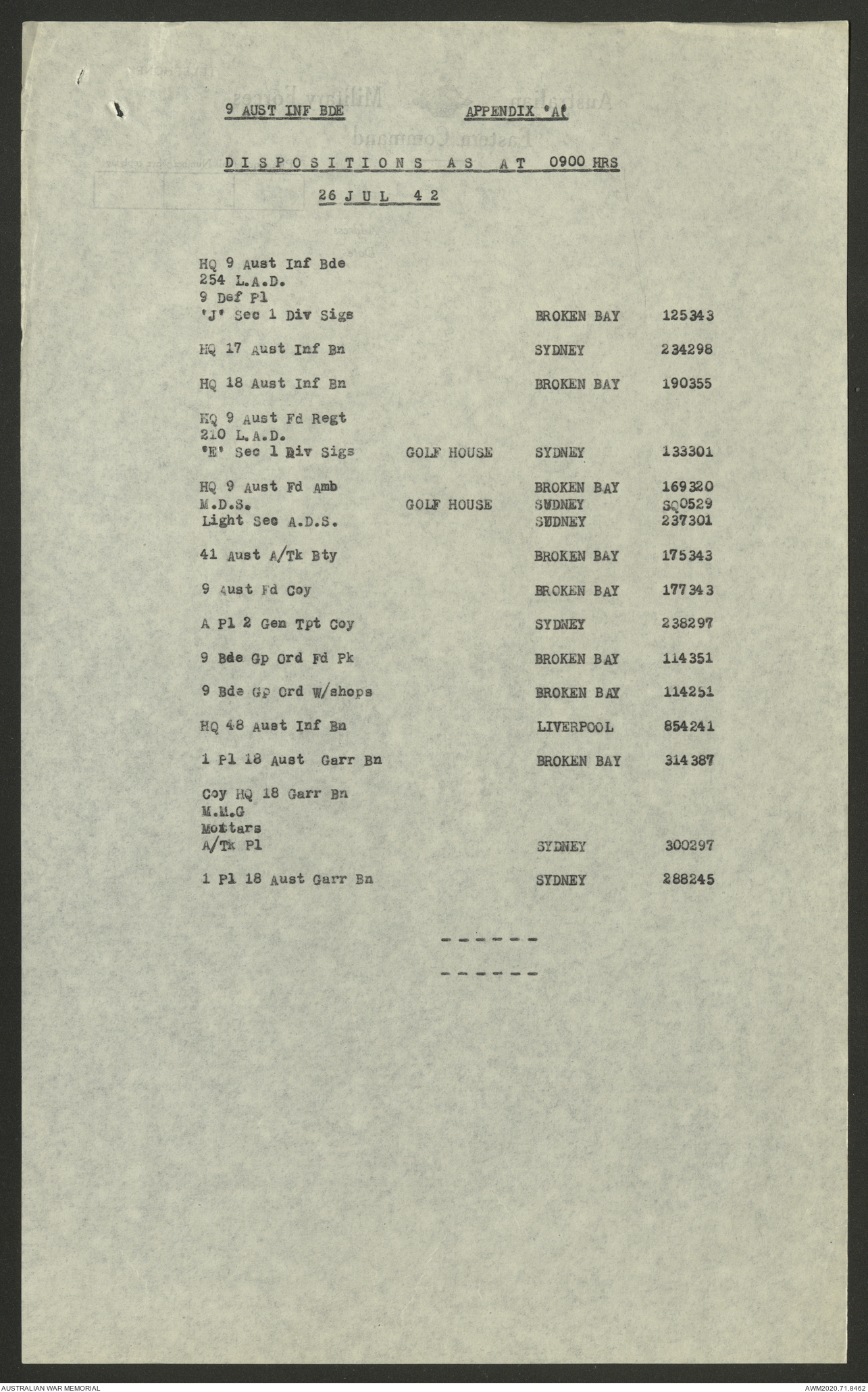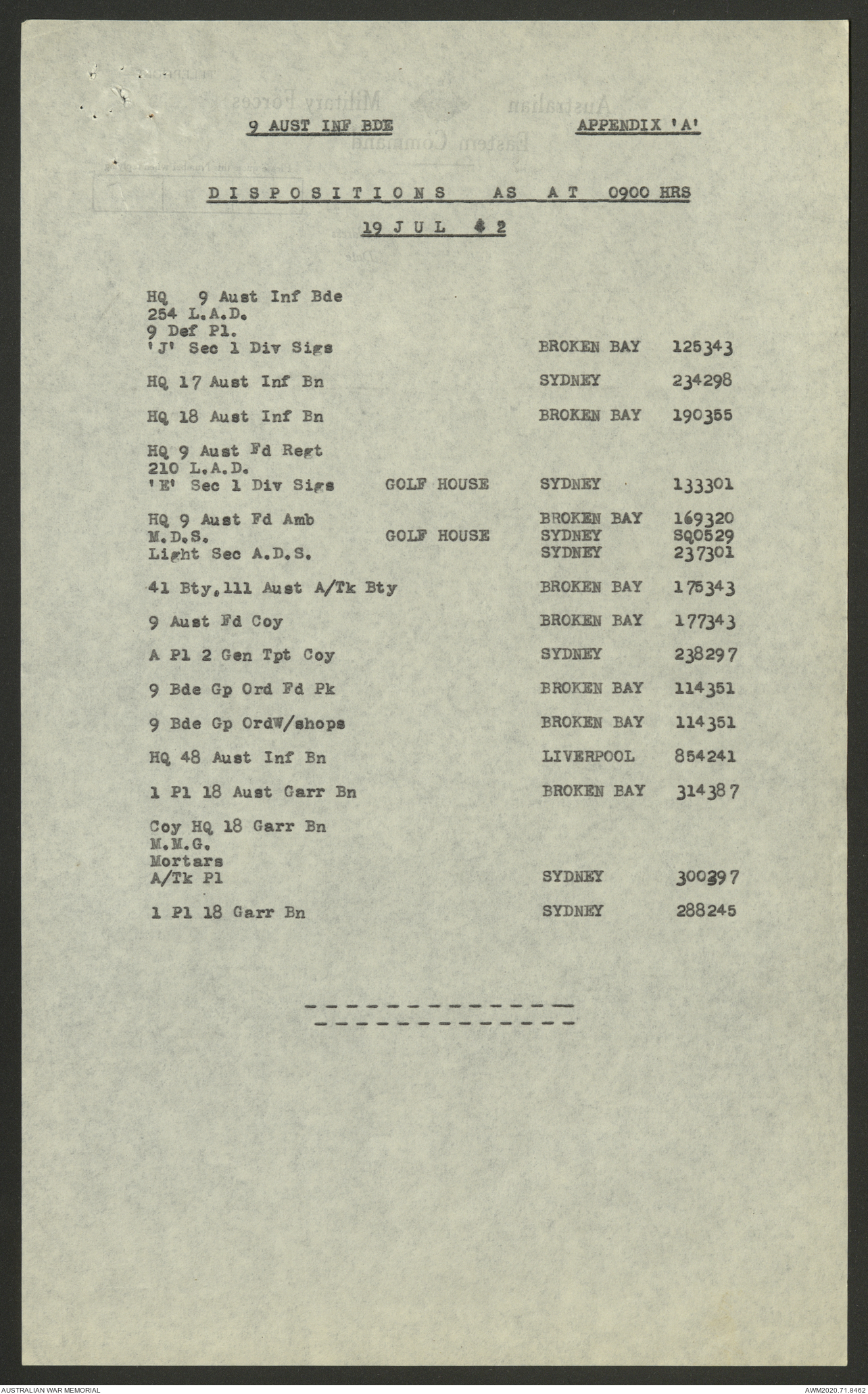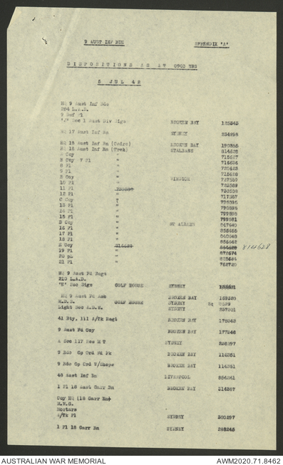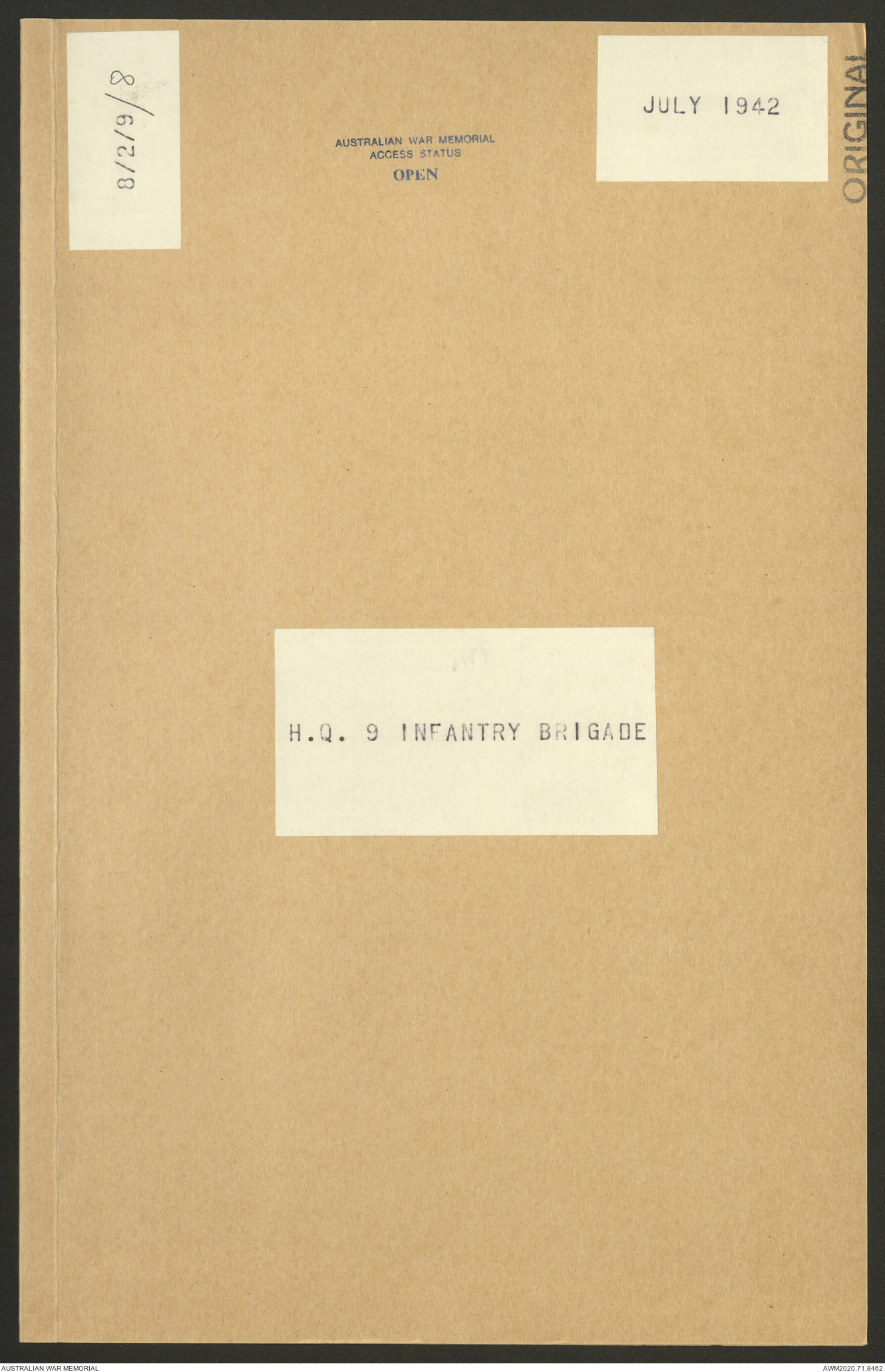 - AWM52 8/2/9 - Headquarters, 9 Infantry Brigade