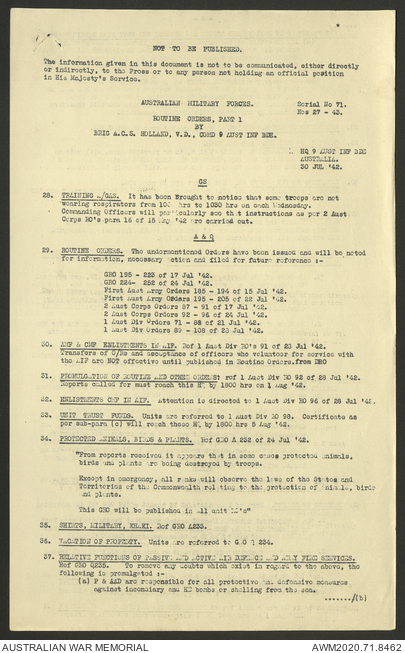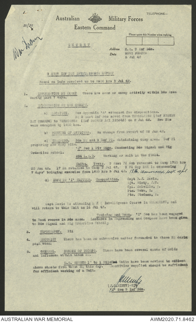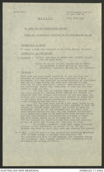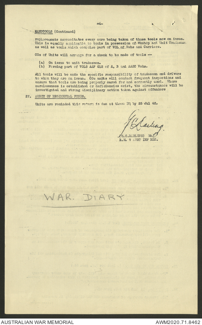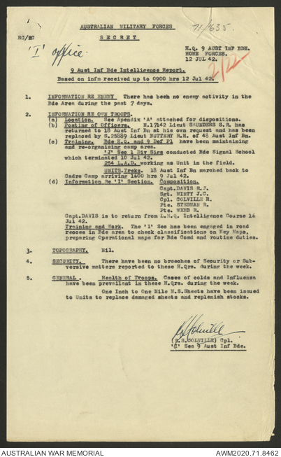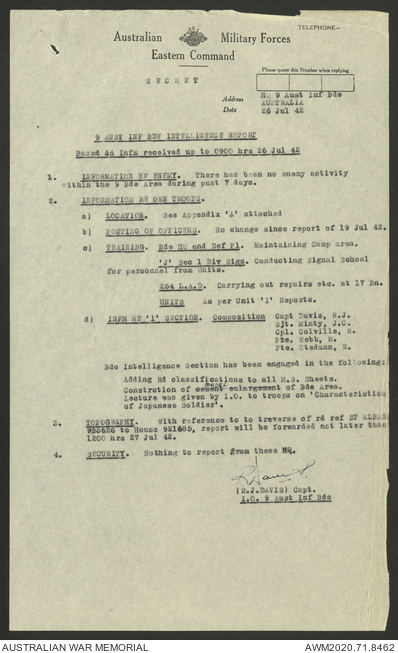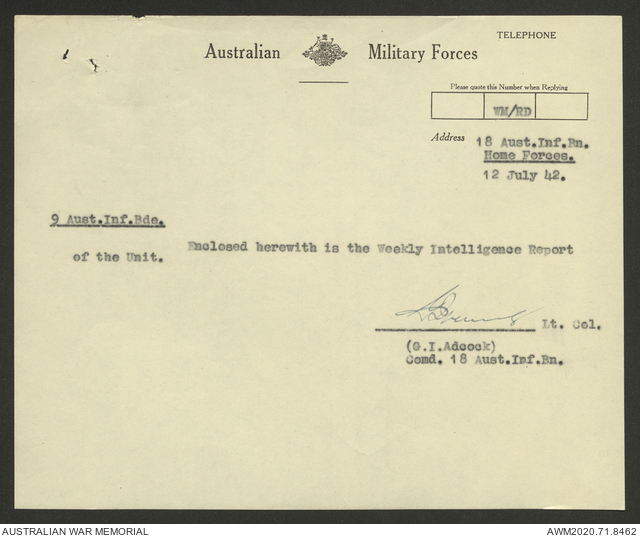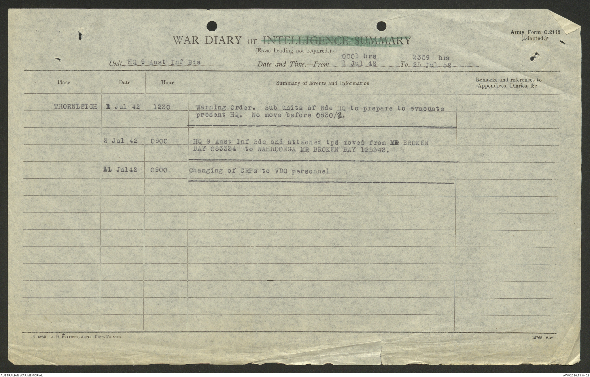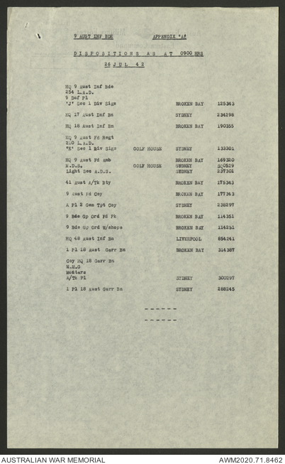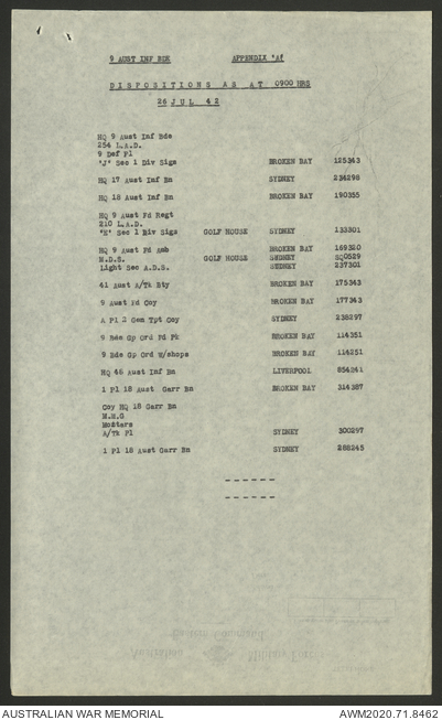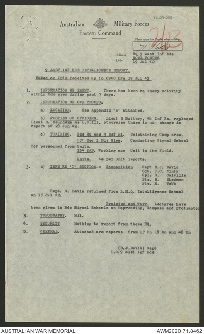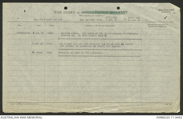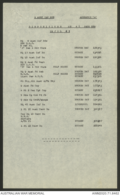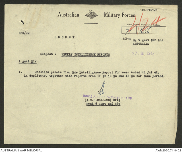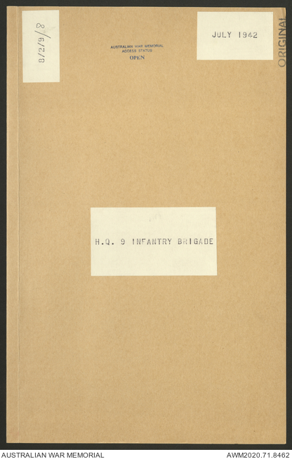 AWM52 8/2/9/8 - [Unit War Diaries, 1939-45 War] HQ 9 Australian Infantry Brigade, July 1942