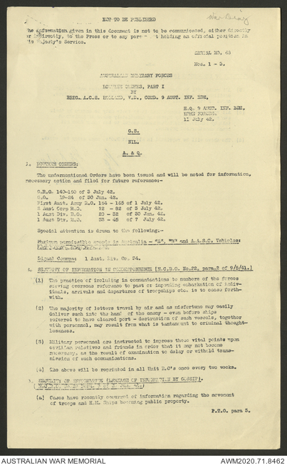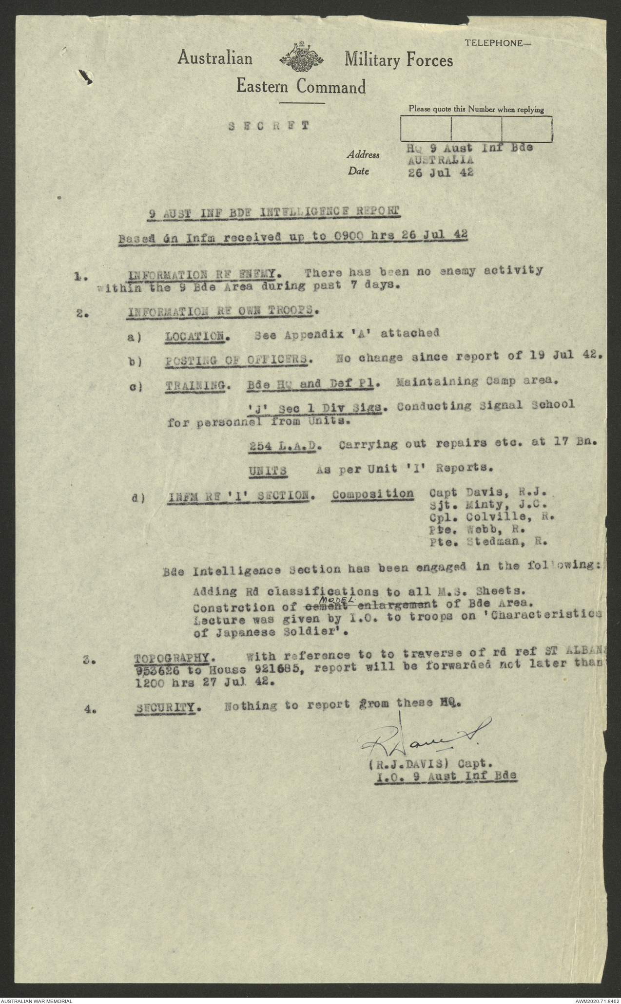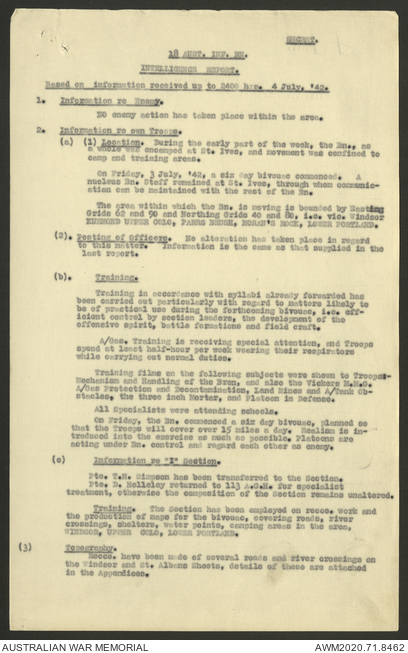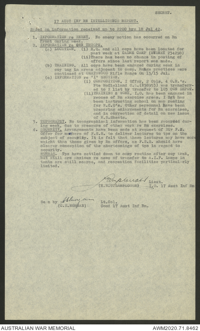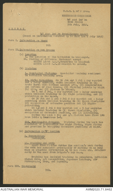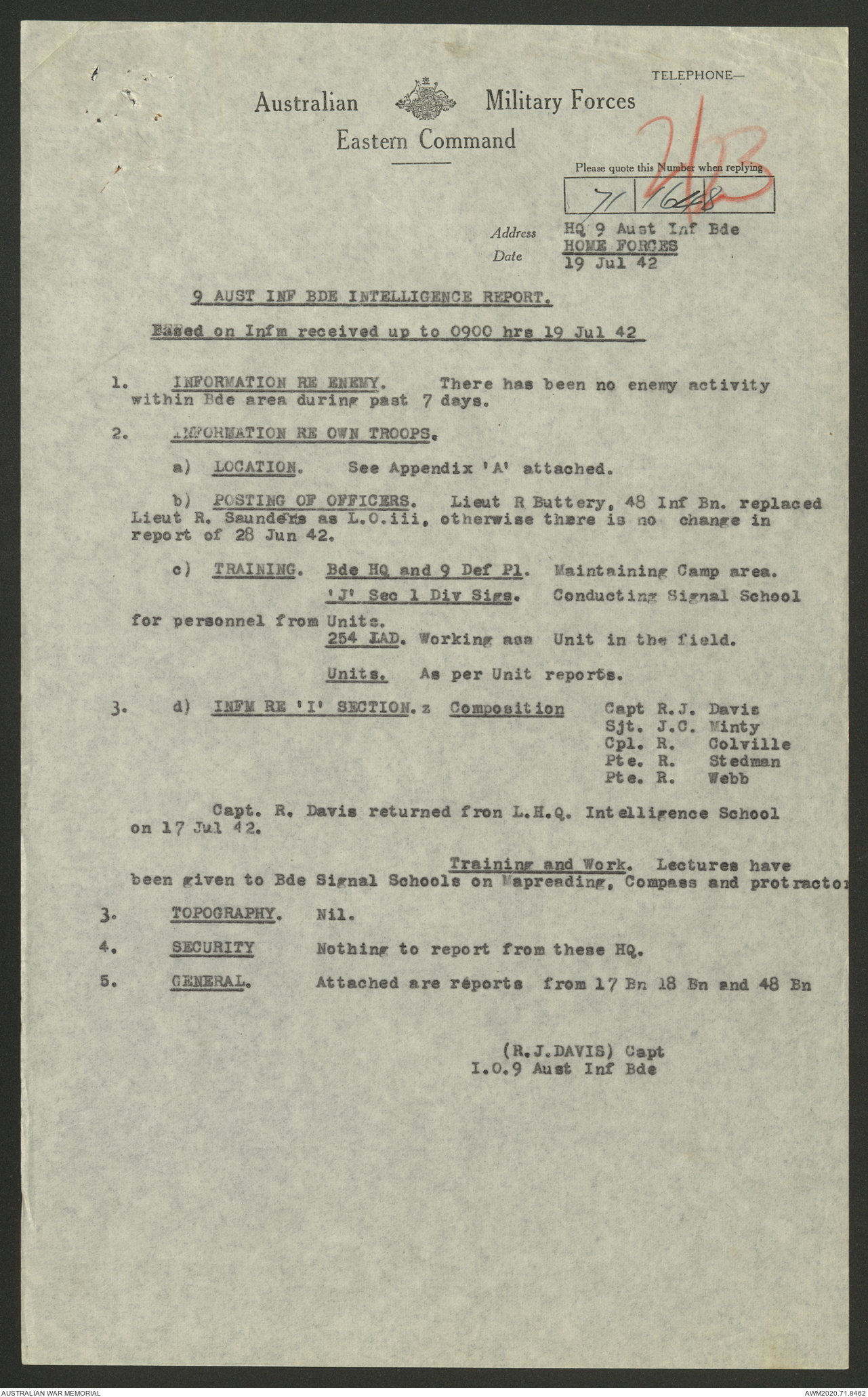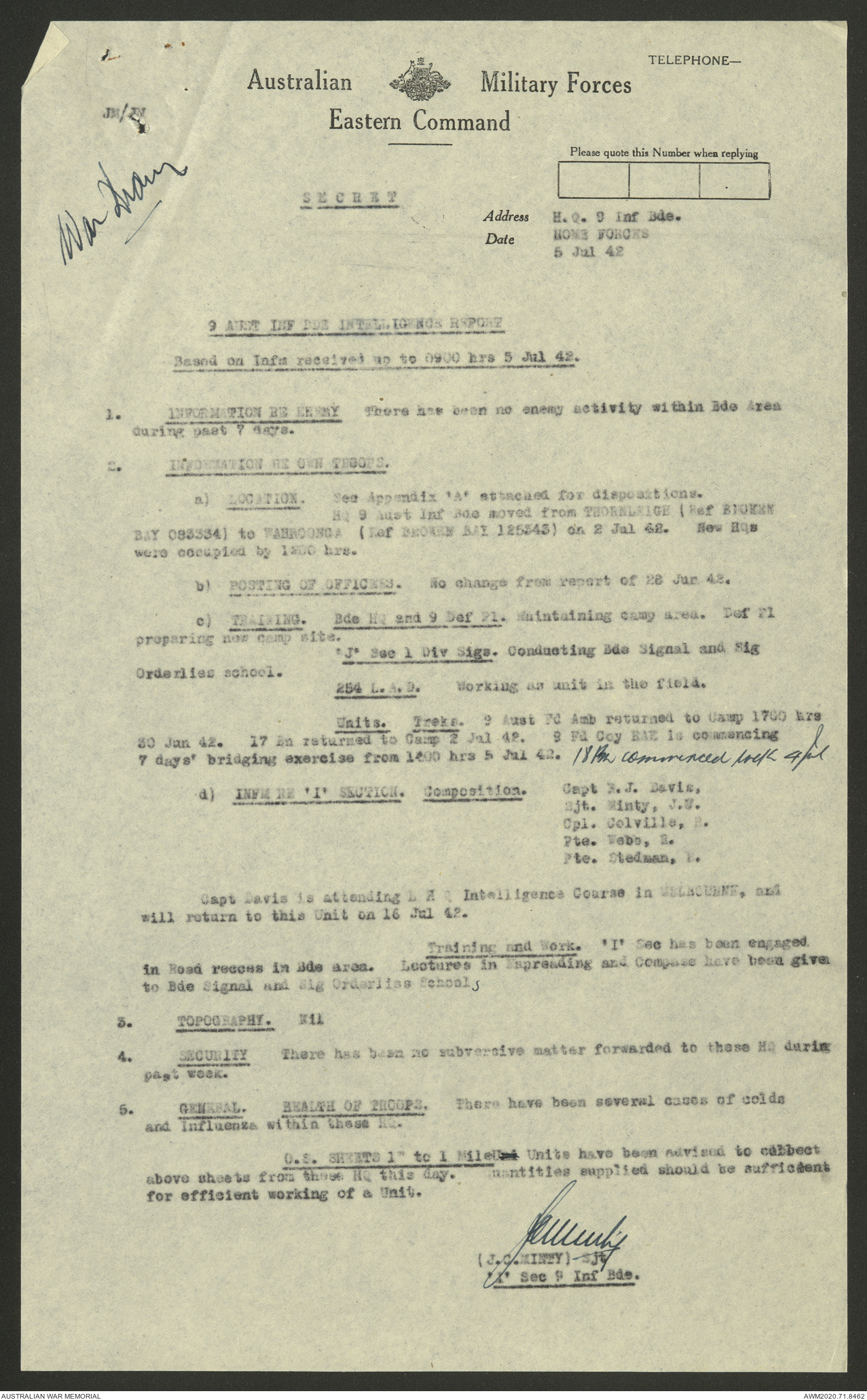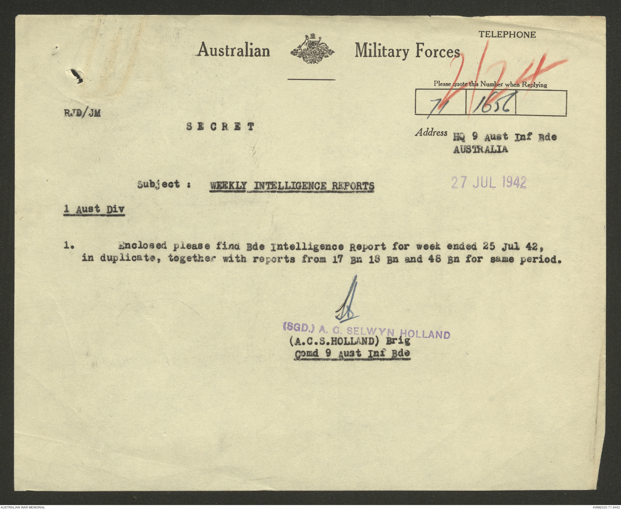 AWM52 8/2/9/8 - [Unit War Diaries, 1939-45 War] HQ 9 Australian Infantry Brigade, July 1942