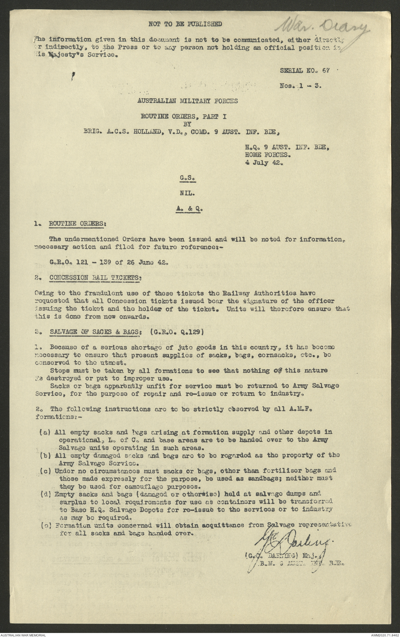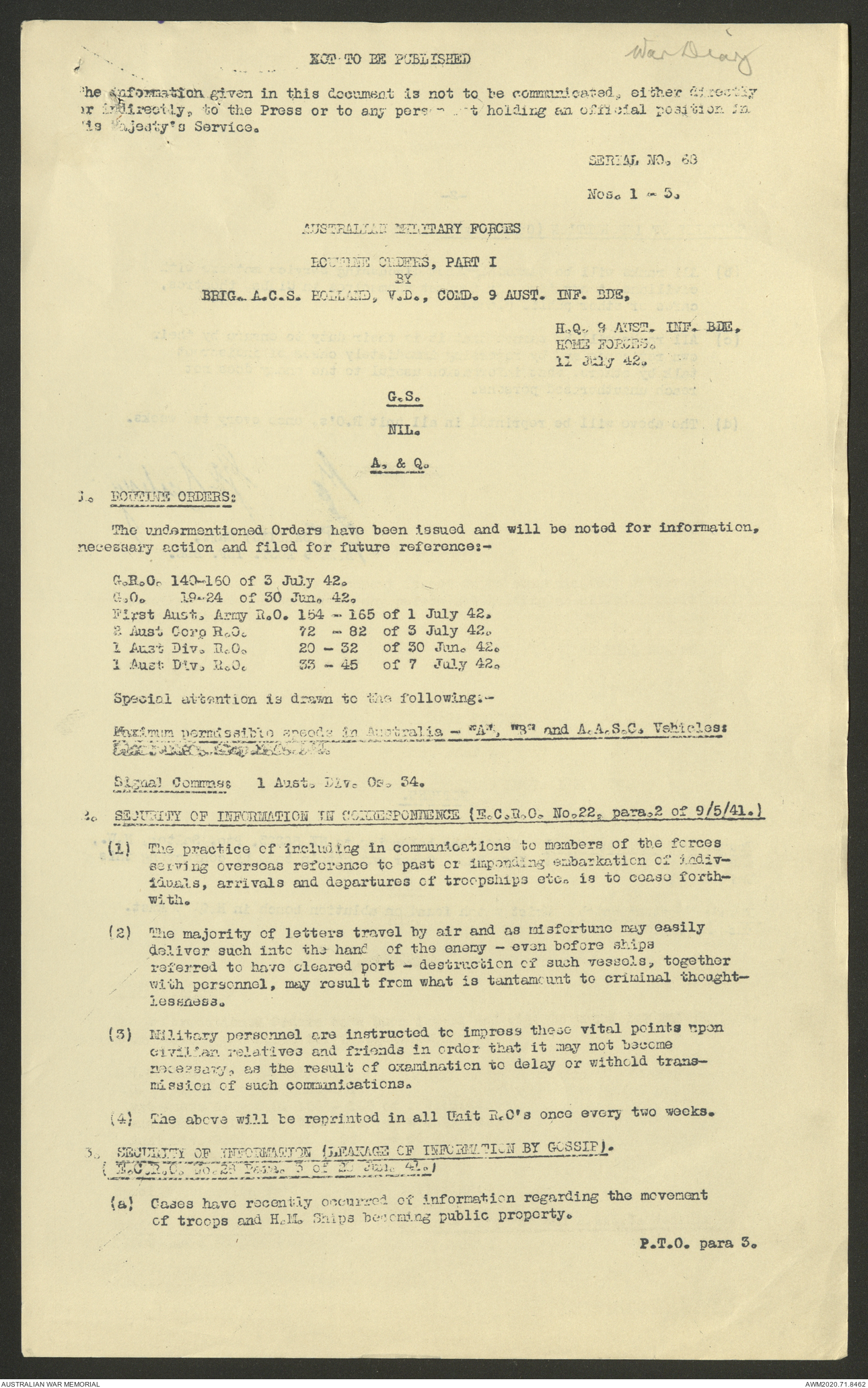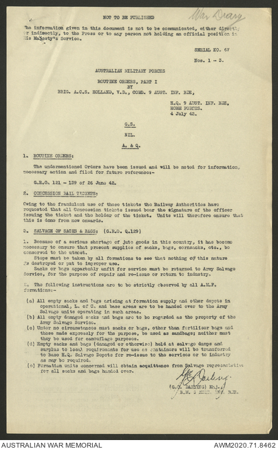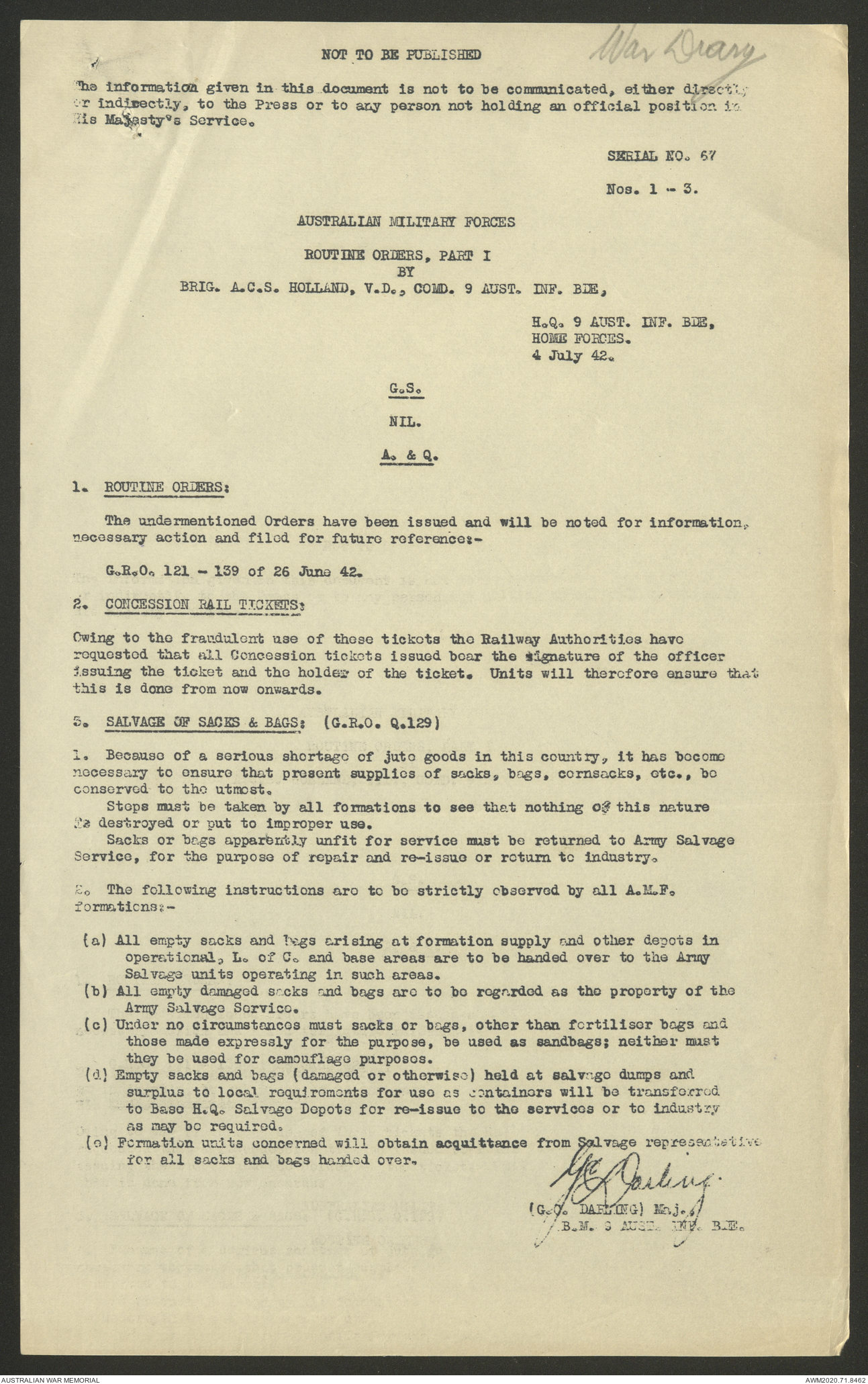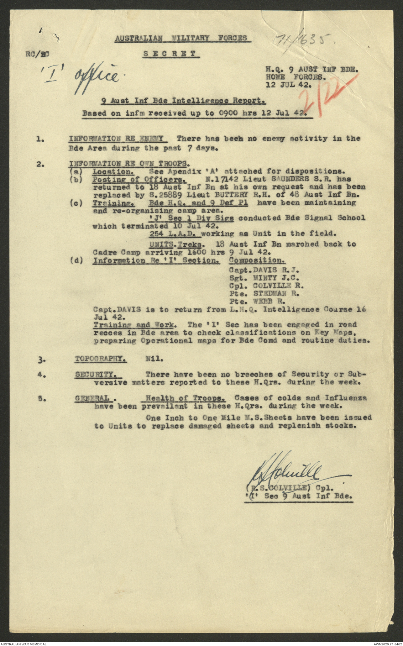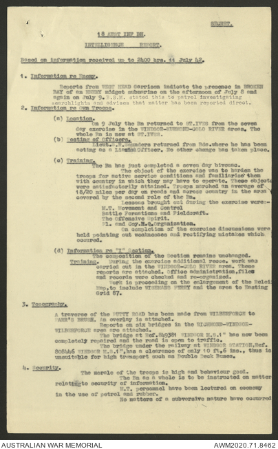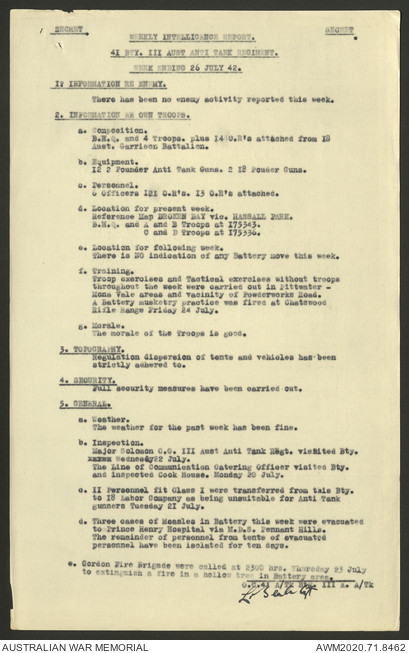 AWM52 8/2/9/8 - [Unit War Diaries, 1939-45 War] HQ 9 Australian Infantry Brigade, July 1942