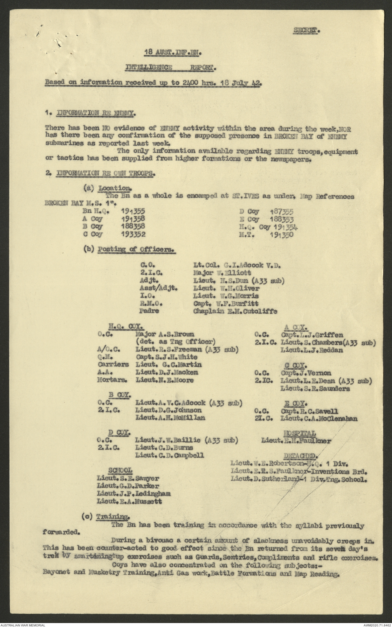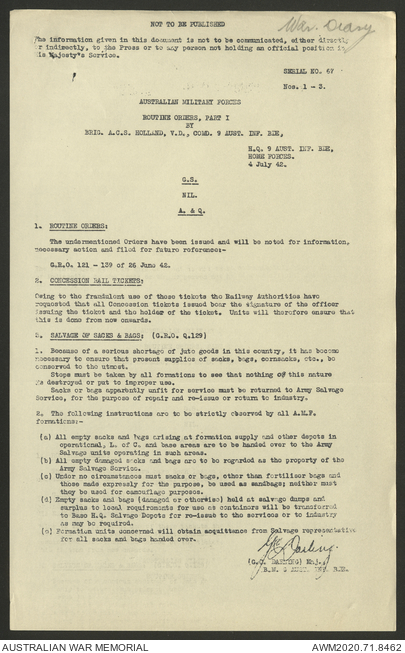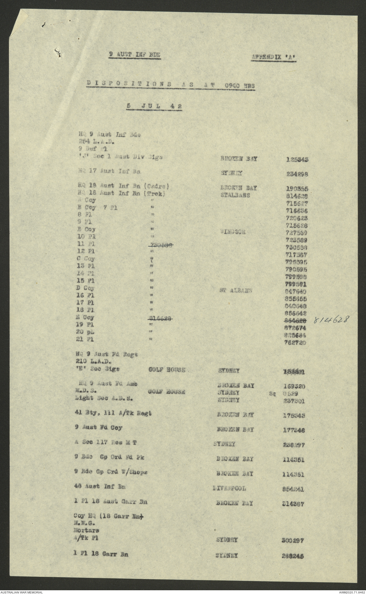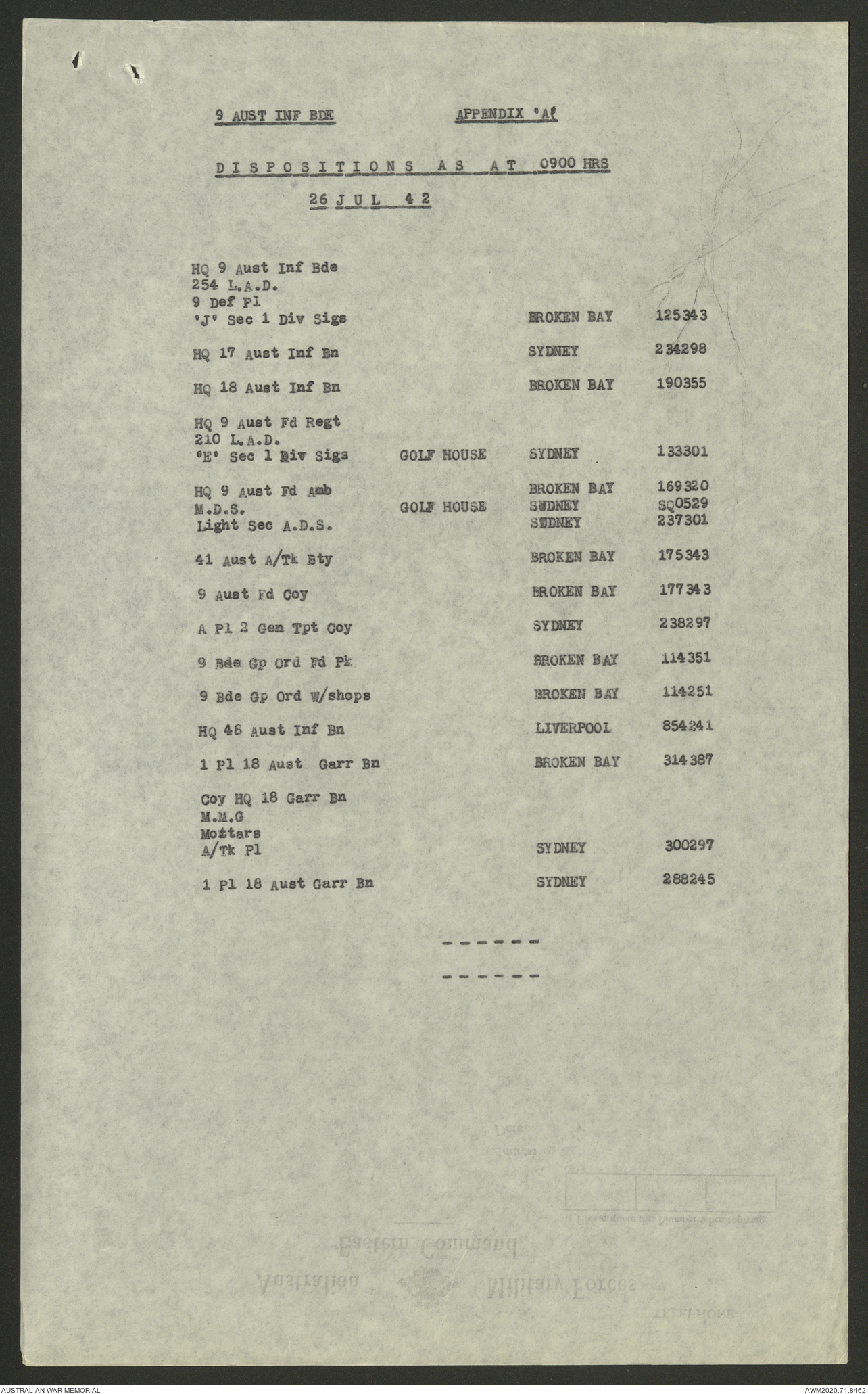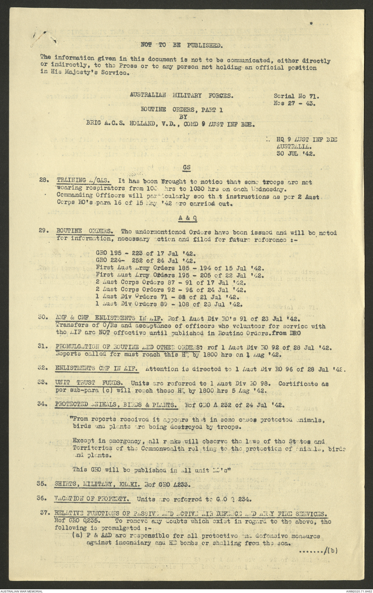 AWM52 8/2/9/8 - [Unit War Diaries, 1939-45 War] HQ 9 Australian Infantry Brigade, July 1942
