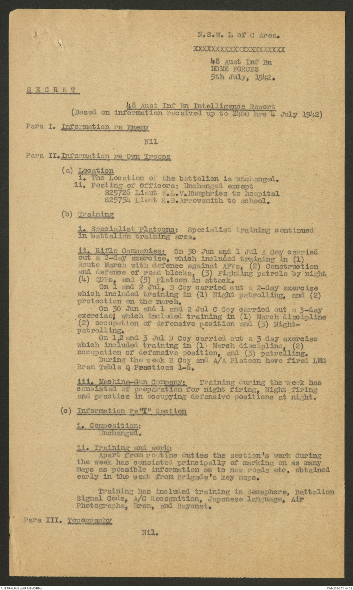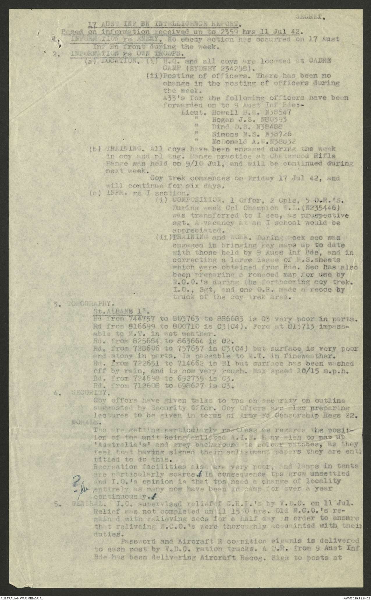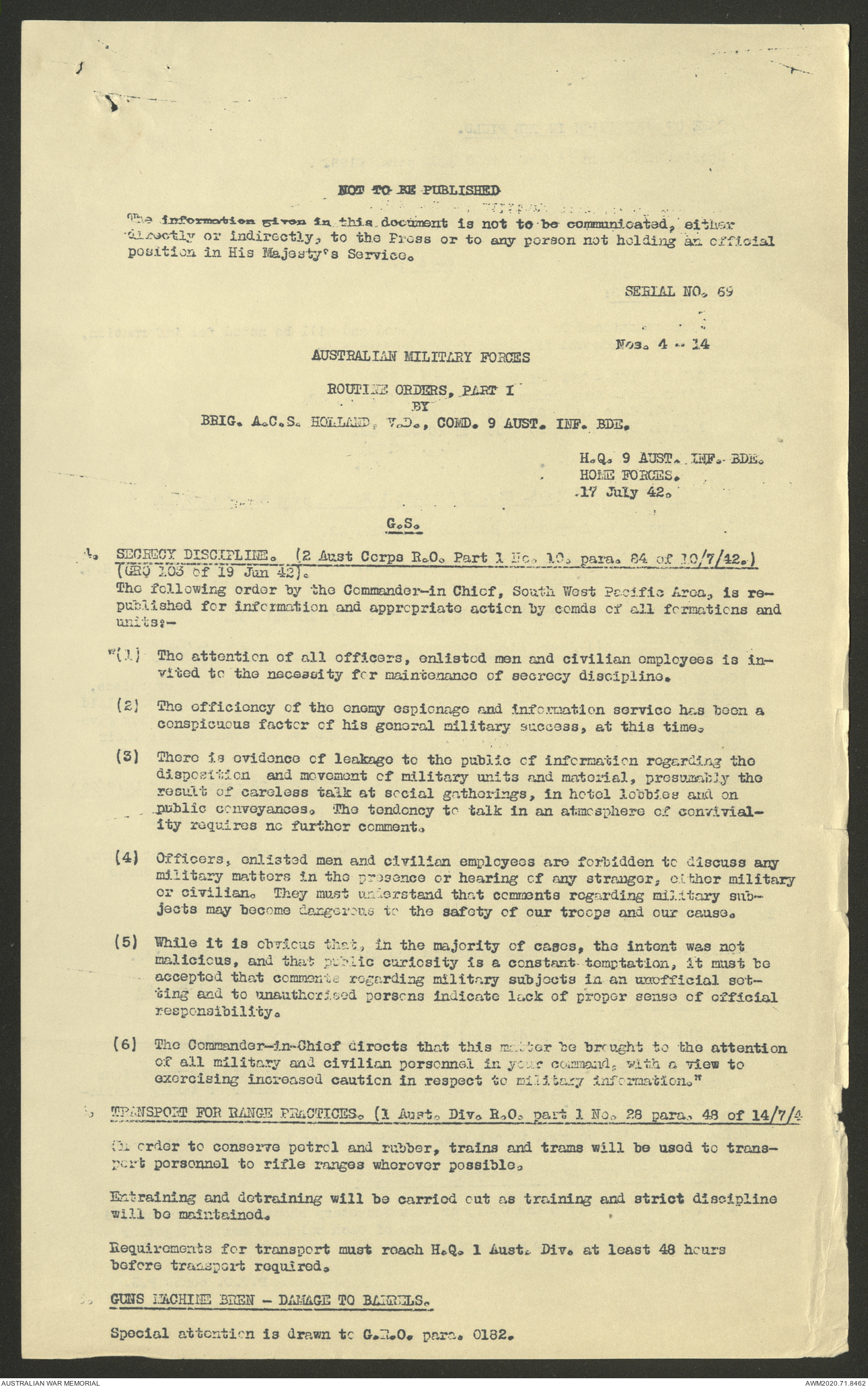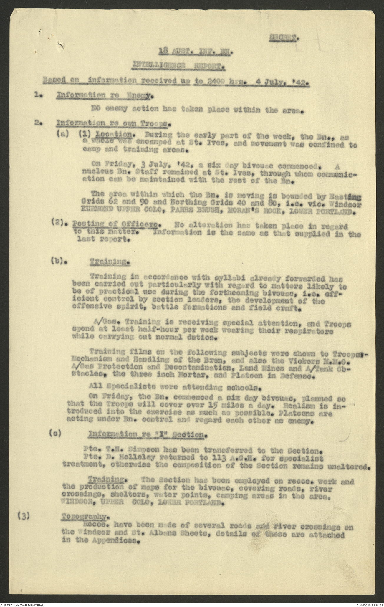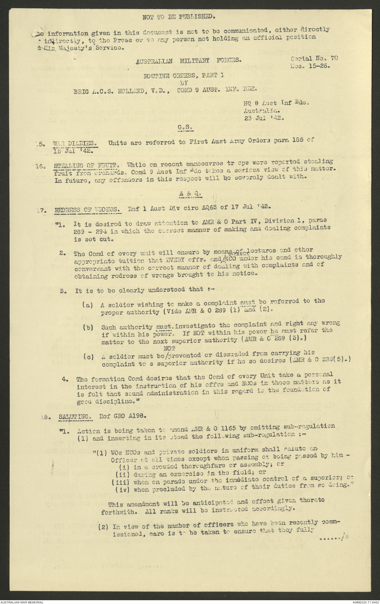 AWM52 8/2/9/8 - [Unit War Diaries, 1939-45 War] HQ 9 Australian Infantry Brigade, July 1942