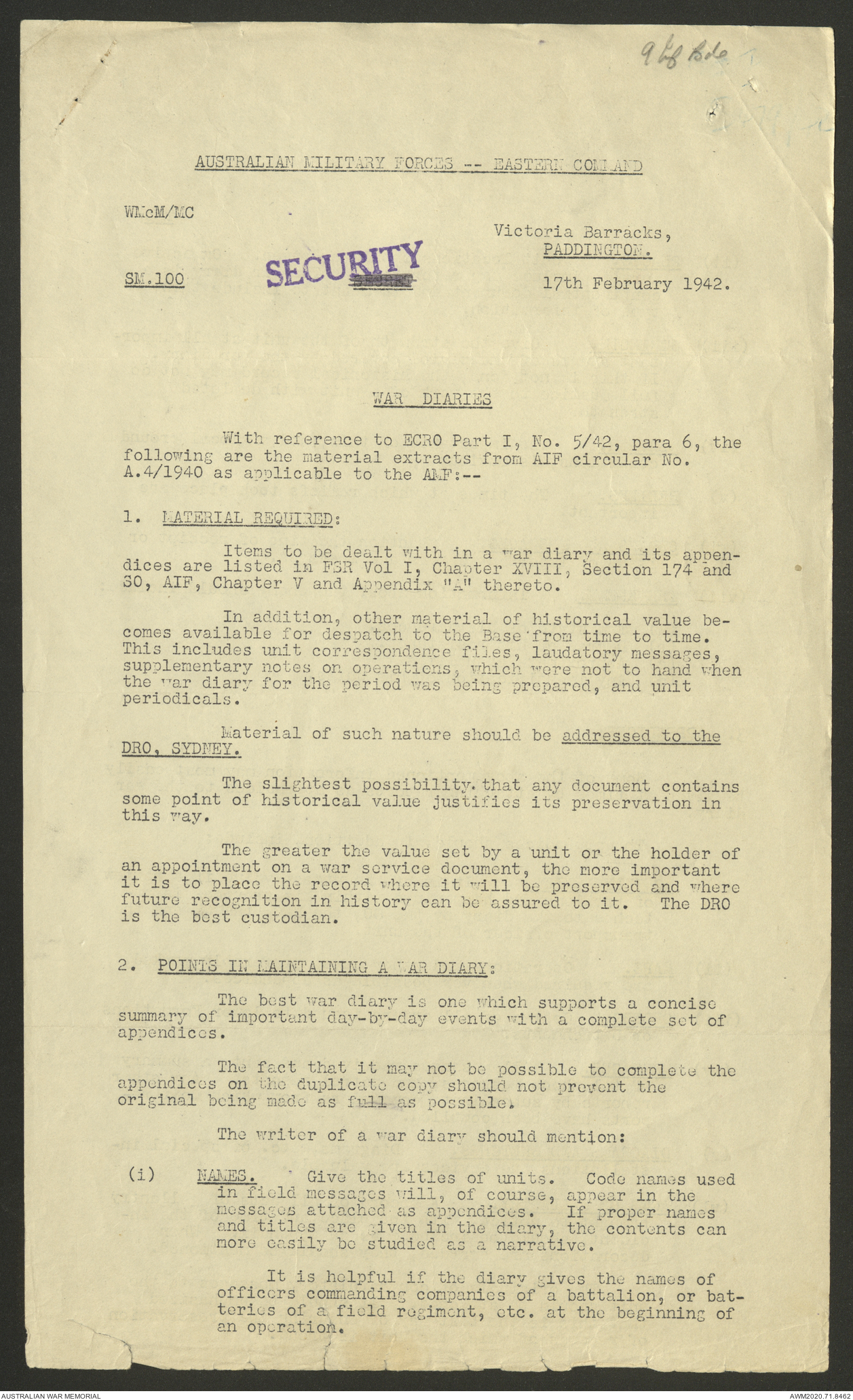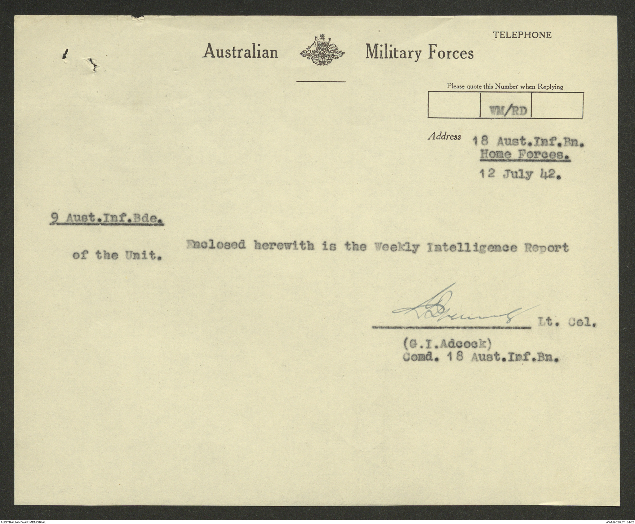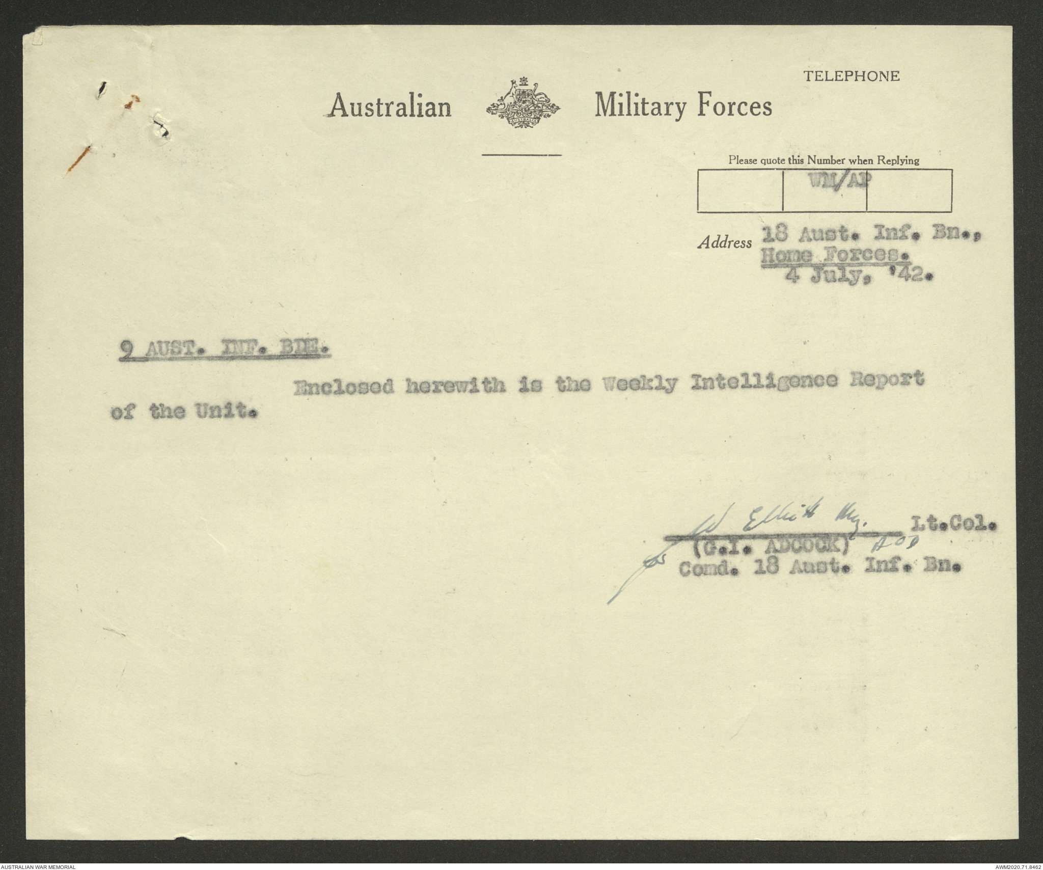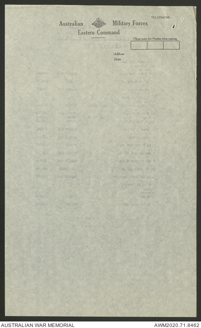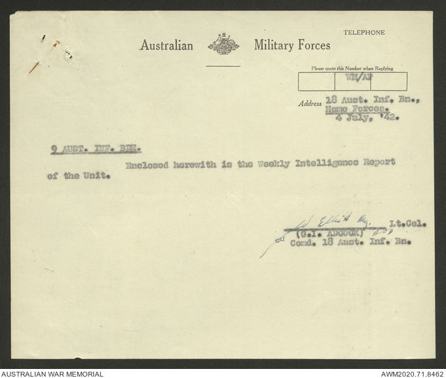 | Collection number | AWM52 8/2/9/8 |