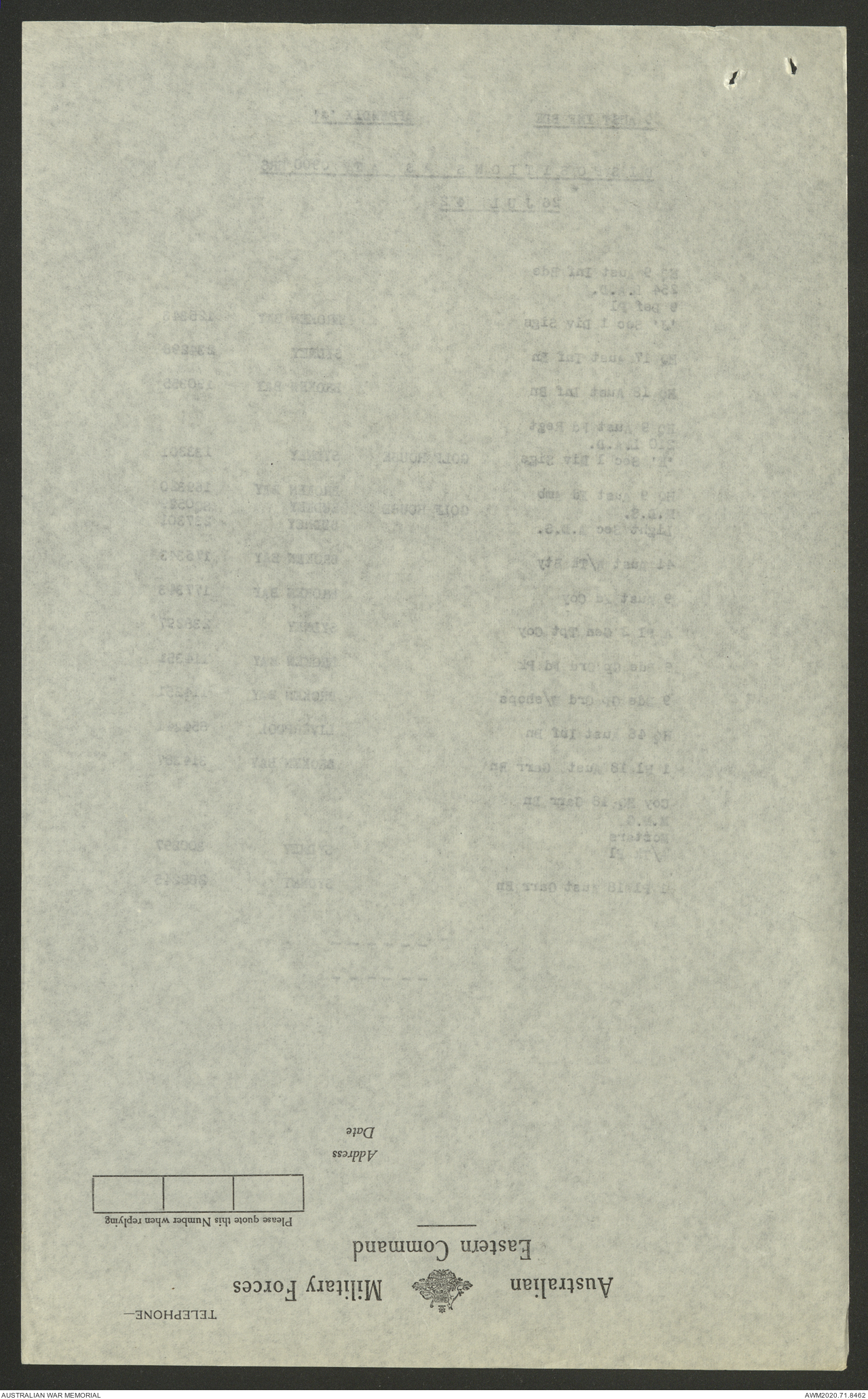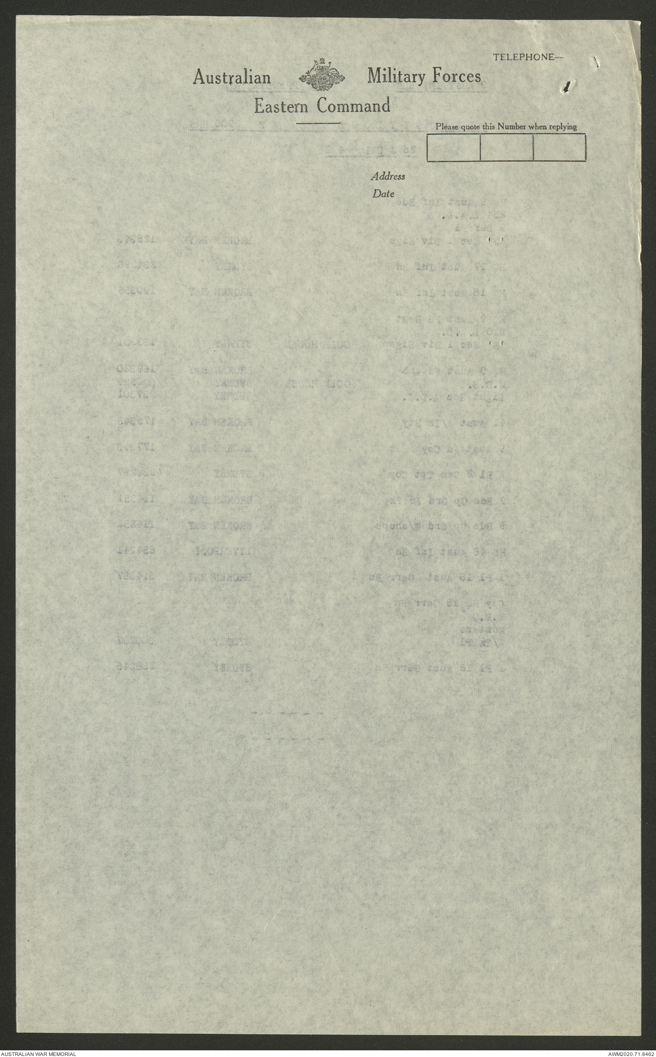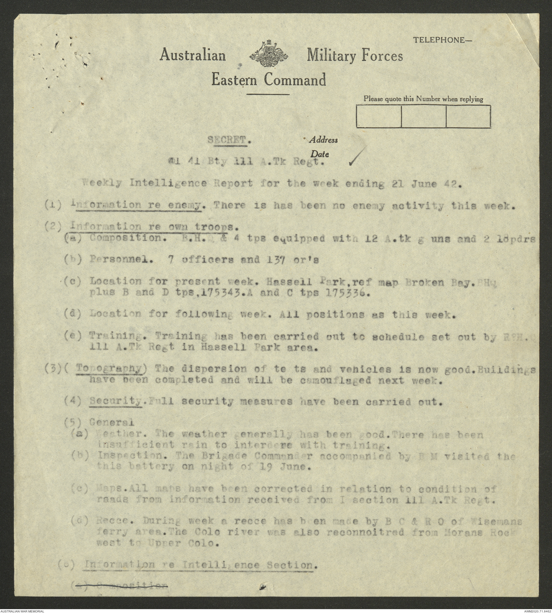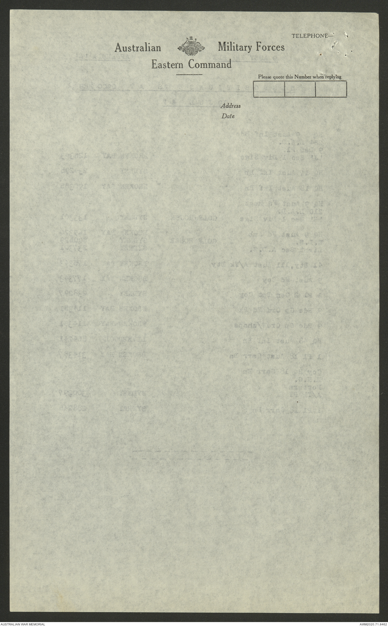 | Collection number | AWM52 8/2/9/8 |