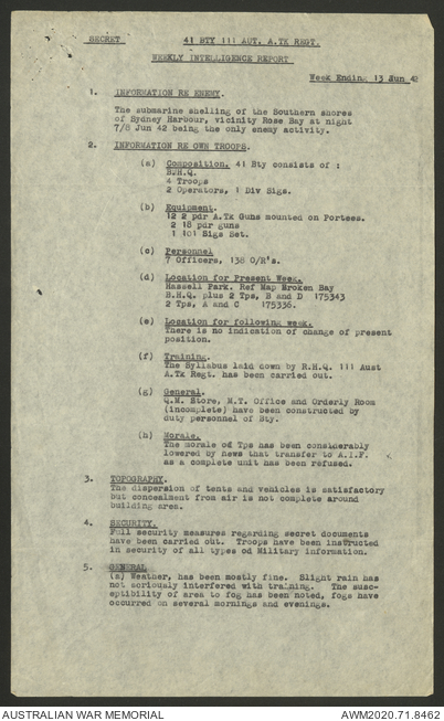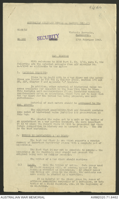 2nd AIF (Australian Imperial Force) and CMF (Citizen Military Forces) unit war diaries, 1939-45 War