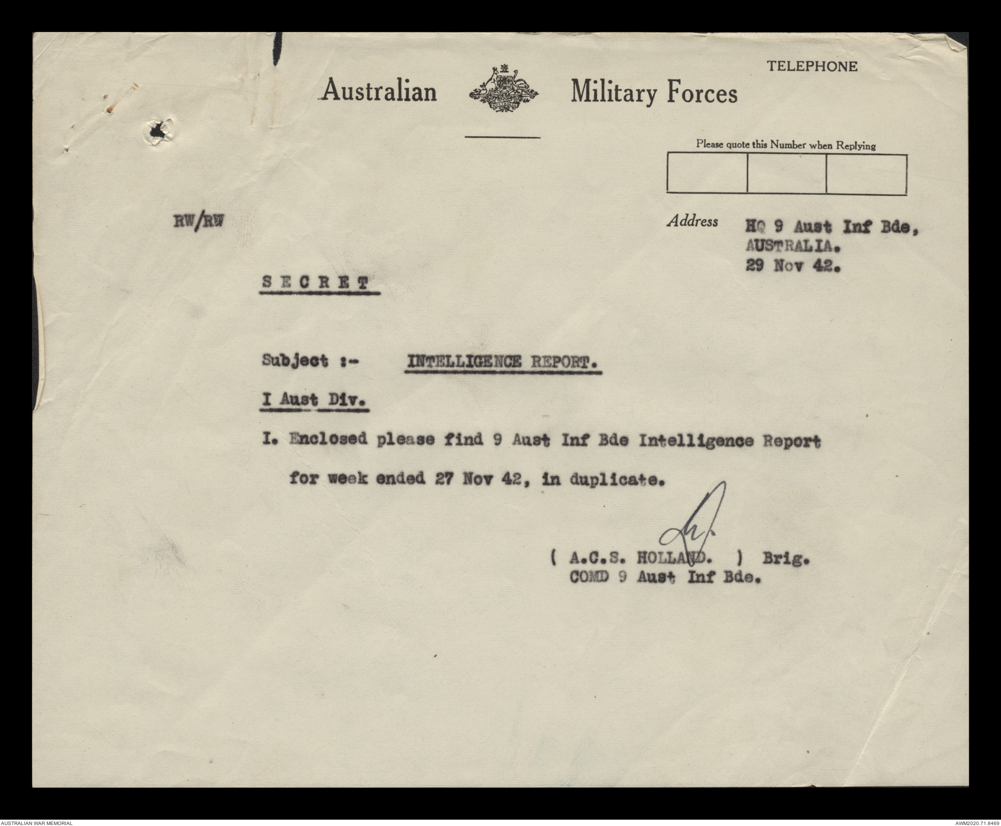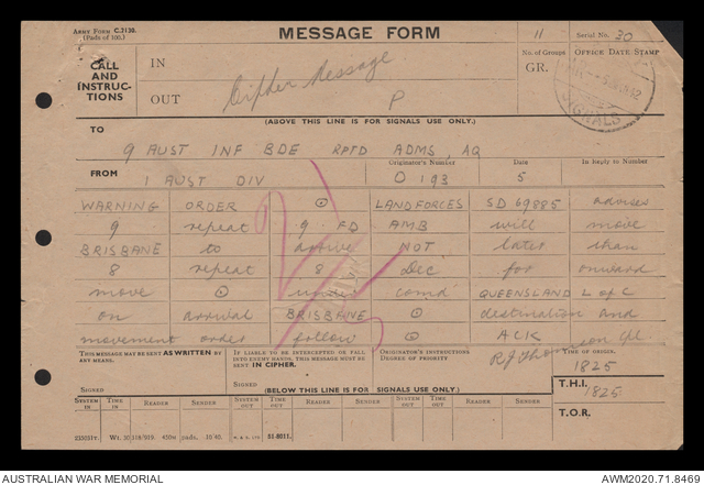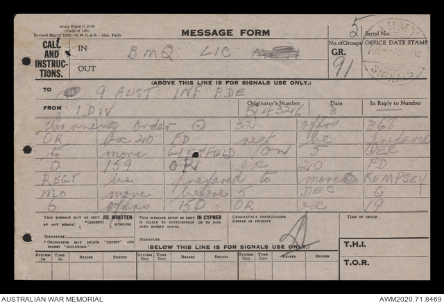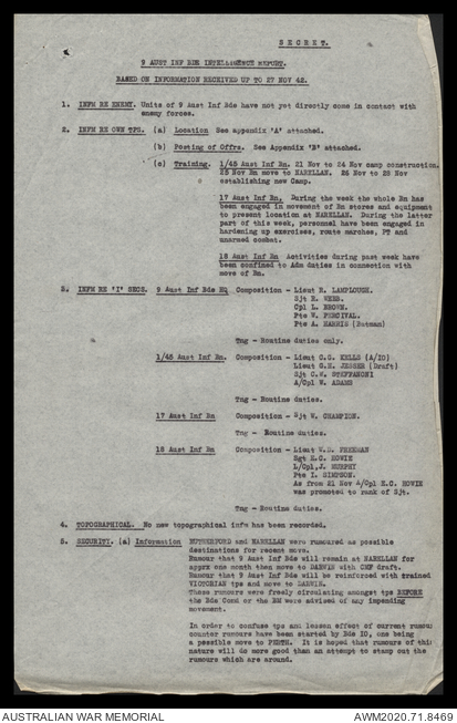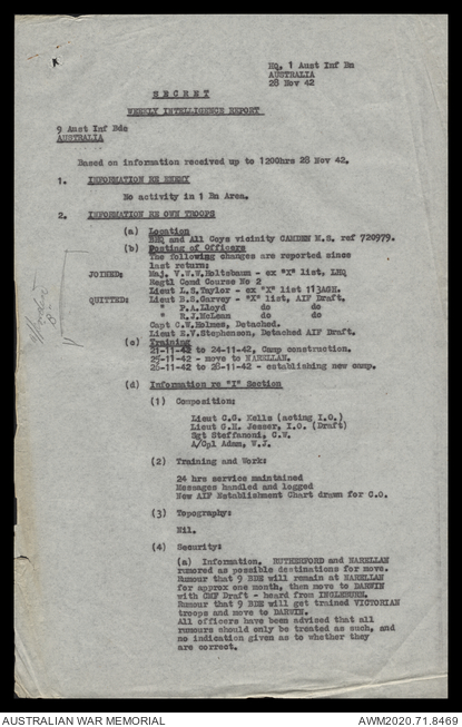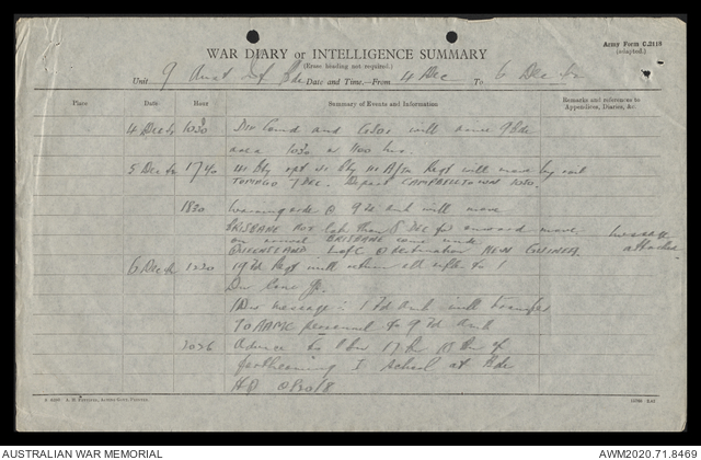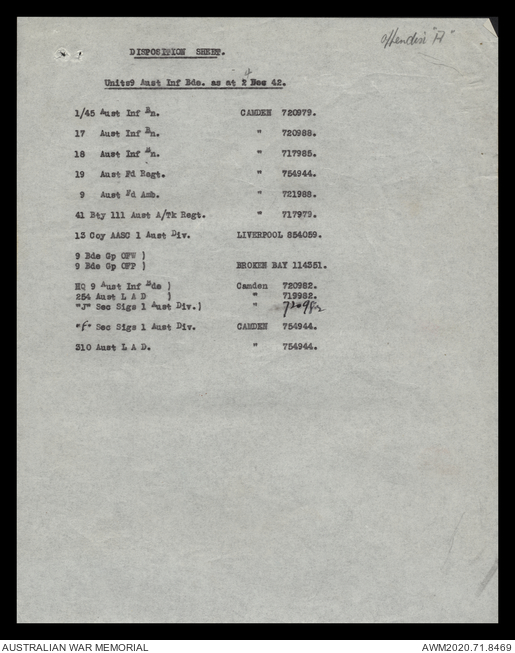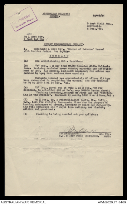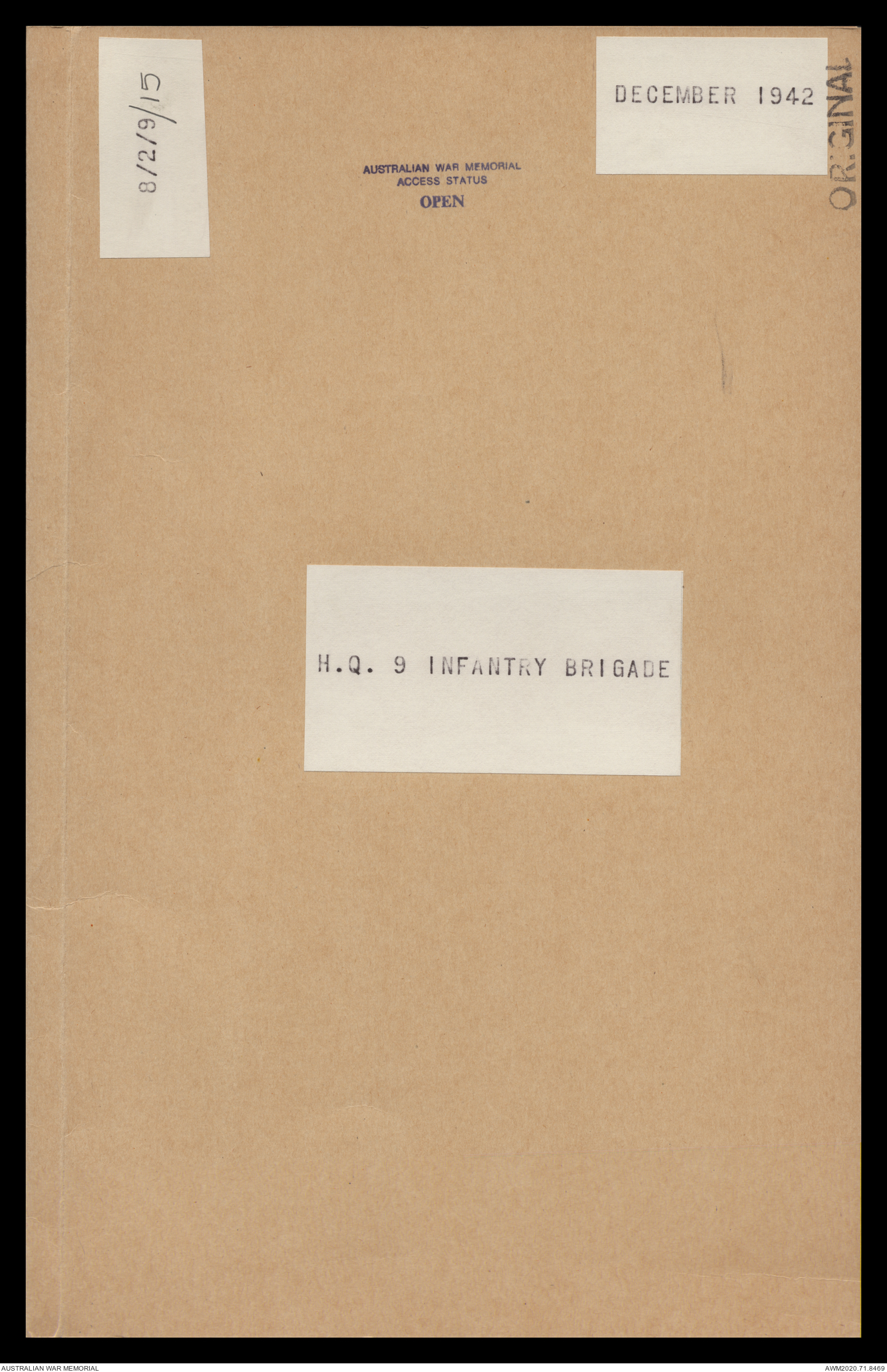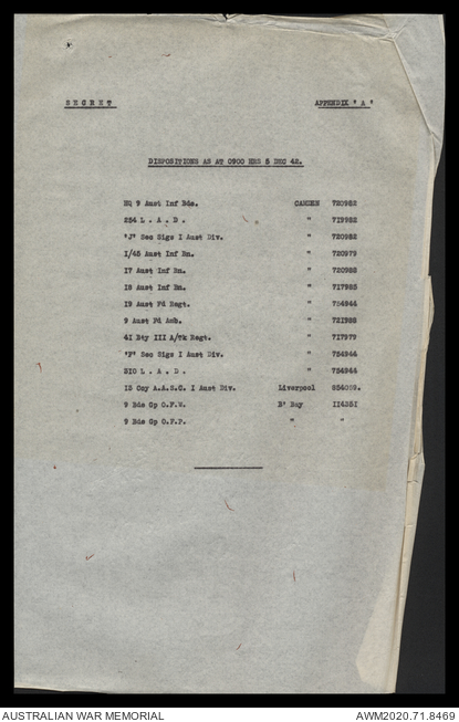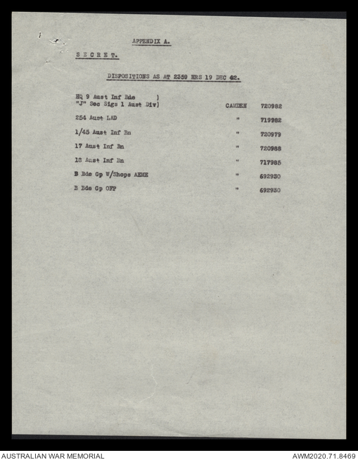 - AWM52 8/2/9 - Headquarters, 9 Infantry Brigade