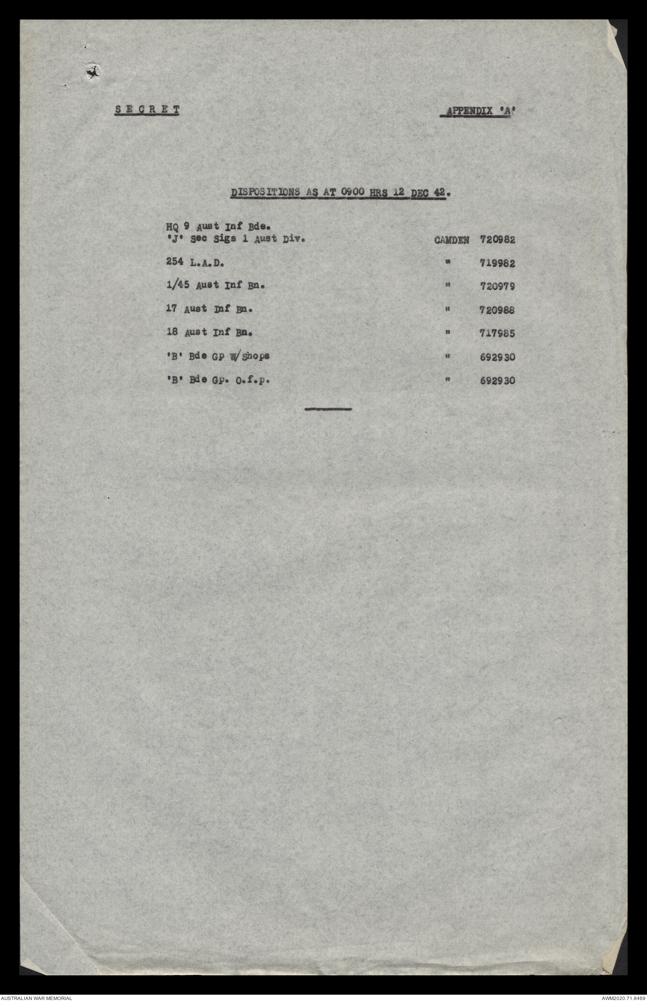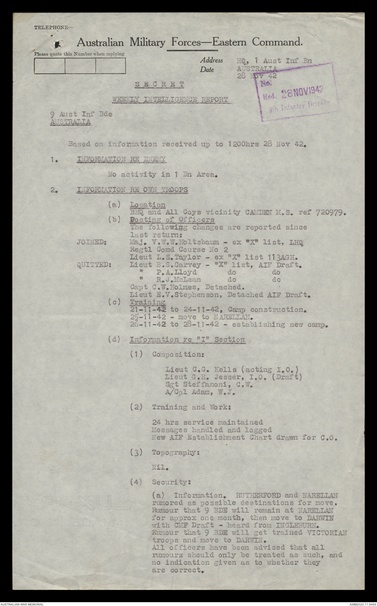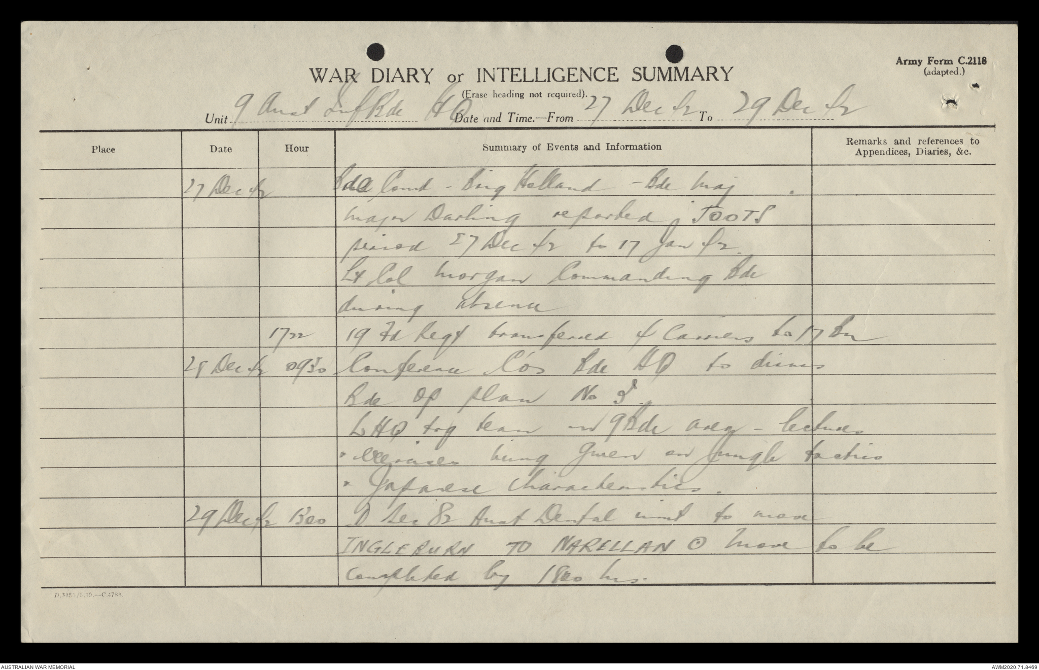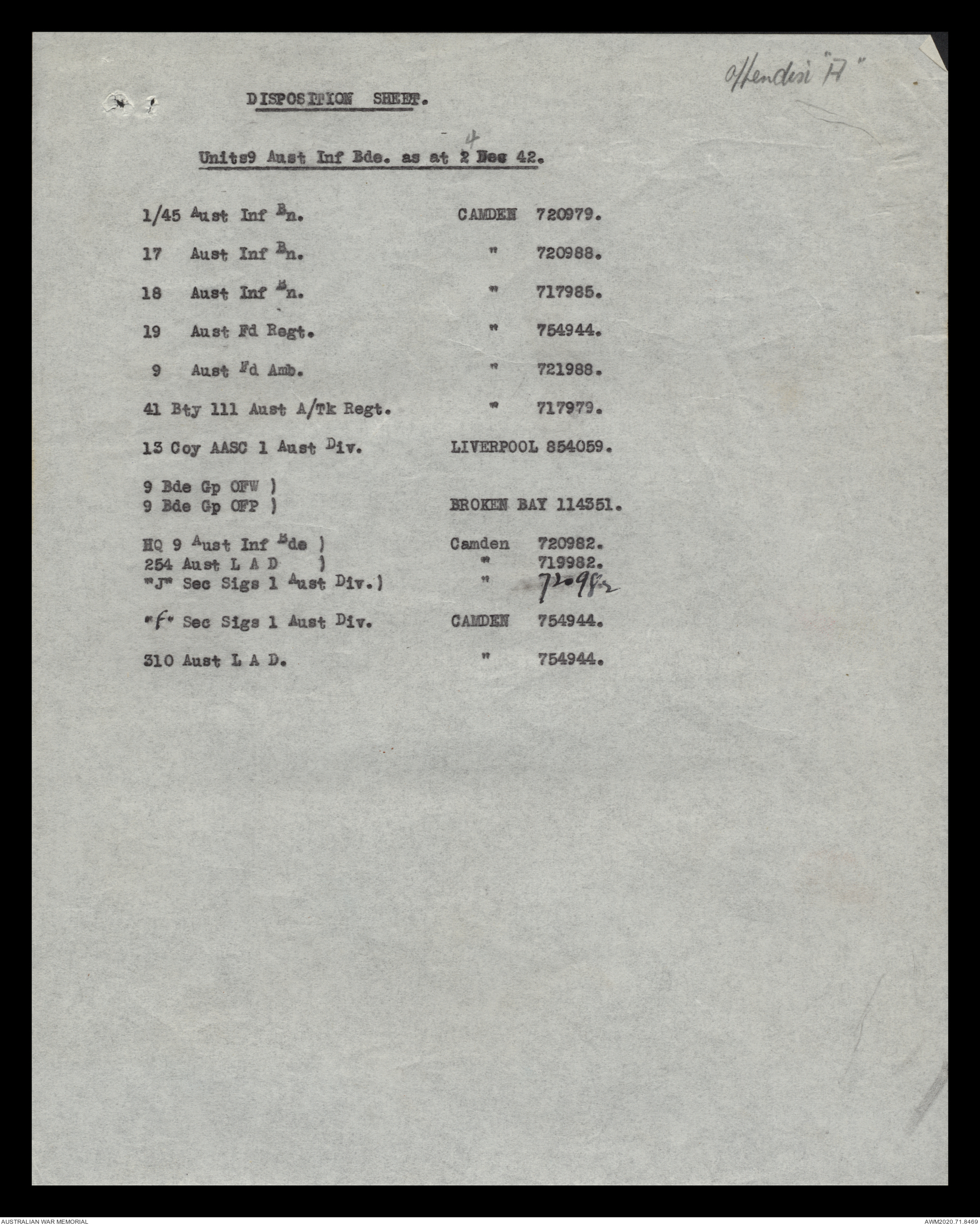 - AWM52 8/2/9 - Headquarters, 9 Infantry Brigade