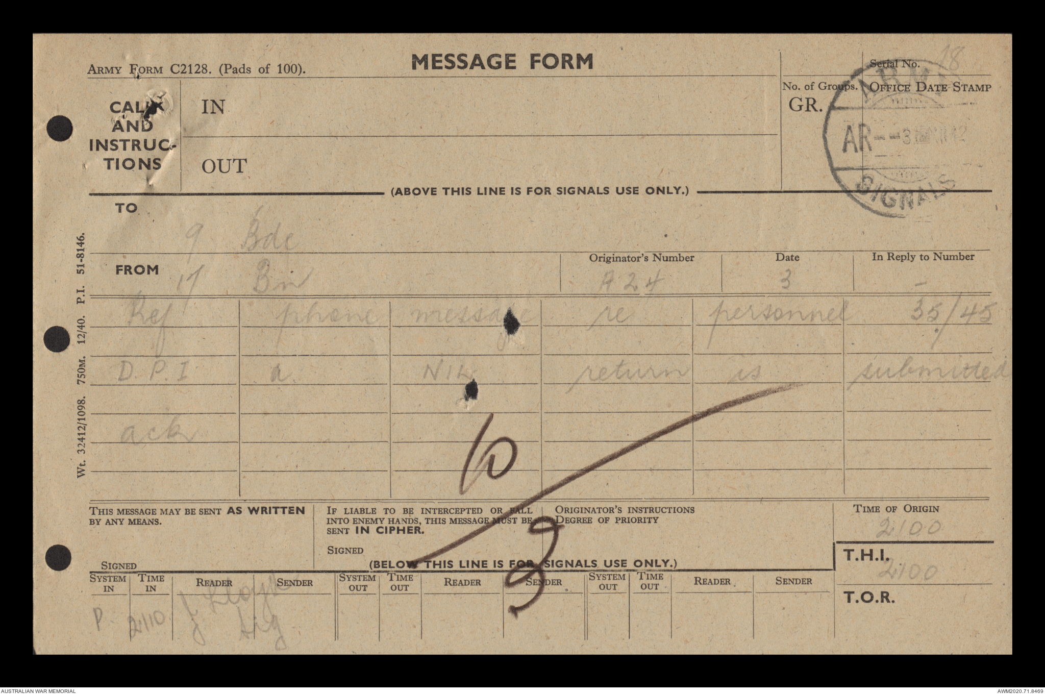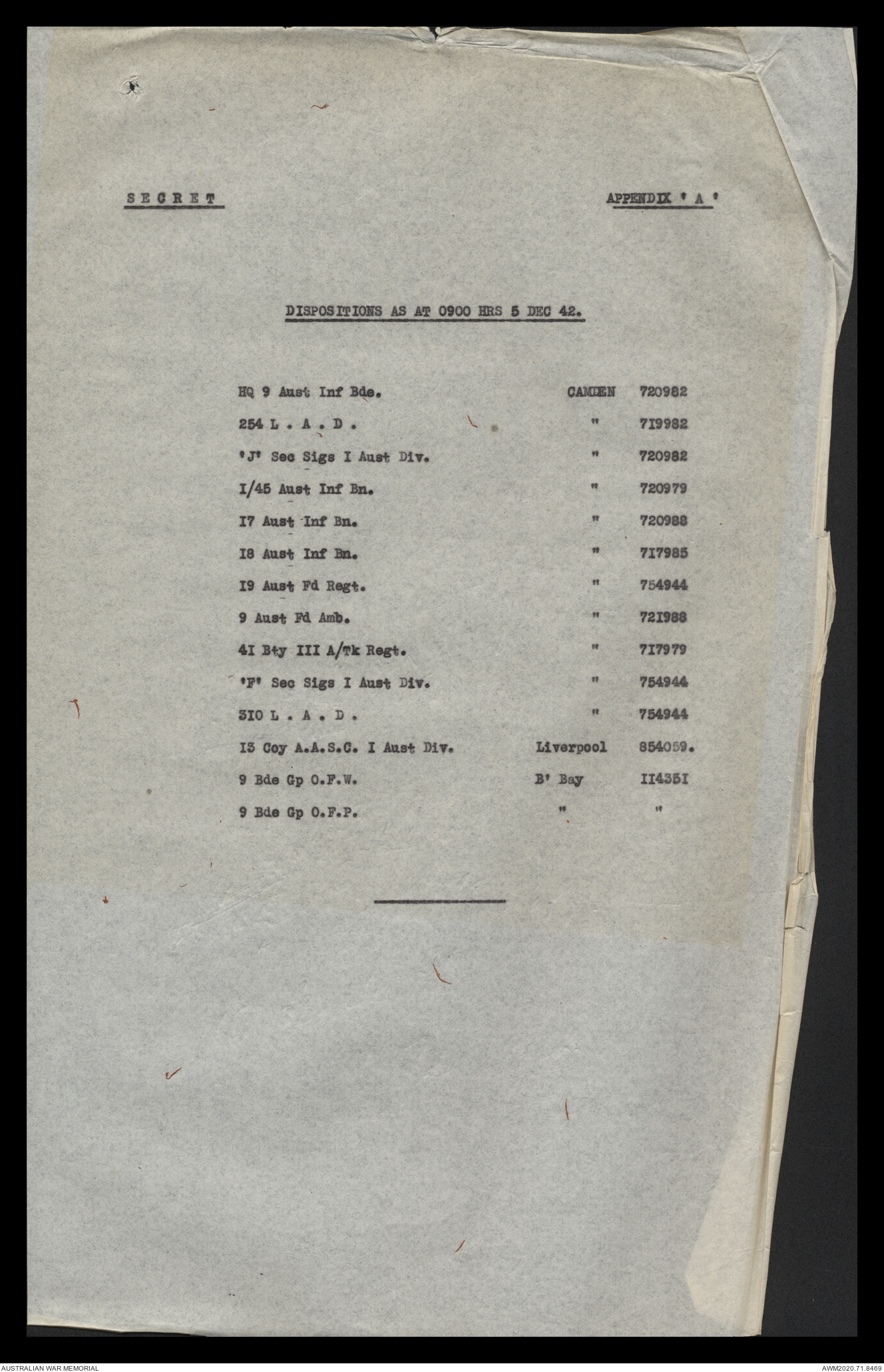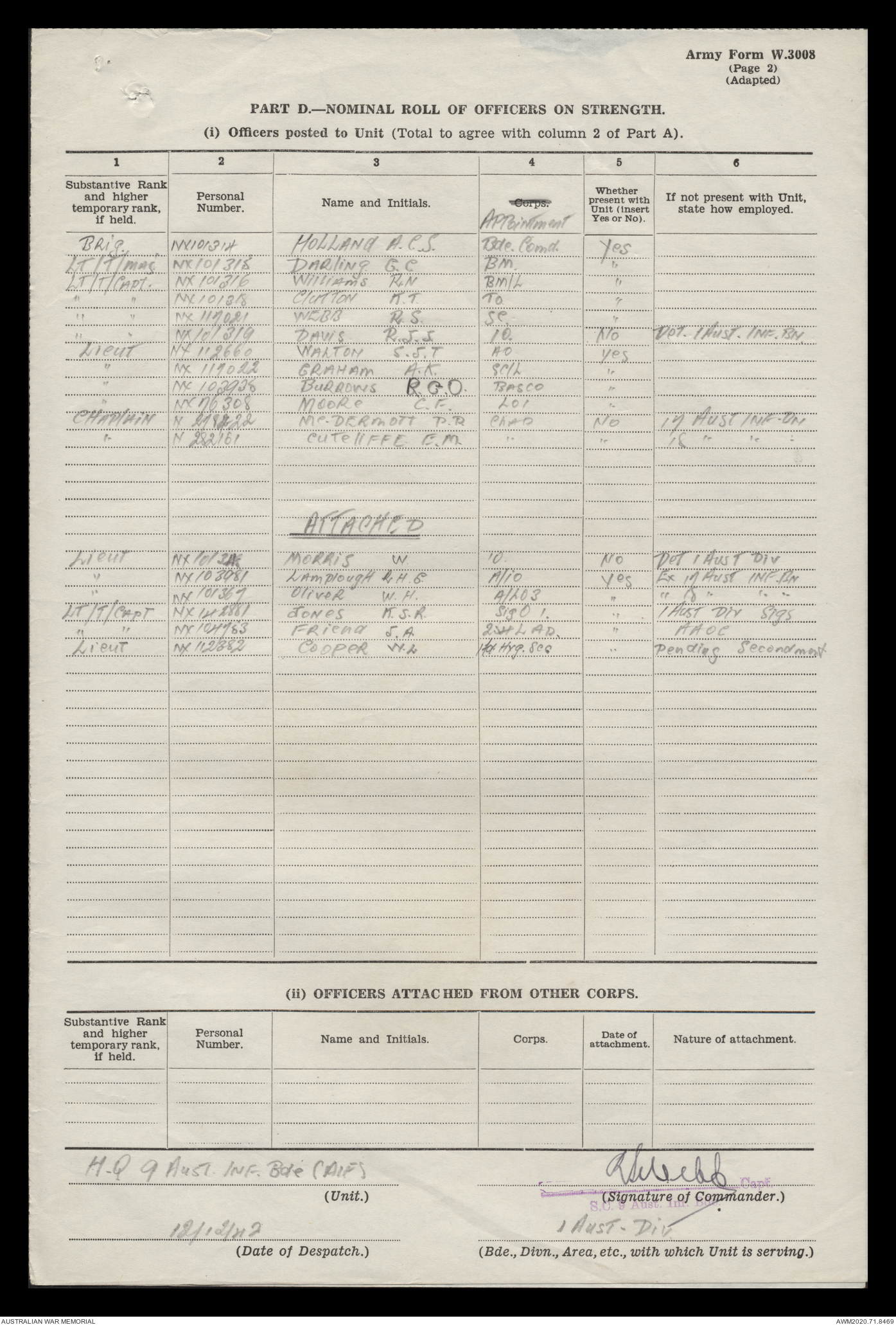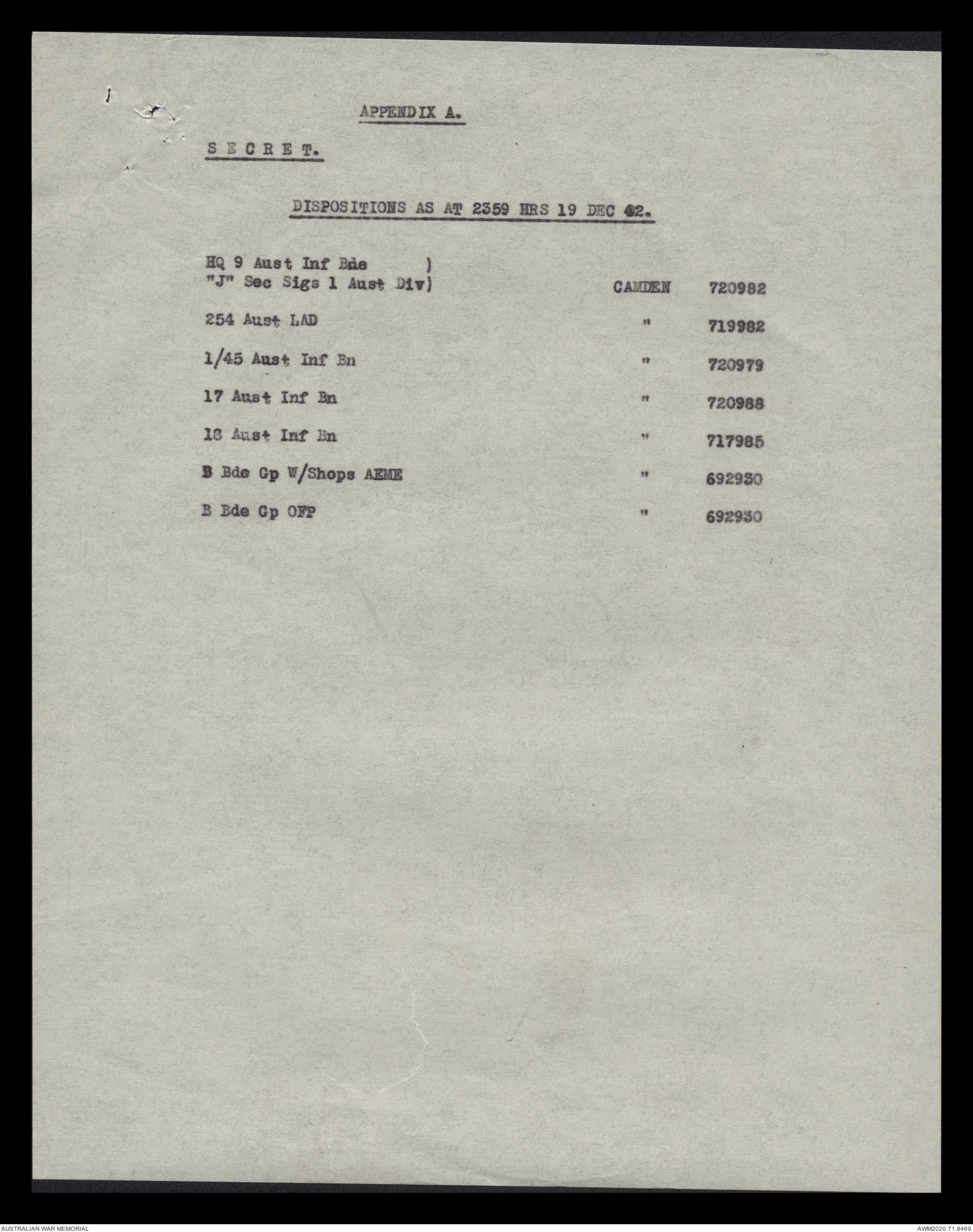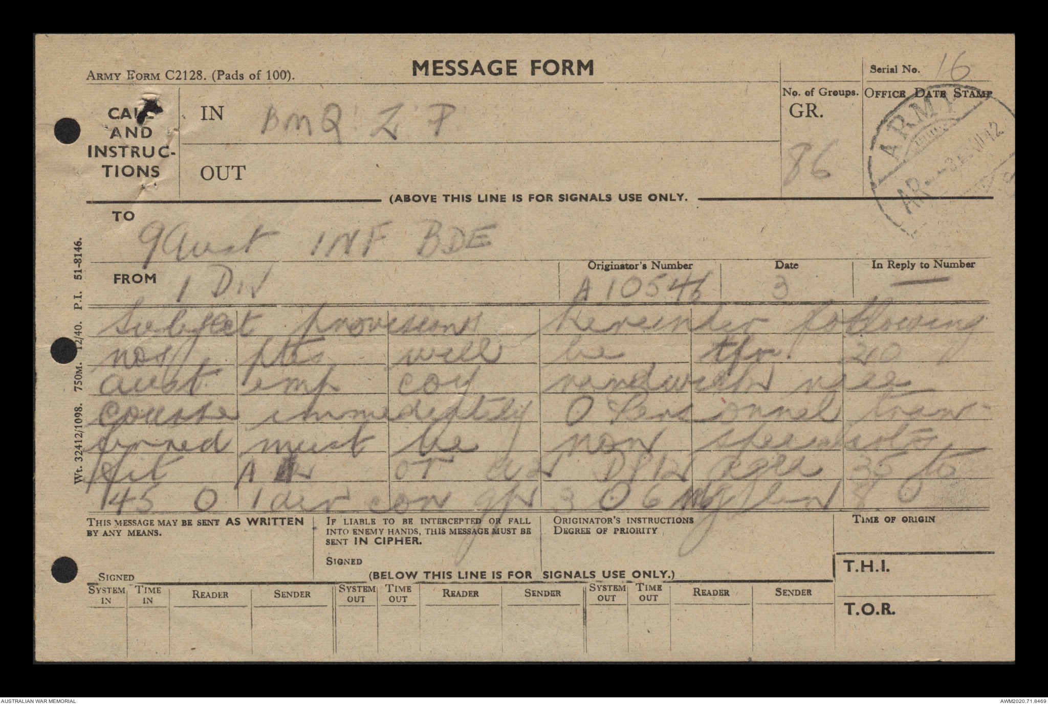 - AWM52 8/2/9 - Headquarters, 9 Infantry Brigade