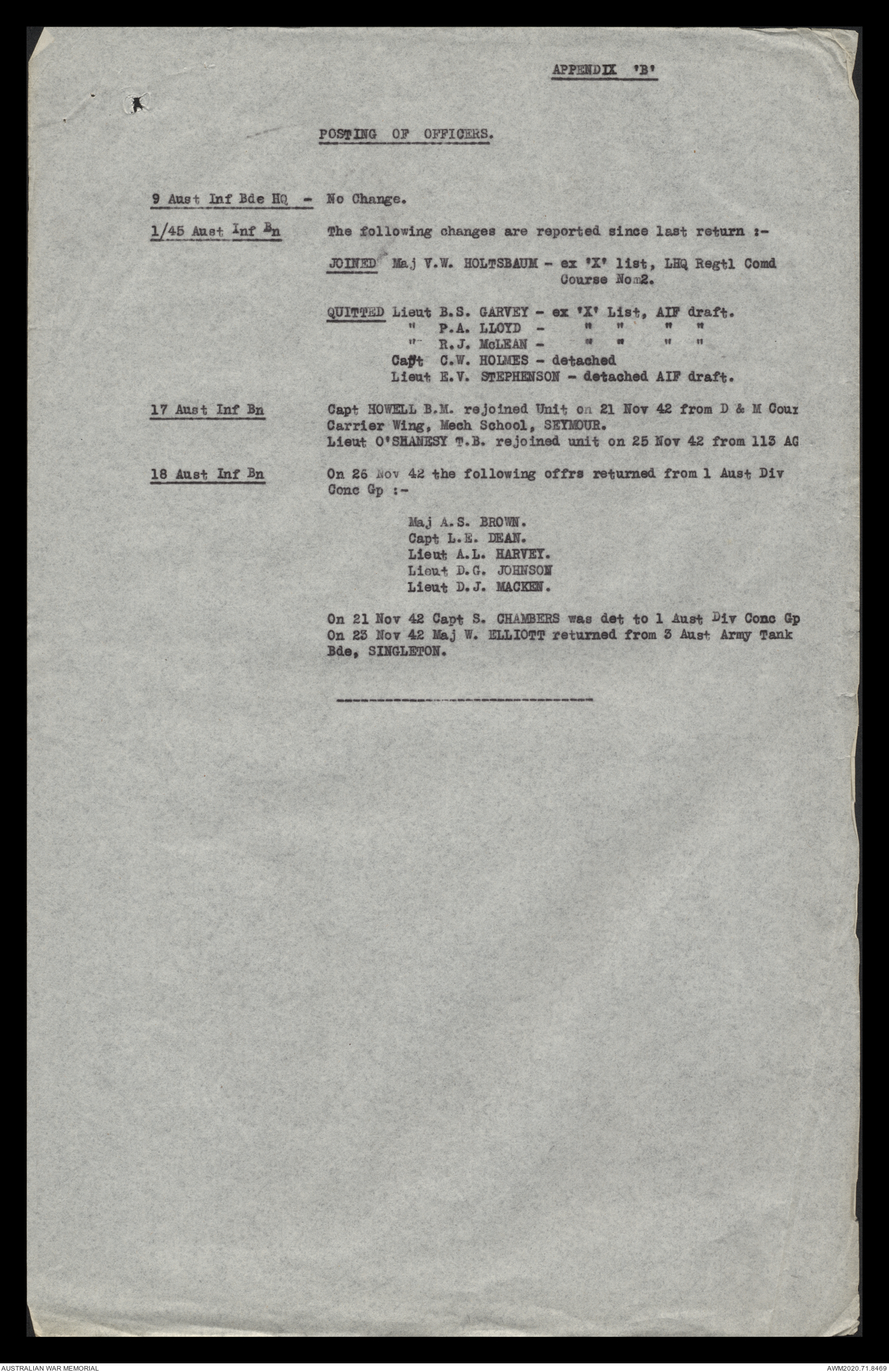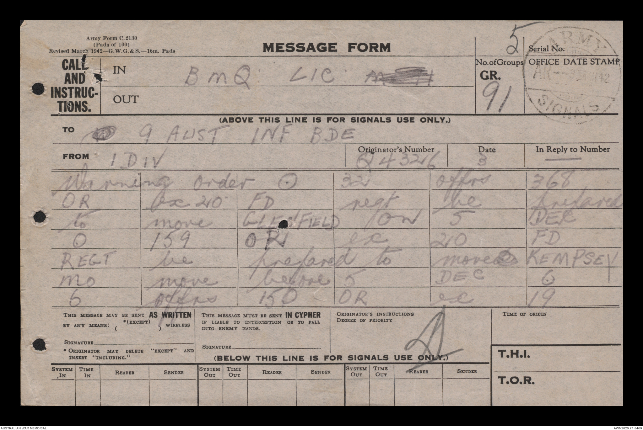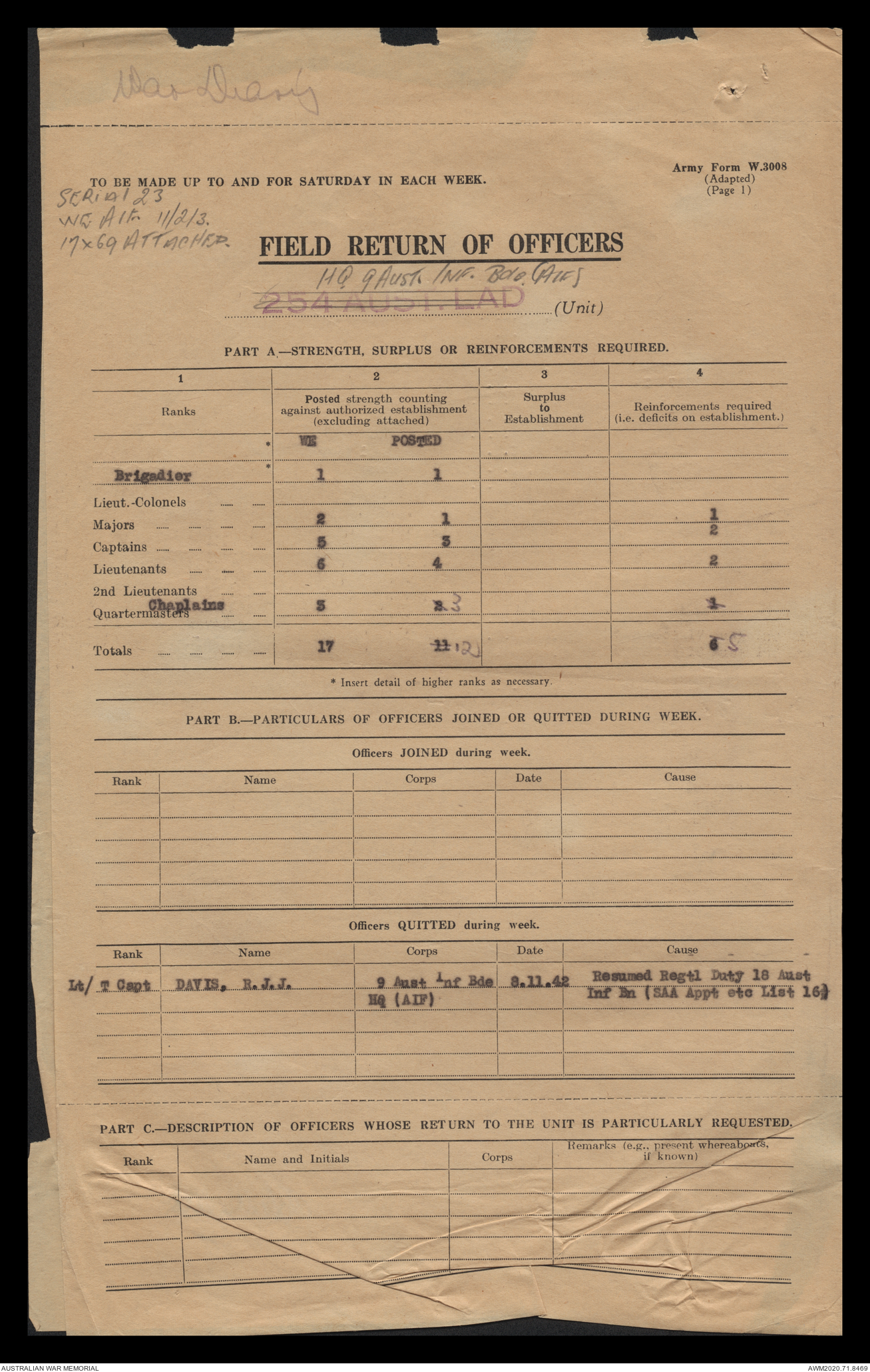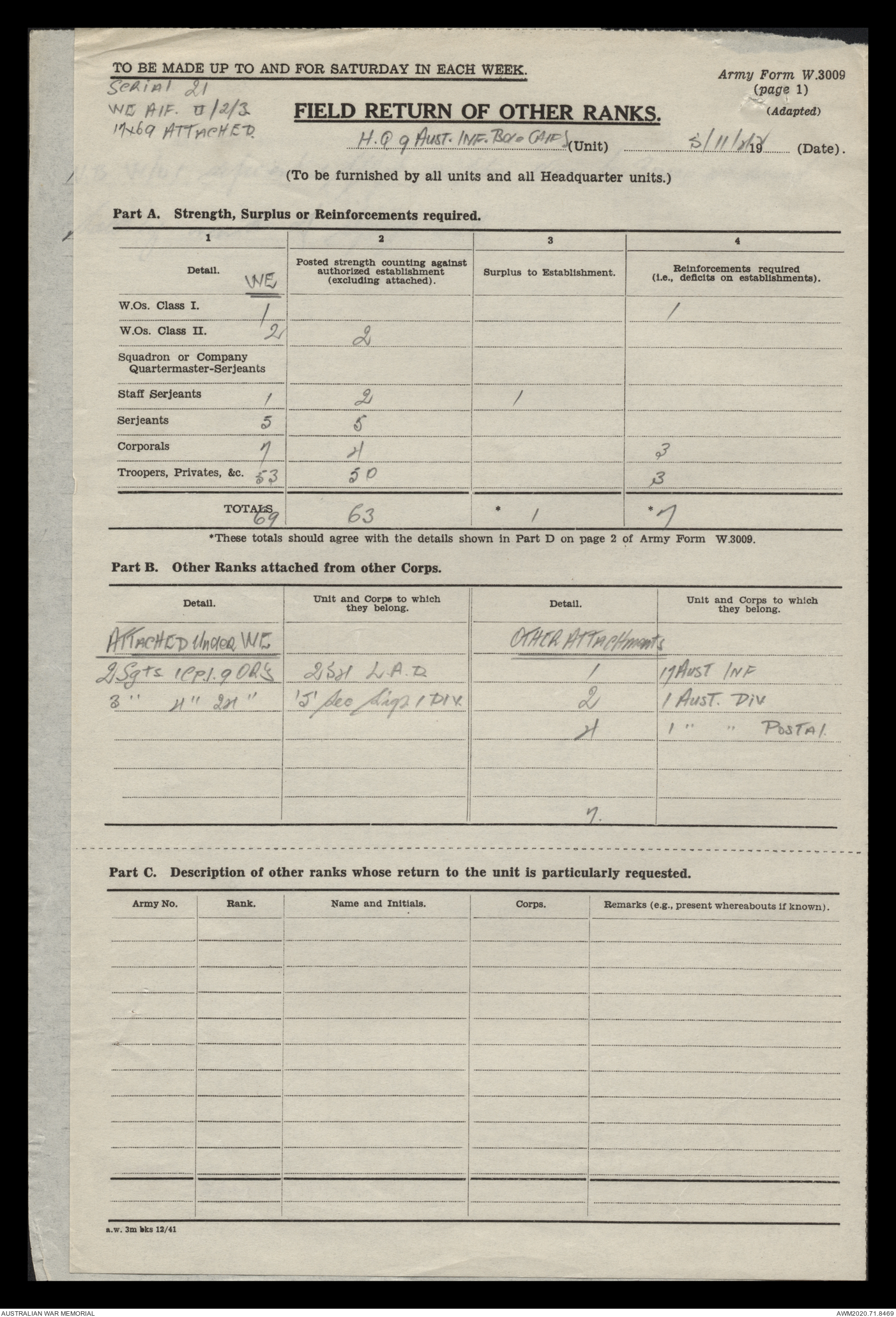 - AWM52 8/2/9 - Headquarters, 9 Infantry Brigade