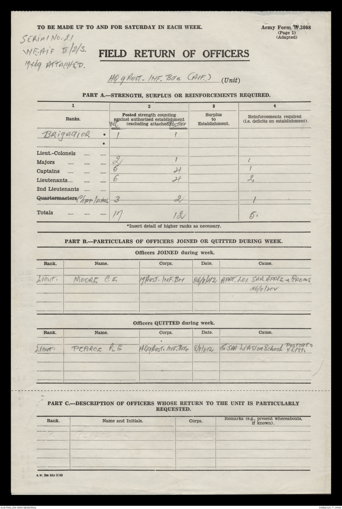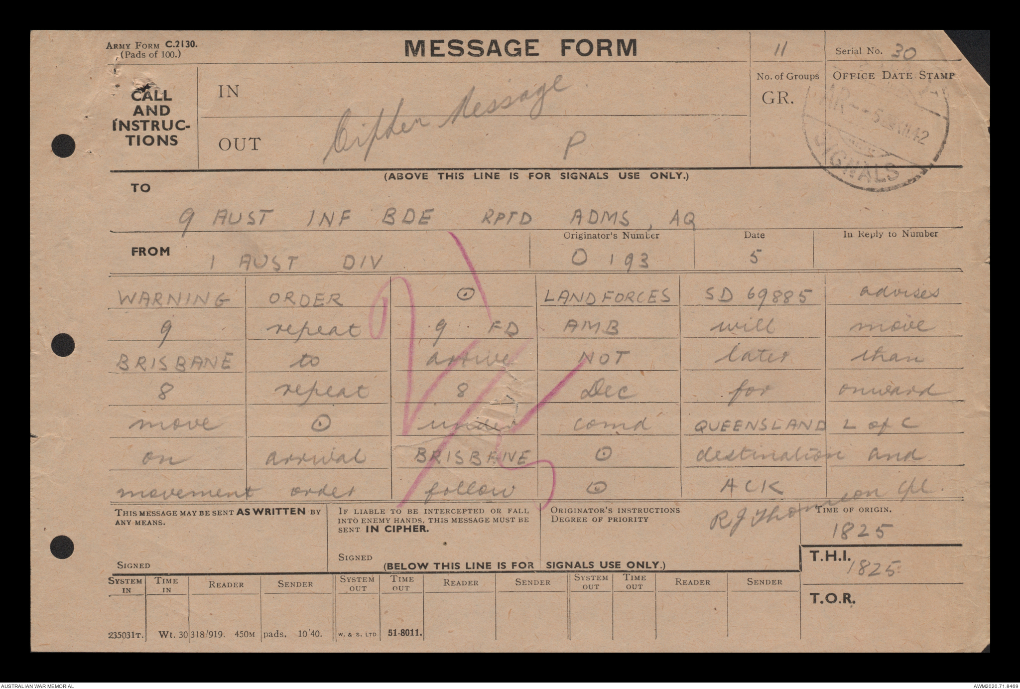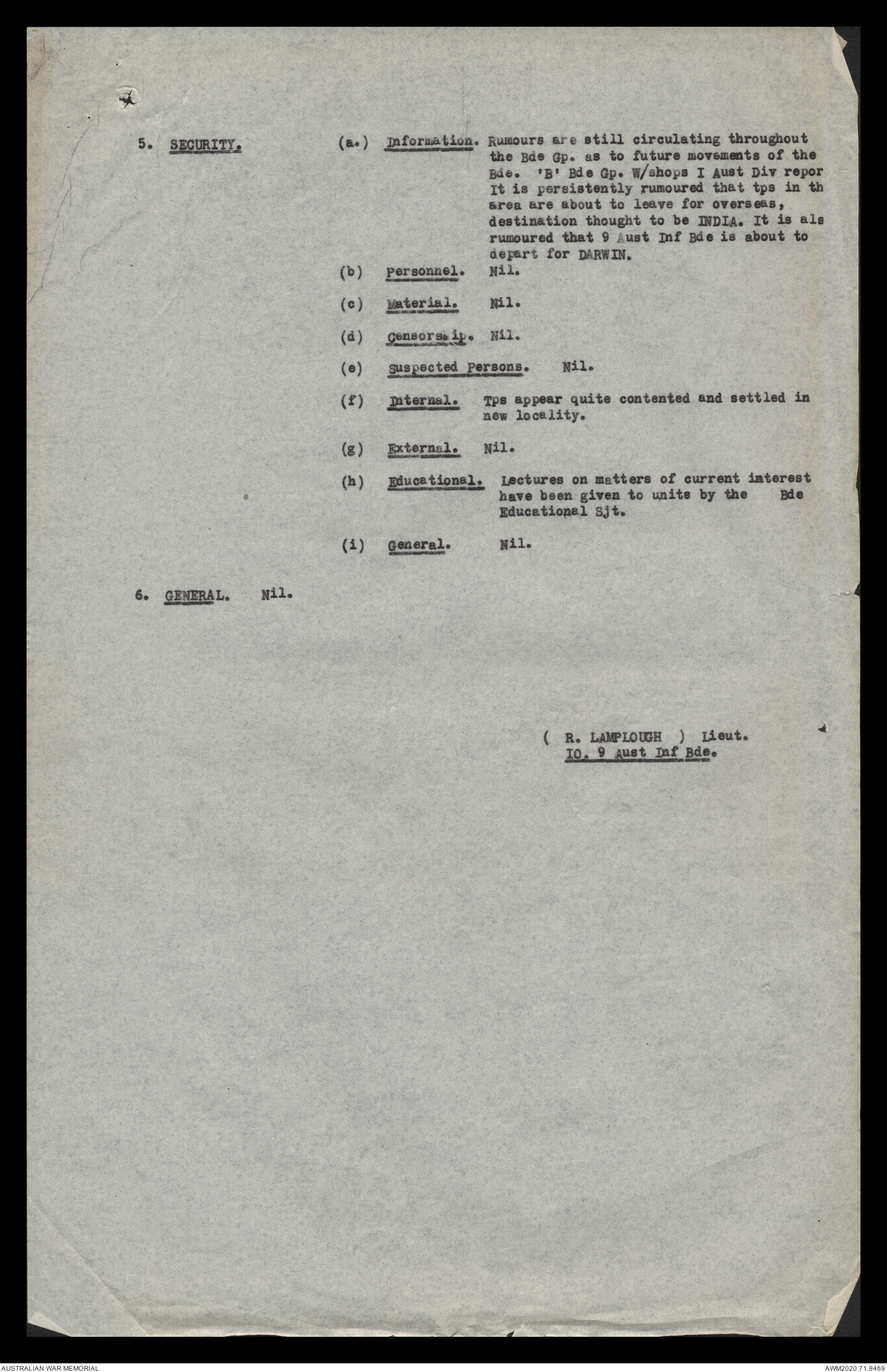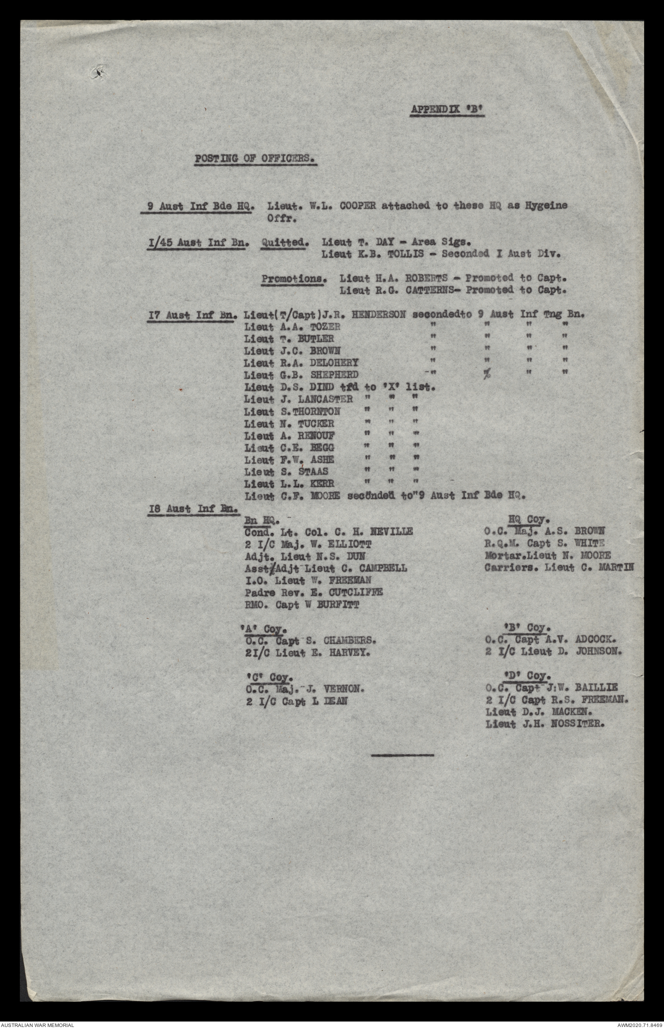 - AWM52 8/2/9 - Headquarters, 9 Infantry Brigade