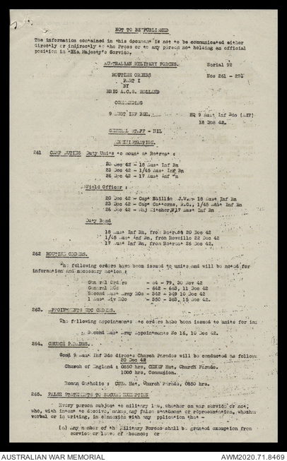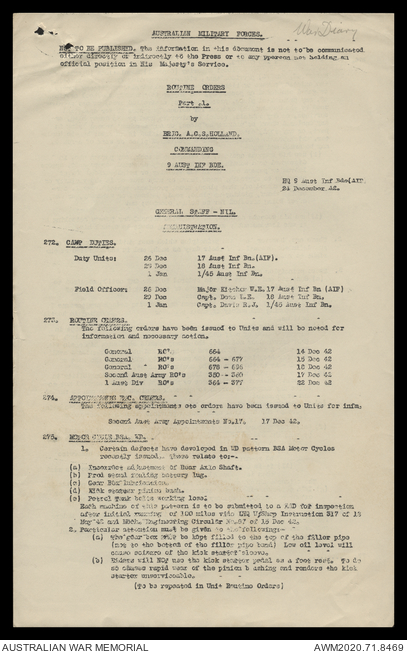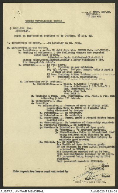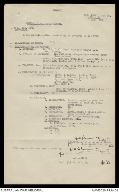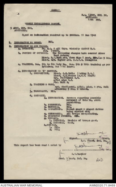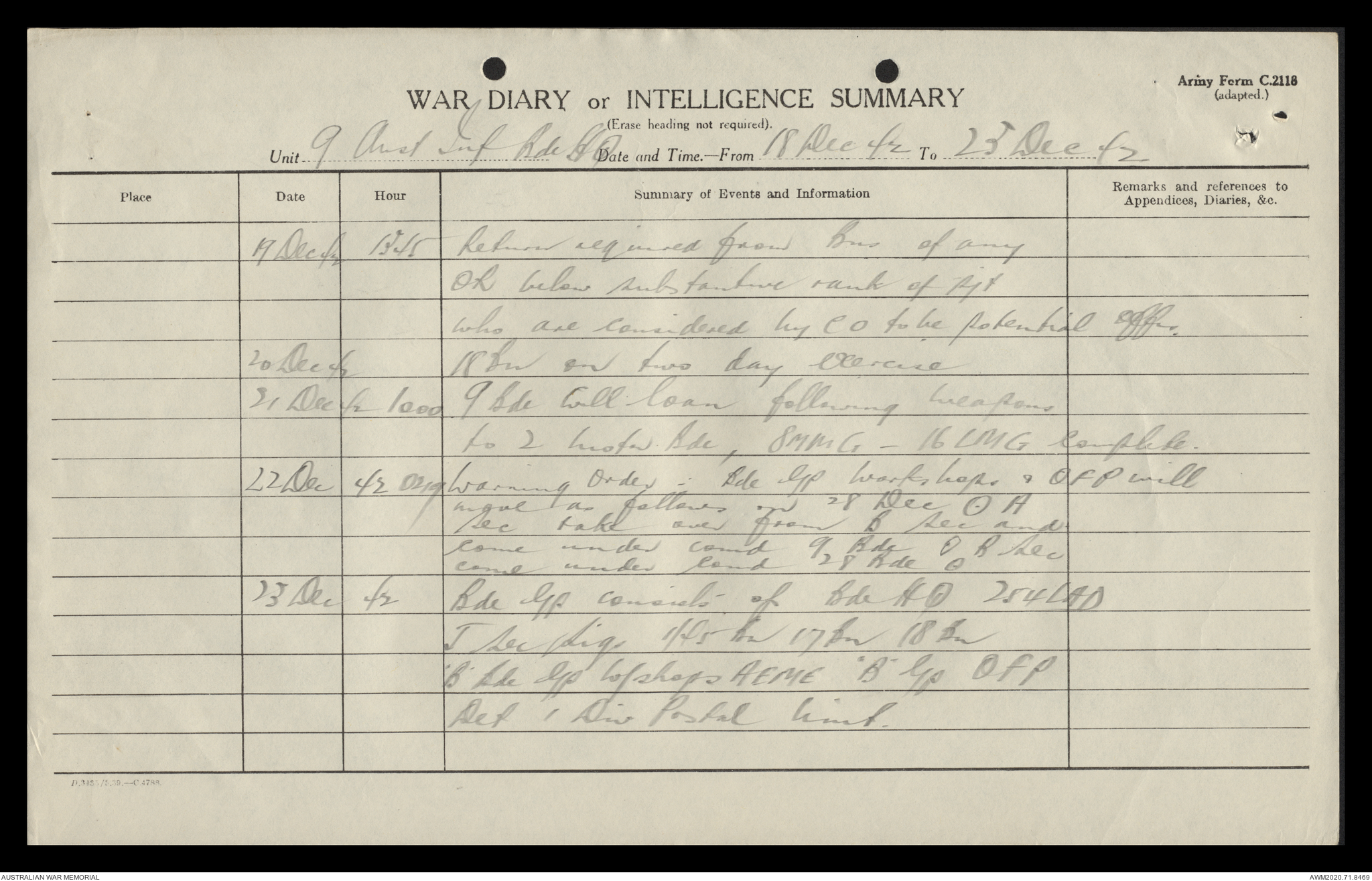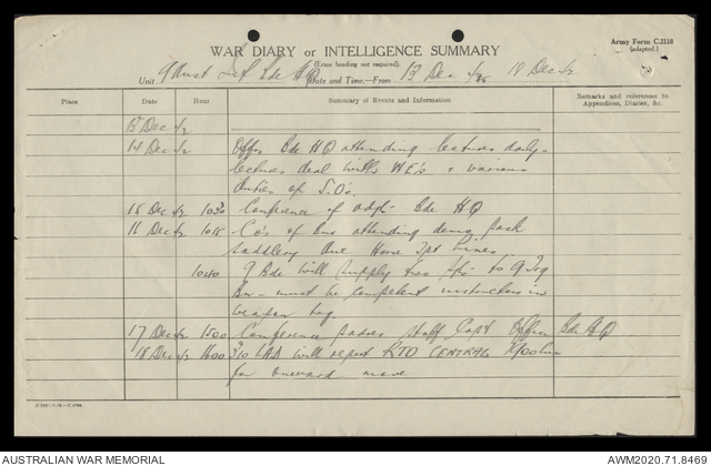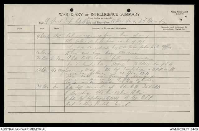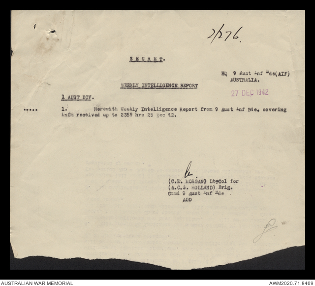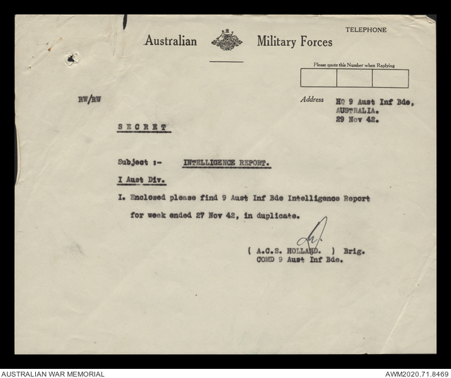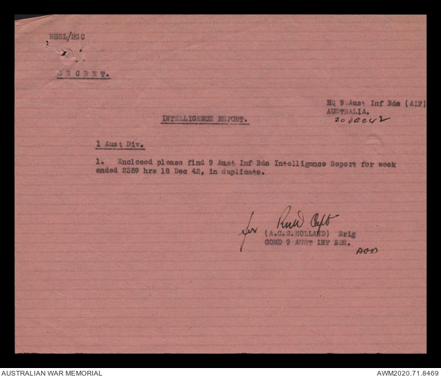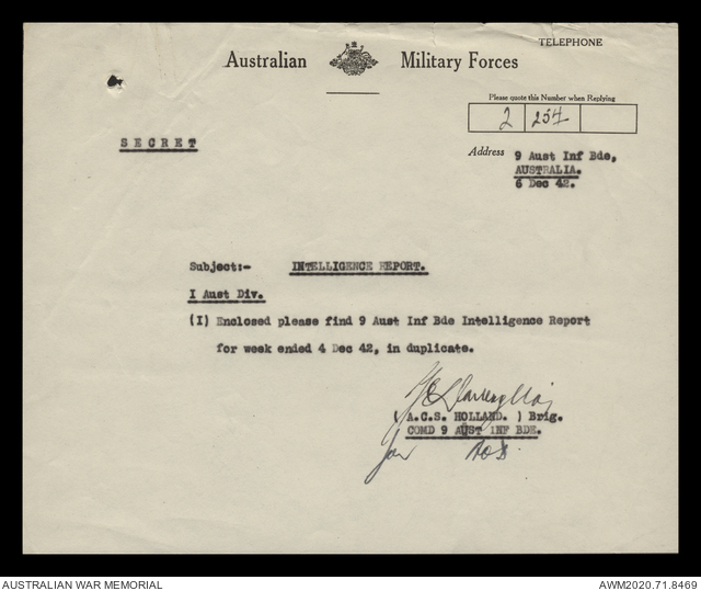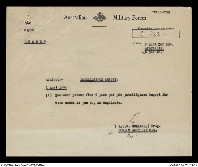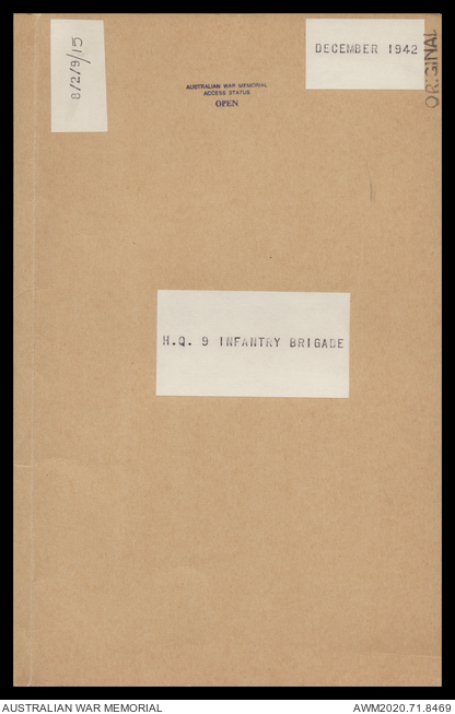 AWM52 8/2/9/15 - [Unit War Diaries, 1939-45 War] HQ 9 Australian Infantry Brigade, December 1942