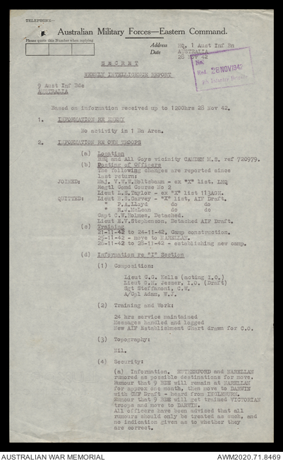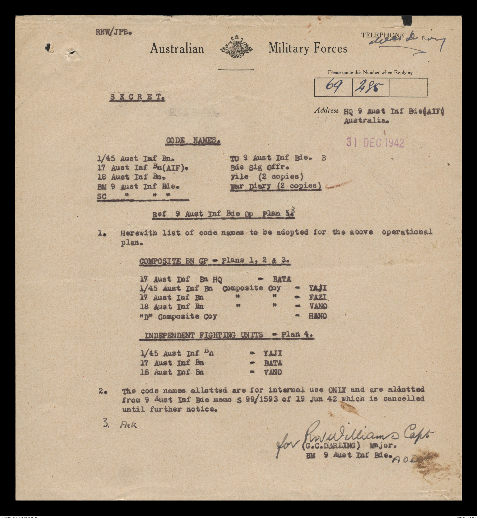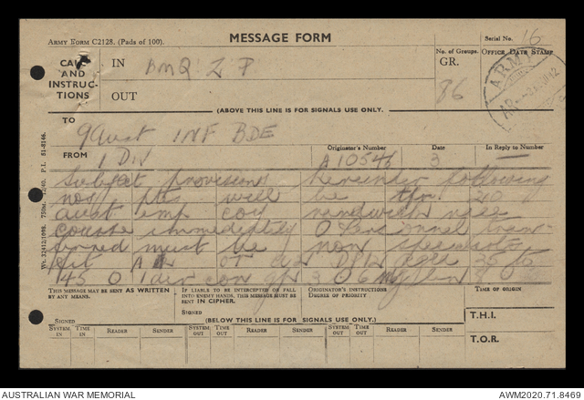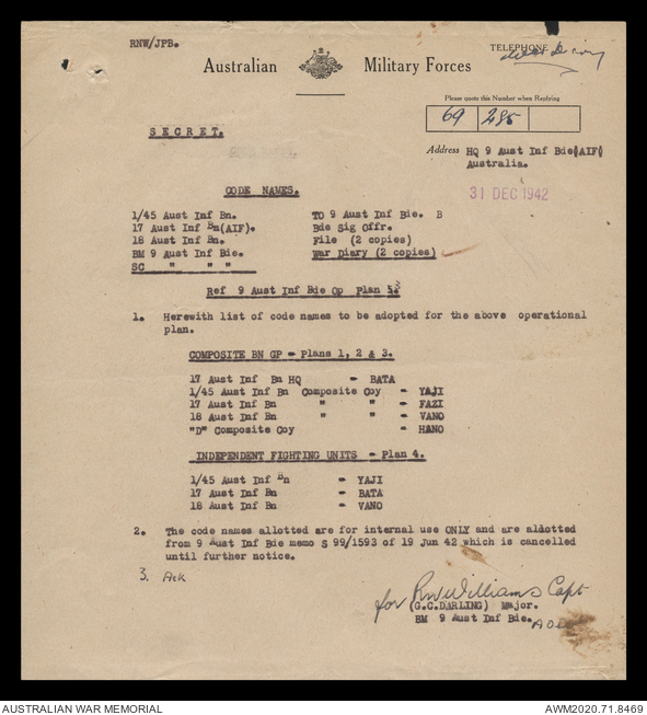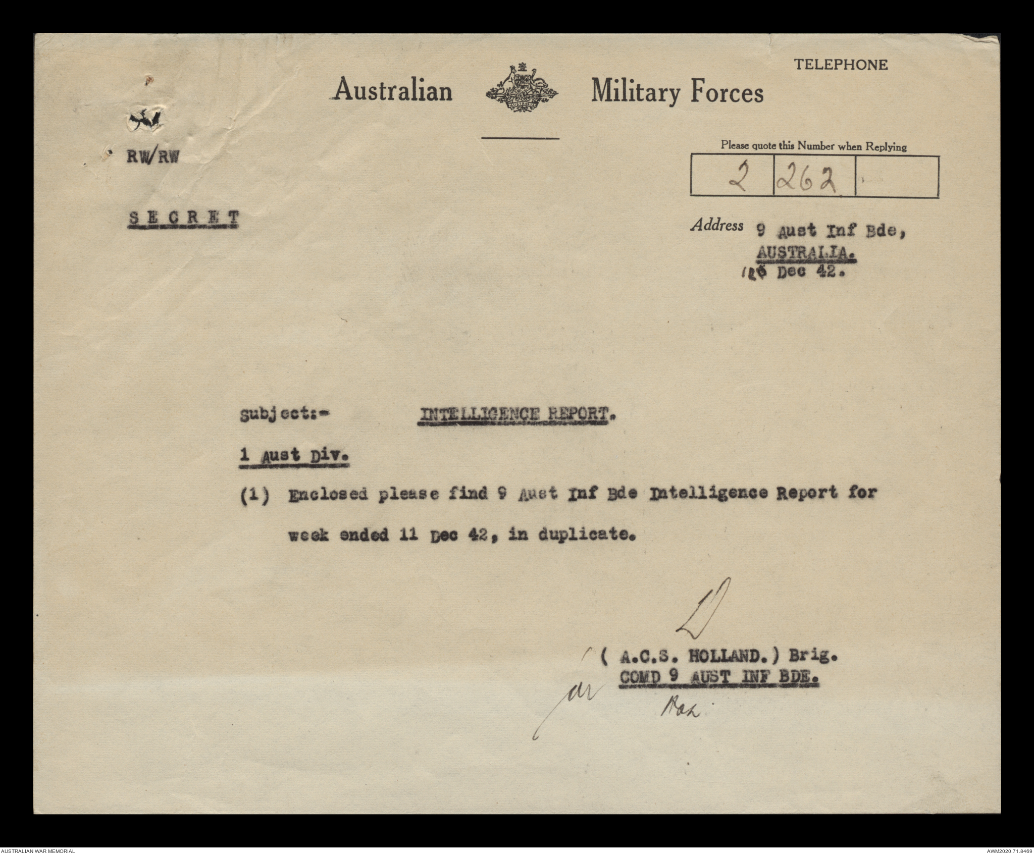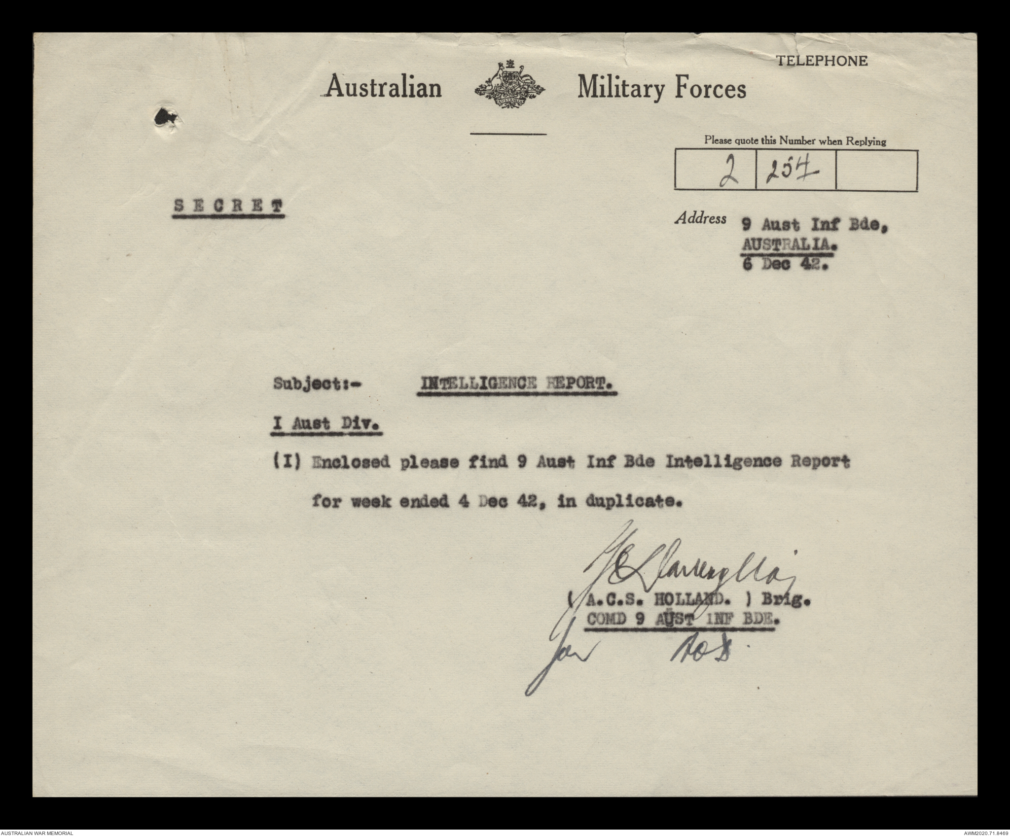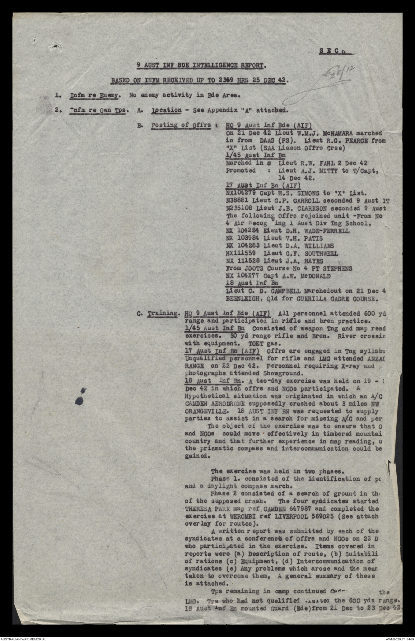 AWM52 8/2/9/15 - [Unit War Diaries, 1939-45 War] HQ 9 Australian Infantry Brigade, December 1942