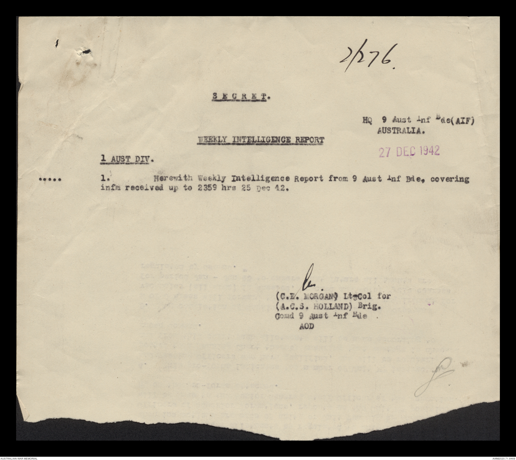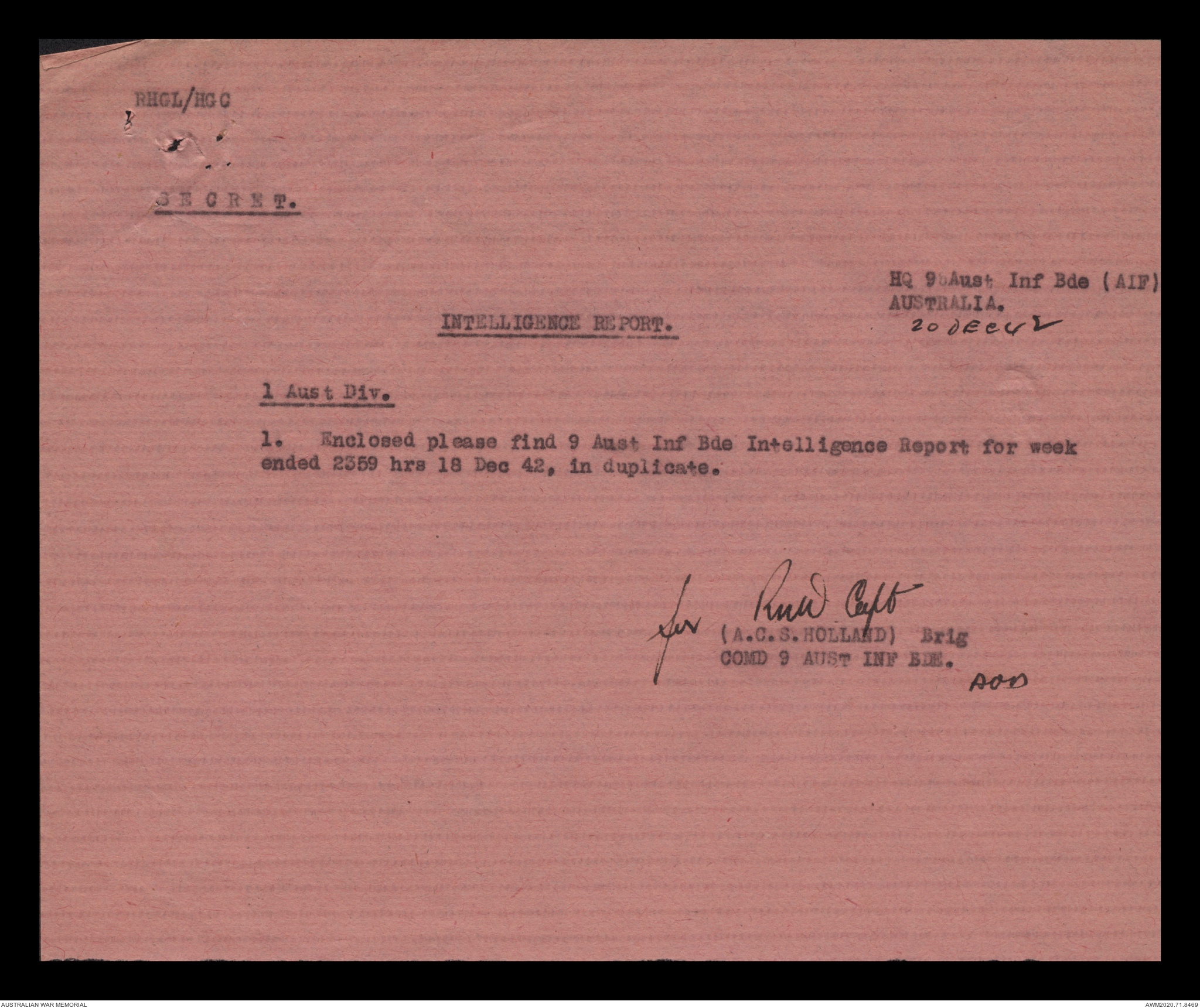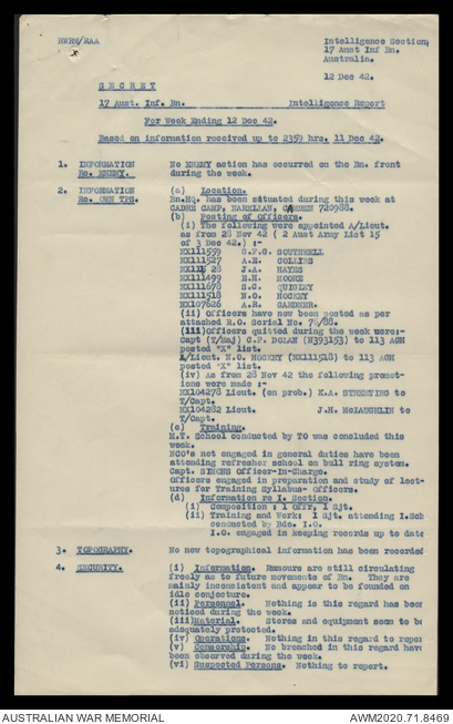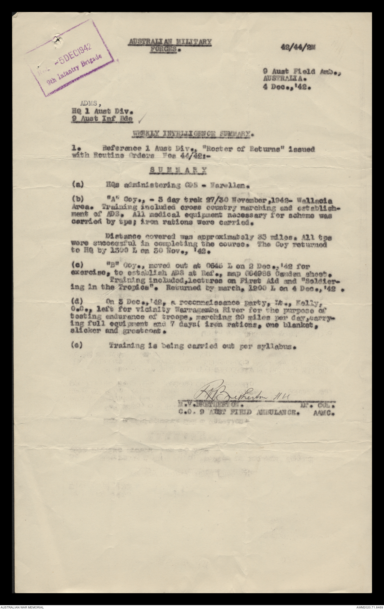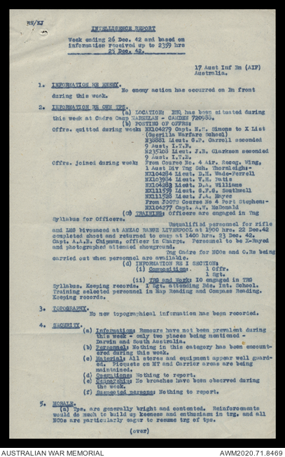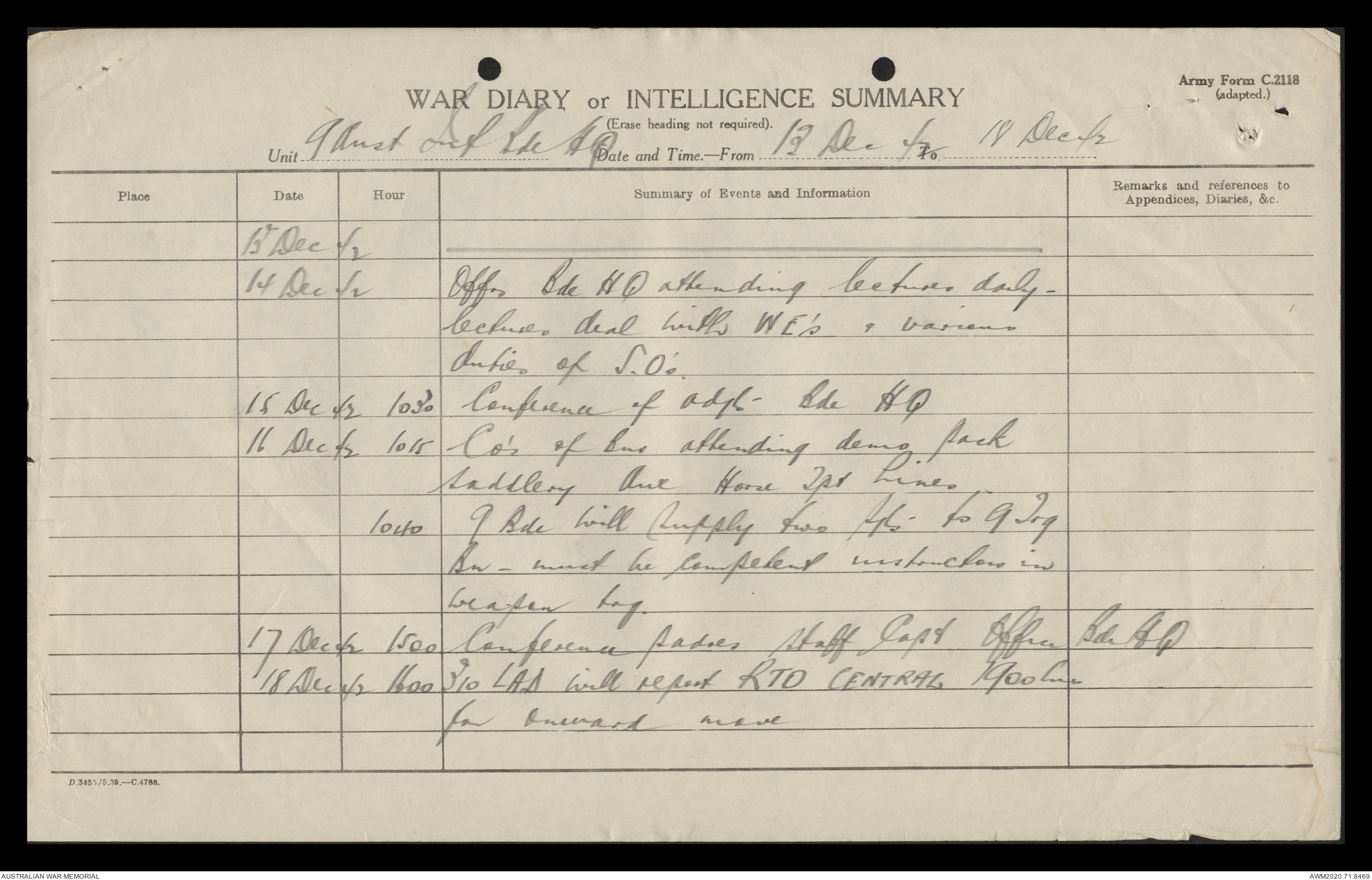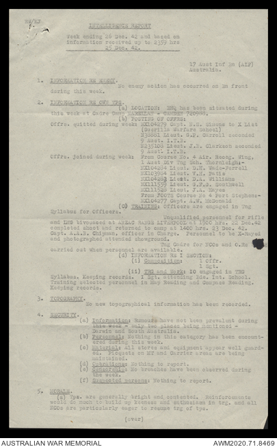 AWM52 8/2/9/15 - [Unit War Diaries, 1939-45 War] HQ 9 Australian Infantry Brigade, December 1942
