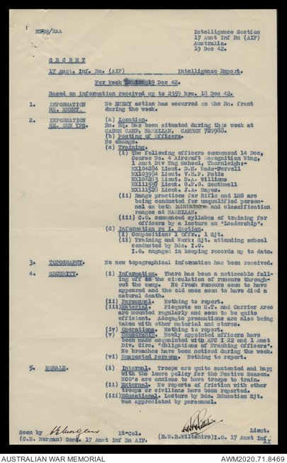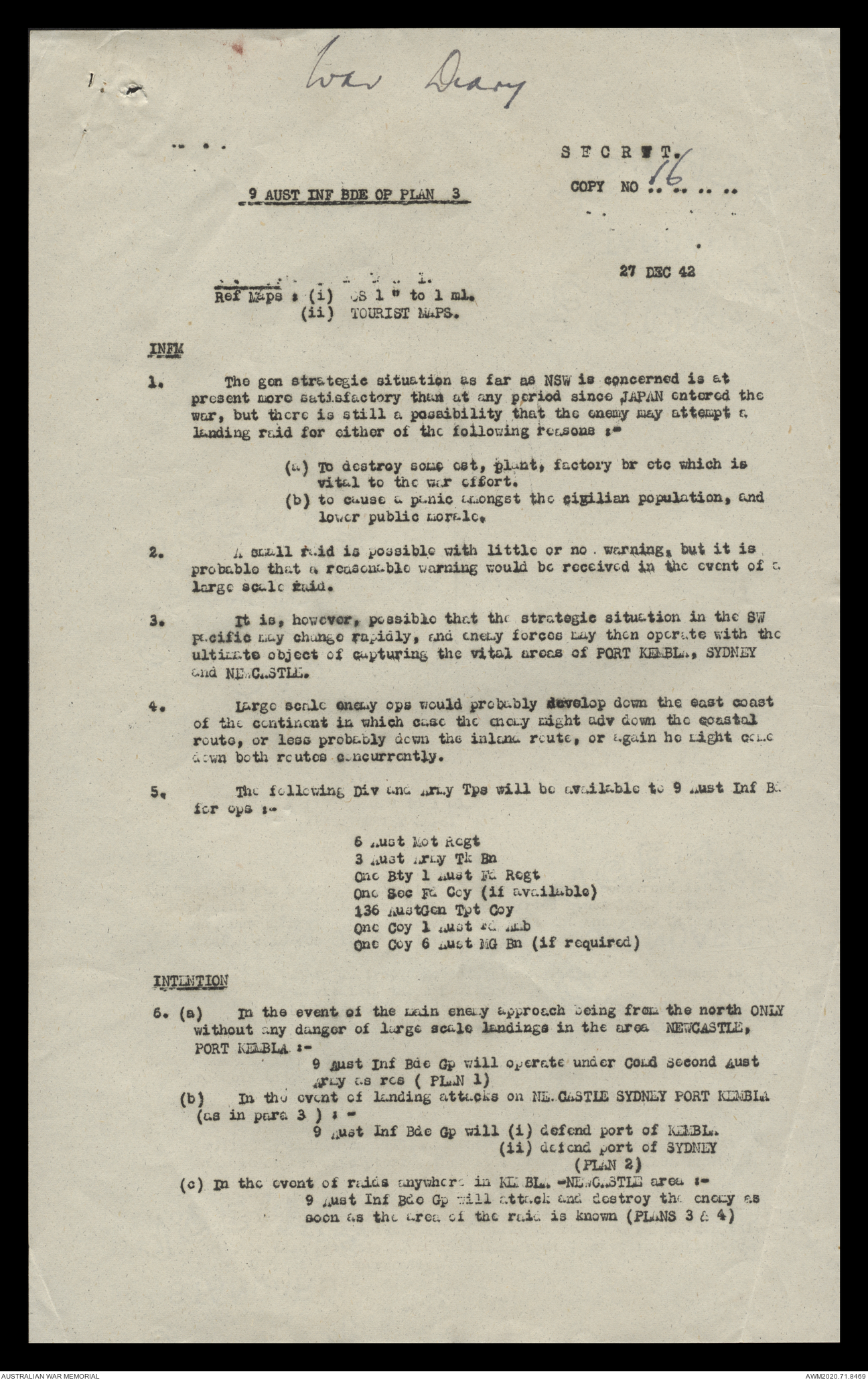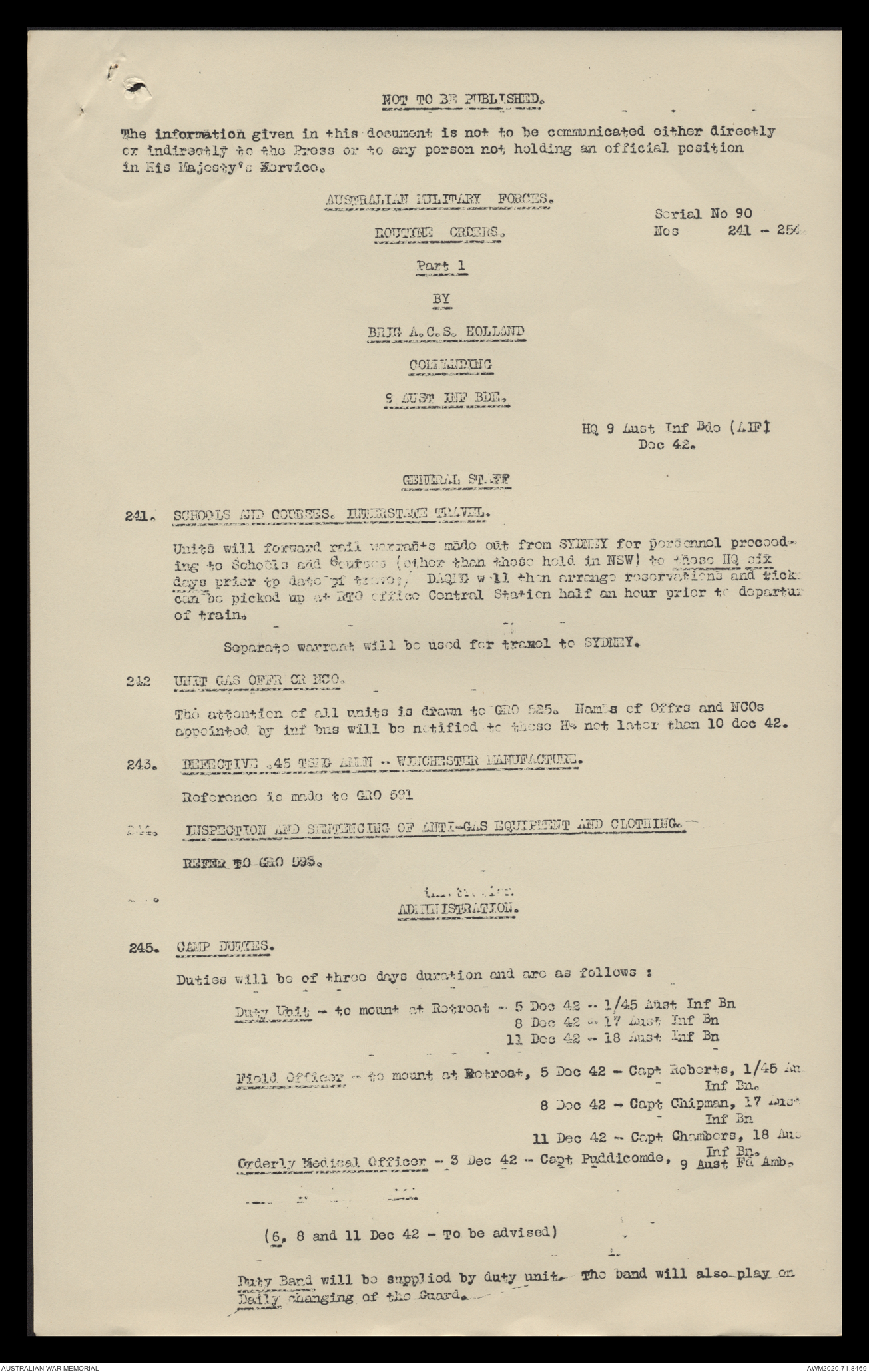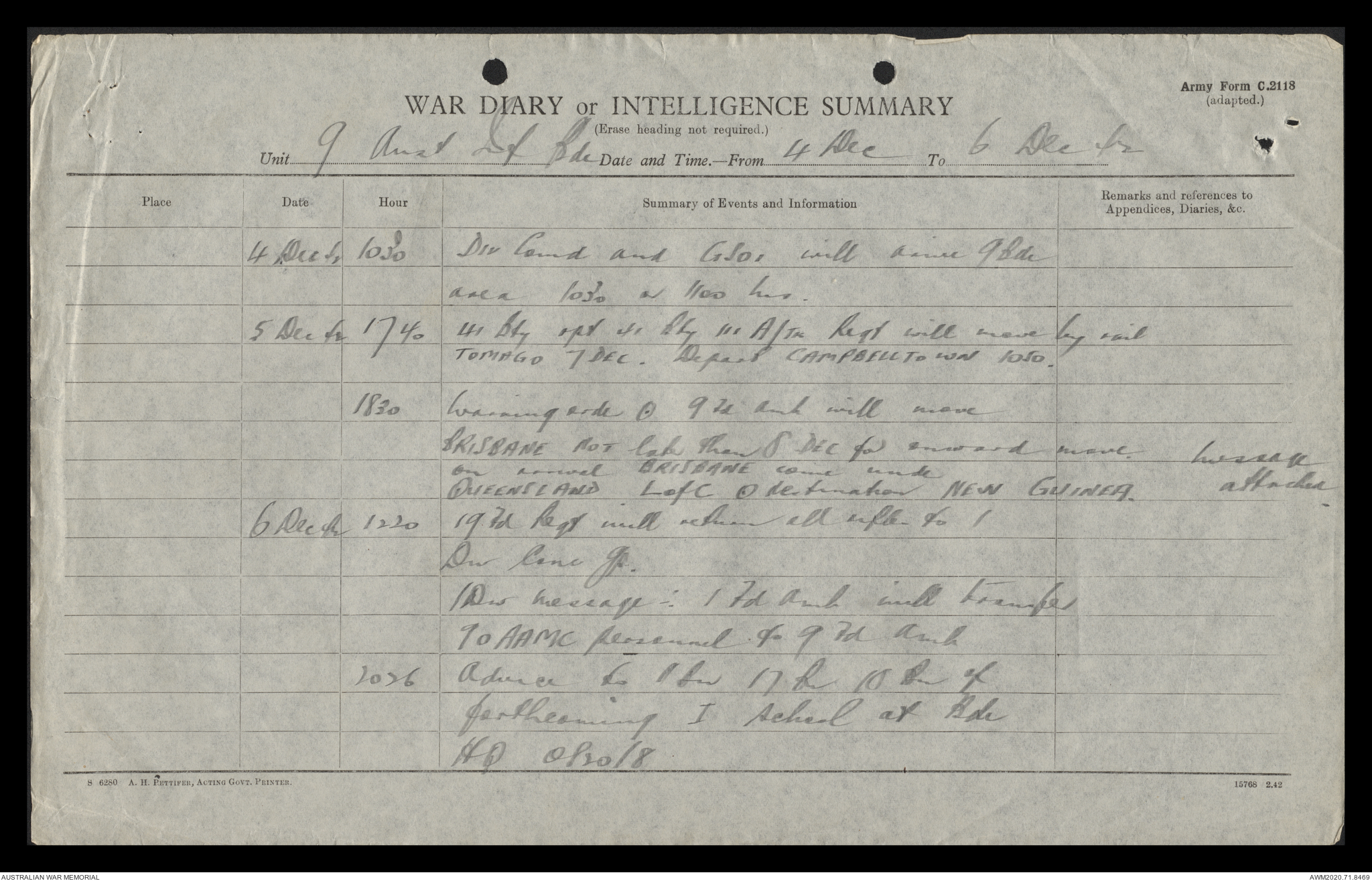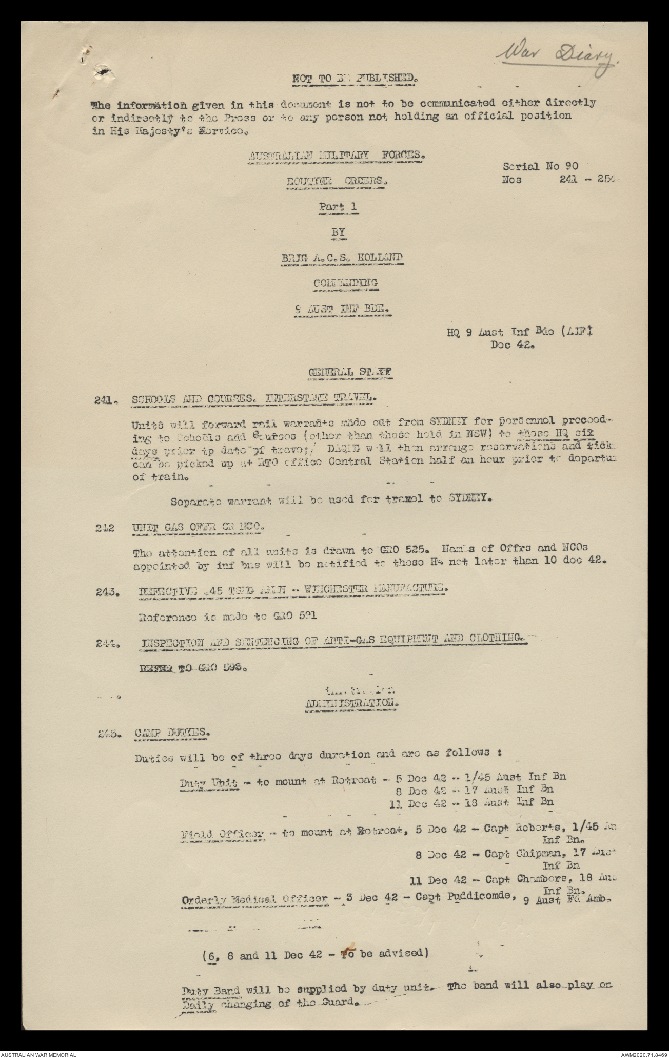 AWM52 8/2/9/15 - [Unit War Diaries, 1939-45 War] HQ 9 Australian Infantry Brigade, December 1942