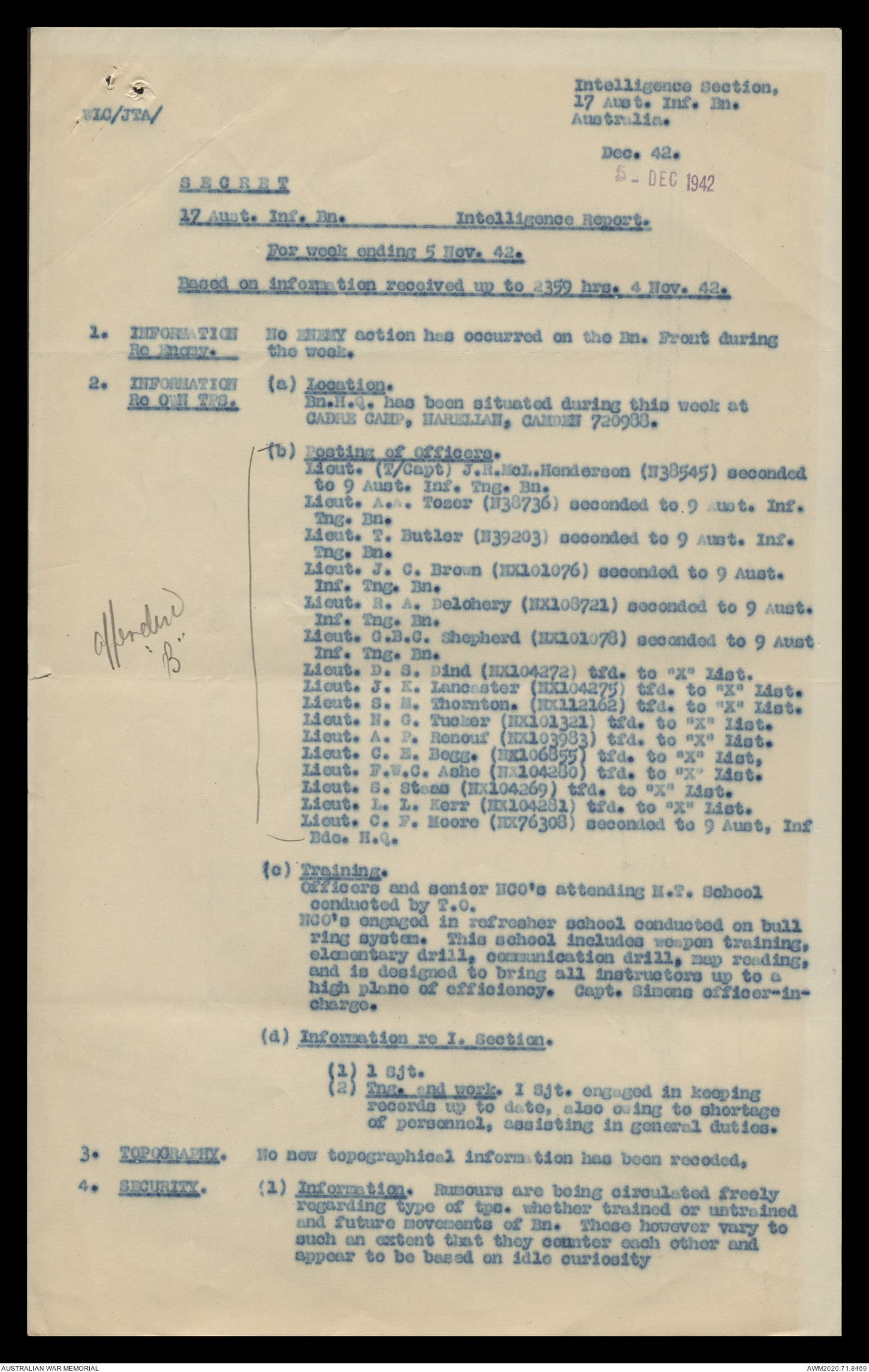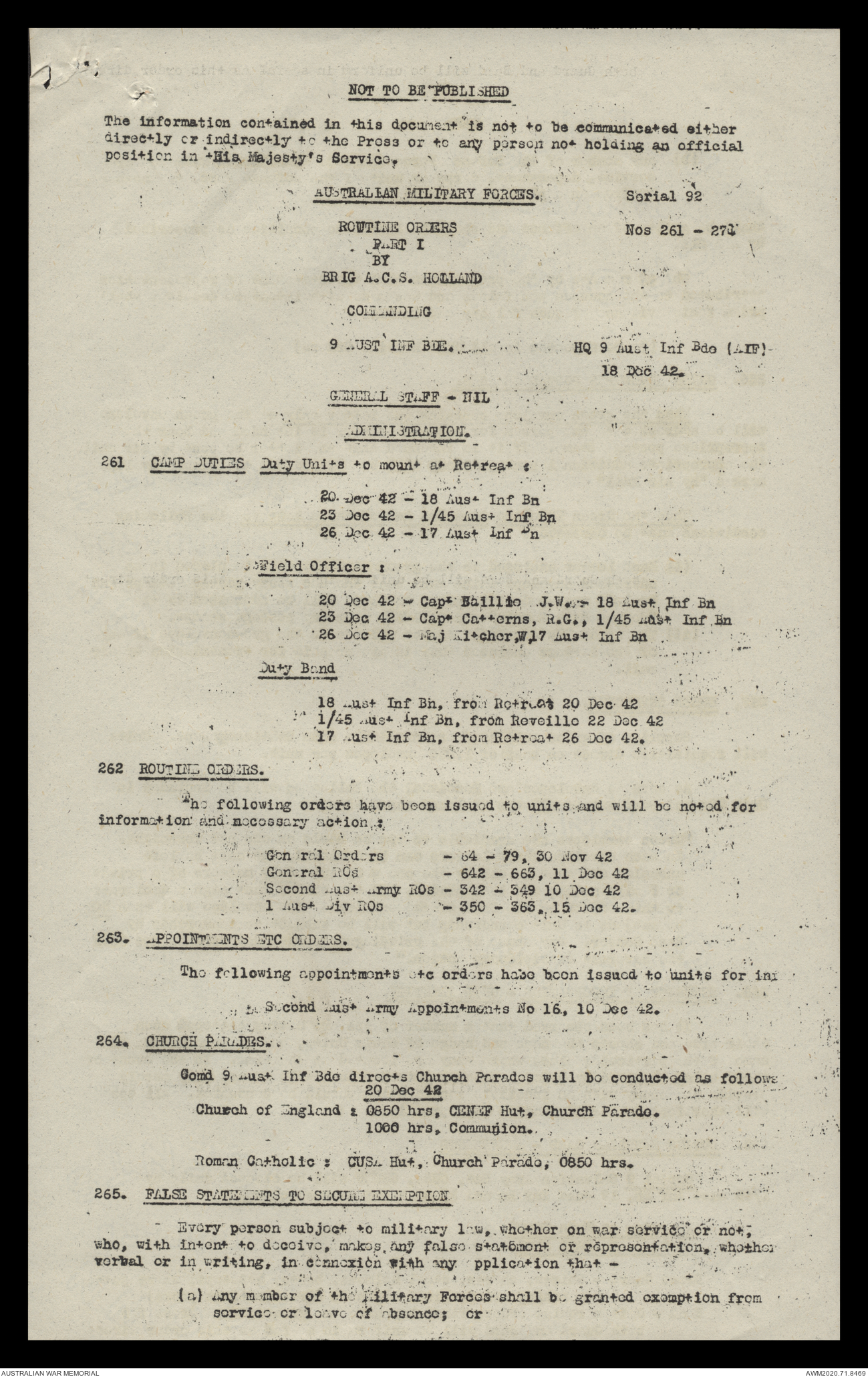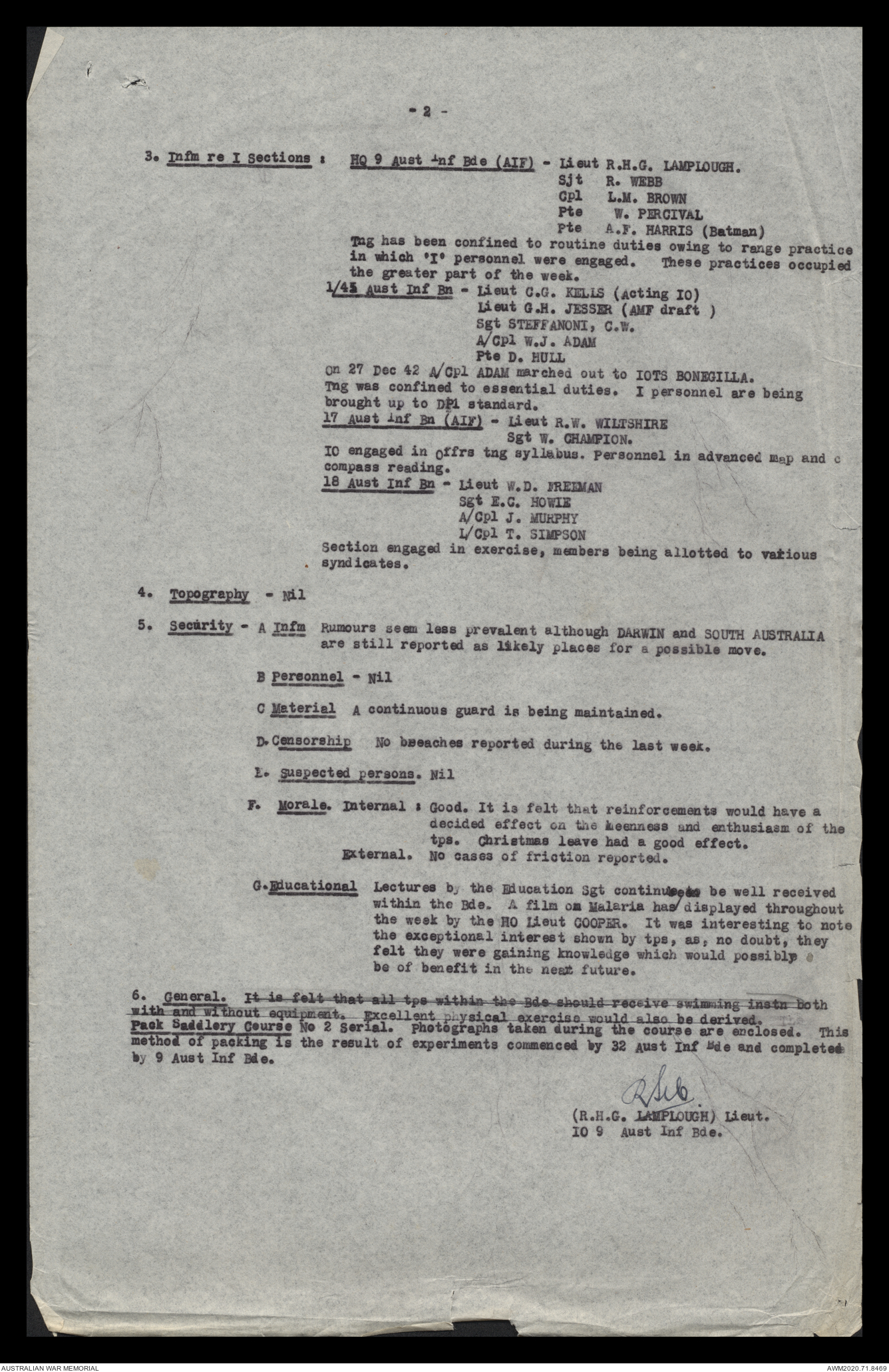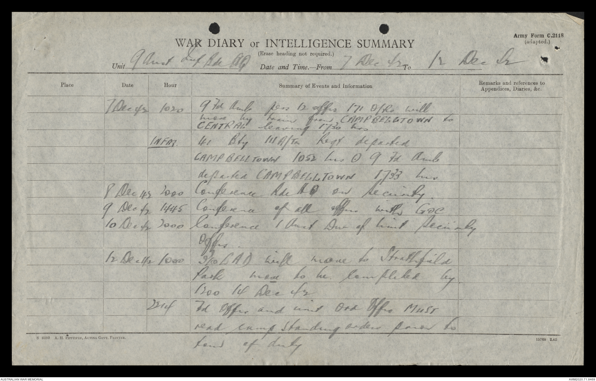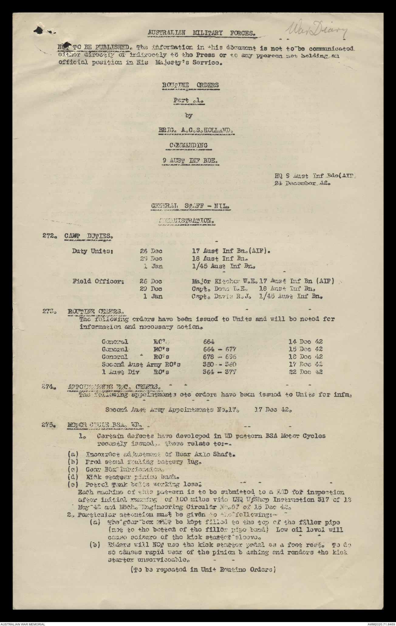 AWM52 8/2/9/15 - [Unit War Diaries, 1939-45 War] HQ 9 Australian Infantry Brigade, December 1942