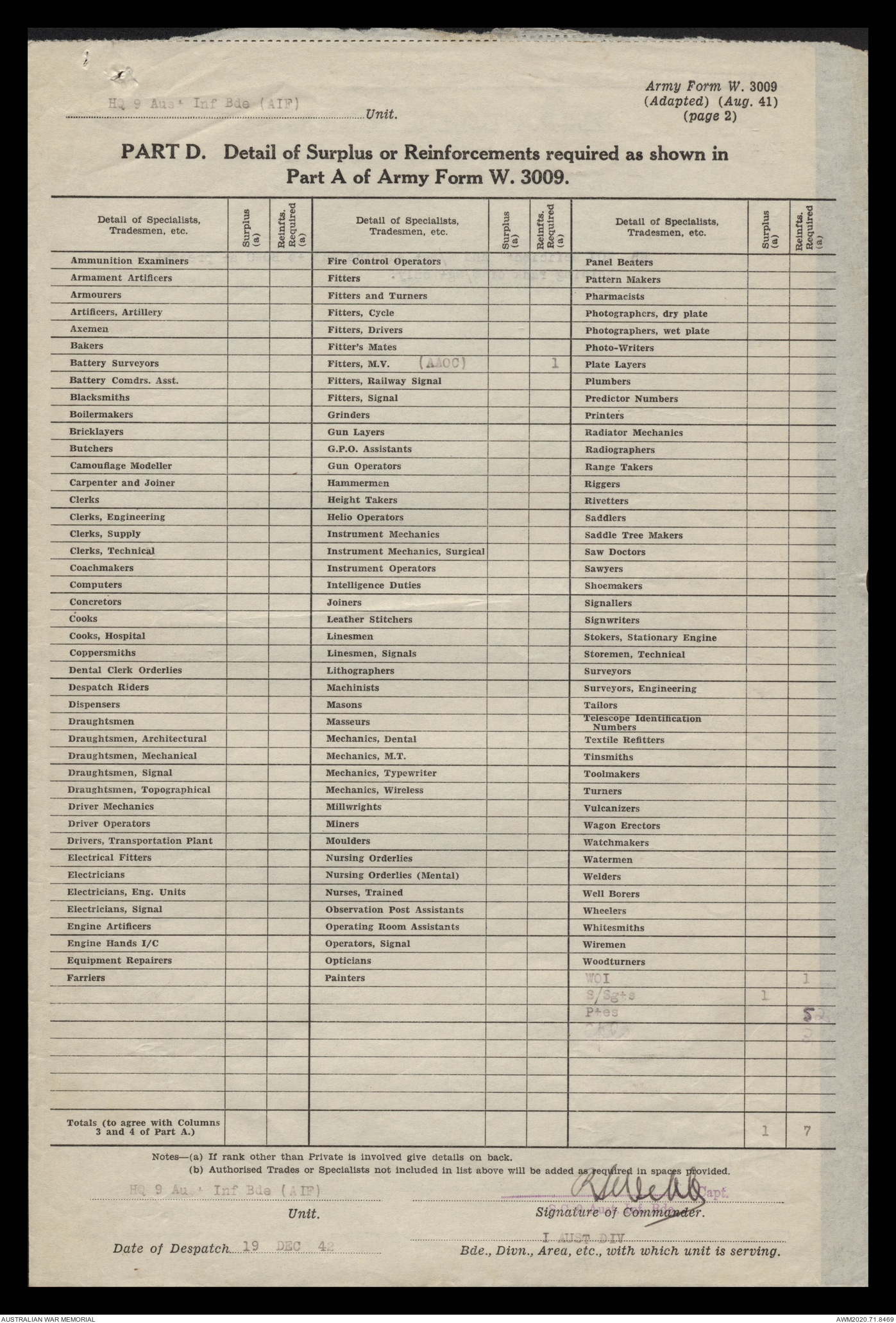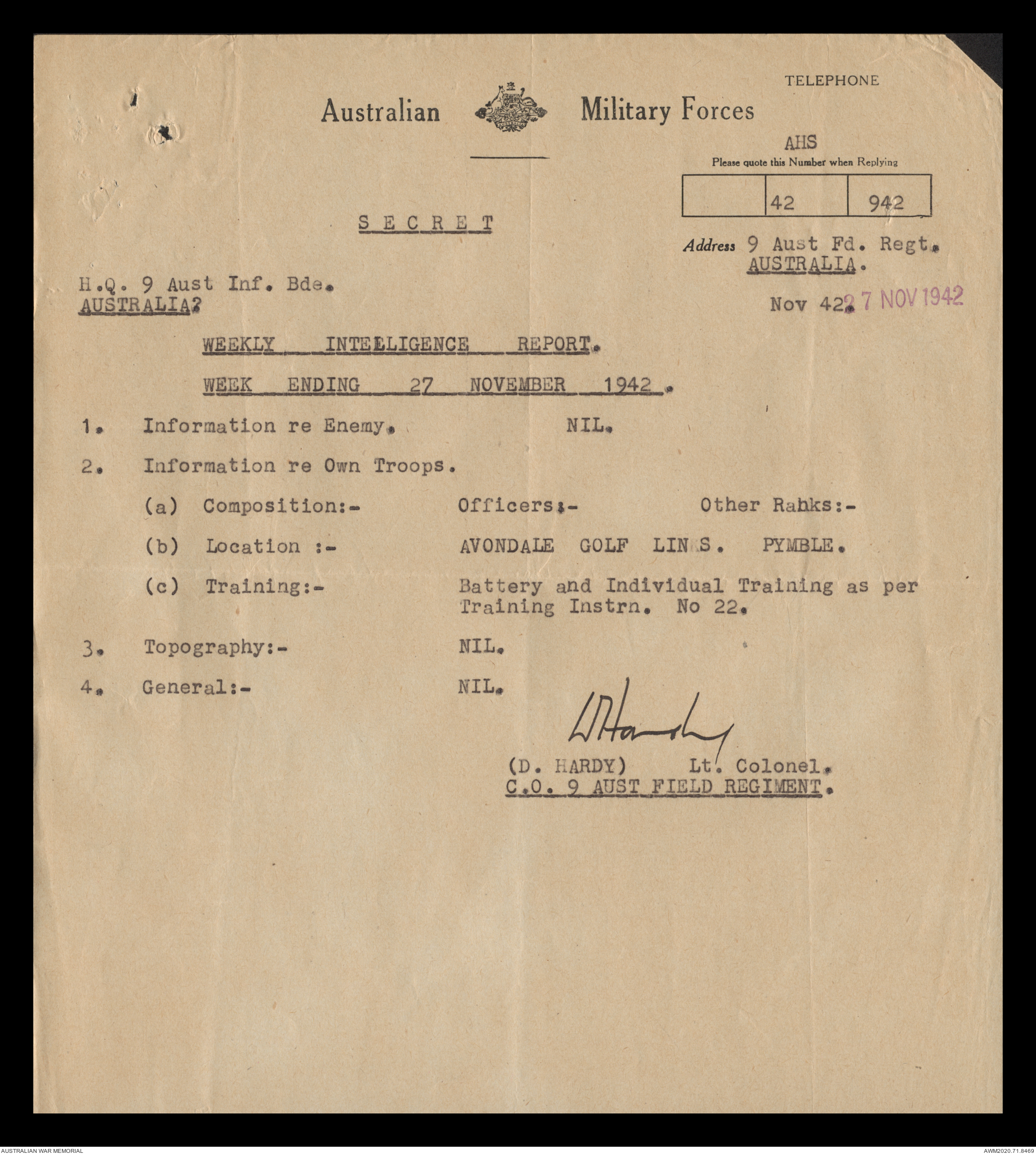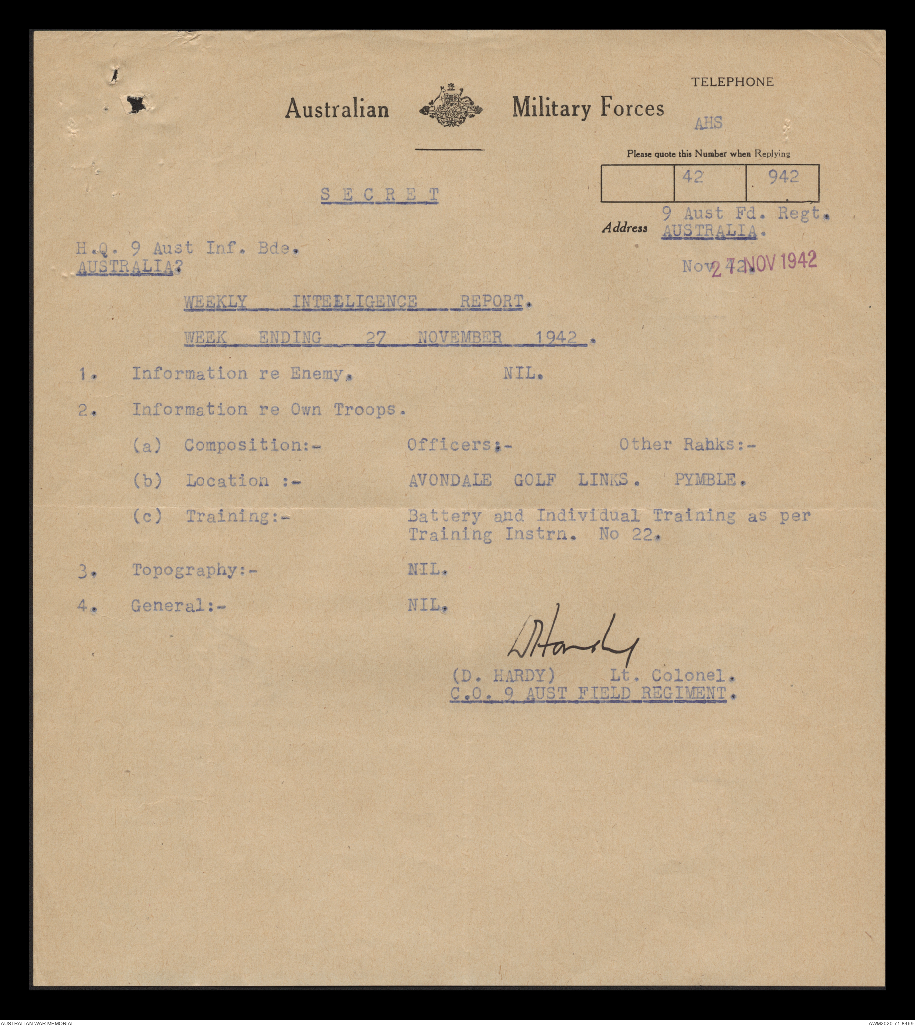| Collection number | AWM52 8/2/9/15 |