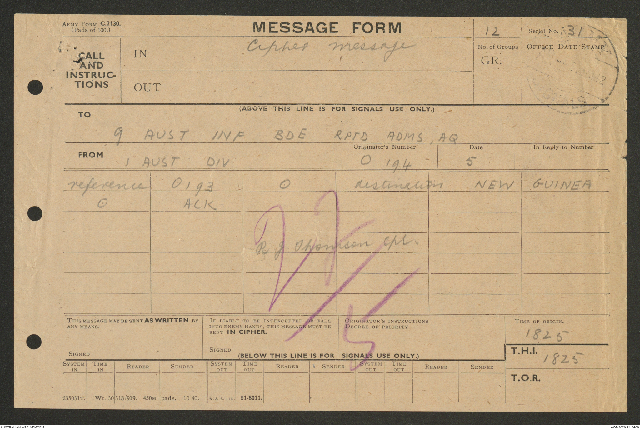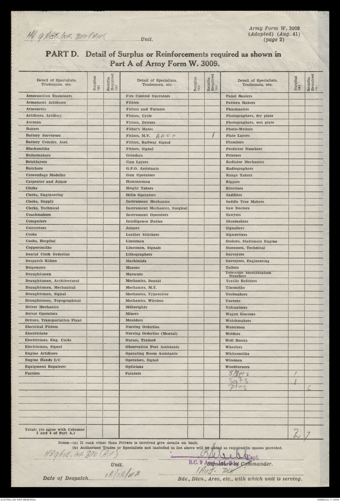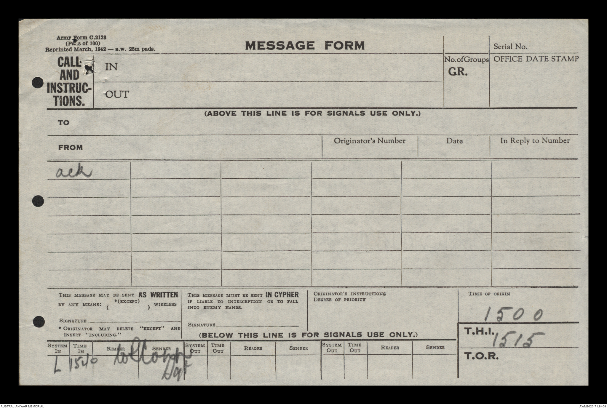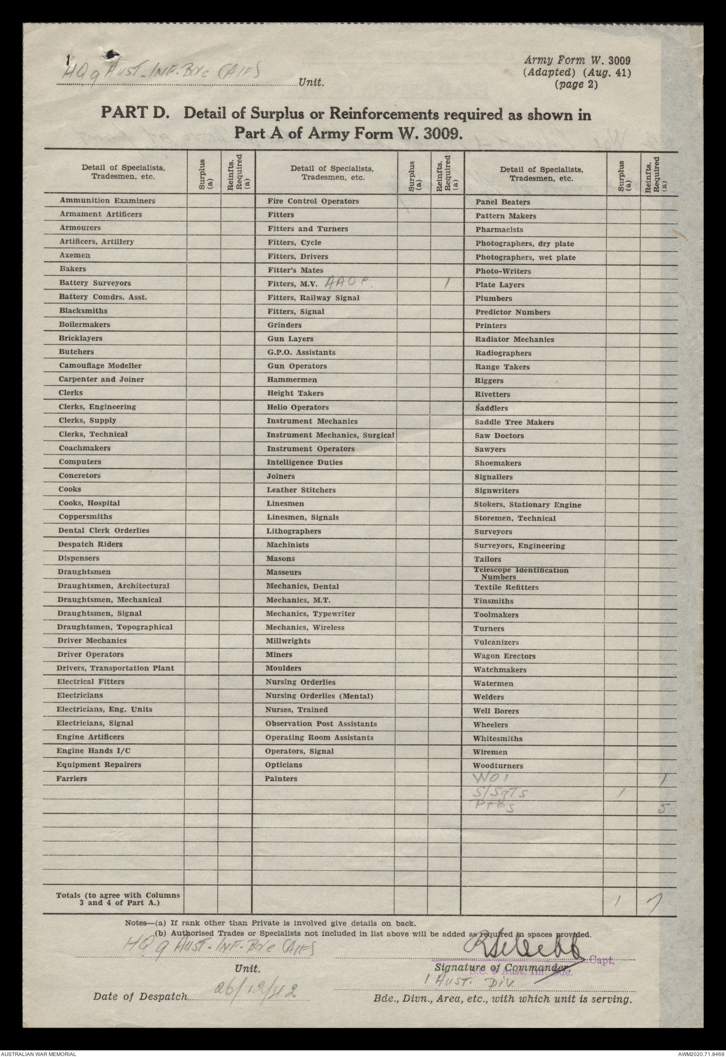 | Collection number | AWM52 8/2/9/15 |