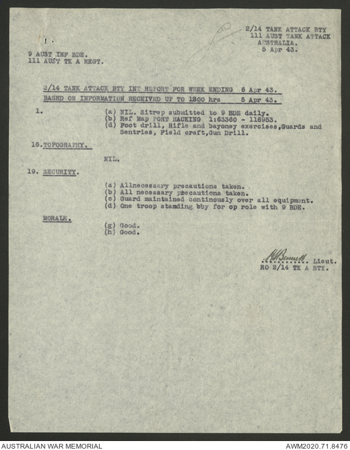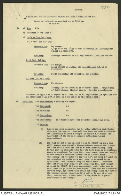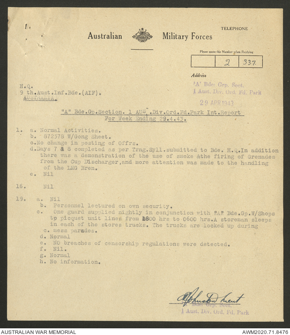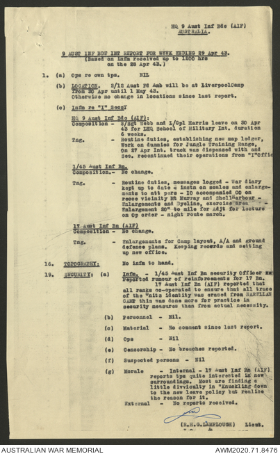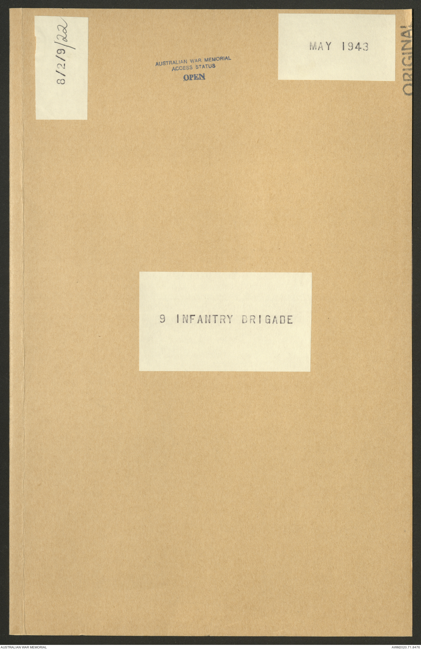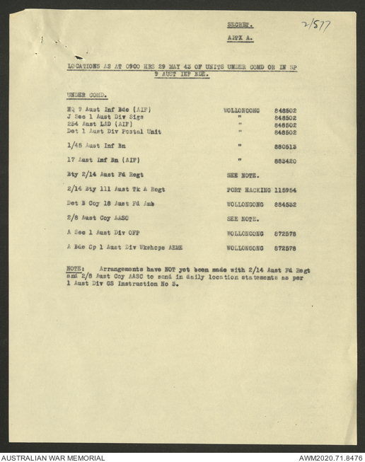 - AWM52 8/2/9 - Headquarters, 9 Infantry Brigade