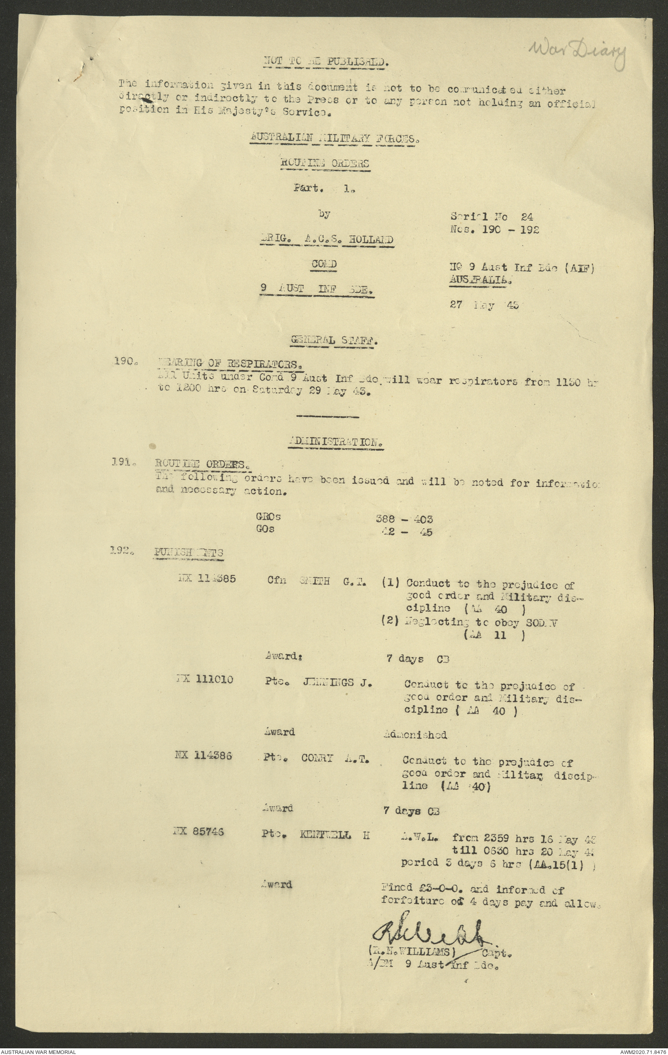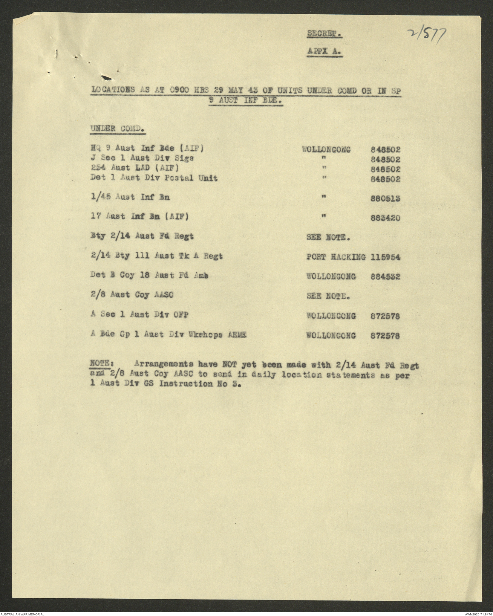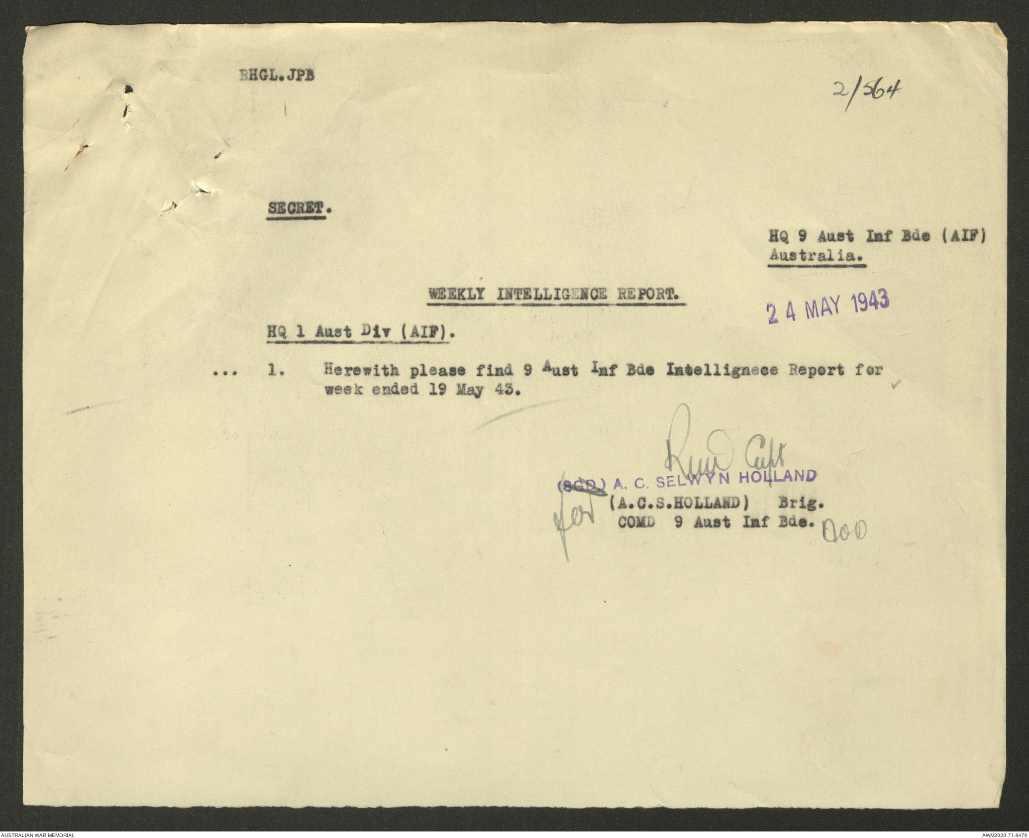 - AWM52 8/2/9 - Headquarters, 9 Infantry Brigade
